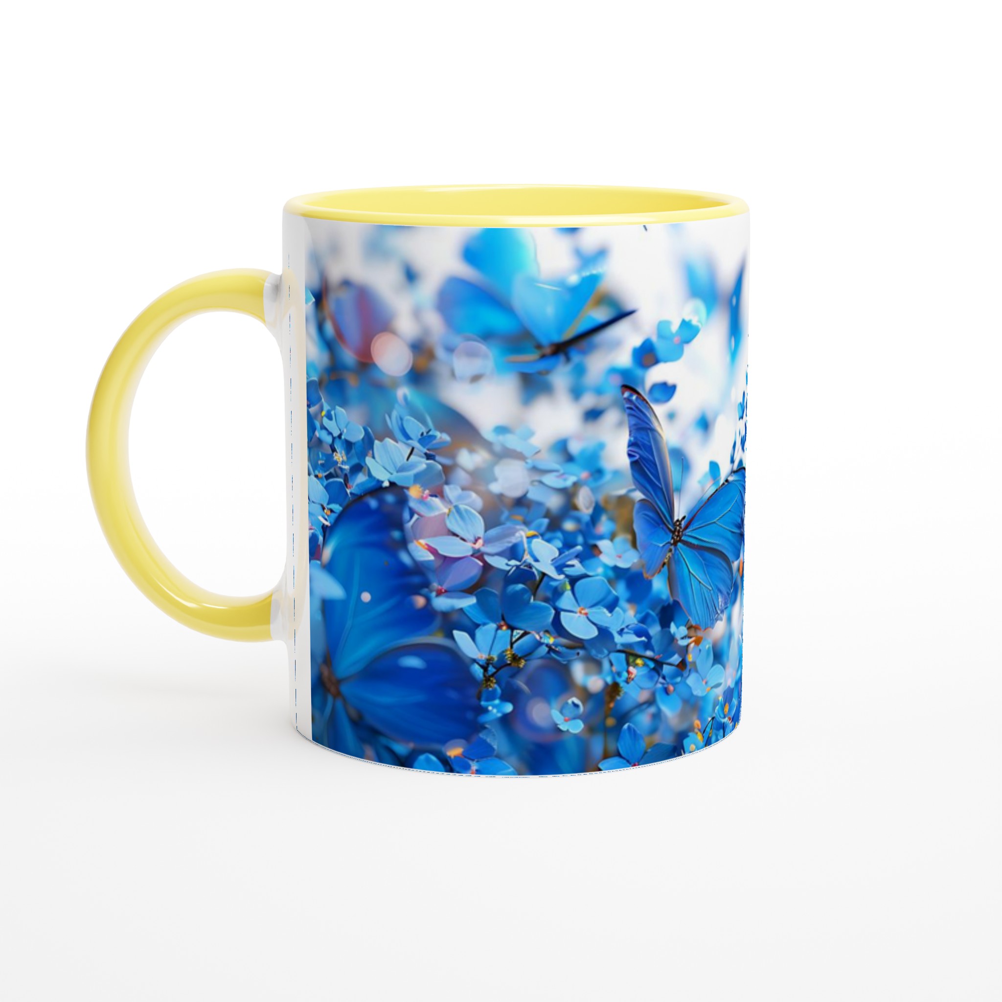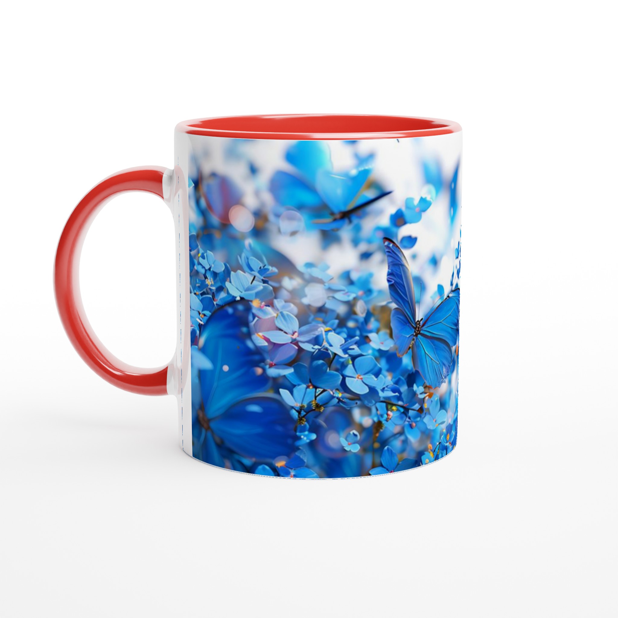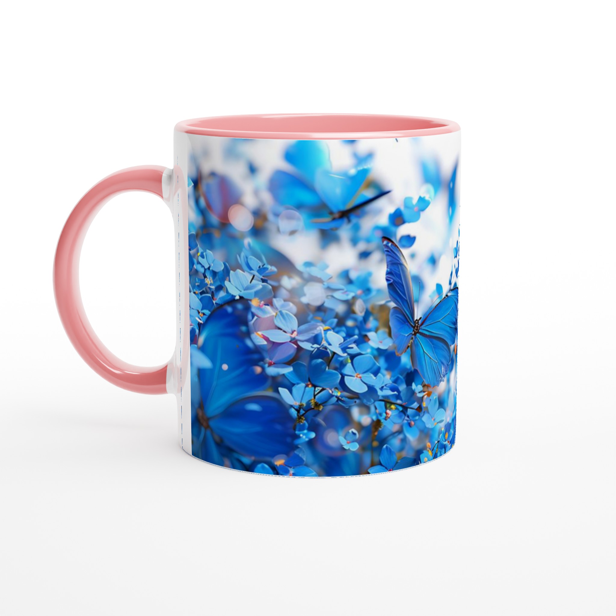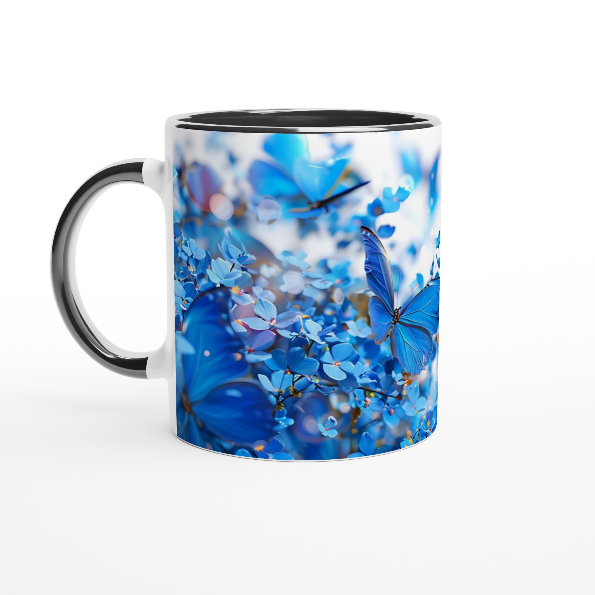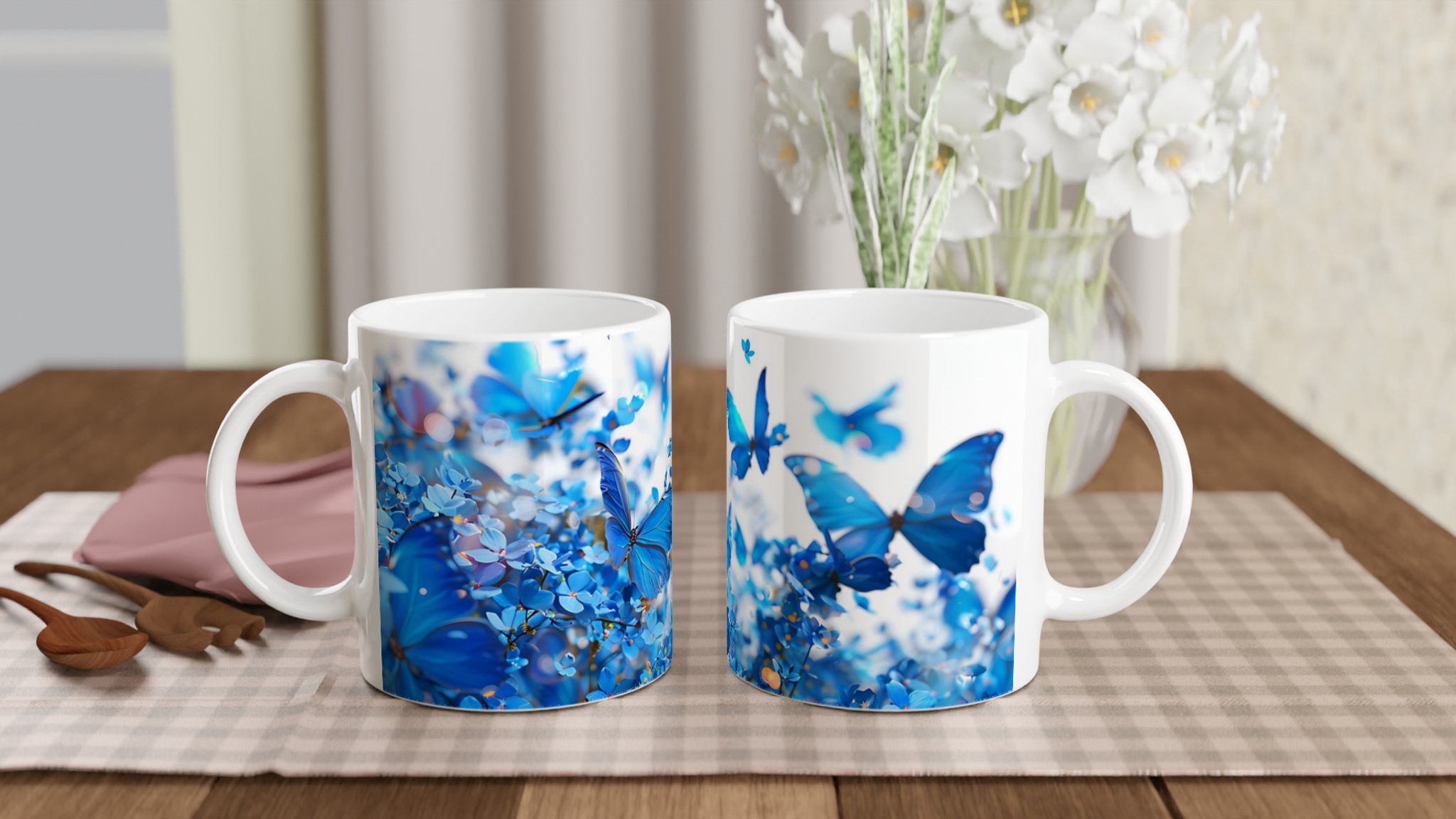 Fånga känslan av en svärm av livfulla blå fjärilar som dansar bland blommor med denna förtrollande keramiska mugg. Varje morgon blir lite ljusare, varje fikarast en flykt till en drömlik trädgård. Denna mugg blir snabbt en favorit, perfekt för morgonkaffet, kvällens varma choklad eller när du bara vill njuta av en kopp te.