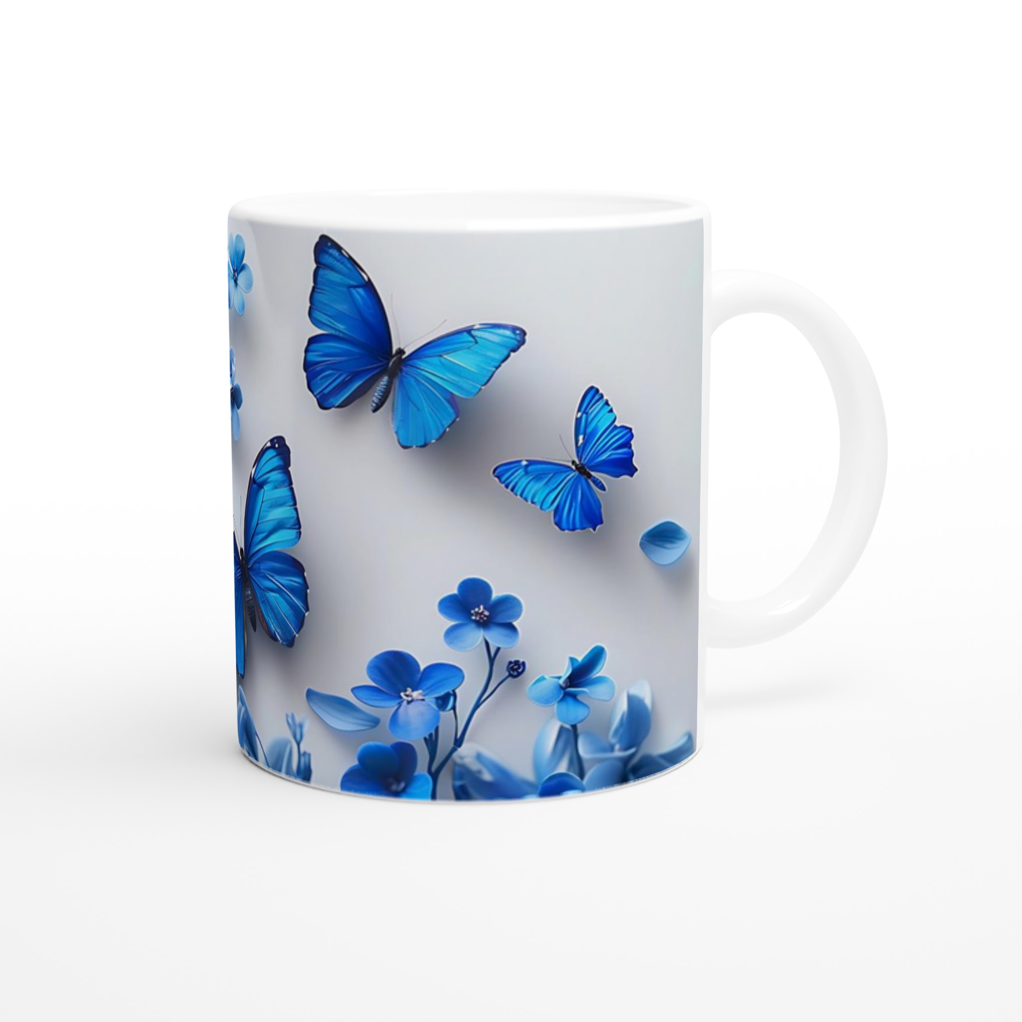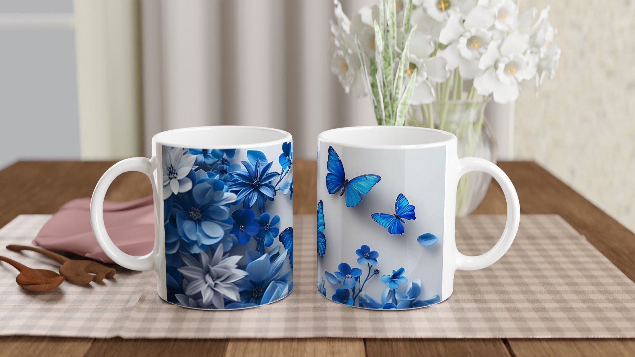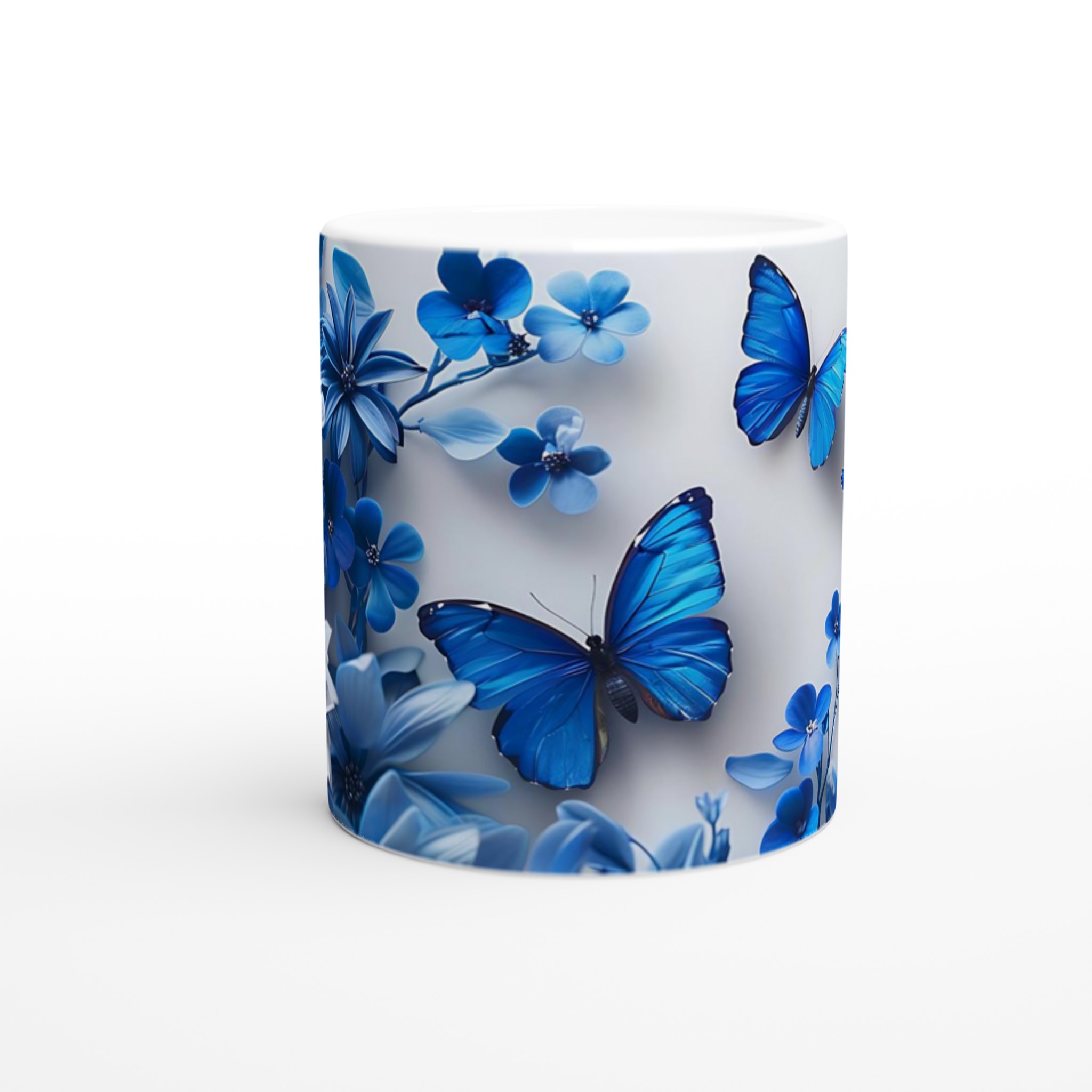 Fånga skönheten i en fjärilsdröm med denna förtrollande keramiska mugg. Varje klunk blir en stund av lugn, omgiven av den lugnande paletten av blå och vita nyanser inspirerade av naturens elegans. Den här stilrena keramiska muggen blir snabbt en vardagsfavorit. Perfekt för morgonkaffet, kvällens varma choklad eller när du bara vill njuta av en kopp te.