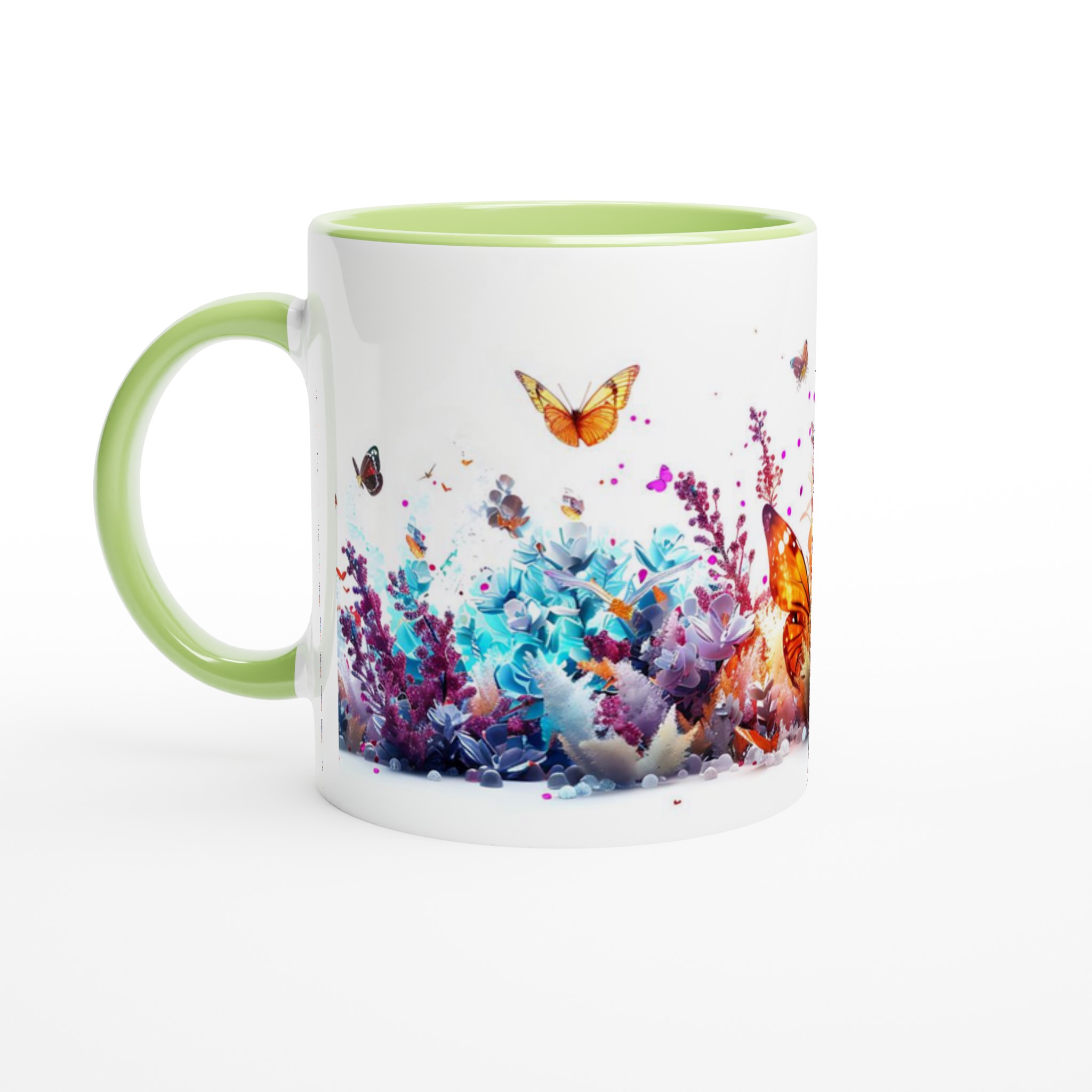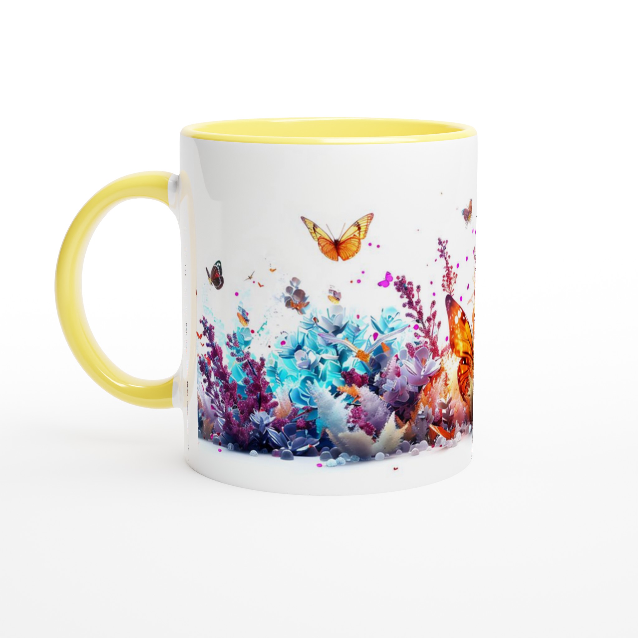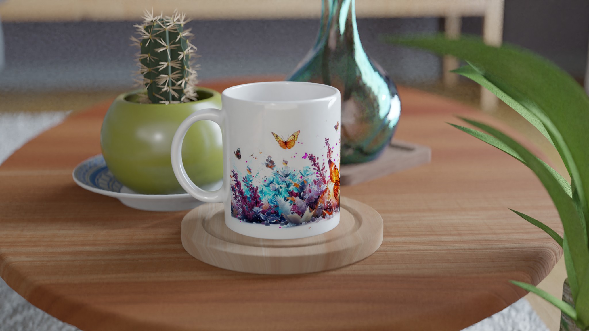Låt varje klunk bli en upplyftande upplevelse med vår Fjärilsdröm keramiska mugg. Inspirerad av bilden av svävande fjärilar och frodiga, färgsprakande blomsterlandskap, blir denna mugg snabbt en vardagsfavorit. Den är perfekt för morgonkaffet, kvällens varma choklad, eller när du bara vill njuta av en kopp te i en mugg som strålar av glädje och liv.