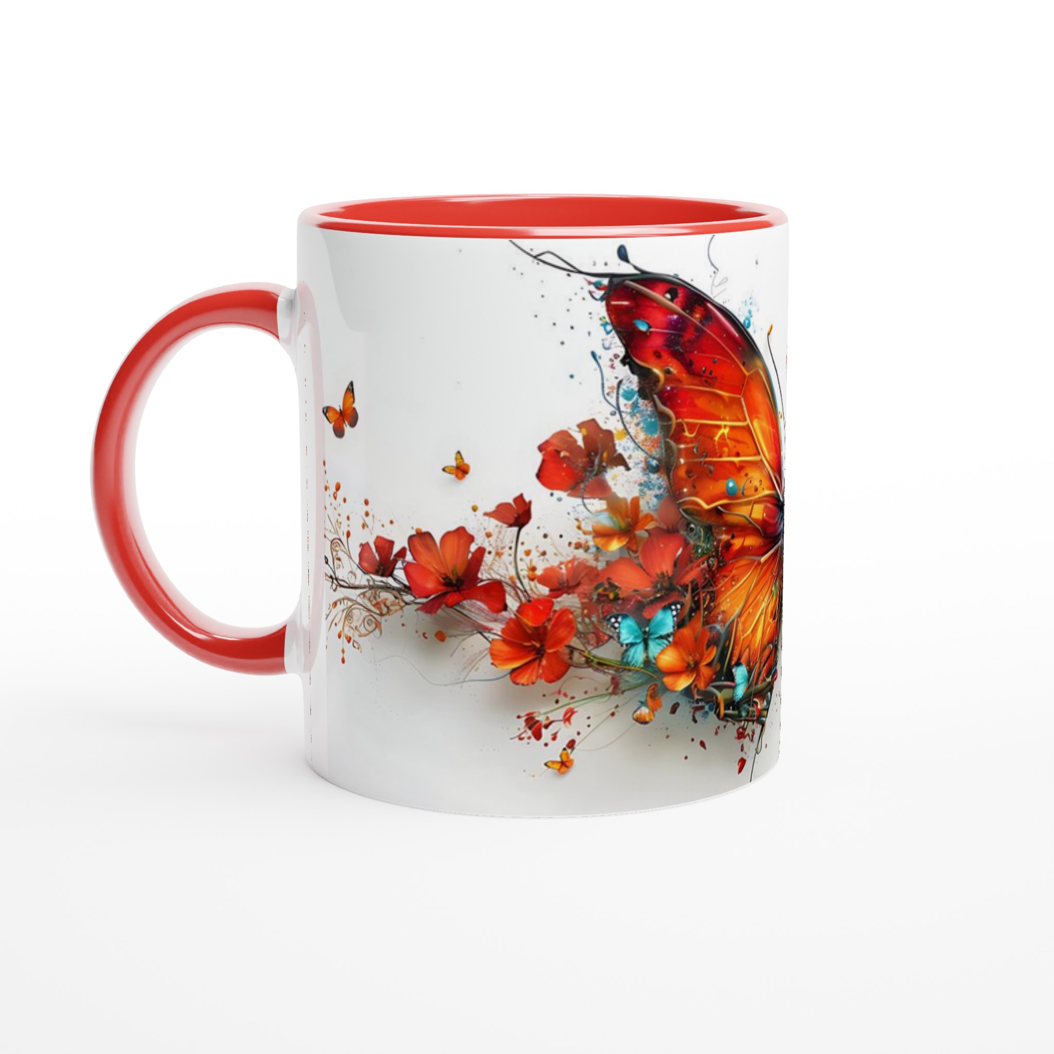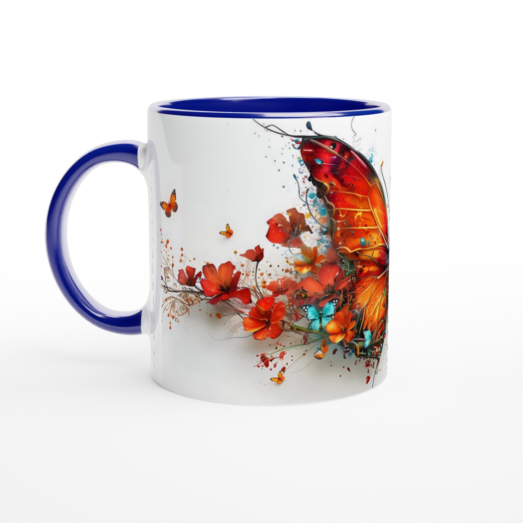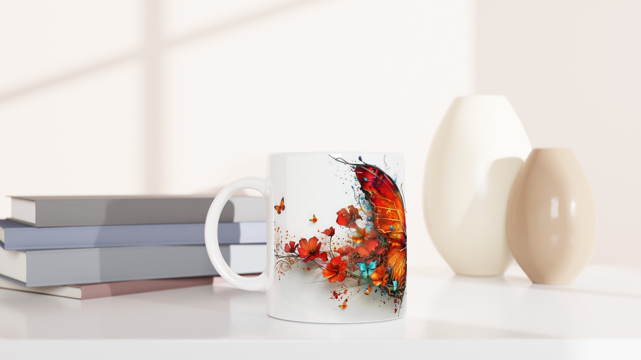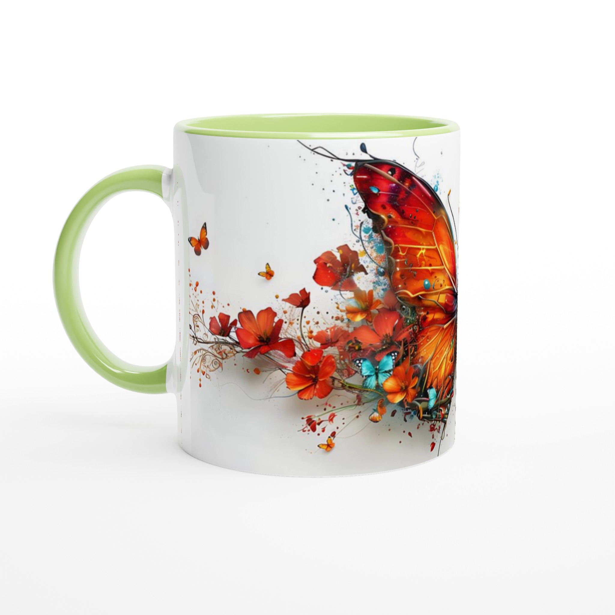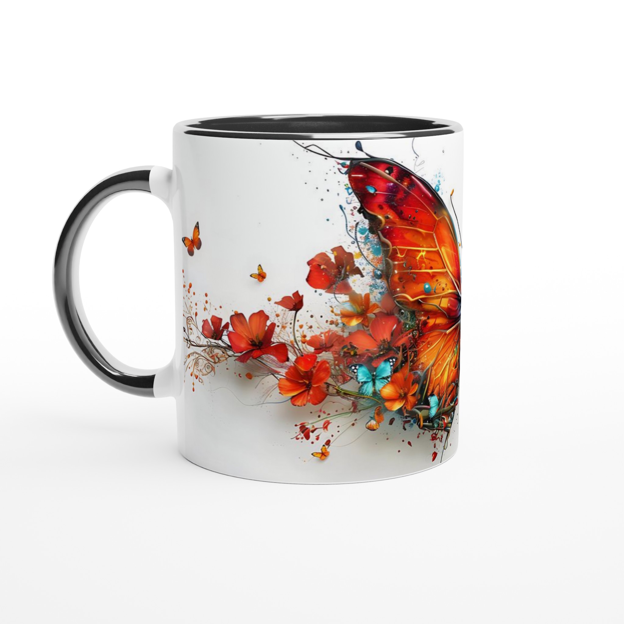 Låt din vardag blomstra med vår unika keramiska mugg, prydd med en levande och konstnärlig fjärilsdesign. Denna mugg är inte bara en behållare för din dryck; den är en hyllning till naturens skönhet och konstens frihet, perfekt för att förgylla varje morgon, eftermiddagsfika eller avkopplande kvällsstund. De rika, akvarellinspirerade färgerna med den majestätiska fjärilen och dess blomsterprakt framhävs briljant på den blanka ytan och behåller sin lyster genom otaliga användningar och tvättar.