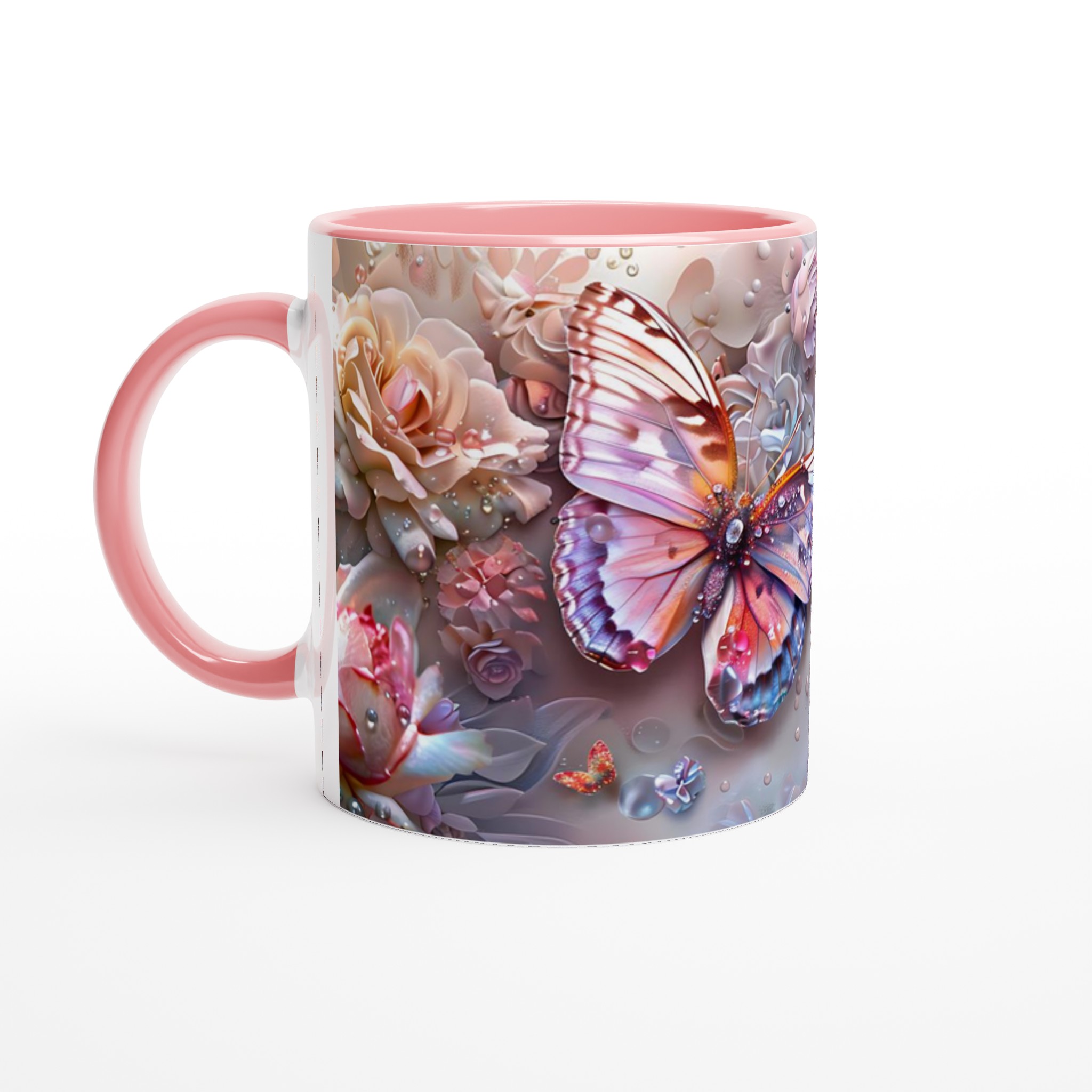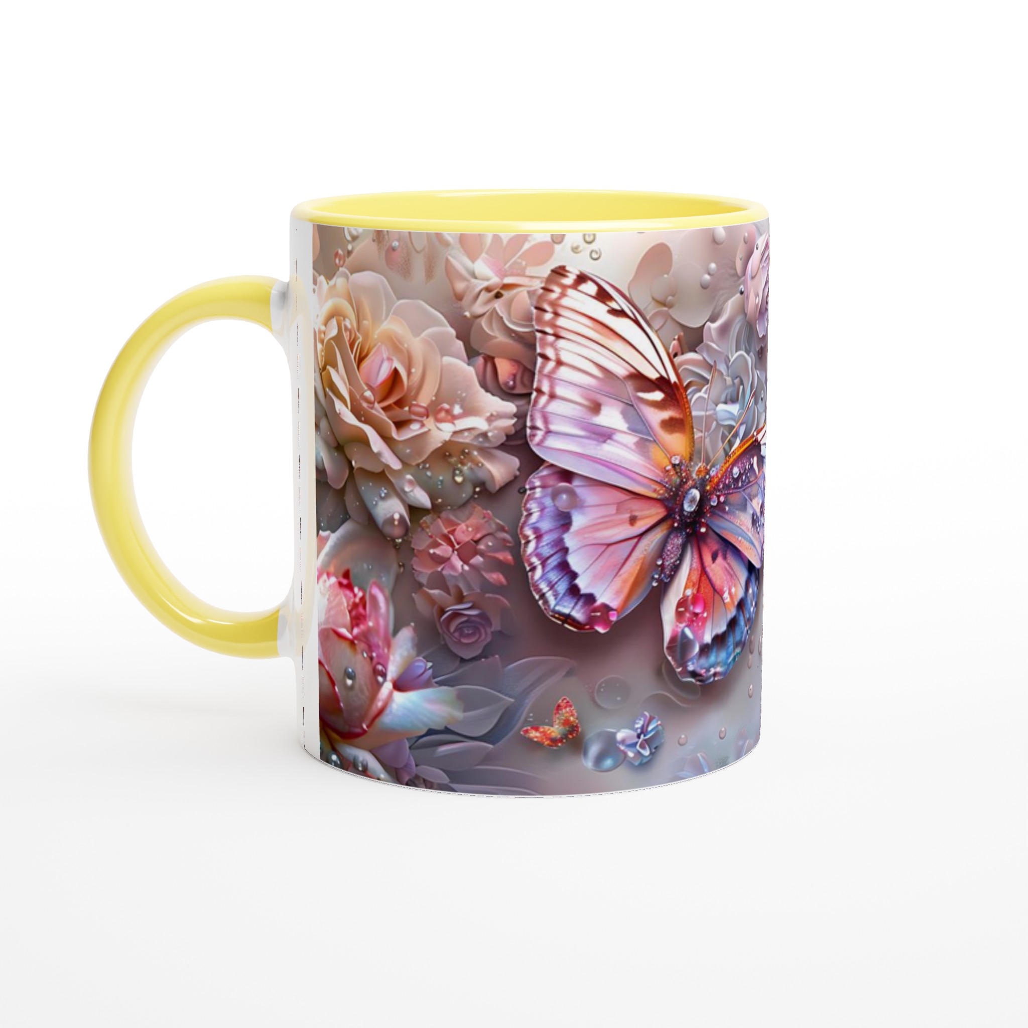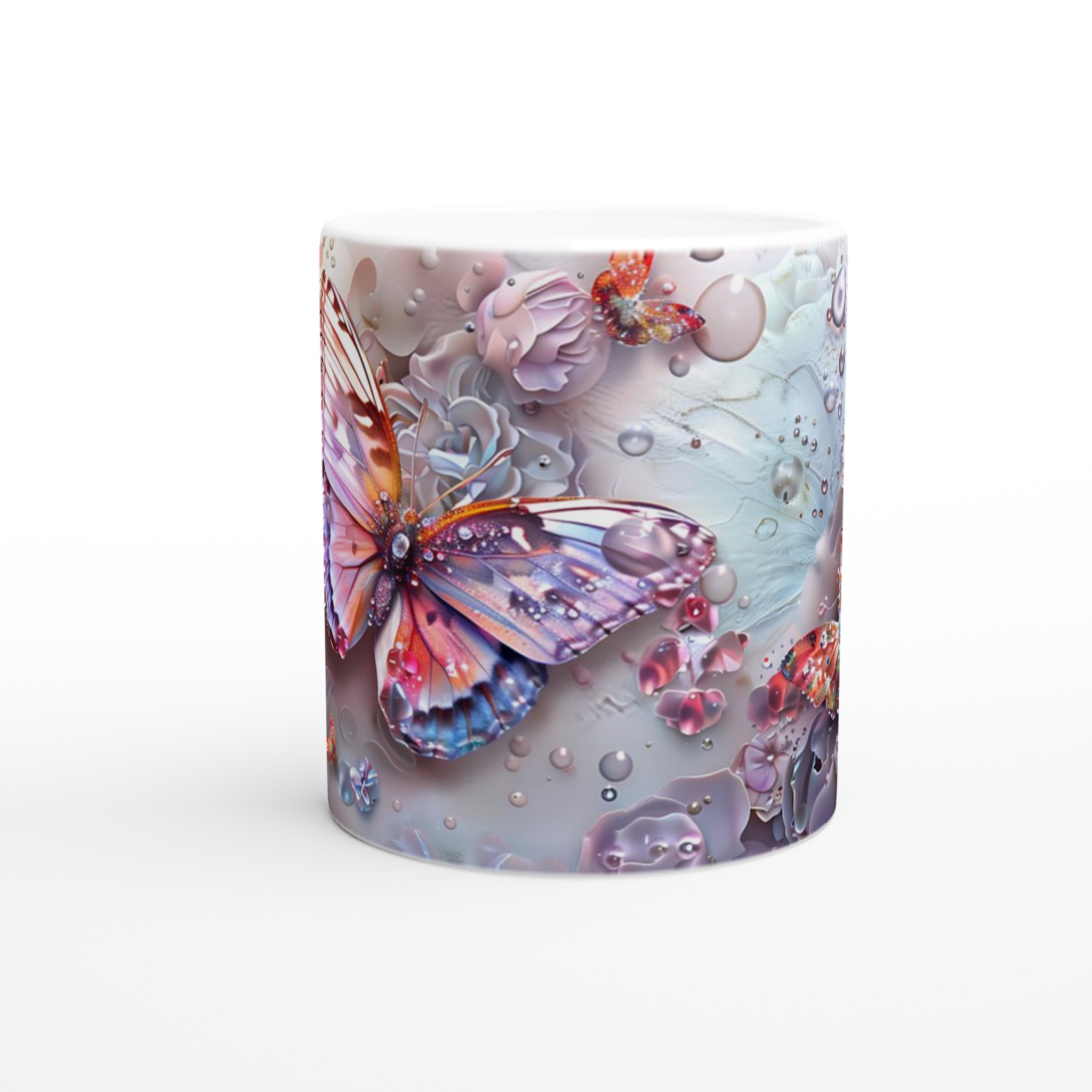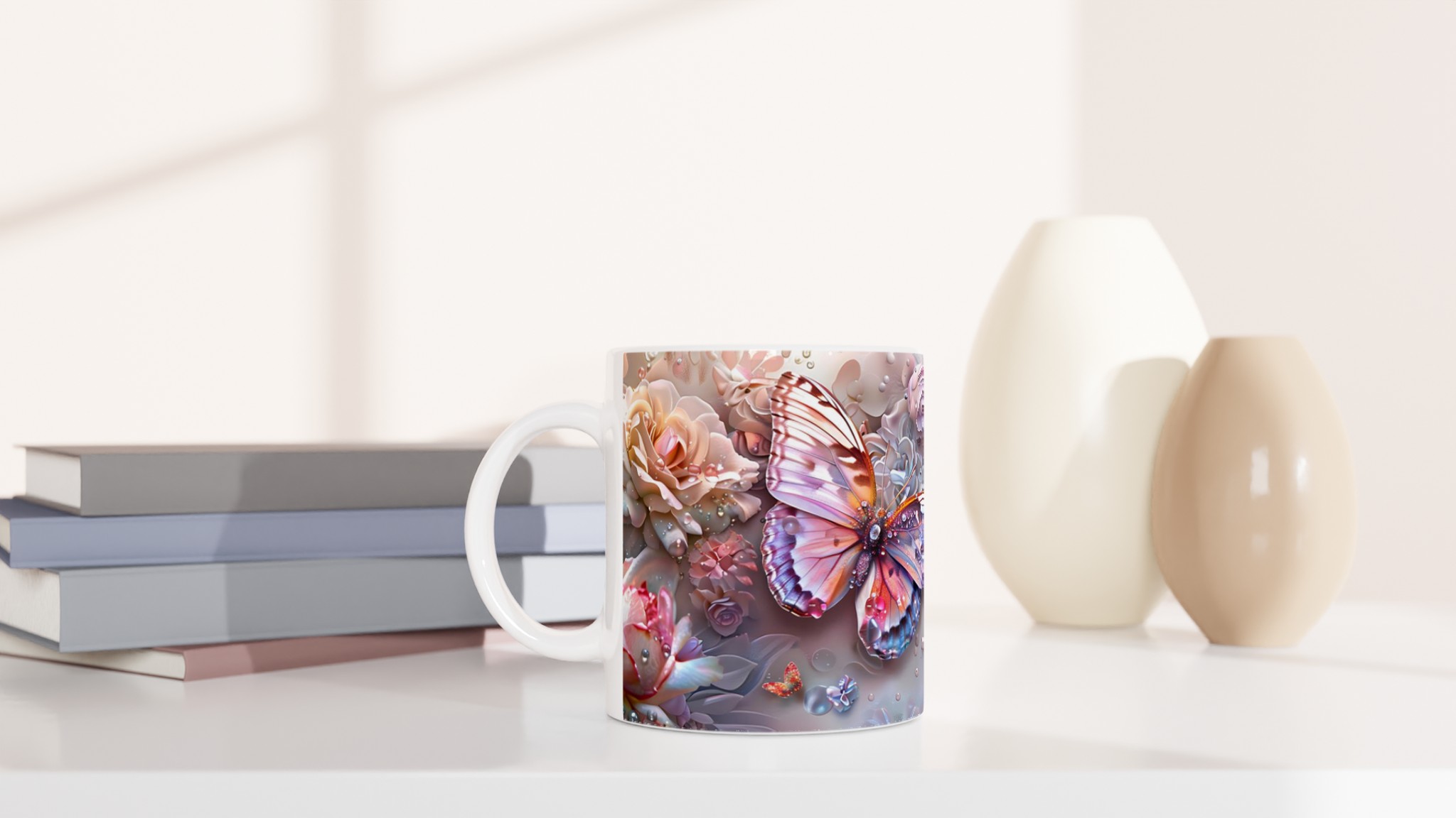 Låt varje klunk bli en stund av ren förtrollning med denna lyxiga keramiska mugg, inspirerad av en drömlik trädgård full av glittrande fjärilar och daggfriska rosor. Den här muggen är mer än bara en dryckesbehållare – den är en konstnärlig upplevelse som förvandlar ditt morgonkaffe eller kvällste till ett magiskt ögonblick. Den blanka ytan fångar ljuset vackert och låter de intrikata detaljerna framträda med en nästan eterisk lyster, vilket gör varje användning till en fröjd för ögat.