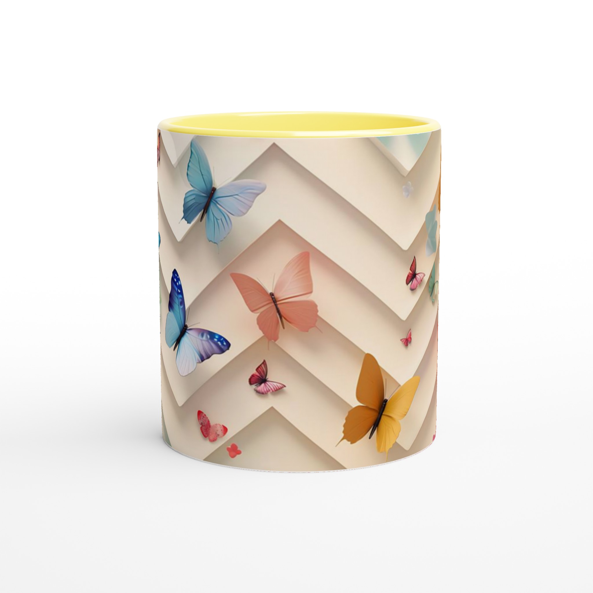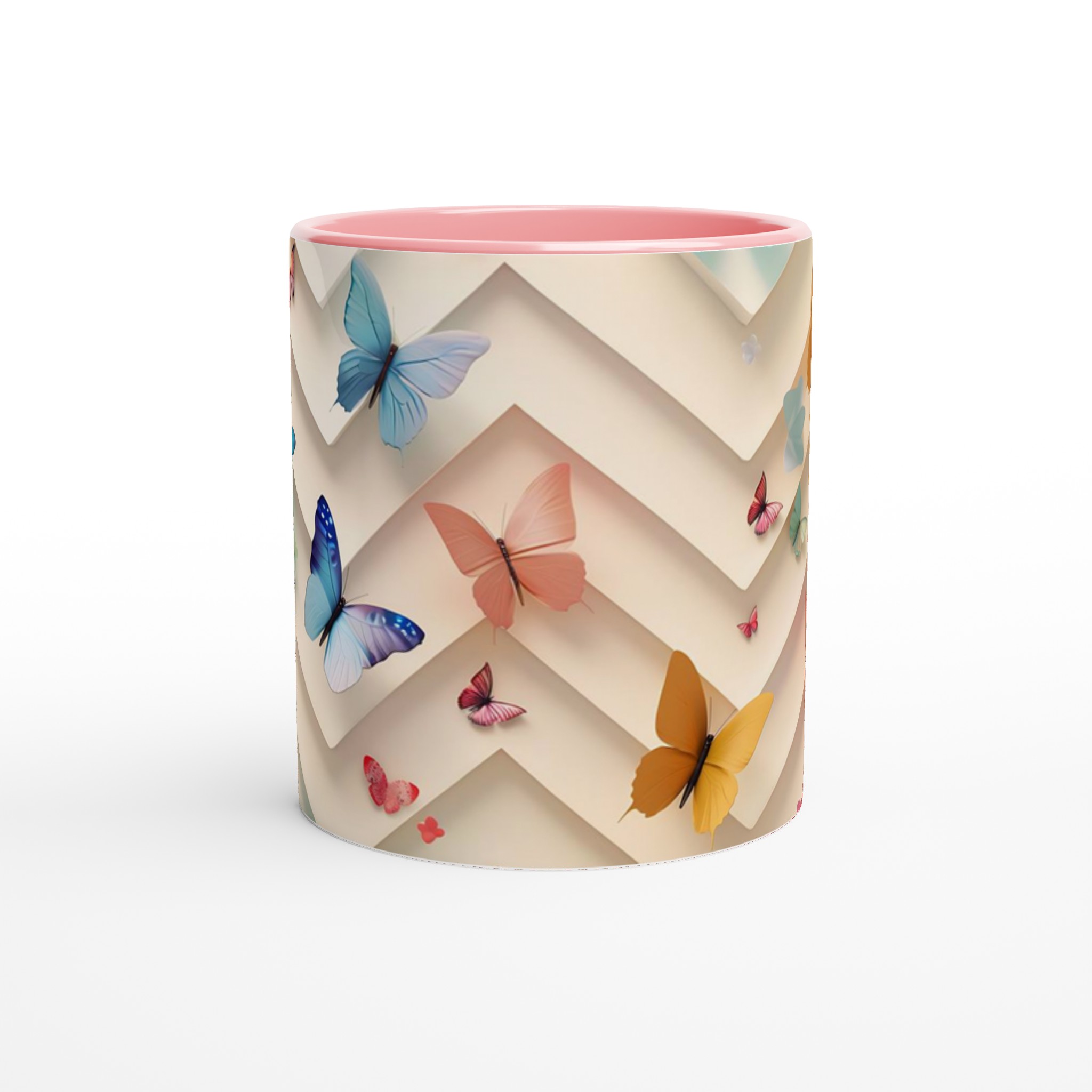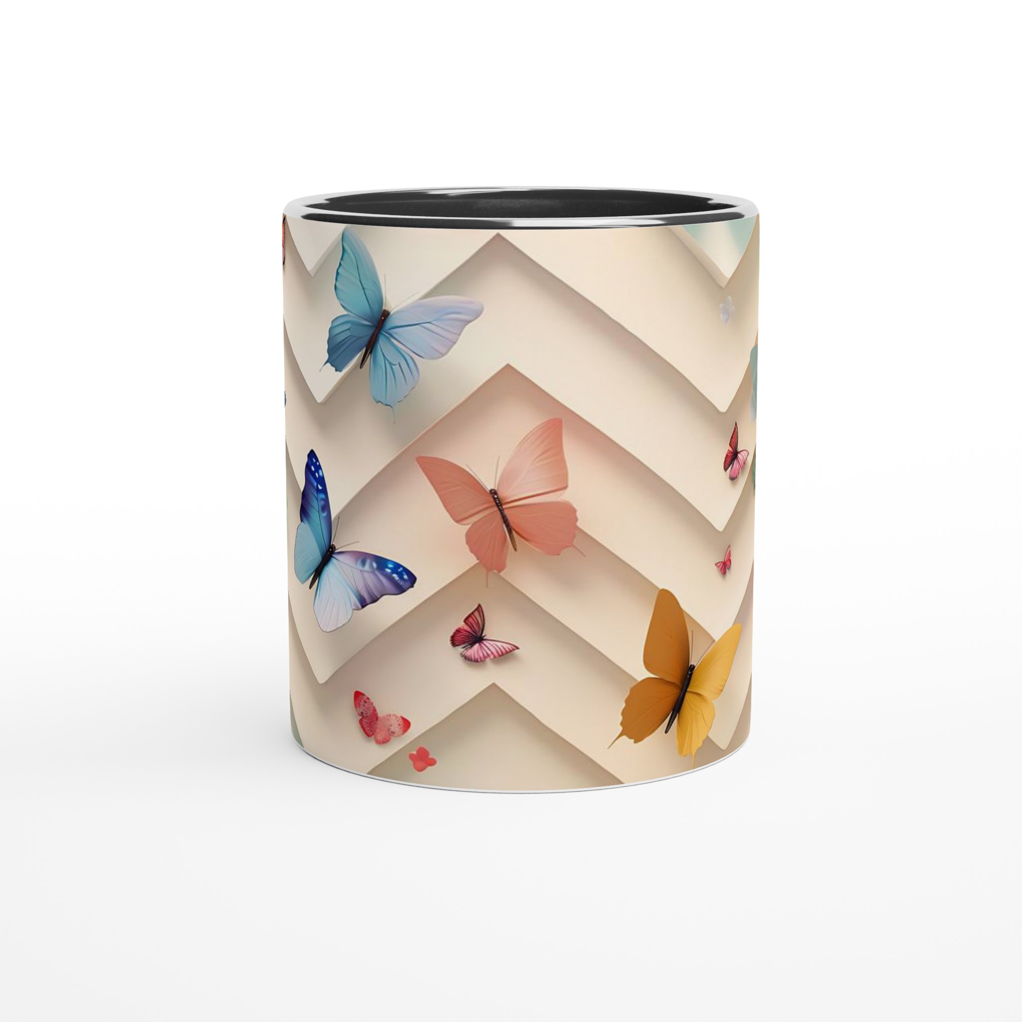 Låt varje klunk föra dig till en värld av lugn och färg med vår ”Fjärilsdrömmar” keramikmugg. Denna underbara mugg, prydd med en lekfull design av fjärilar i mjuka pastelltoner och livfulla kulörer mot en elegant, geometrisk bakgrund, är perfekt för att förgylla alla dagens stunder – vare sig det är morgonkaffet, en värmande kopp te eller en härlig varm choklad.