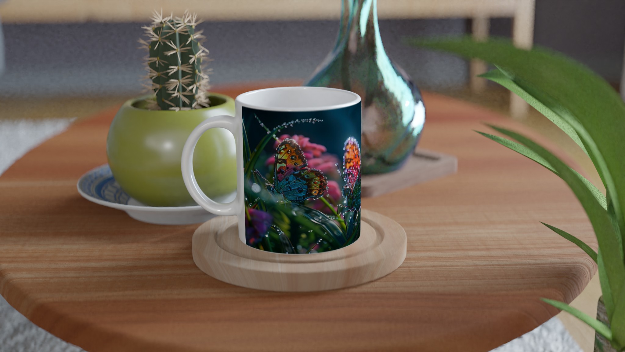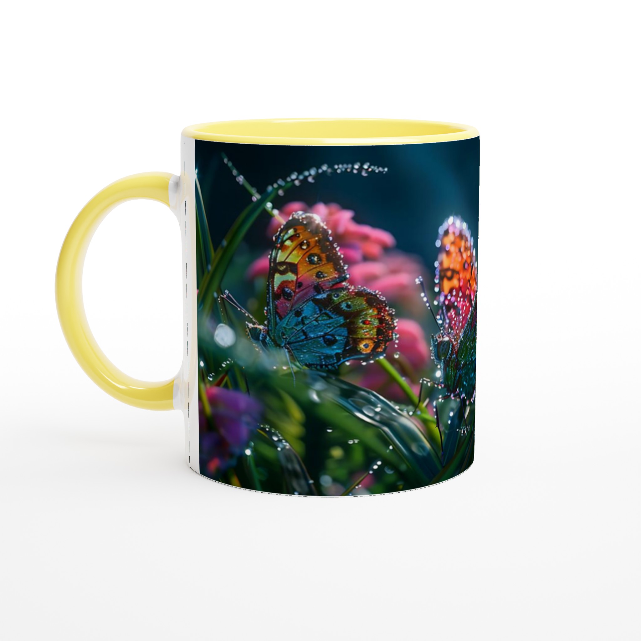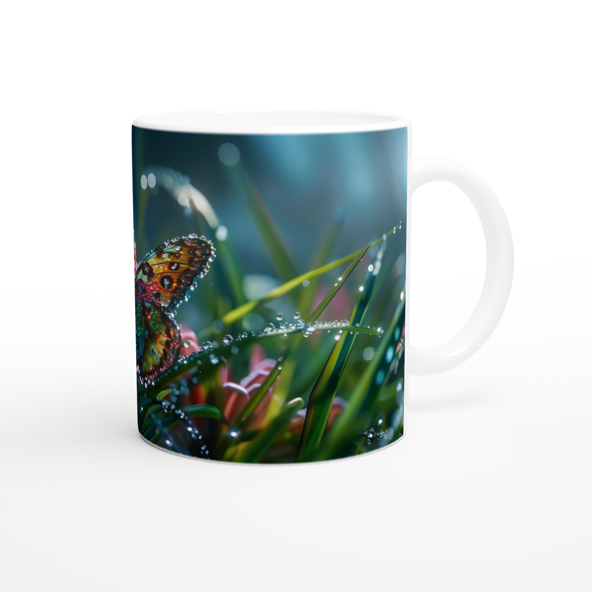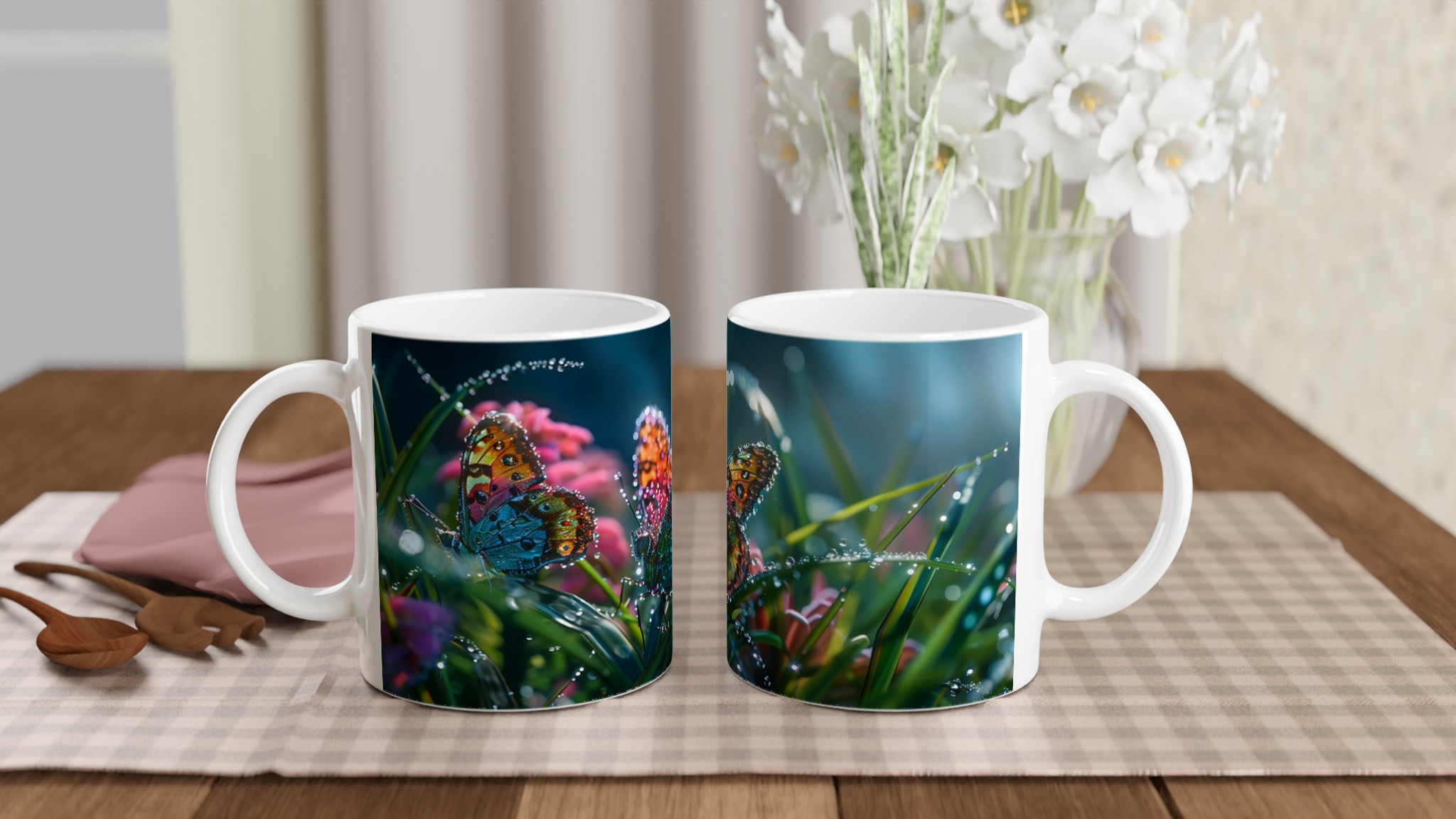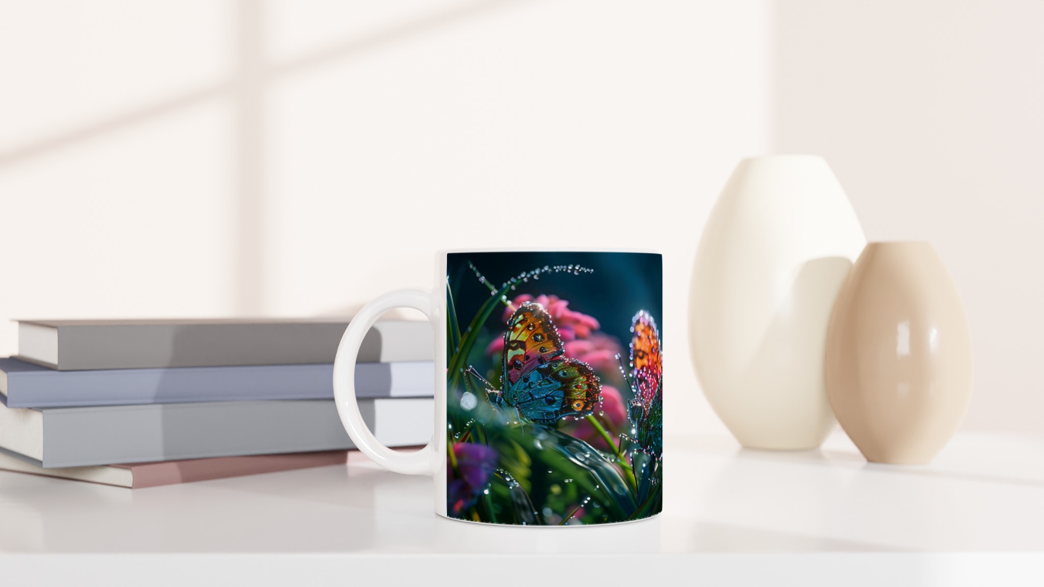 Den här stilrena keramiska muggen blir snabbt en vardagsfavorit. Perfekt för morgonkaffet, kvällens varma choklad eller när du bara vill njuta av en kopp te. Den blanka vita ytan gör att trycken framhävs med klara och levande färger, som håller sig fina även efter många turer i mikron och diskmaskinen. Välj bland en palett av lugnande och energigivande färger som speglar den skönhet du vill omge dig med: från den krispiga Ceramic White till de djupa tonerna av Ceramic Blue eller de livfulla nyanserna av Ceramic Red, Yellow, Pink, Green och Black. Varje färgval förstärker fjärilsmotivets intrikata detaljer på sitt unika sätt.