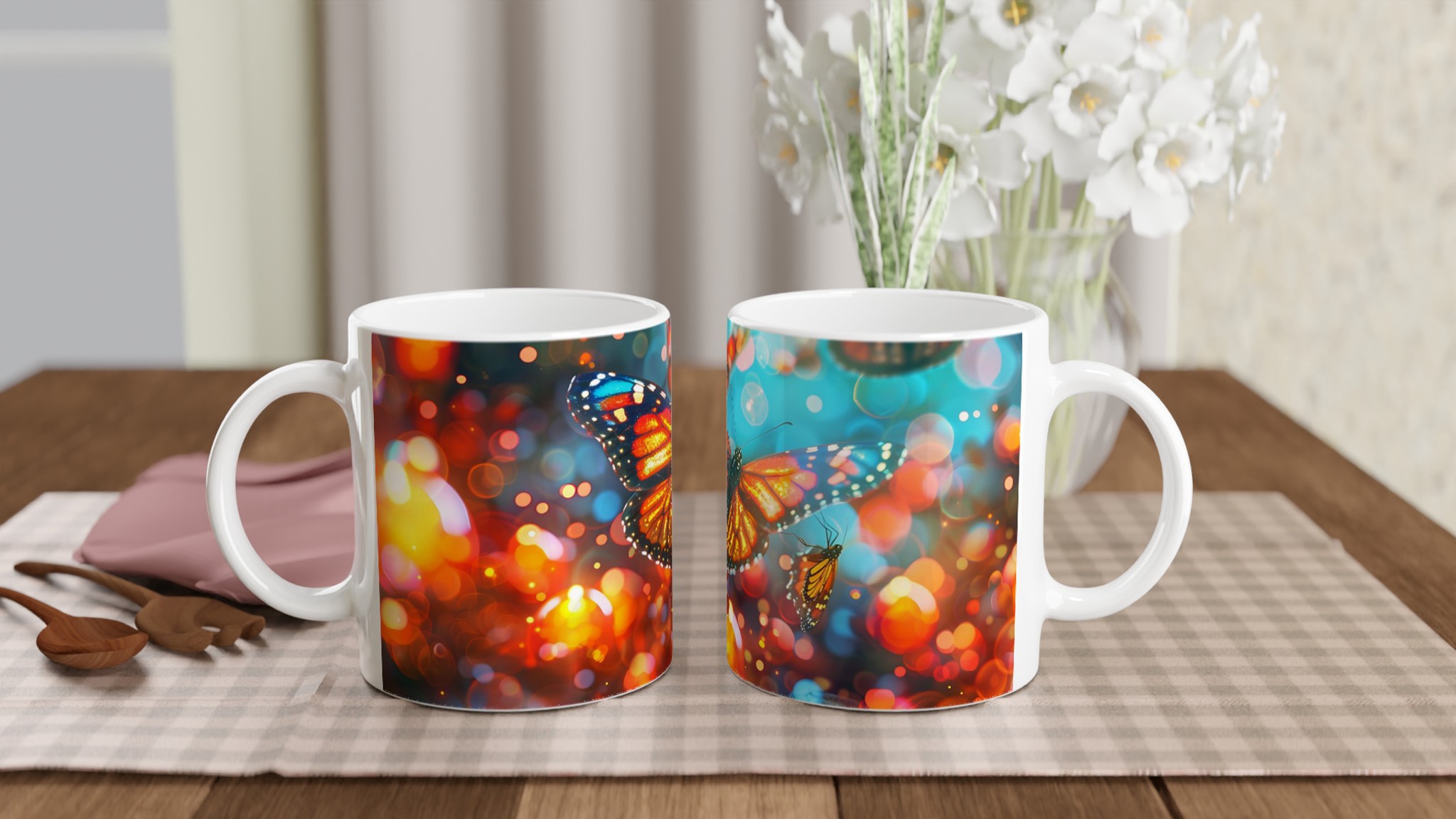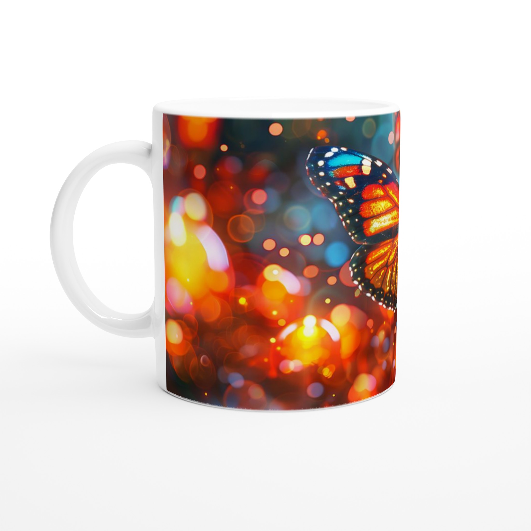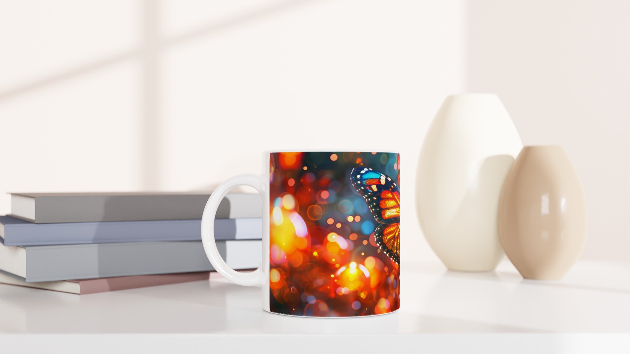 Fånga magin i ett ögonblick av skönhet med vår ”Fjärilsdrömmar” keramiska mugg. Varje klunk blir en flykt till en förtrollad trädgård, med det drömska motivet av skimrande fjärilar mot en bakgrund av glittrande bokeh-ljus. Denna stilrena mugg blir snabbt en vardagsfavorit, perfekt för morgonkaffet, kvällens varma choklad eller när du bara vill njuta av en kopp te.