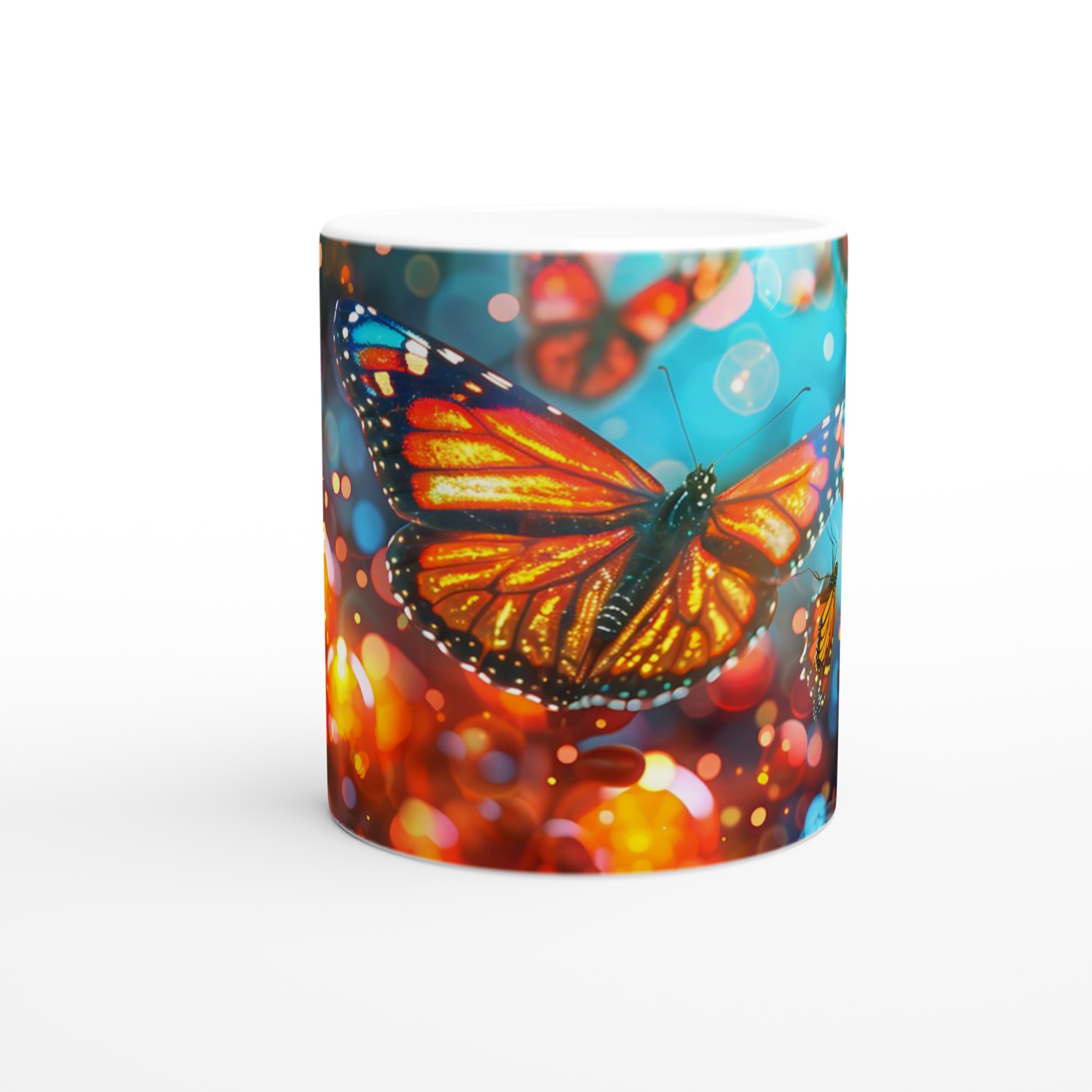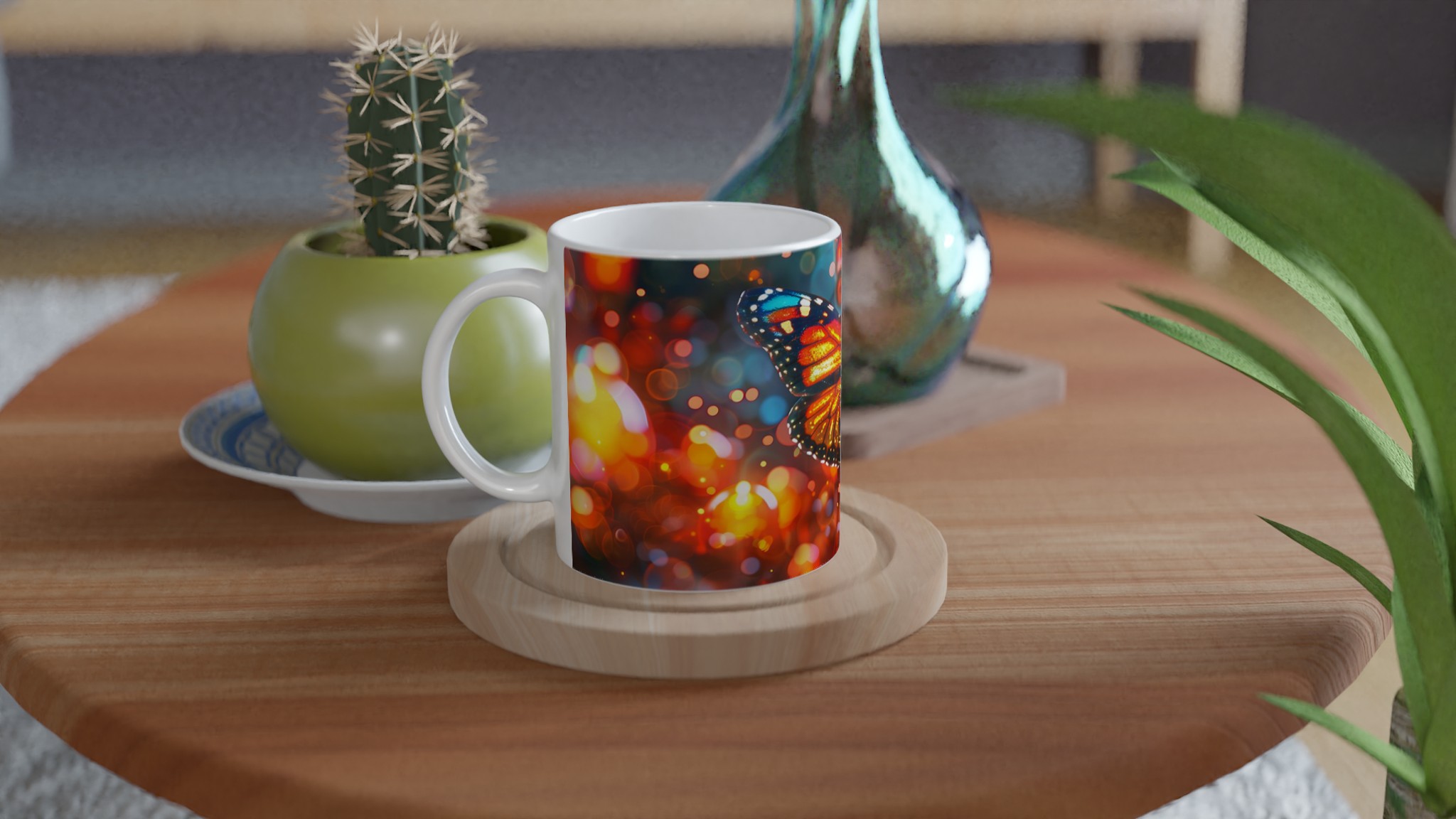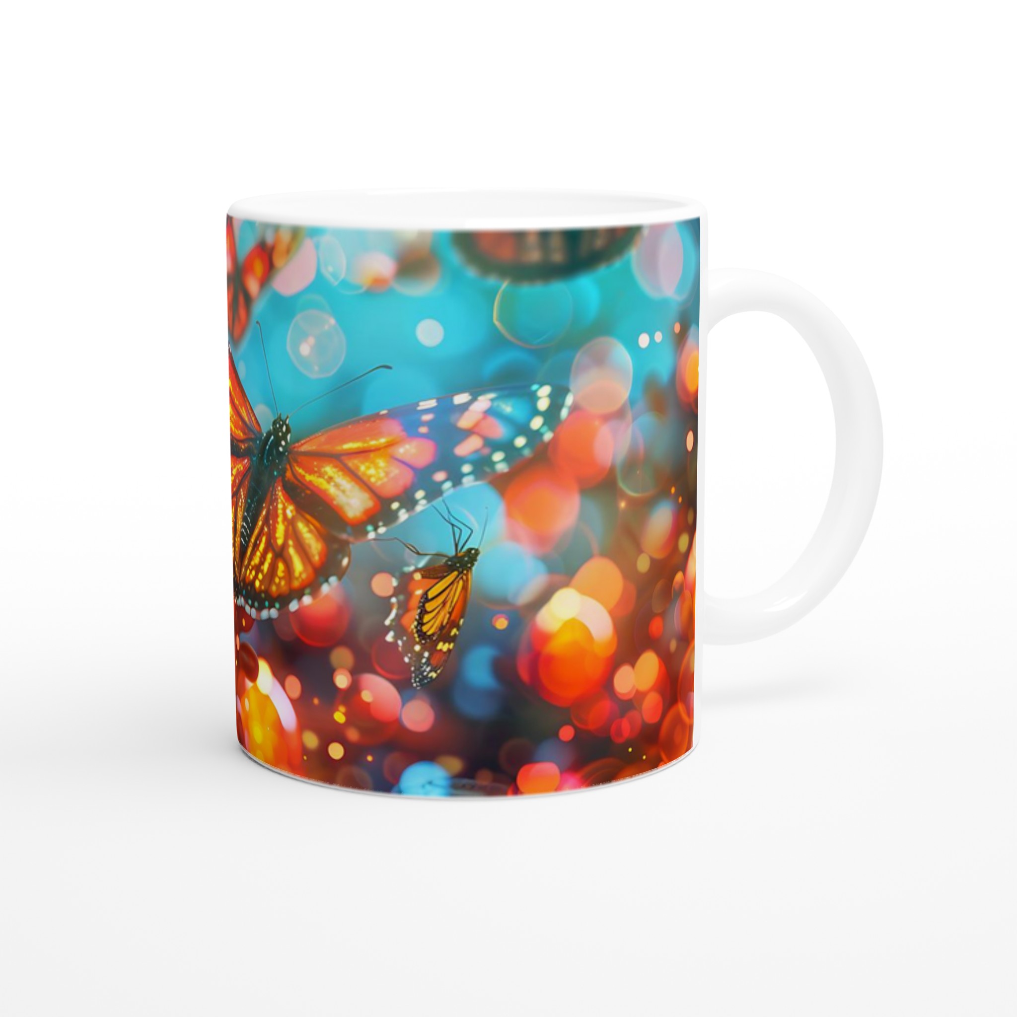 Fånga magin i ett ögonblick av skönhet med vår ”Fjärilsdrömmar” keramiska mugg. Varje klunk blir en flykt till en förtrollad trädgård, med det drömska motivet av skimrande fjärilar mot en bakgrund av glittrande bokeh-ljus. Denna stilrena mugg blir snabbt en vardagsfavorit, perfekt för morgonkaffet, kvällens varma choklad eller när du bara vill njuta av en kopp te.