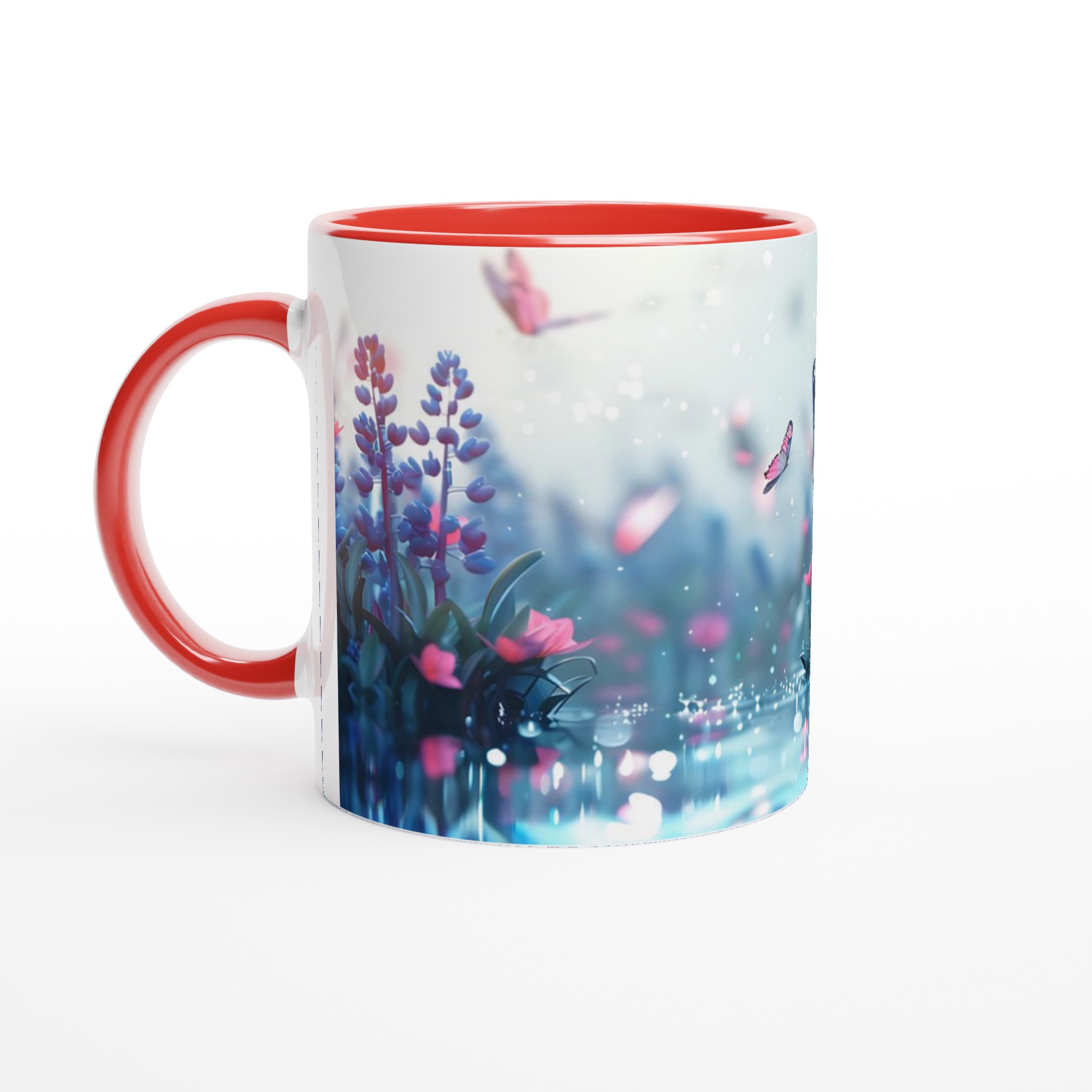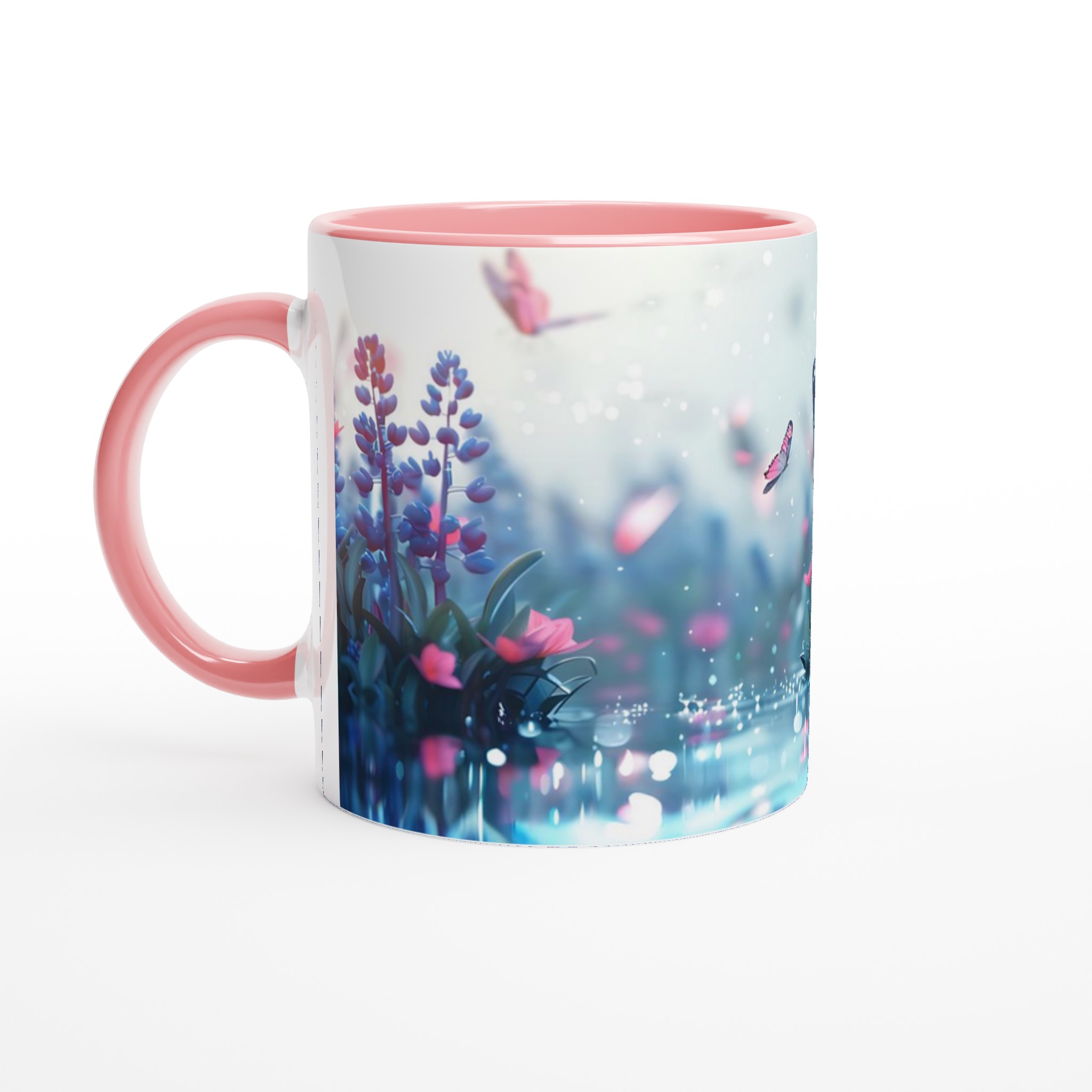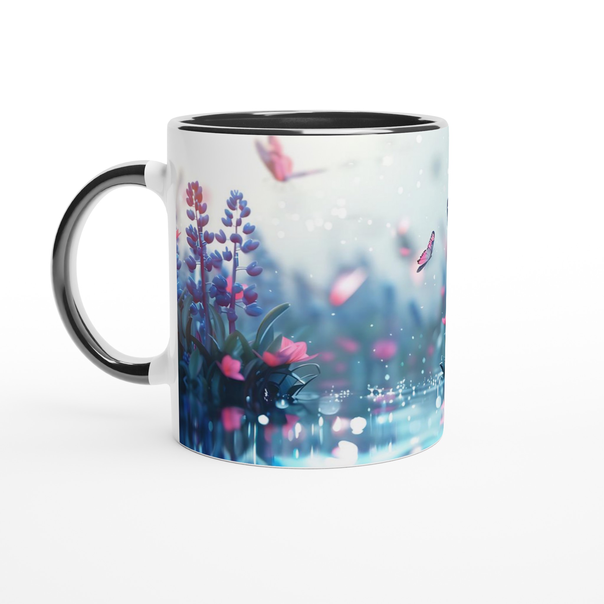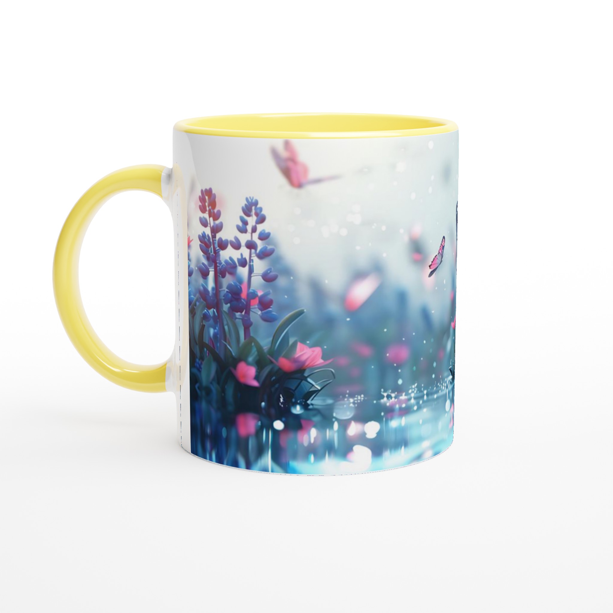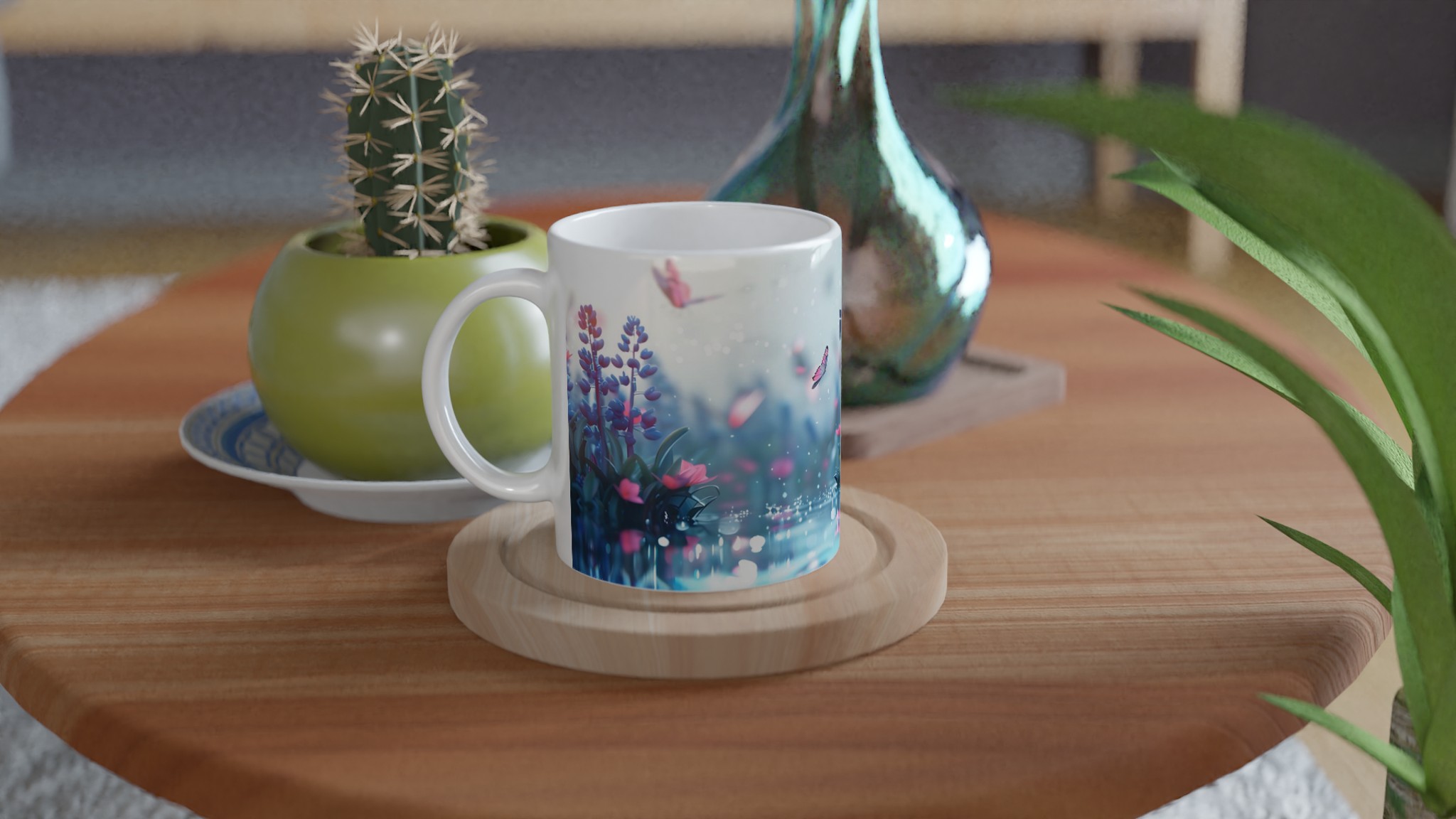 Vakna upp till en trädgård av drömmar med vår ”Fjärilsdrömmar” keramiska mugg. Låt de eteriska fjärilarna och de vibrerande blommorna på denna mugg föra dig till en fridfull oas varje morgon. Denna stilrena keramiska mugg blir snabbt en vardagsfavorit. Perfekt för morgonkaffet, kvällens varma choklad eller när du bara vill njuta av en kopp te. Den blanka vita ytan gör att trycken framhävs med klara och levande färger, som håller sig fina även efter många turer i mikron och diskmaskinen.