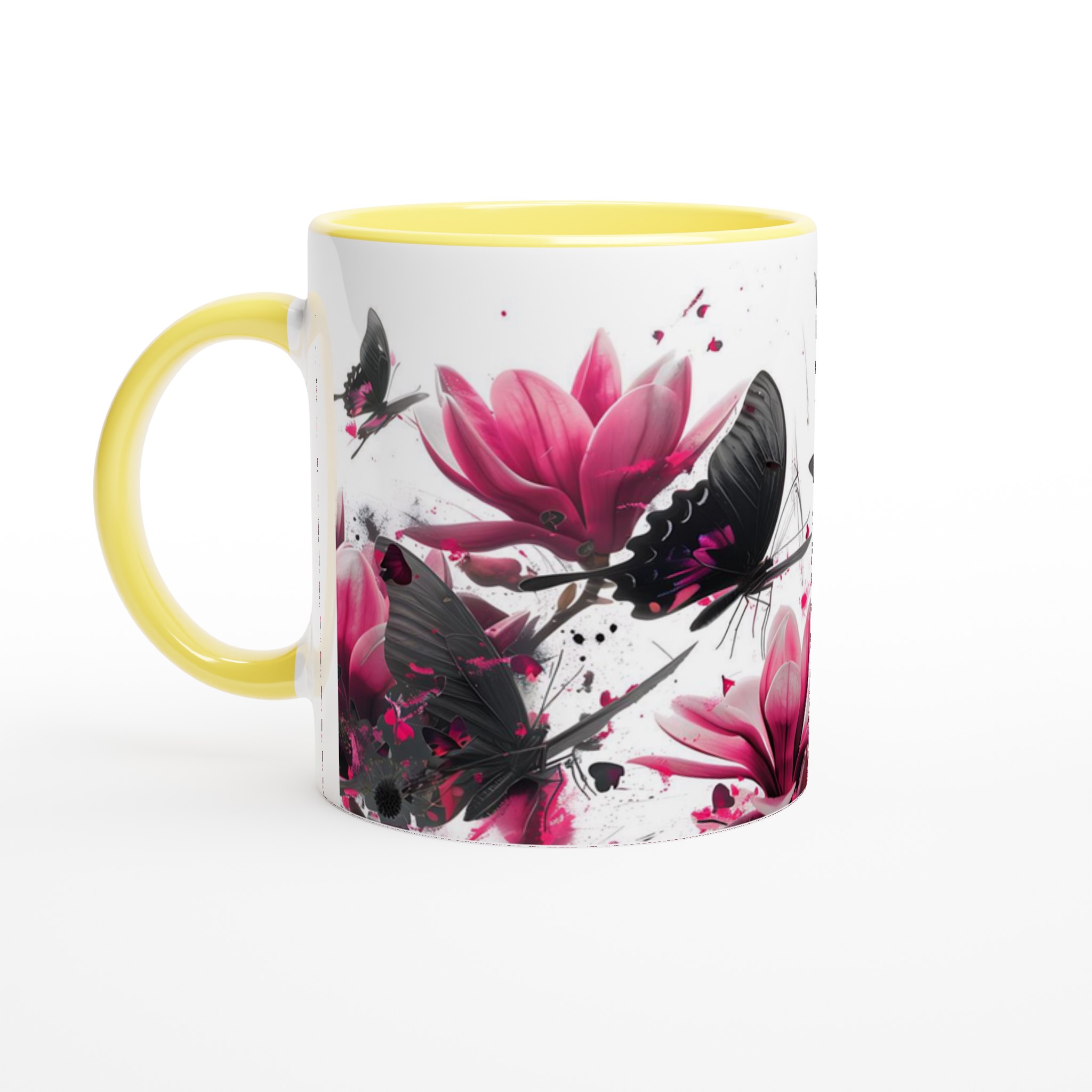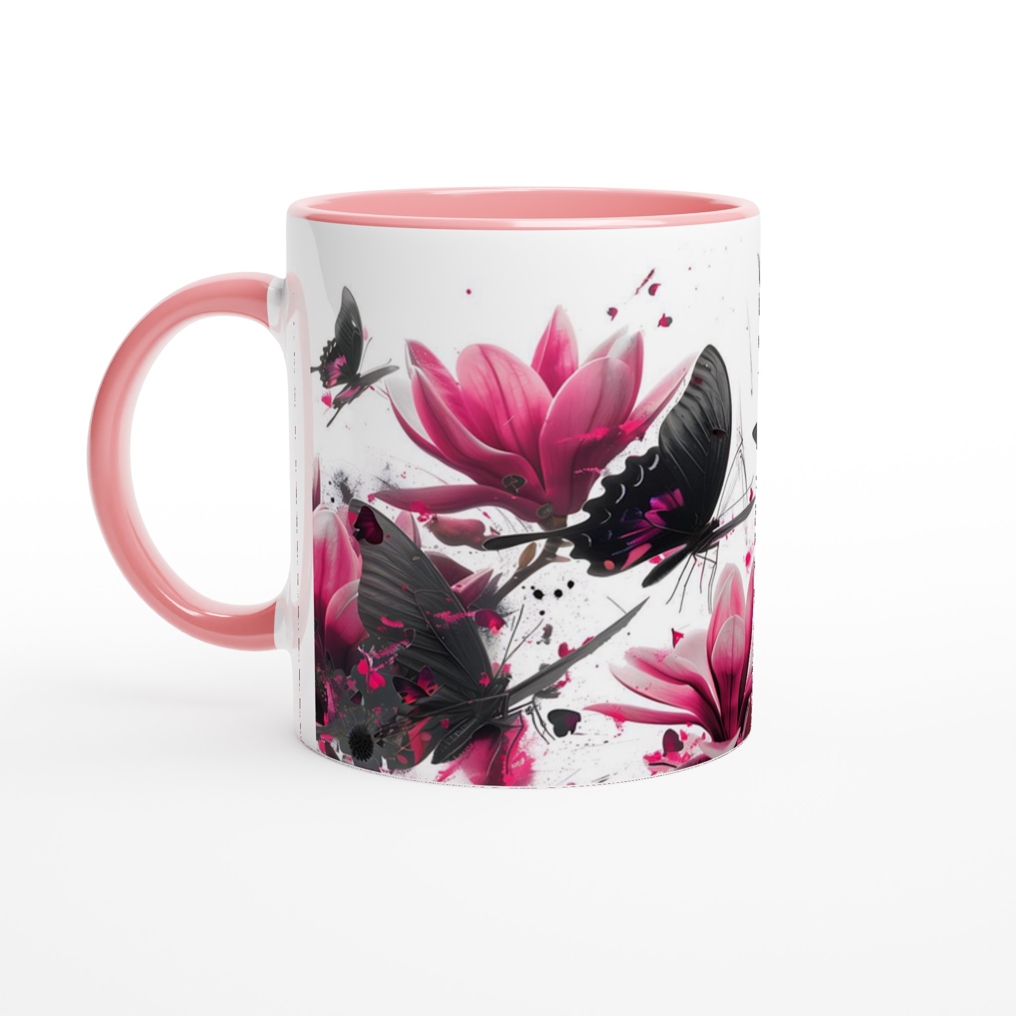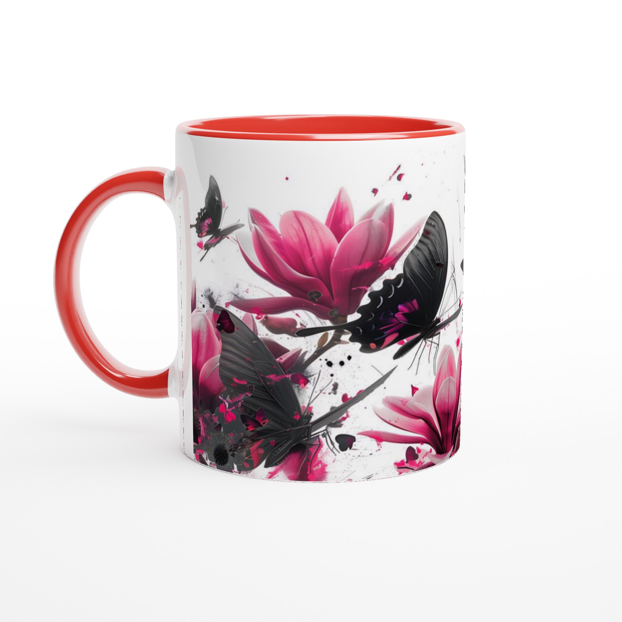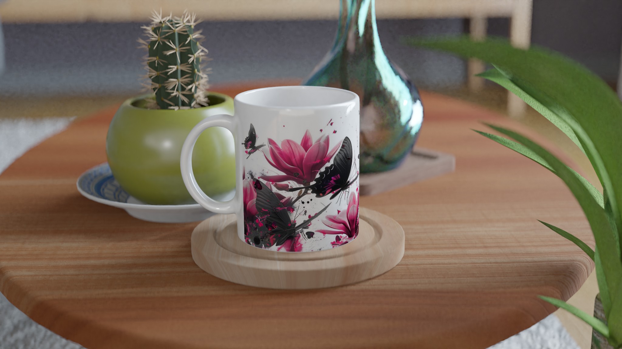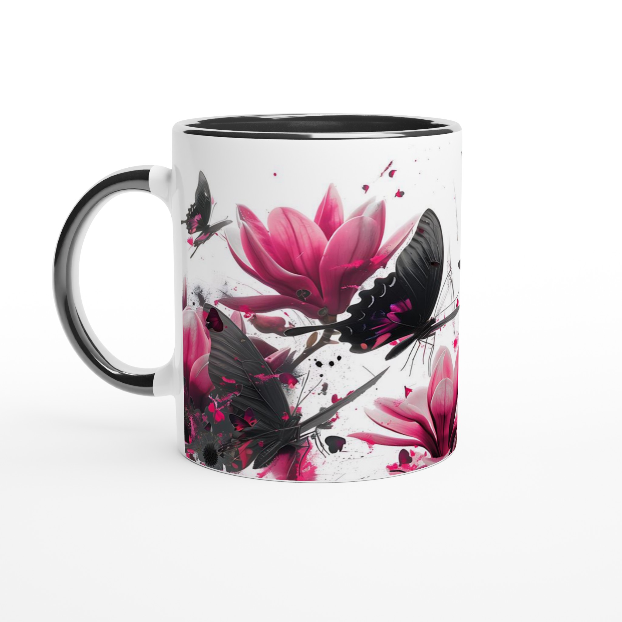 Fånga naturens skönhet och konstens dramatik med vår ”Fjärilsmagi” keramiska mugg. Varje klunk blir en upplevelse när du omfamnas av den fängslande designen med svarta fjärilar och levande ceriseblommor, accentuerade med konstfulla stänk. Denna mugg är inte bara en behållare för din favoritdryck, den är en hyllning till det vackra och oväntade.