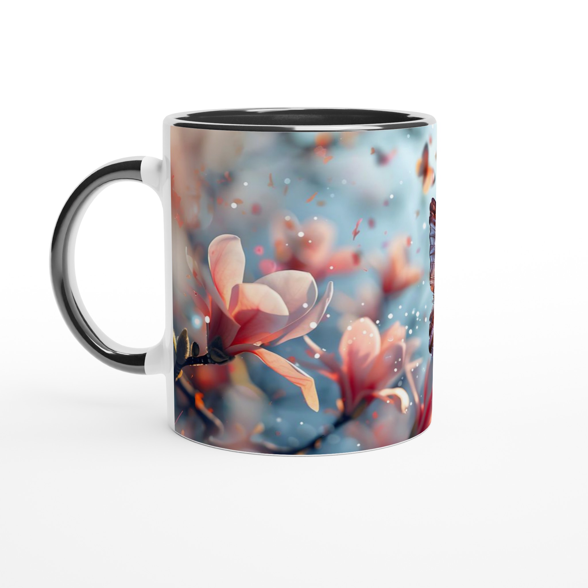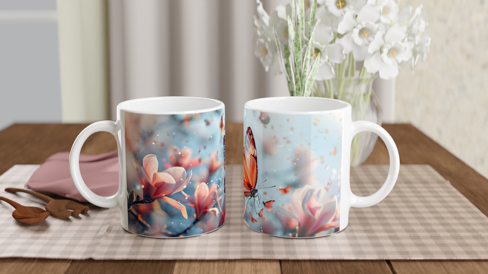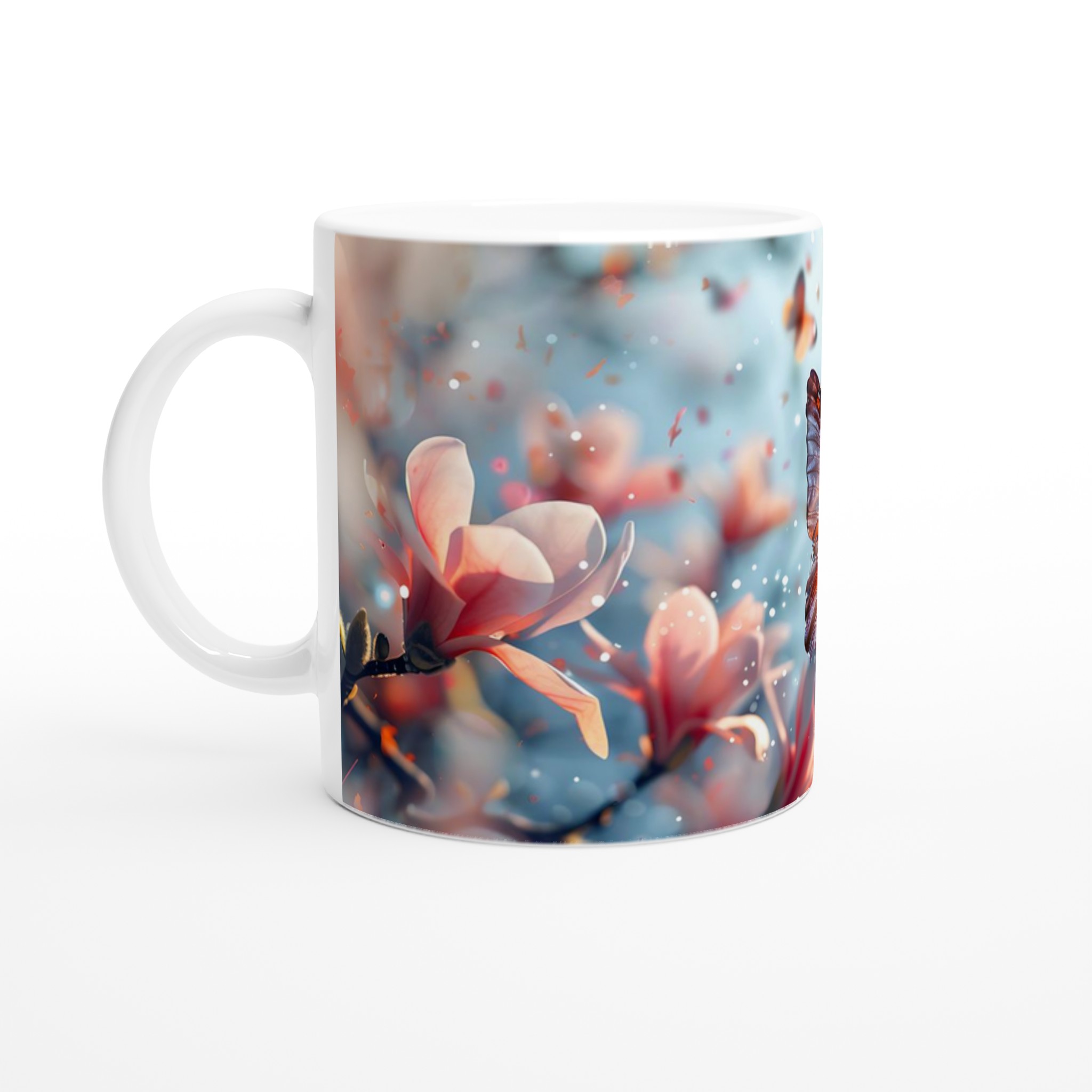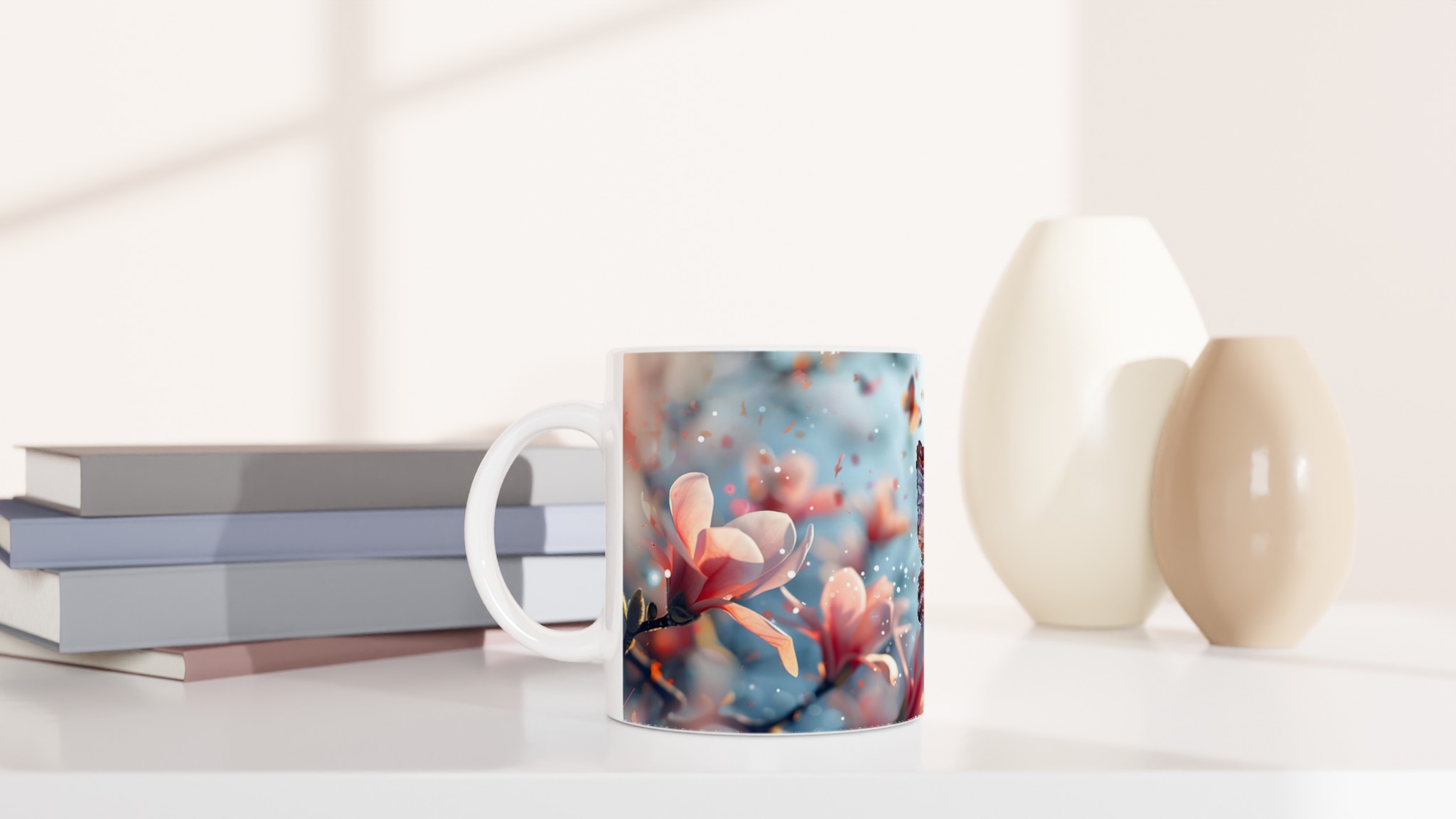 Fånga vårens och sommarens ljuvliga känsla med vår Fjärilsmagi Keramisk Mugg. Inspirerad av bilden som utstrålar en lugn och drömsk atmosfär med rosa magnoliablommor, flygande fjärilar och mjukt ljus, är denna mugg mer än bara en kopp – den är en inbjudan till lugn och skönhet i din vardag. Perfekt för morgonkaffet, kvällens varma choklad eller när du bara vill njuta av en kopp te.