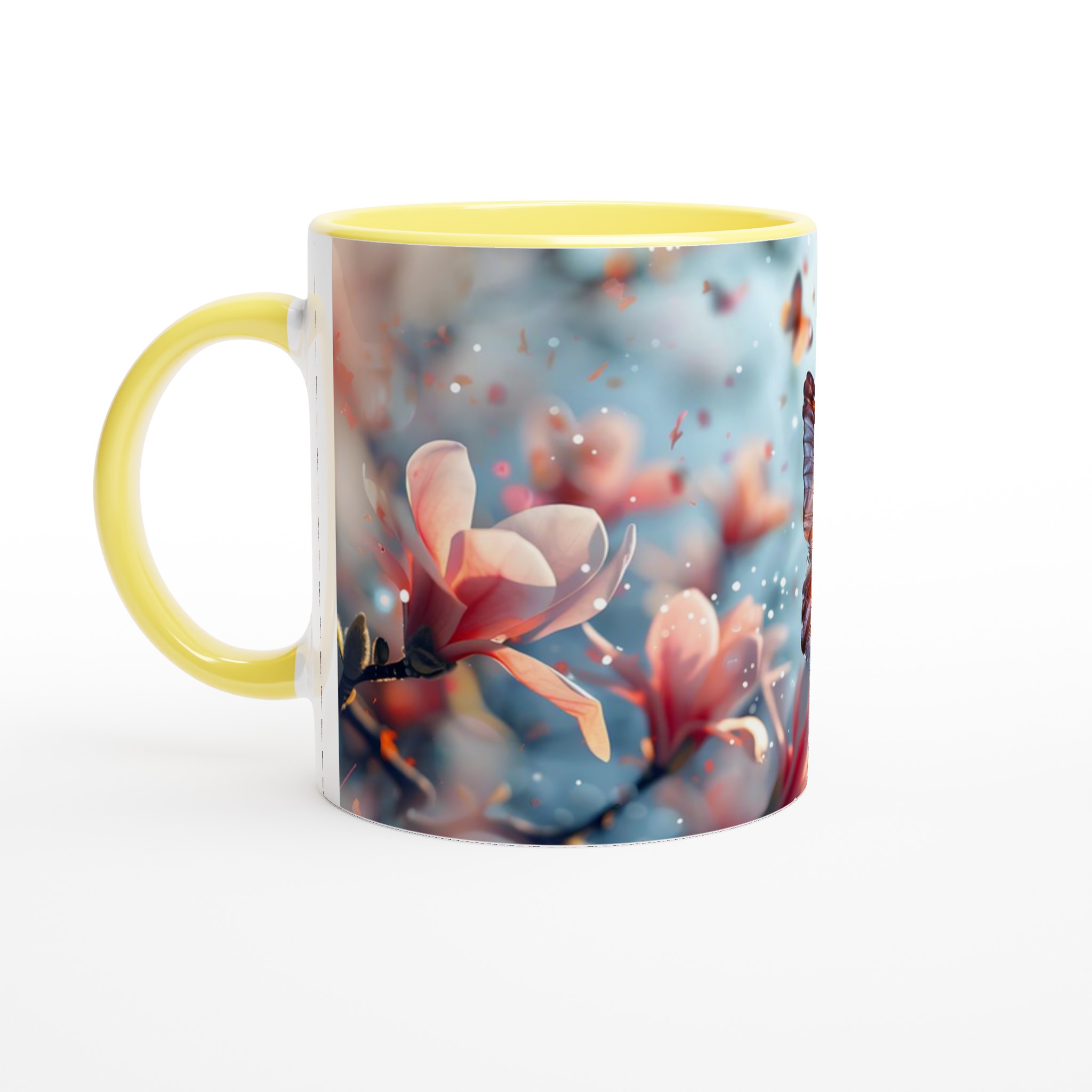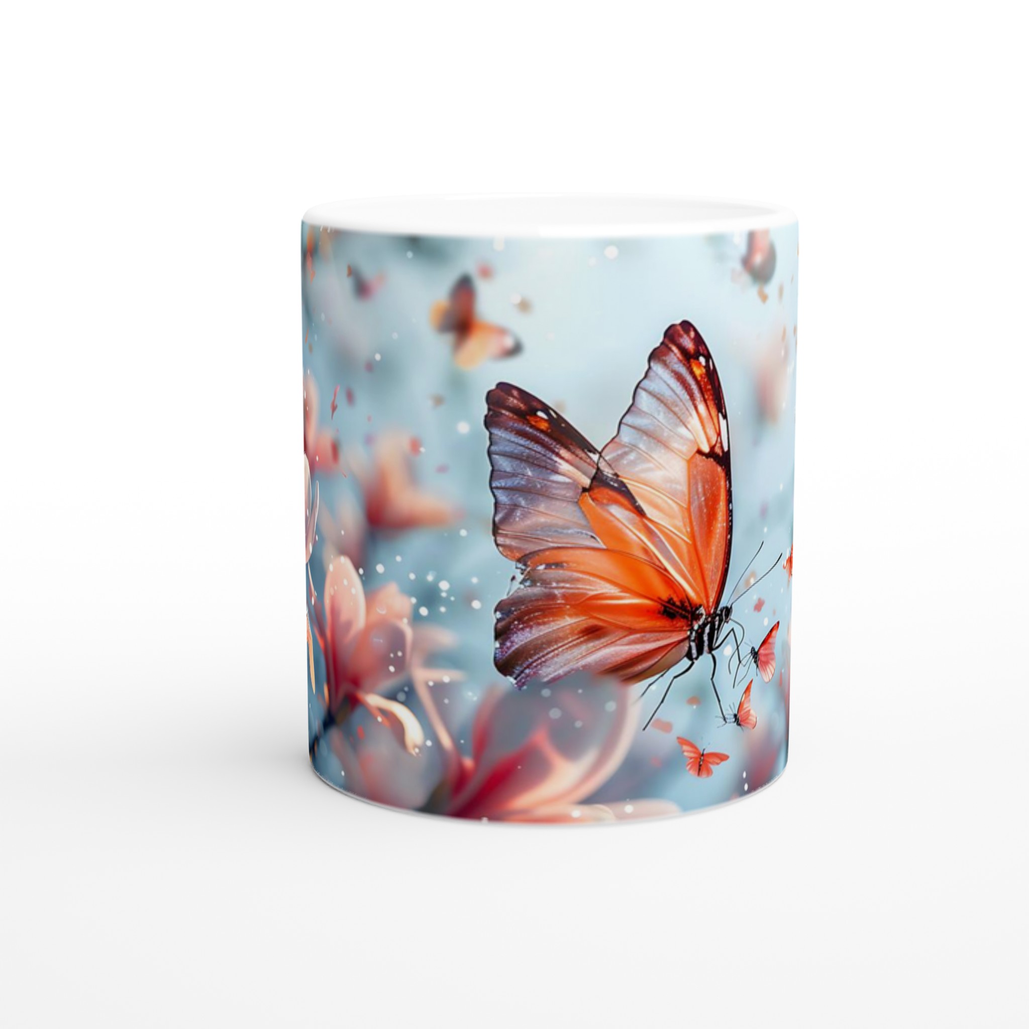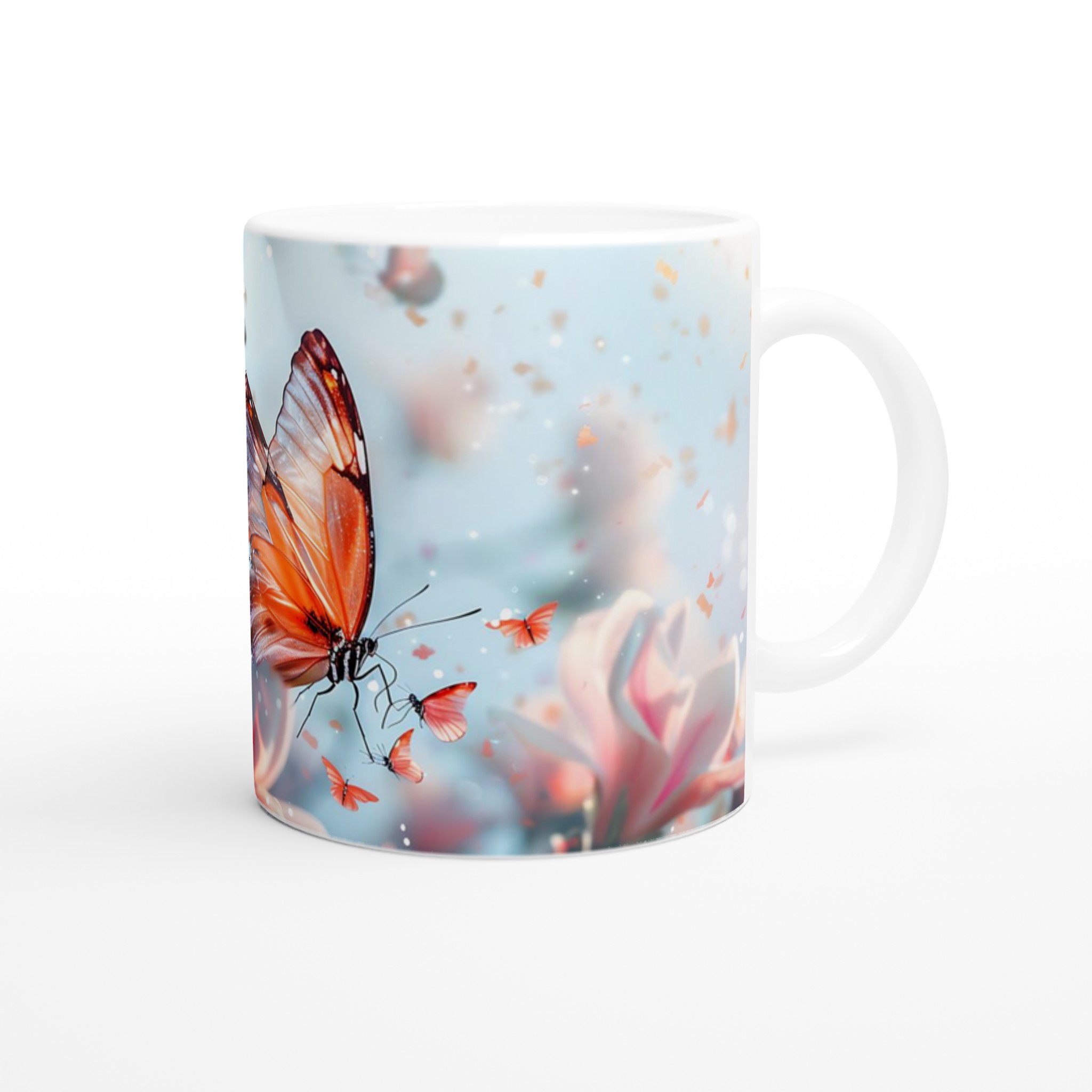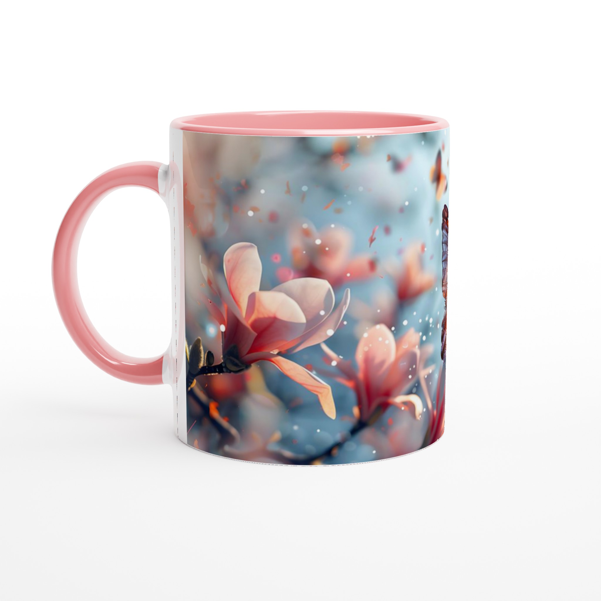 Fånga vårens och sommarens ljuvliga känsla med vår Fjärilsmagi Keramisk Mugg. Inspirerad av bilden som utstrålar en lugn och drömsk atmosfär med rosa magnoliablommor, flygande fjärilar och mjukt ljus, är denna mugg mer än bara en kopp – den är en inbjudan till lugn och skönhet i din vardag. Perfekt för morgonkaffet, kvällens varma choklad eller när du bara vill njuta av en kopp te.