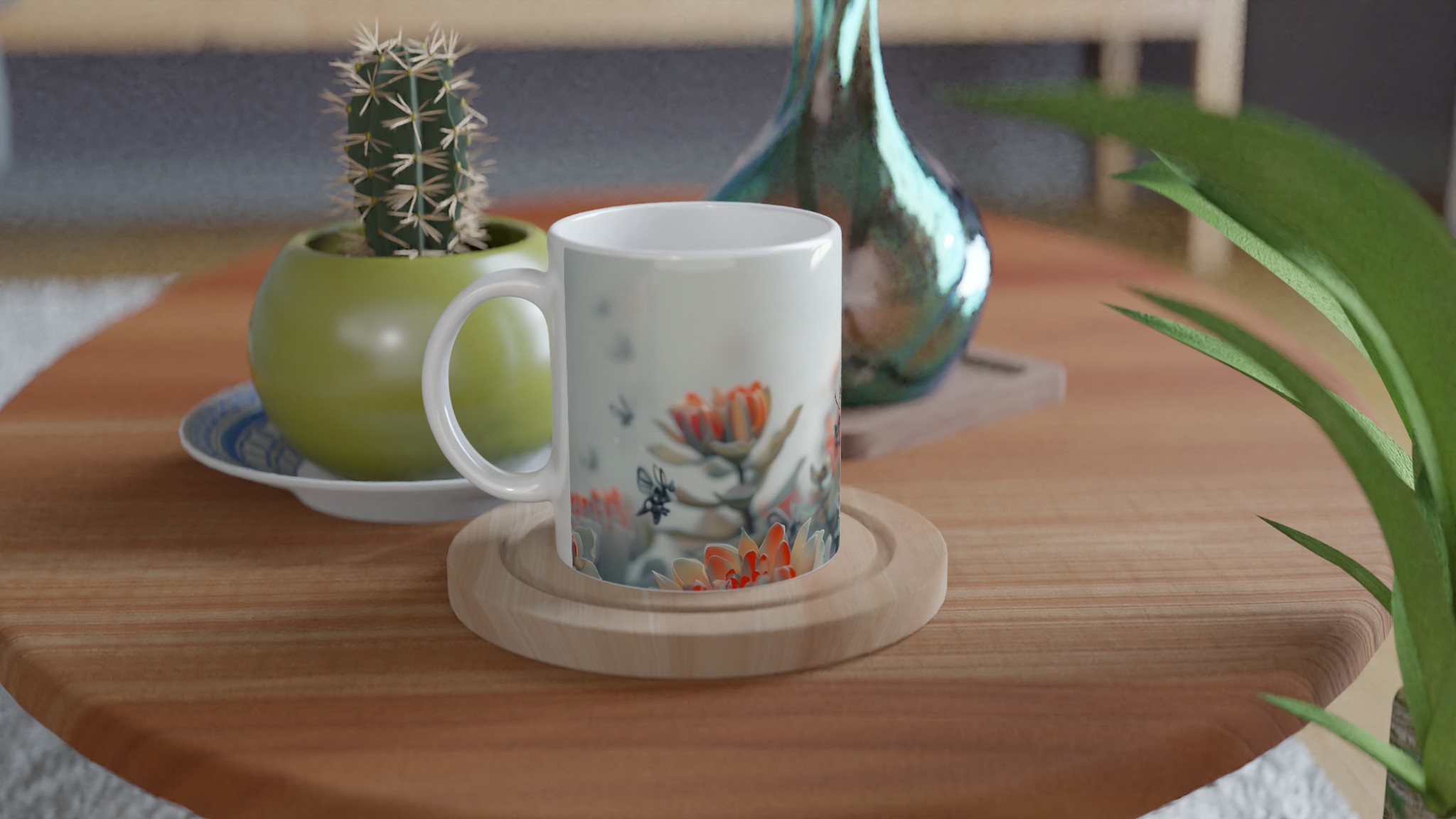 Klassisk keramikmugg, 11 oz, för din dagliga dos av skönhet.