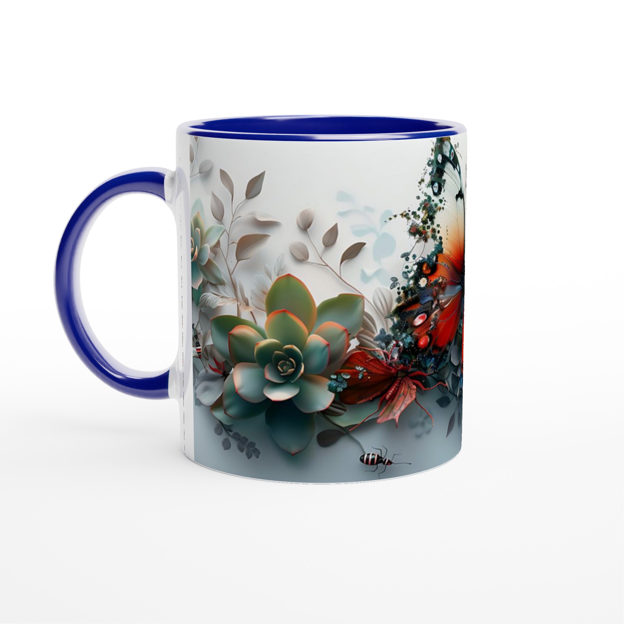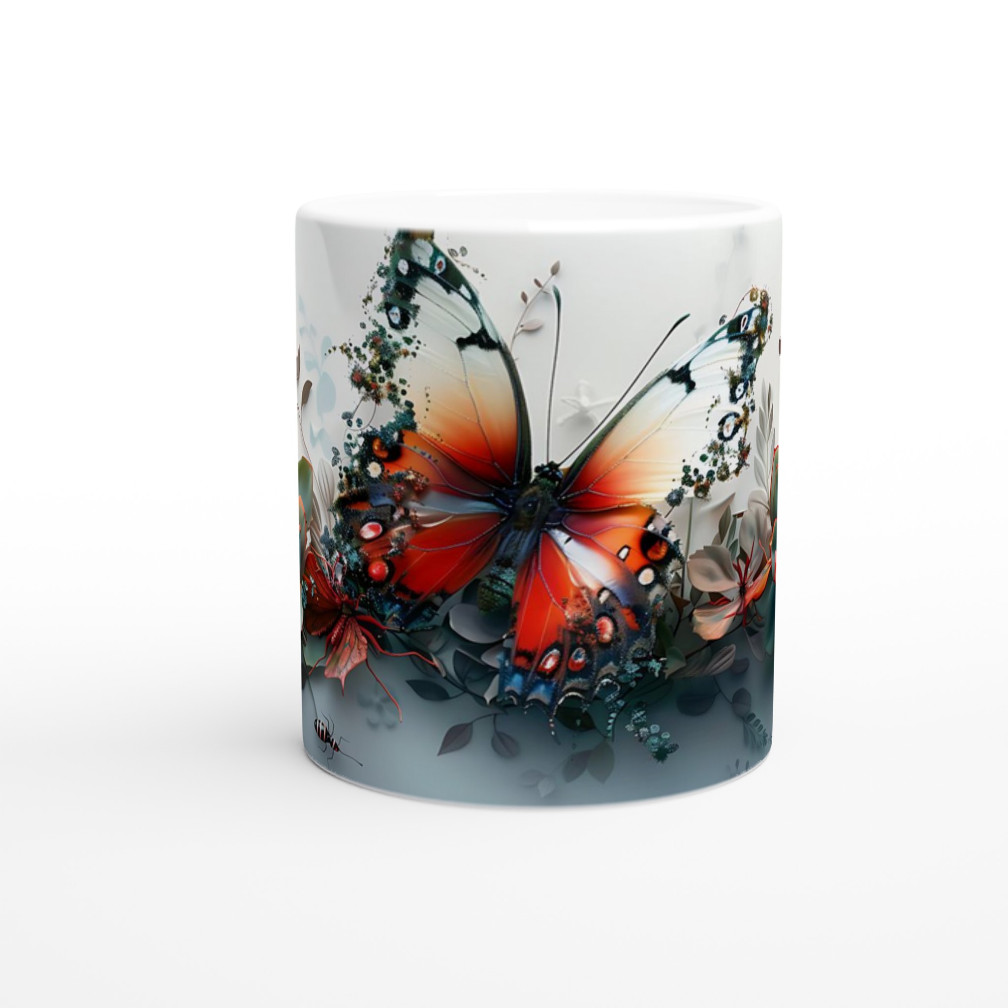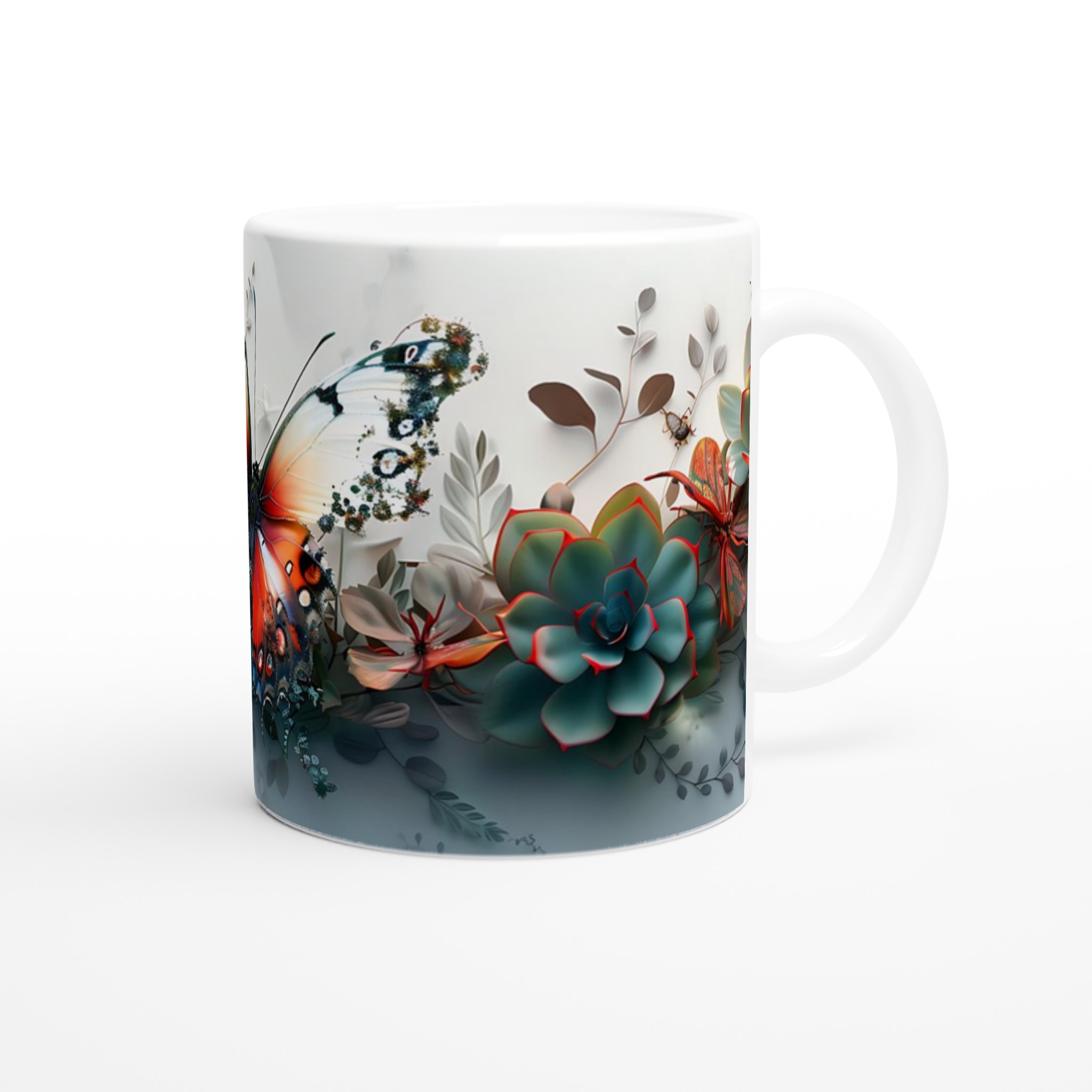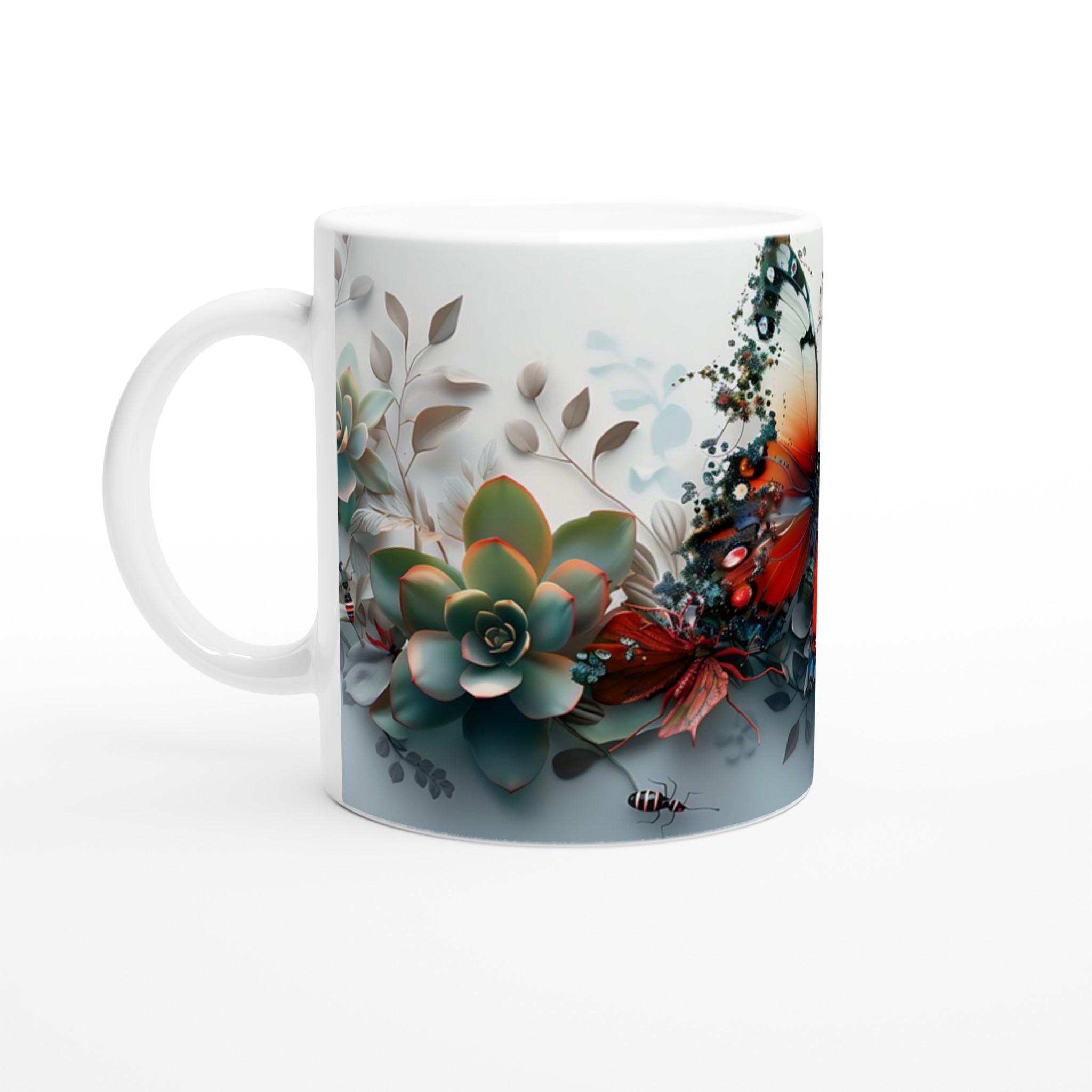 Låt din morgonrutin blomstra med vår unika keramiska mugg, prydd med ett förtrollande fjärilsparadis. Denna mugg är mer än bara ett kärl för din favoritdryck; den är en konstnärlig upplevelse som för tankarna till en frodig trädgård, med livfulla fjärilar och detaljerade botaniska element som fångar ögat. De rika, organiska färgerna och den drömska kompositionen skapar en känsla av lugn och skönhet, perfekt för att starta eller avsluta din dag.