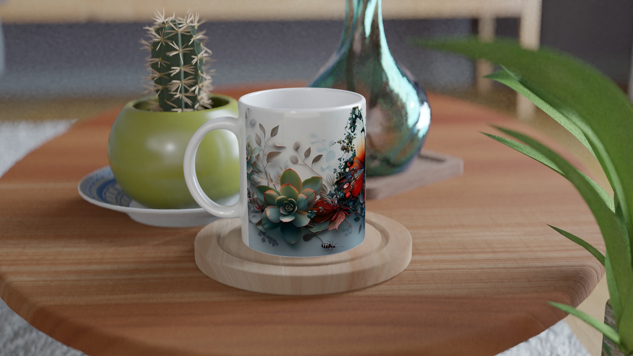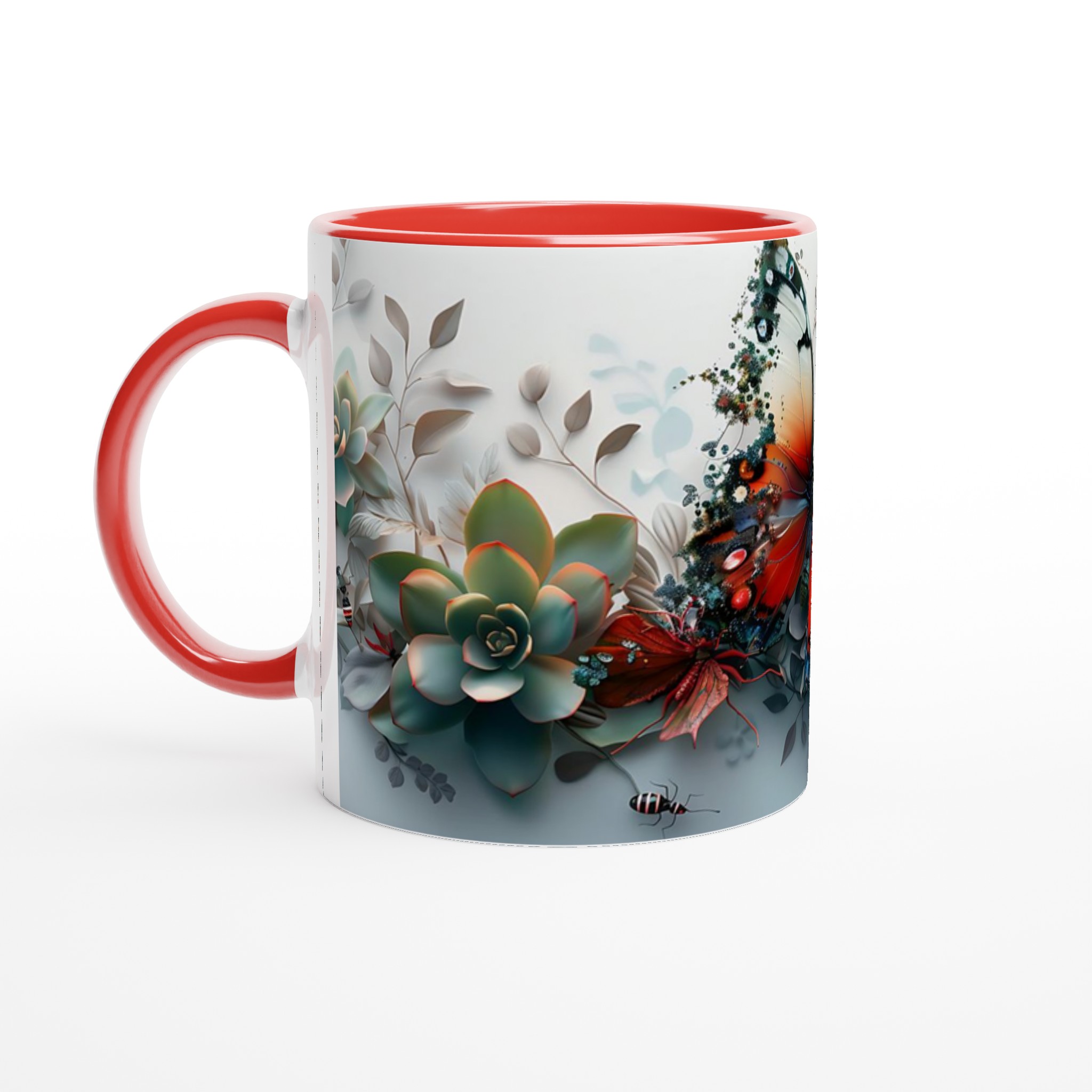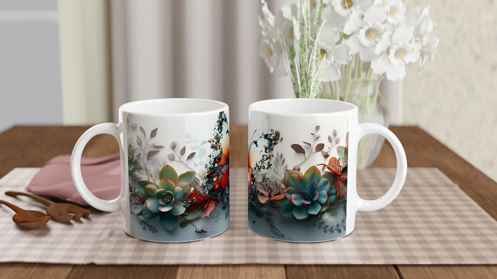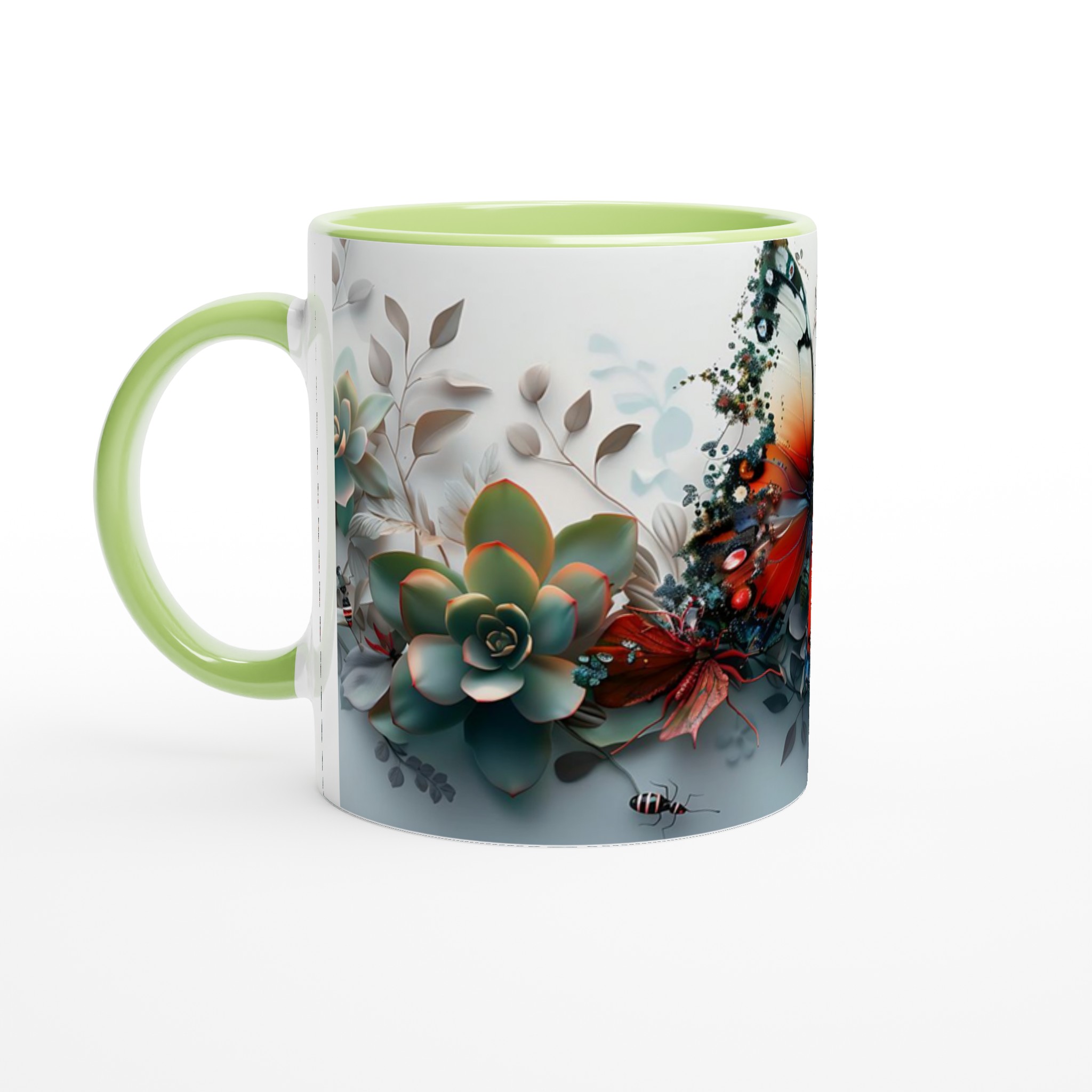 Låt din morgonrutin blomstra med vår unika keramiska mugg, prydd med ett förtrollande fjärilsparadis. Denna mugg är mer än bara ett kärl för din favoritdryck; den är en konstnärlig upplevelse som för tankarna till en frodig trädgård, med livfulla fjärilar och detaljerade botaniska element som fångar ögat. De rika, organiska färgerna och den drömska kompositionen skapar en känsla av lugn och skönhet, perfekt för att starta eller avsluta din dag.