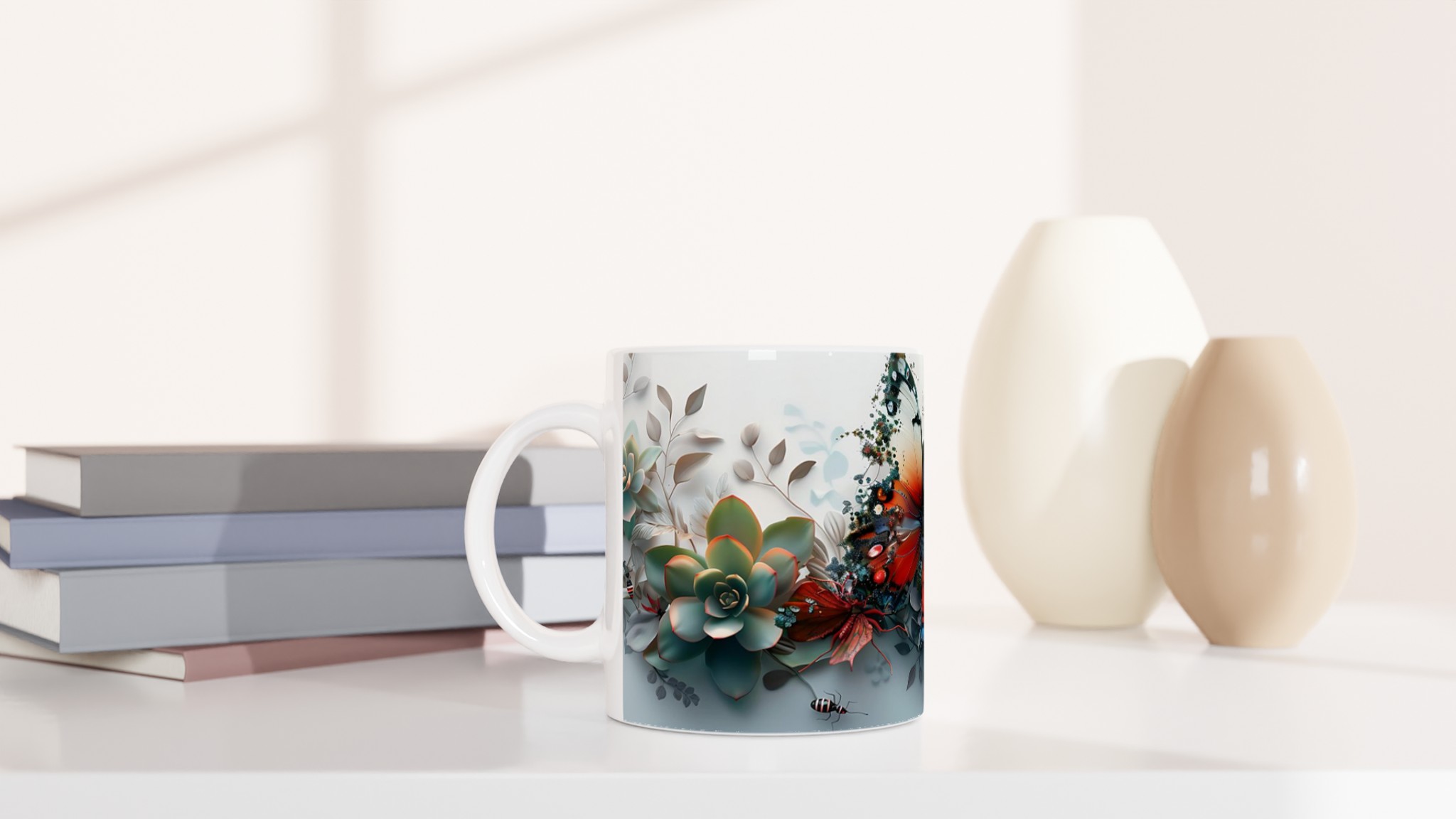 Den här stilrena keramiska muggen blir snabbt en vardagsfavorit. Perfekt för morgonkaffet, kvällens varma choklad eller när du bara vill njuta av en kopp te. Den blanka vita ytan gör att trycken framhävs med klara och levande färger, som håller sig fina även efter många turer i mikron och diskmaskinen. Välj din personliga favoritfärg bland sju fantastiska keramiska nyanser – från klassiskt vitt till djupt kungsblått – för att spegla din stil eller matcha din inredning. Muggen är inte bara praktisk – den är också en uppskattad present till familj, vänner eller kollegor. En enkel men personlig gåva som alltid kommer till användning.