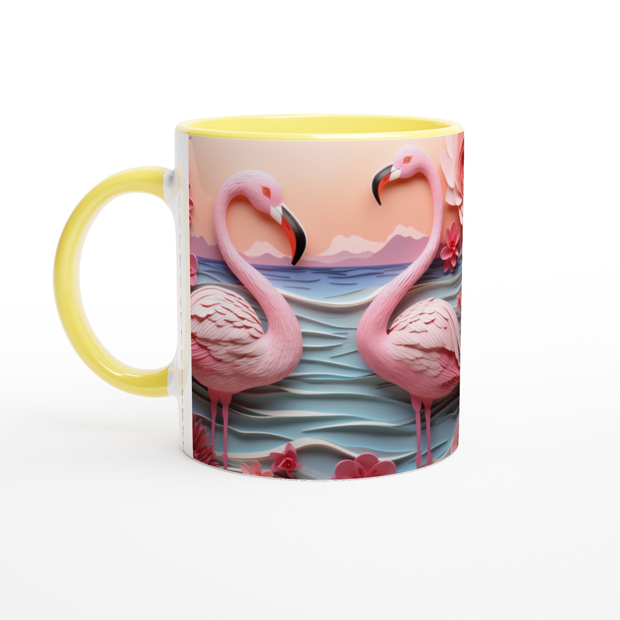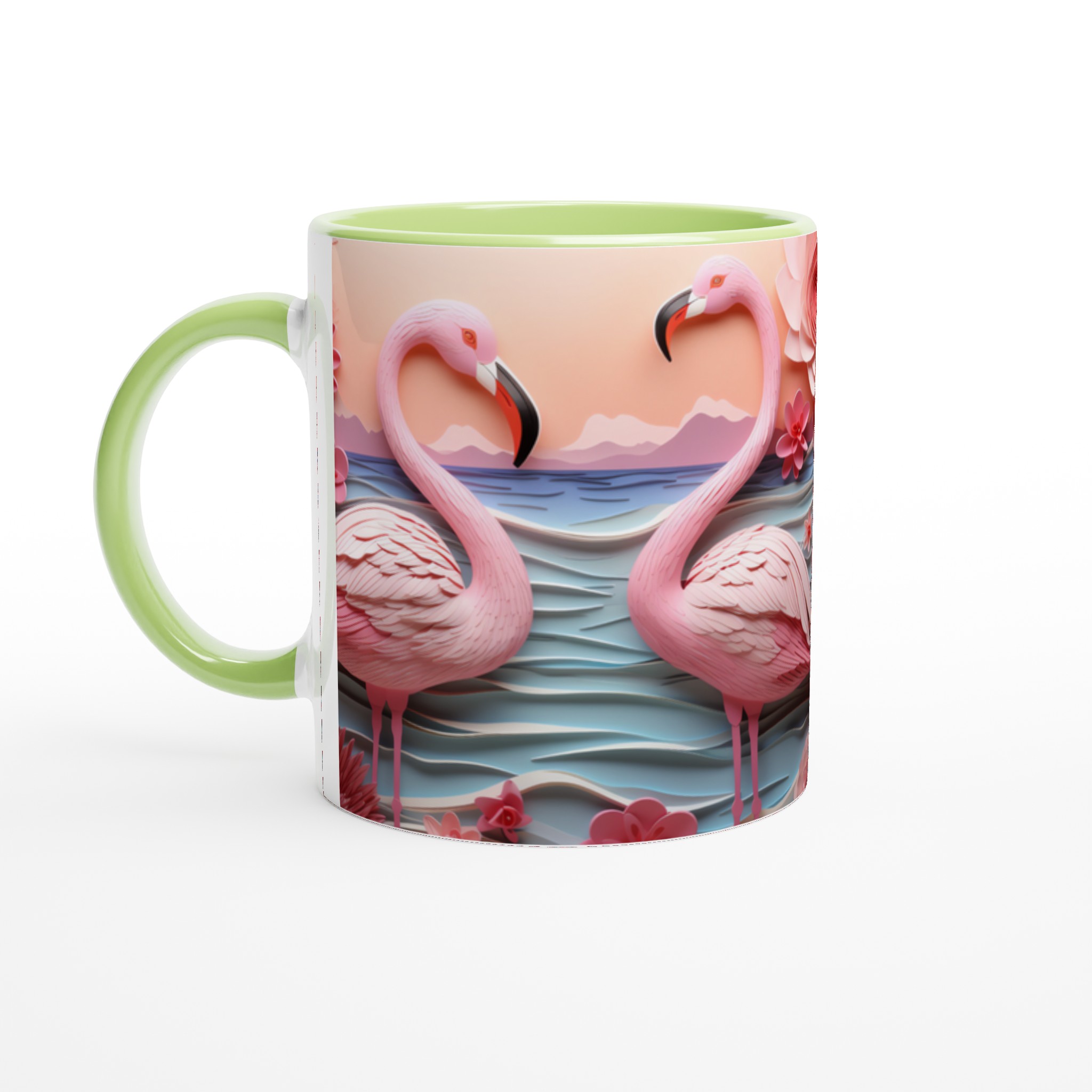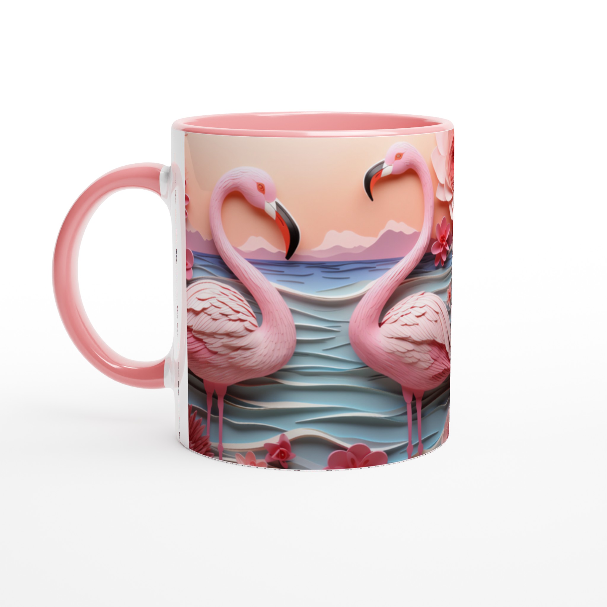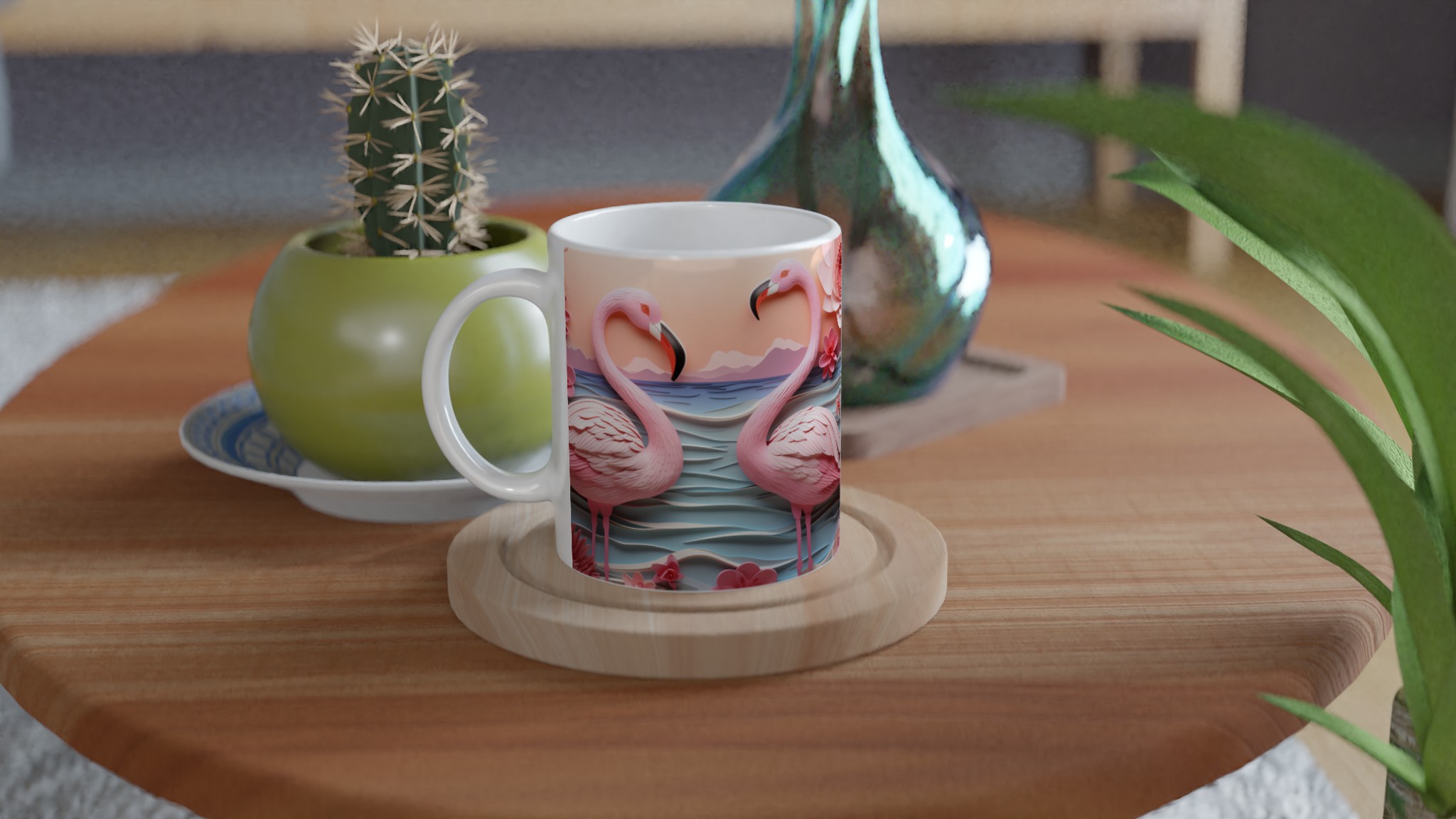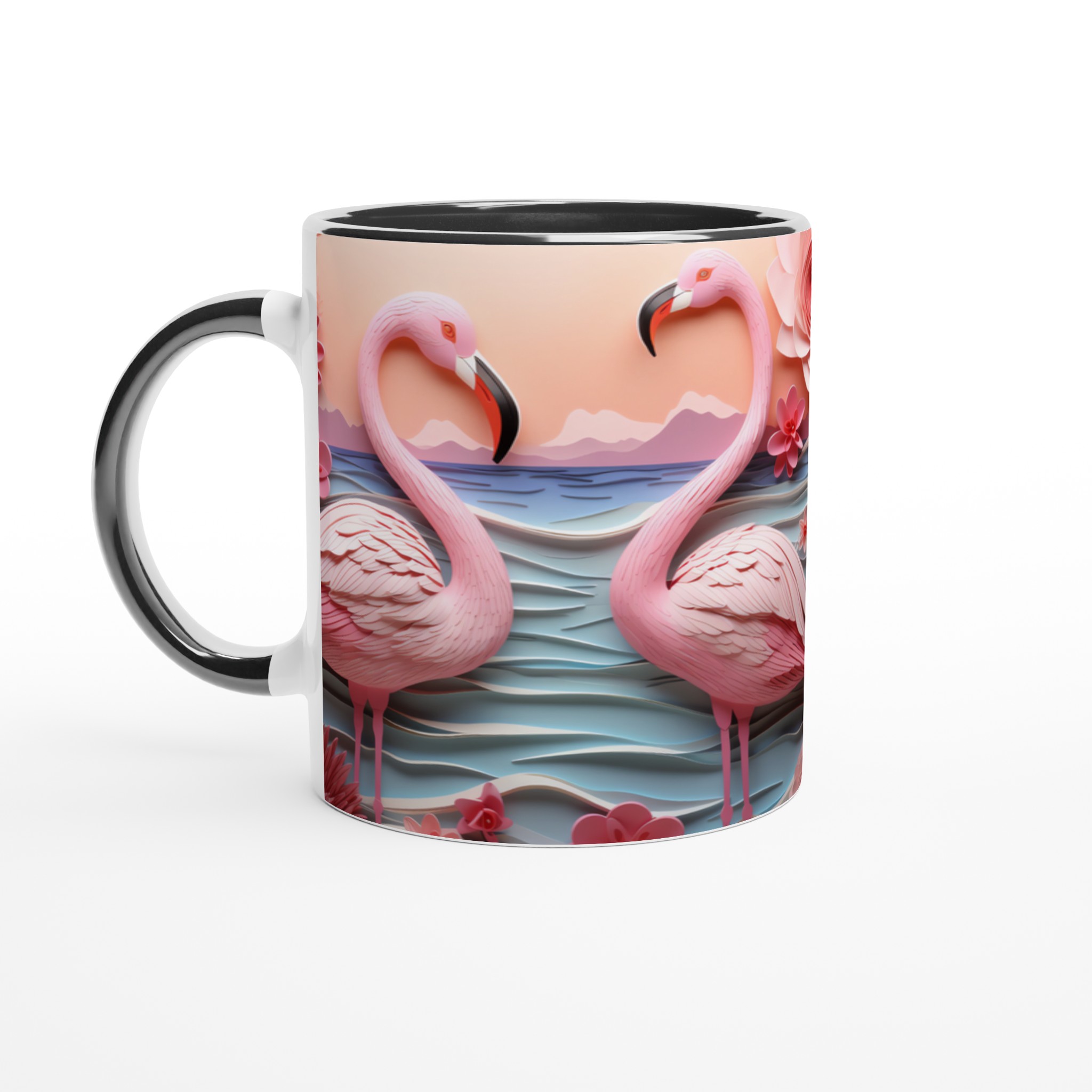 Fånga känslan av en lugn solnedgång över en exotisk sjö med vår Flamingo Paradise keramiska mugg. Denna stilrena mugg, prydd med en drömlik rosa flamingodesign och delikata pappersskärningsblommor, blir snabbt en vardagsfavorit. Perfekt för morgonkaffet, kvällens varma choklad eller när du bara vill njuta av en kopp te. Den blanka vita ytan gör att trycken framhävs med klara och levande färger, som håller sig fina även efter många turer i mikron och diskmaskinen.
