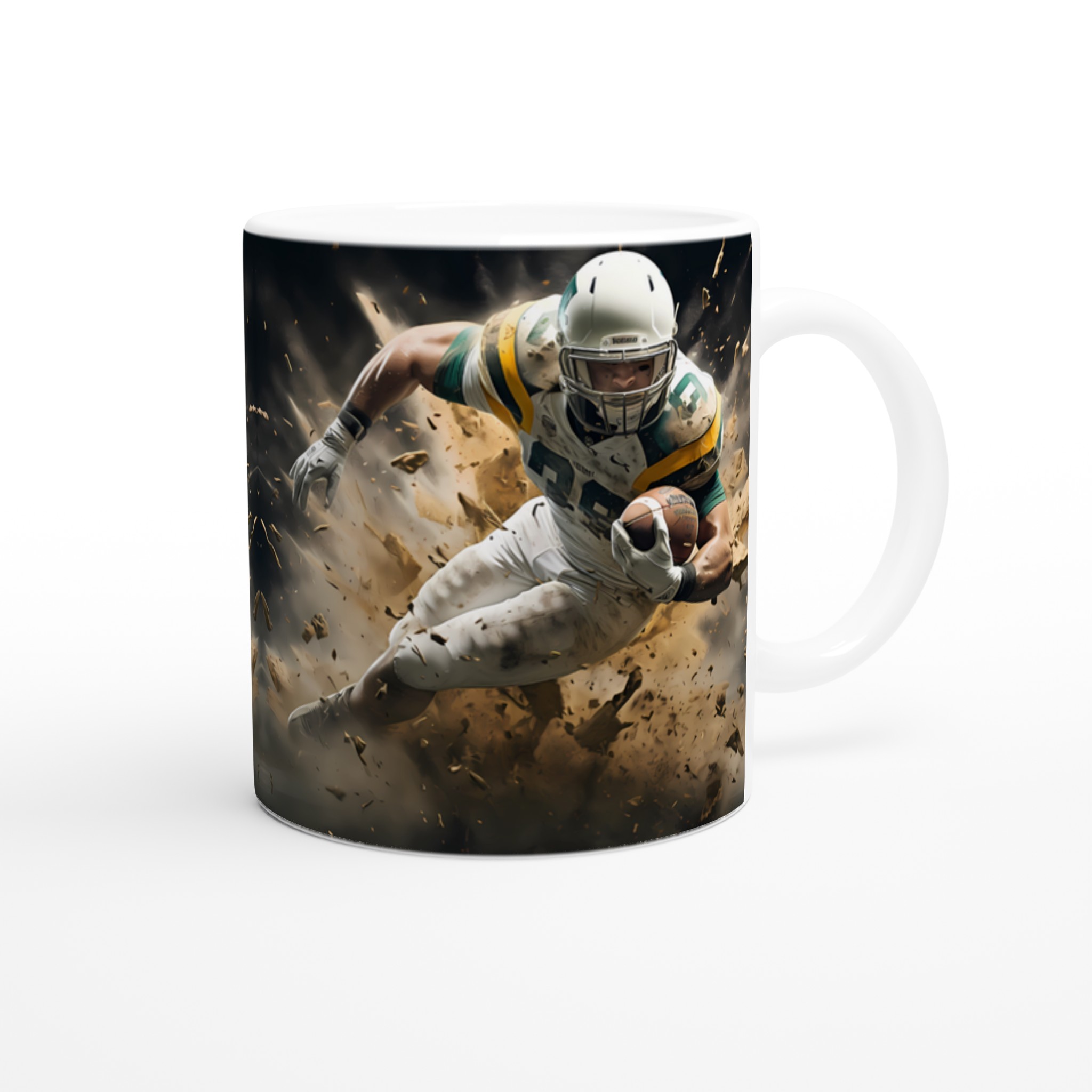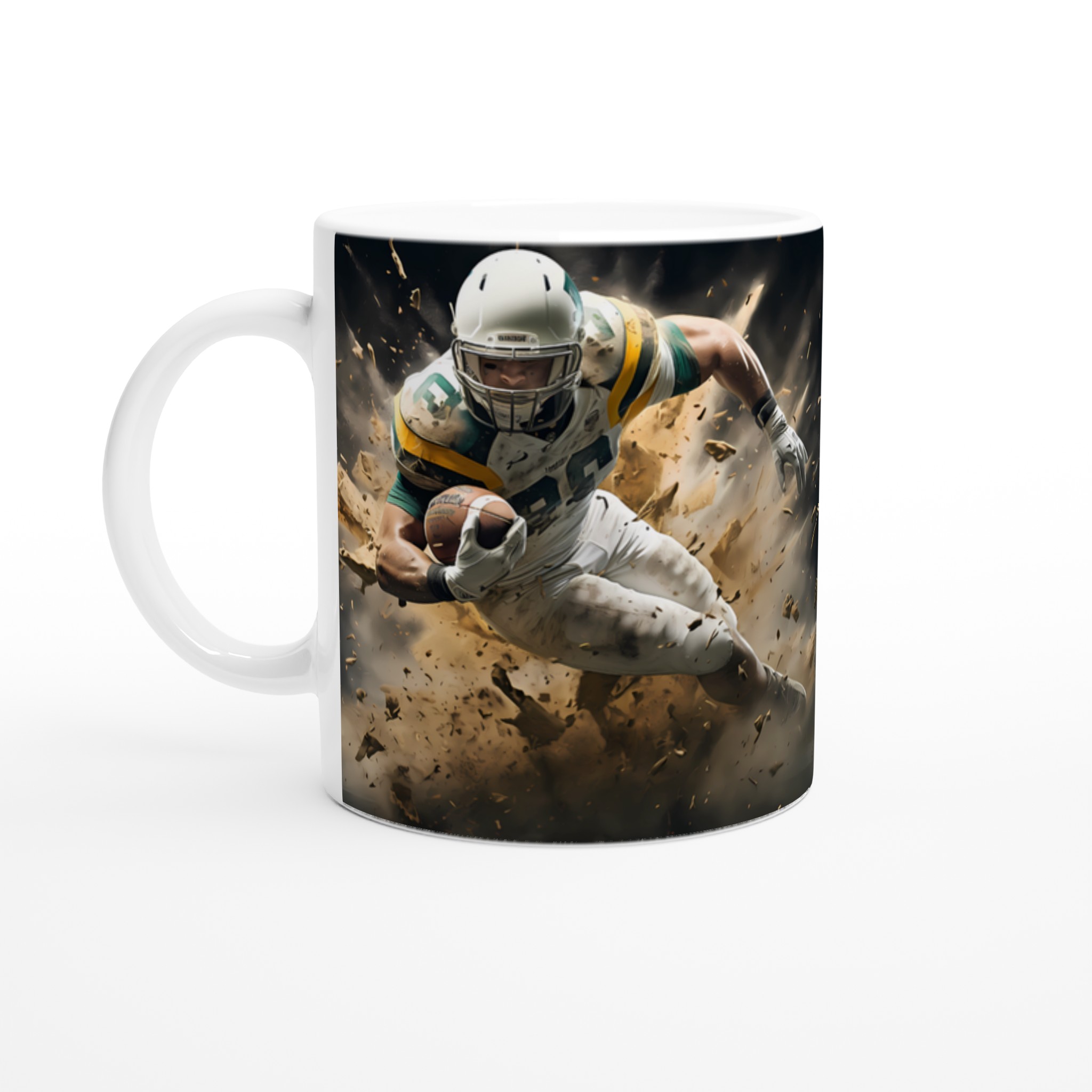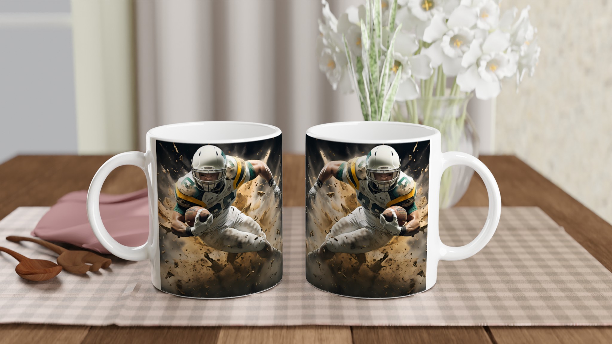 Fånga den intensiva energin och spänningen från fotbollsplanen varje gång du tar en klunk! Denna dynamiska keramiska mugg hyllar sportens kraft och skönhet, med en design som omedelbart väcker vinnarinstinkten. Perfekt för morgonkaffet inför matchdagen, kvällens varma choklad efter en hård träning, eller när du bara vill njuta av en kopp te medan du drömmer om touchdowns.