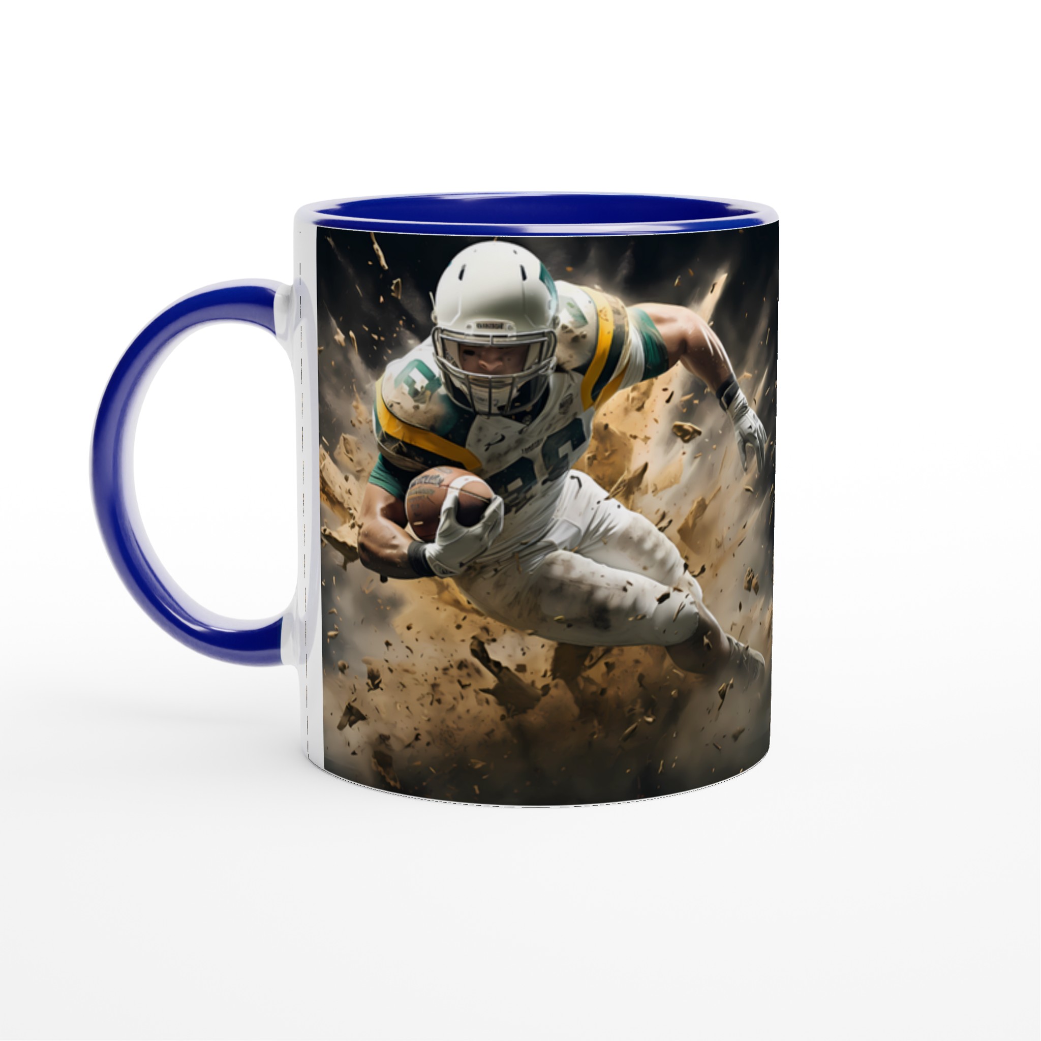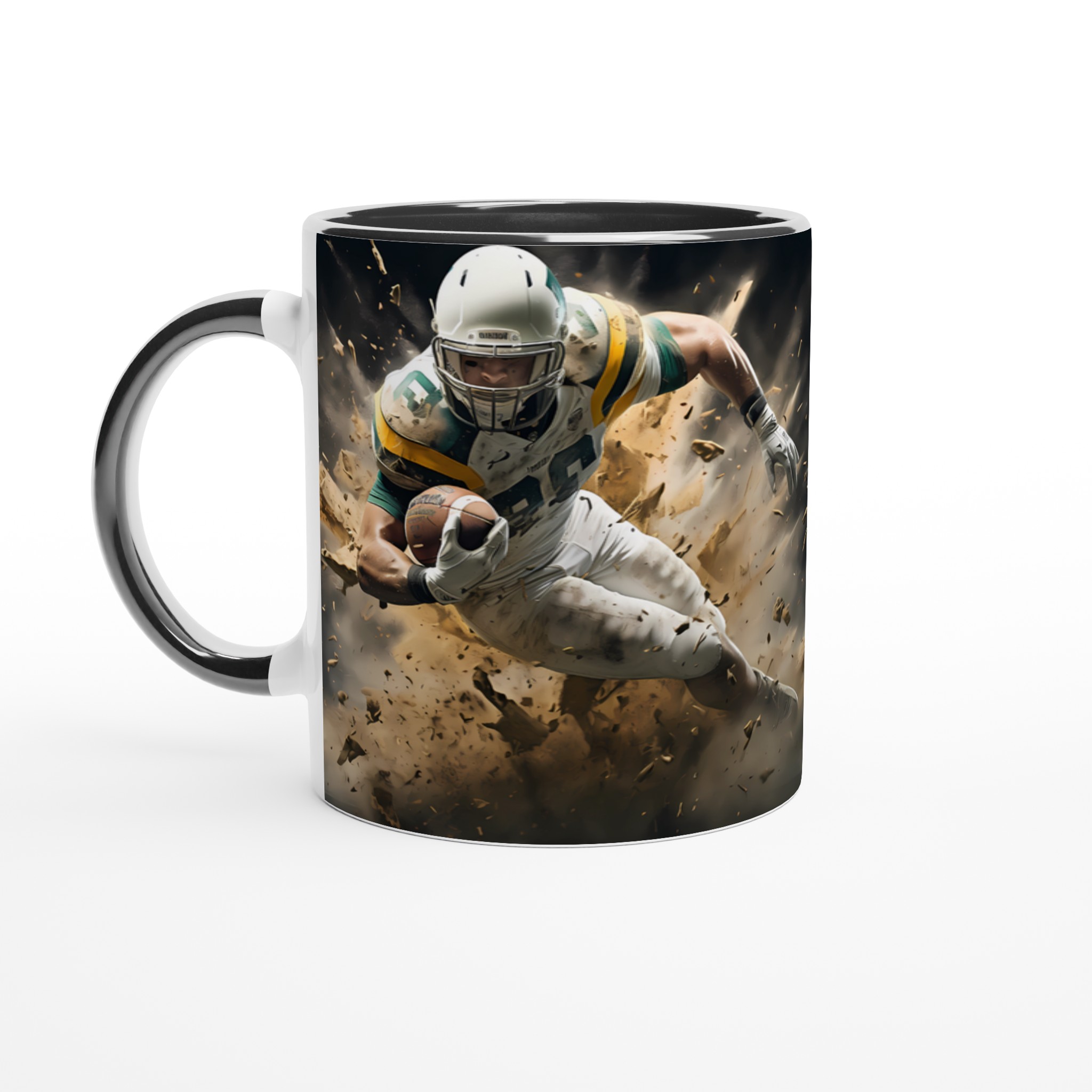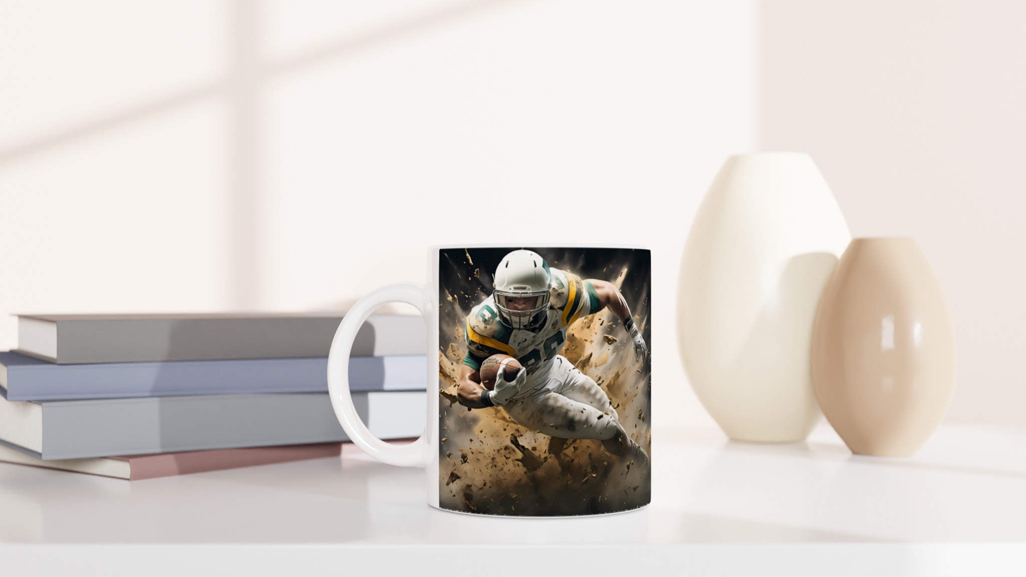 Fånga den intensiva energin och spänningen från fotbollsplanen varje gång du tar en klunk! Denna dynamiska keramiska mugg hyllar sportens kraft och skönhet, med en design som omedelbart väcker vinnarinstinkten. Perfekt för morgonkaffet inför matchdagen, kvällens varma choklad efter en hård träning, eller när du bara vill njuta av en kopp te medan du drömmer om touchdowns.