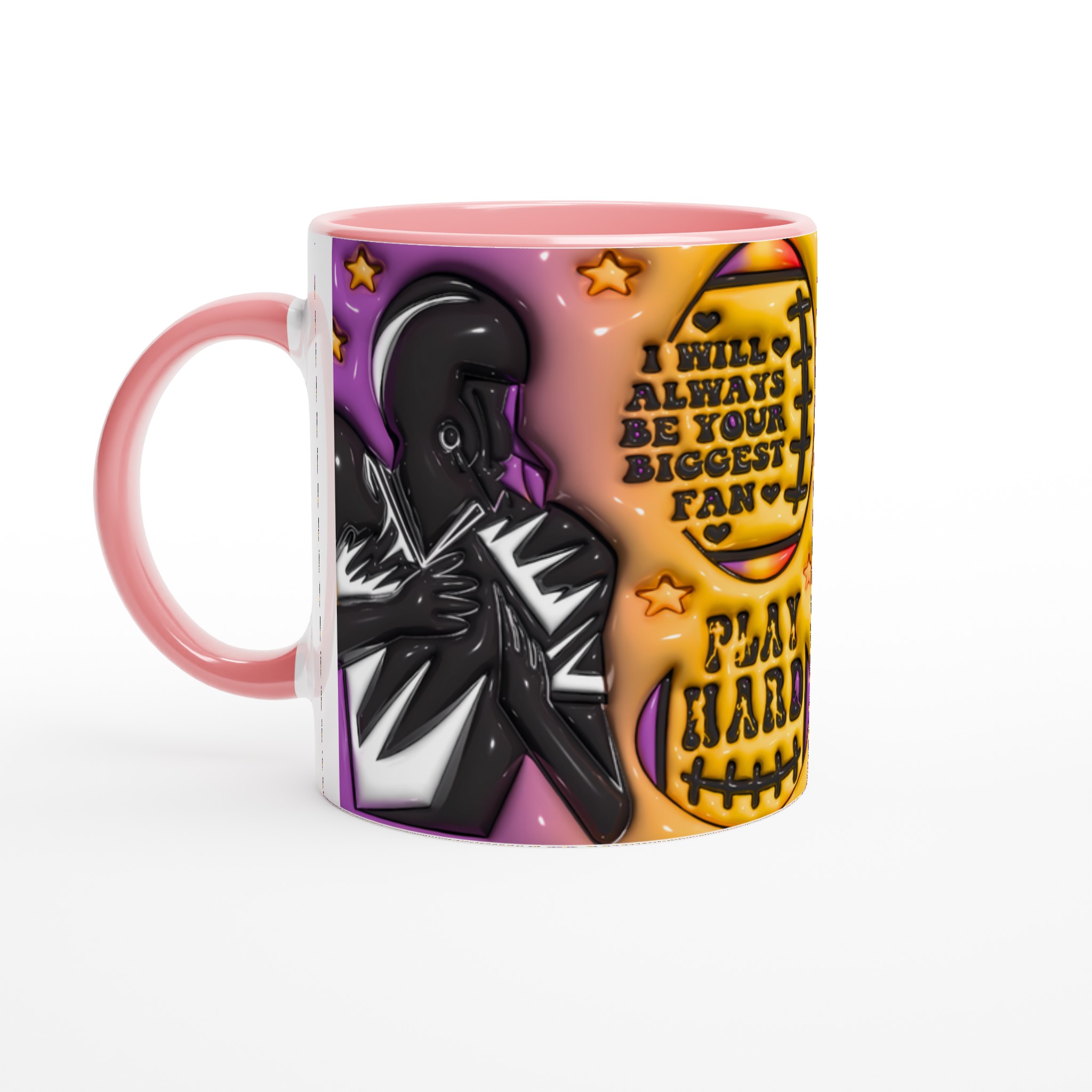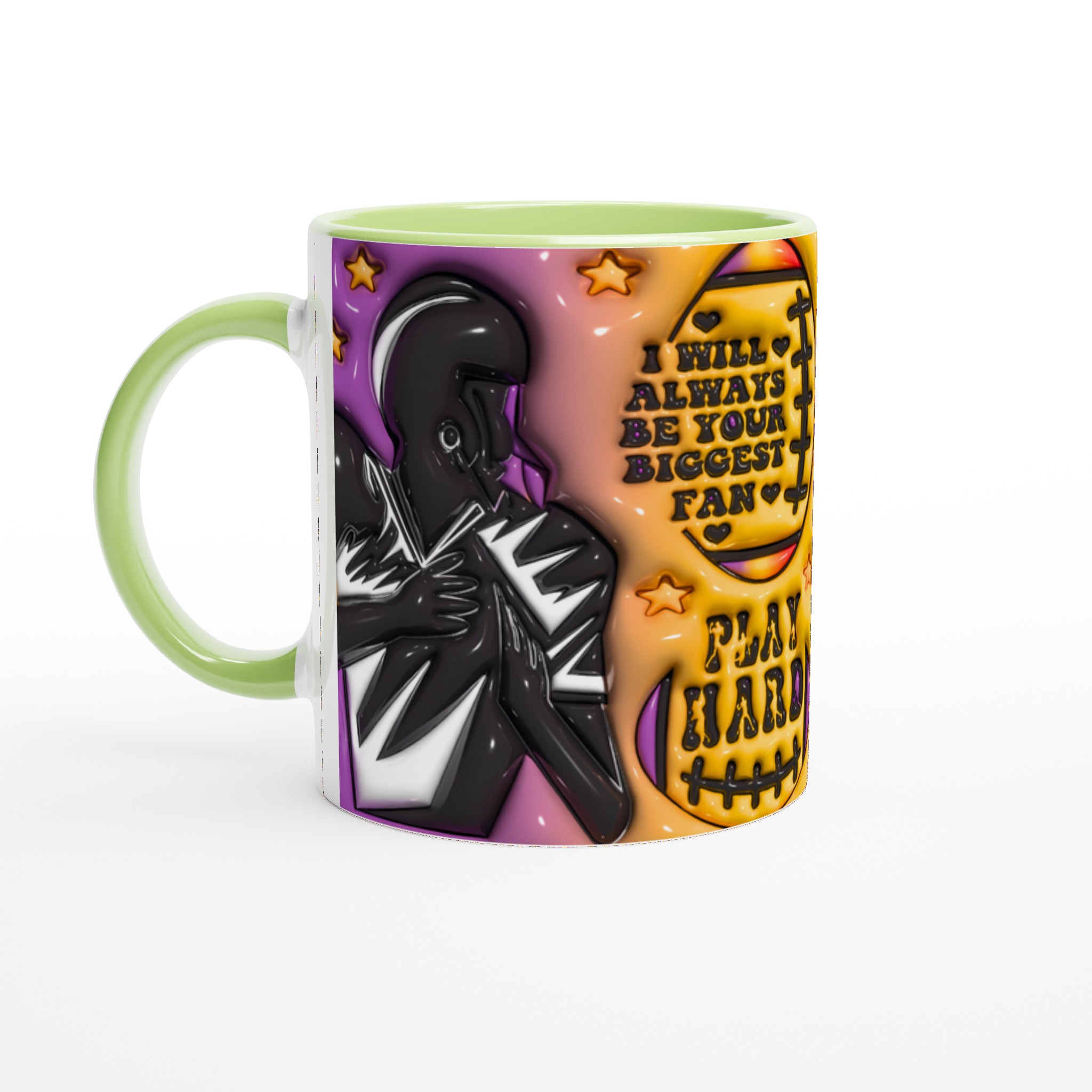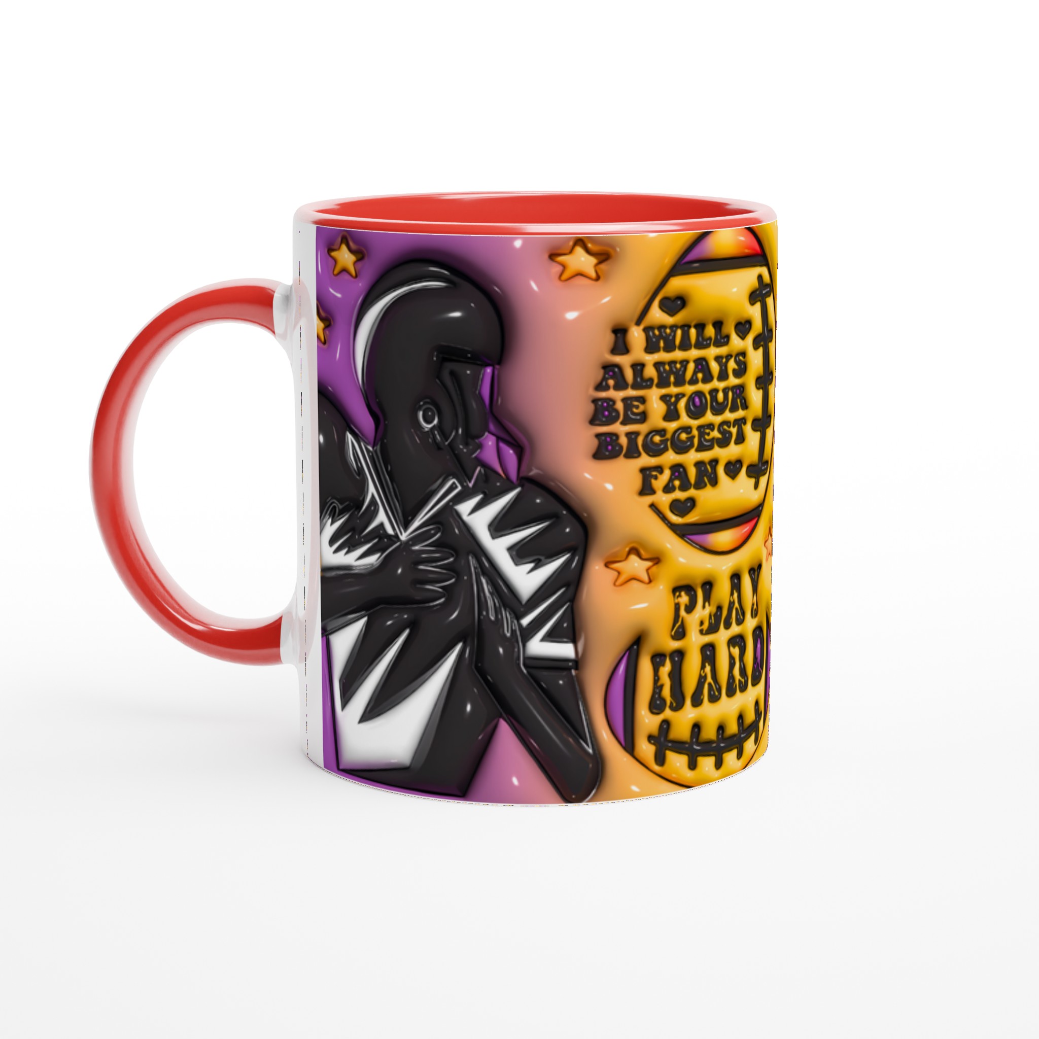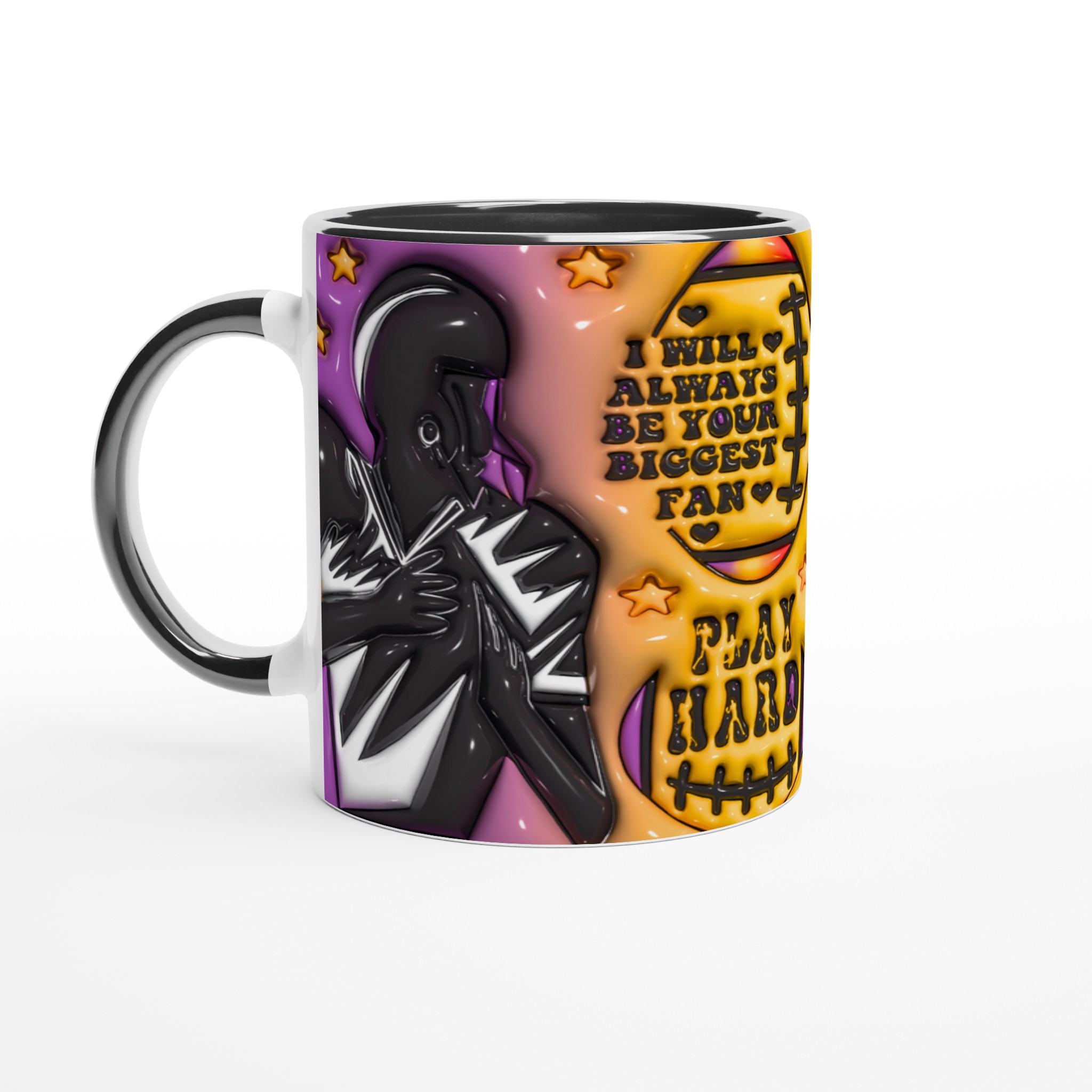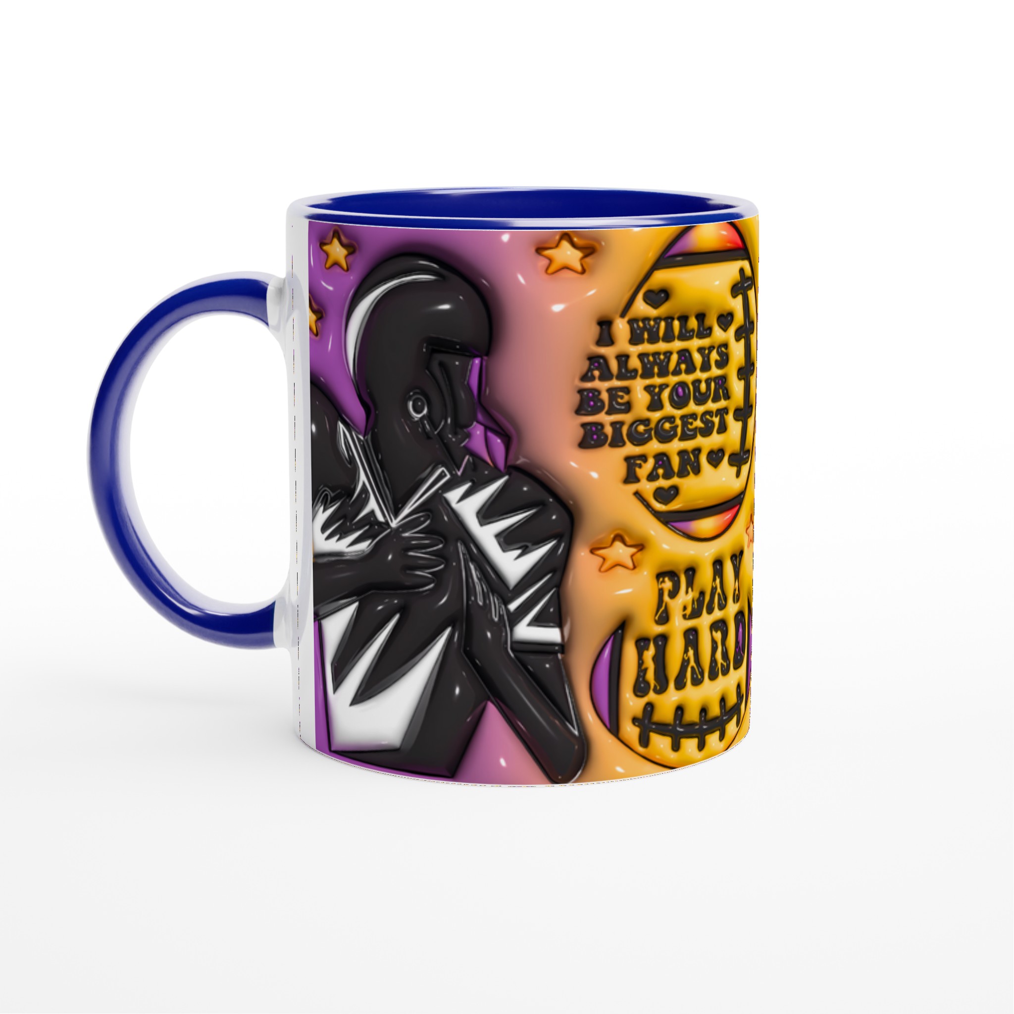 Ge din dag en kickstart eller varva ner med denna inspirerande keramiska mugg, perfekt för alla som älskar fotboll och vill visa sitt stöd! Med budskapet ”I will always be your biggest fan” och ”Play Hard” är denna mugg en hyllning till sportandan och de man håller kär. Den glänsande, detaljerade designen med fotbollsspelare och stjärnor framhävs vackert på den blanka ytan, vilket garanterar att varje morgonkaffe eller kvällste blir en upplyftande upplevelse.