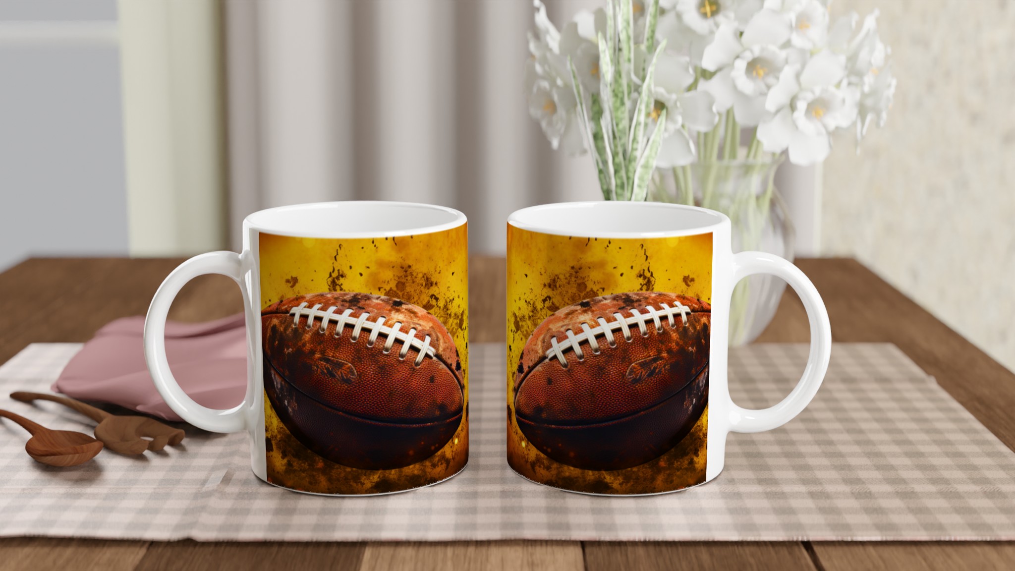 Sätt stämningen för varje matchdag eller bara hylla din kärlek till sporten med vår Football Game Day Keramikmugg. Den dynamiska designen med en robust amerikansk fotboll mot en energisk orange bakgrund fångar spänningen och gruset från planen, vilket gör varje klunk till en seger. Den här muggen blir snabbt en vardagsfavorit, perfekt för morgonkaffet, kvällens varma choklad eller när du bara vill njuta av en kopp te. Den blanka ytan ser till att det sportiga trycket framhävs med klara och levande färger, som håller sig fina även efter många turer i mikron och diskmaskinen.