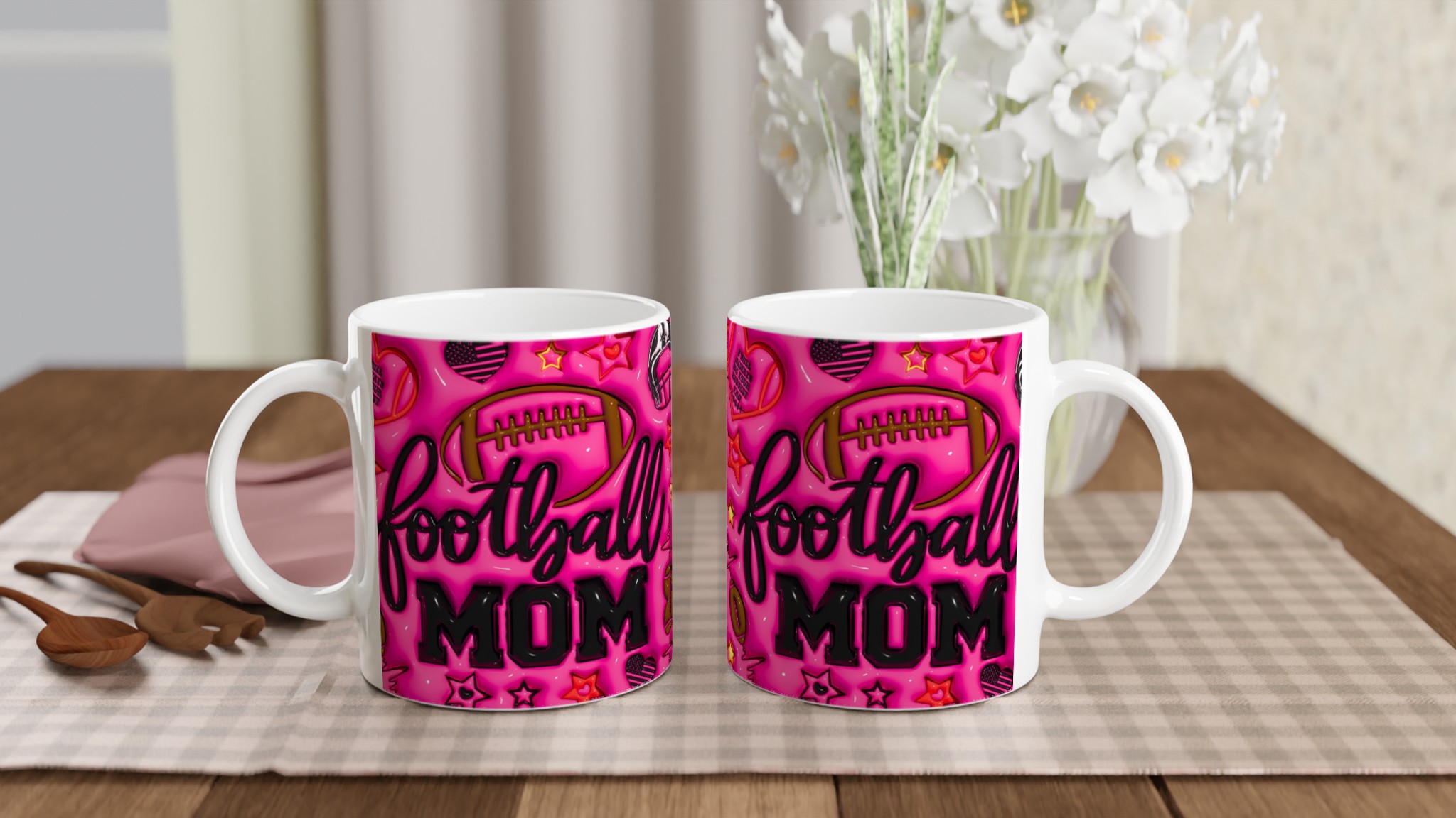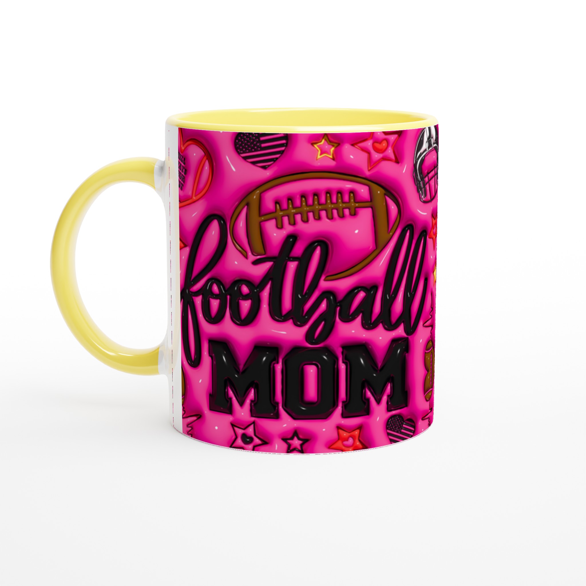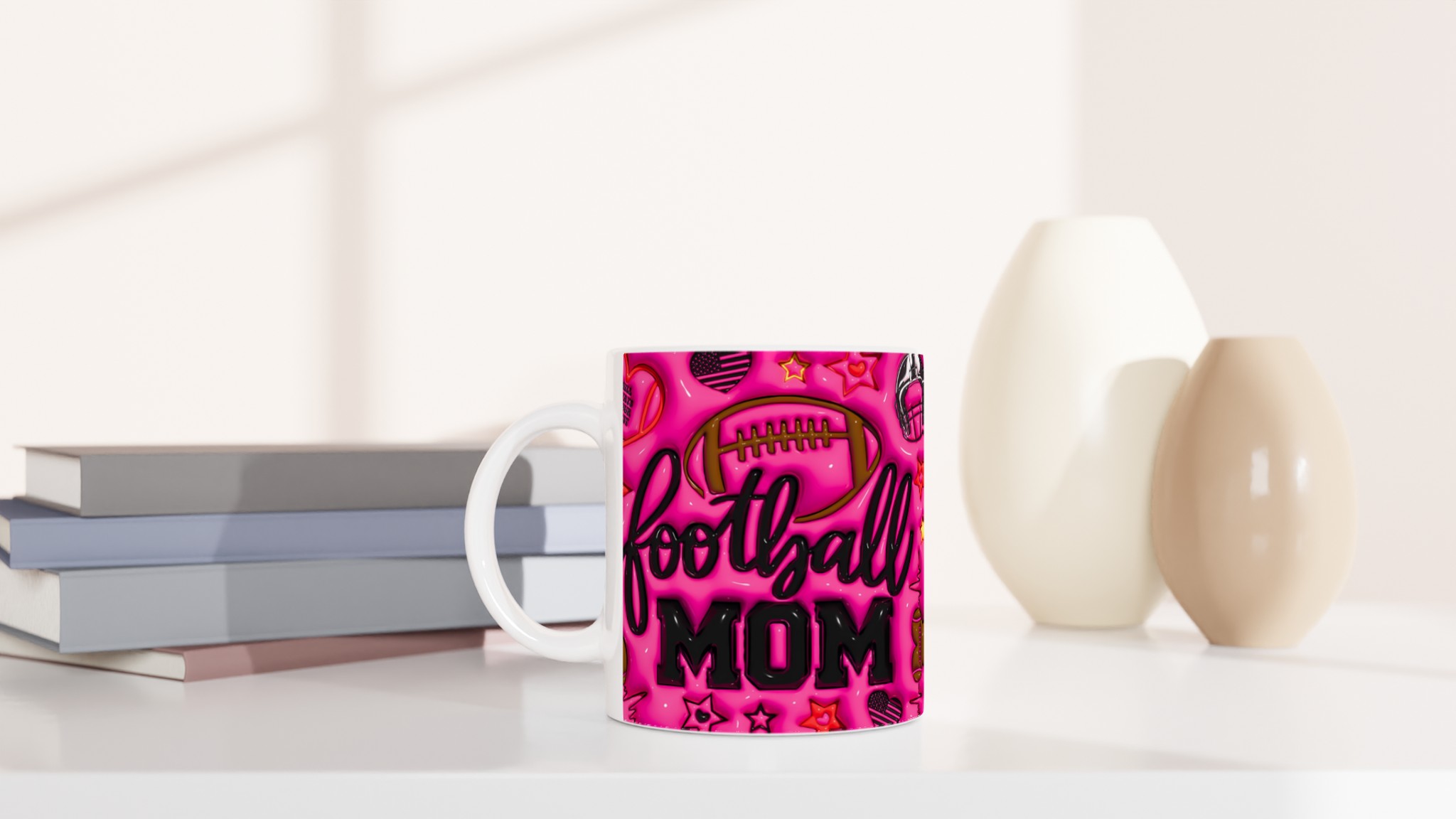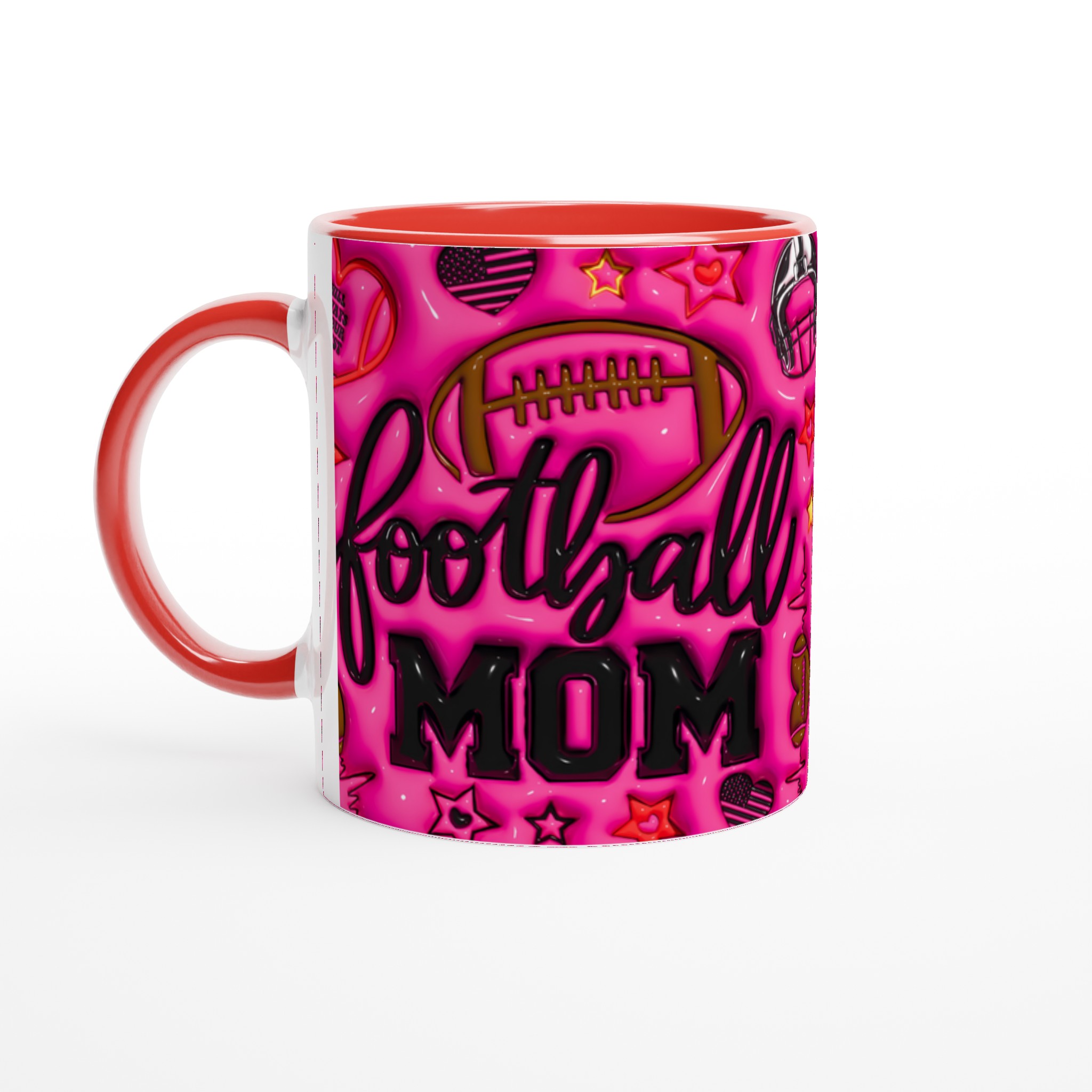 Fira din roll som hejarklackens stjärna med vår ”Football Mom” keramiska mugg! Denna mugg är designad för att sticka ut, med en levande rosa bakgrund fylld av glansiga fotbollsmotiv, stjärnor och det hjärtevärmande budskapet ”I will always be your biggest fan”. Perfekt för morgonkaffet före matchen, kvällens varma choklad efter en vinst, eller när du bara vill njuta av en kopp te medan du drömmer om nästa säsong. Den blanka ytan säkerställer att trycket framhävs med klara och levande färger, som håller sig fina även efter många turer i mikron och diskmaskinen.