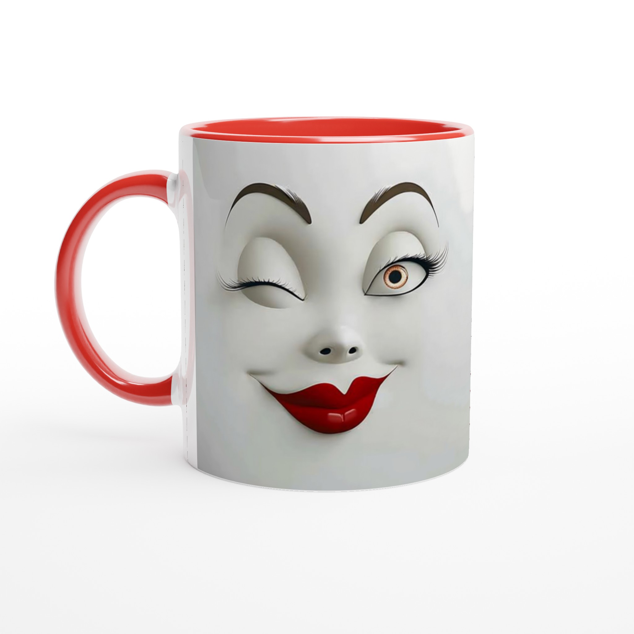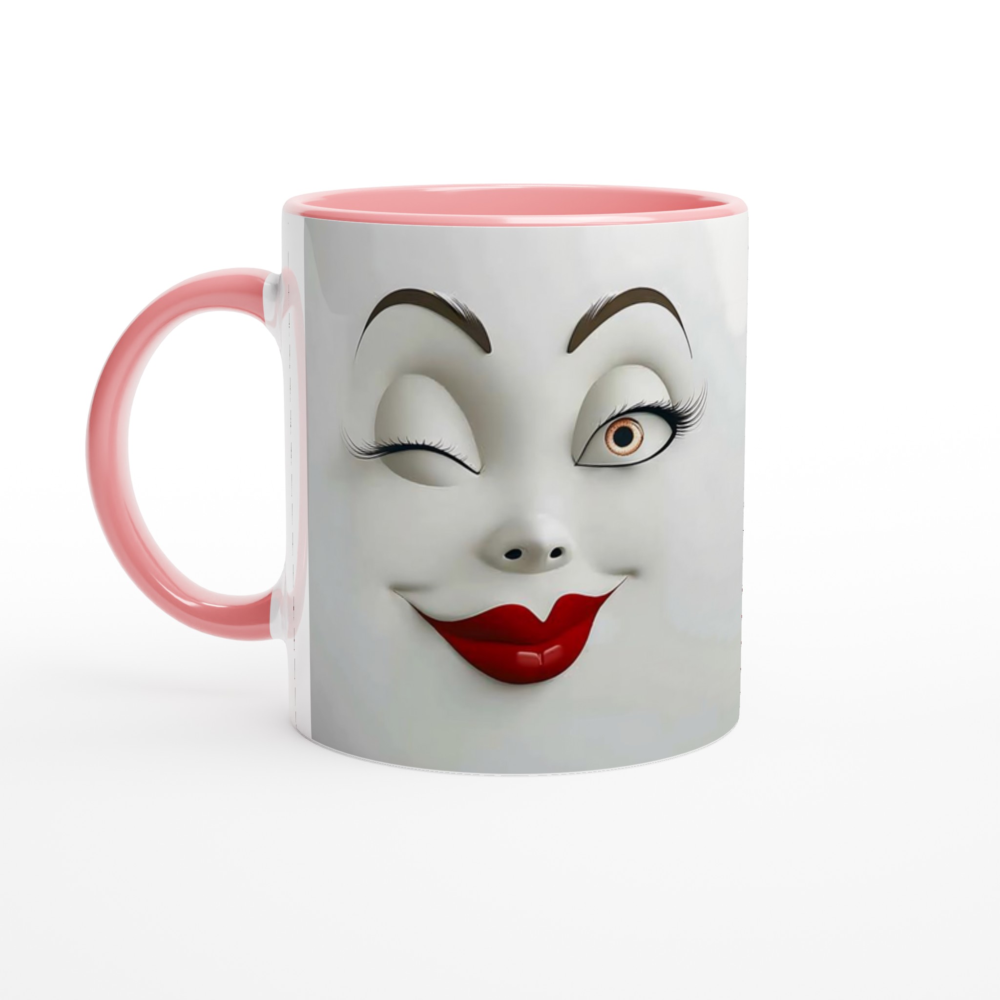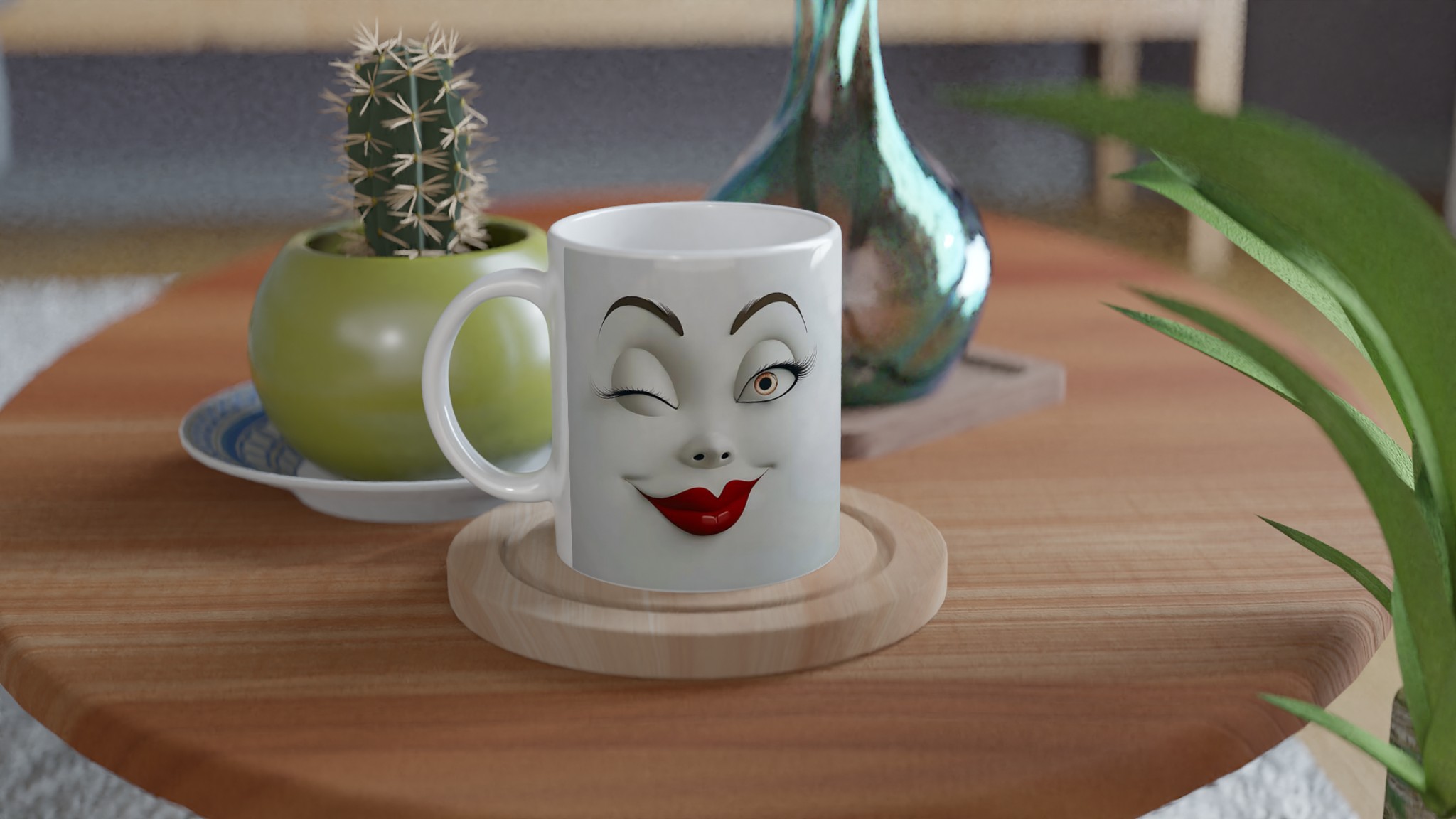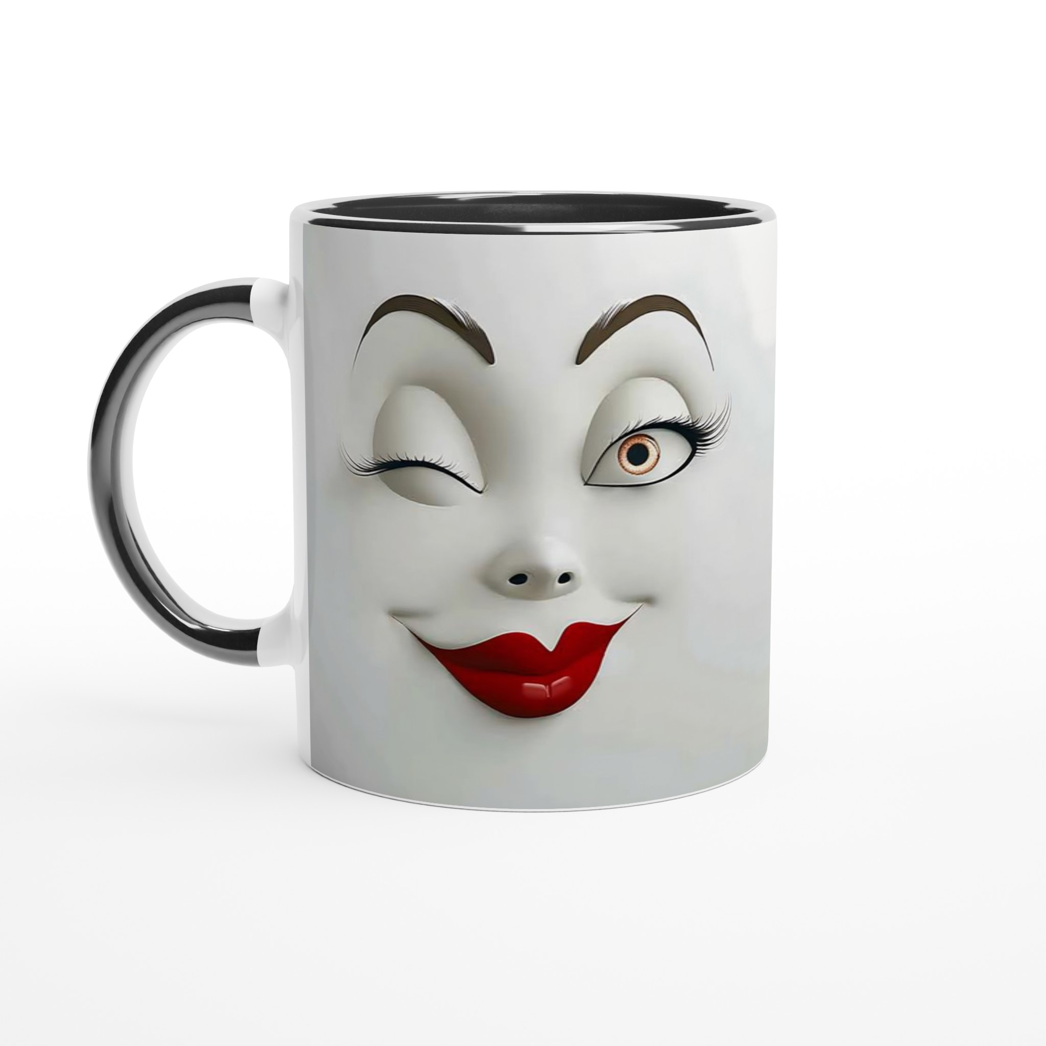Denna lekfulla design med en förförisk blinkning och ett sött leende ger din mugg en unik personlighet, perfekt för att starta dagen med ett skratt eller ge bort en present som garanterat uppskattas. Den blanka vita ytan ger ett skarpt och levande tryck som verkligen sticker ut, oavsett om det är en personlig design, ett roligt citat eller en present till någon du tycker om.