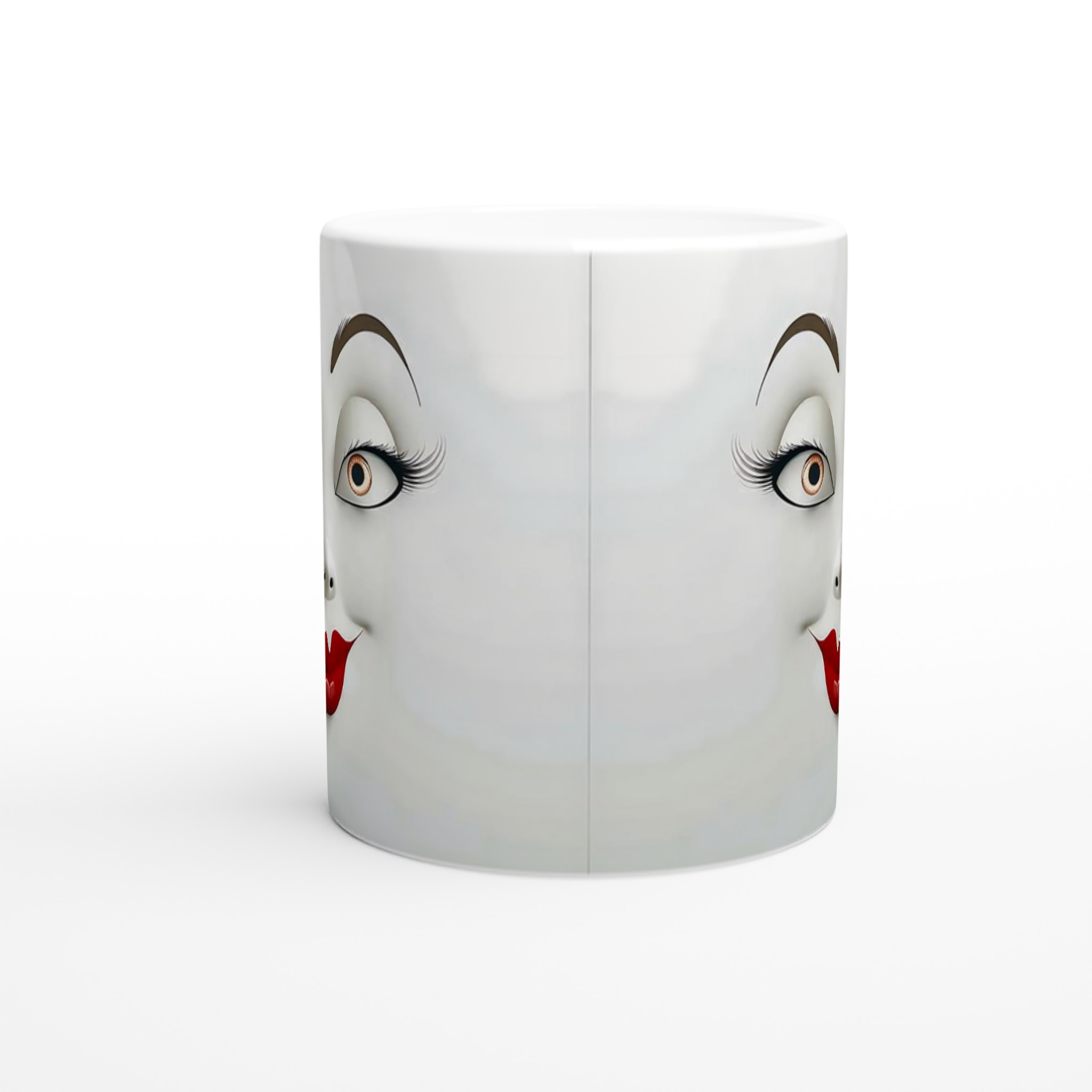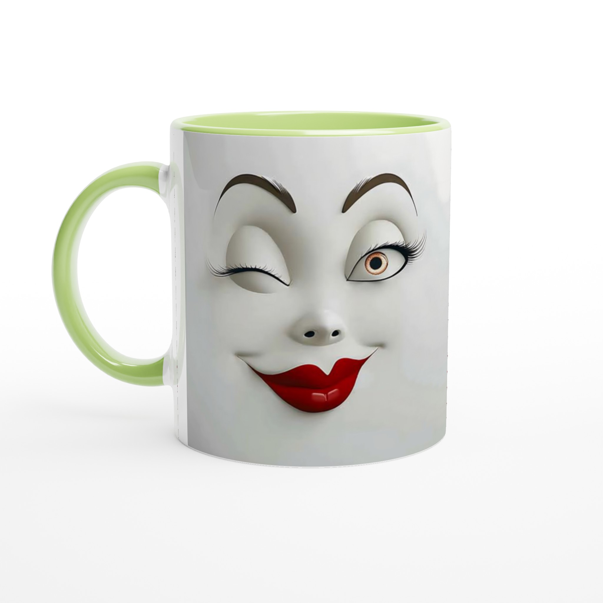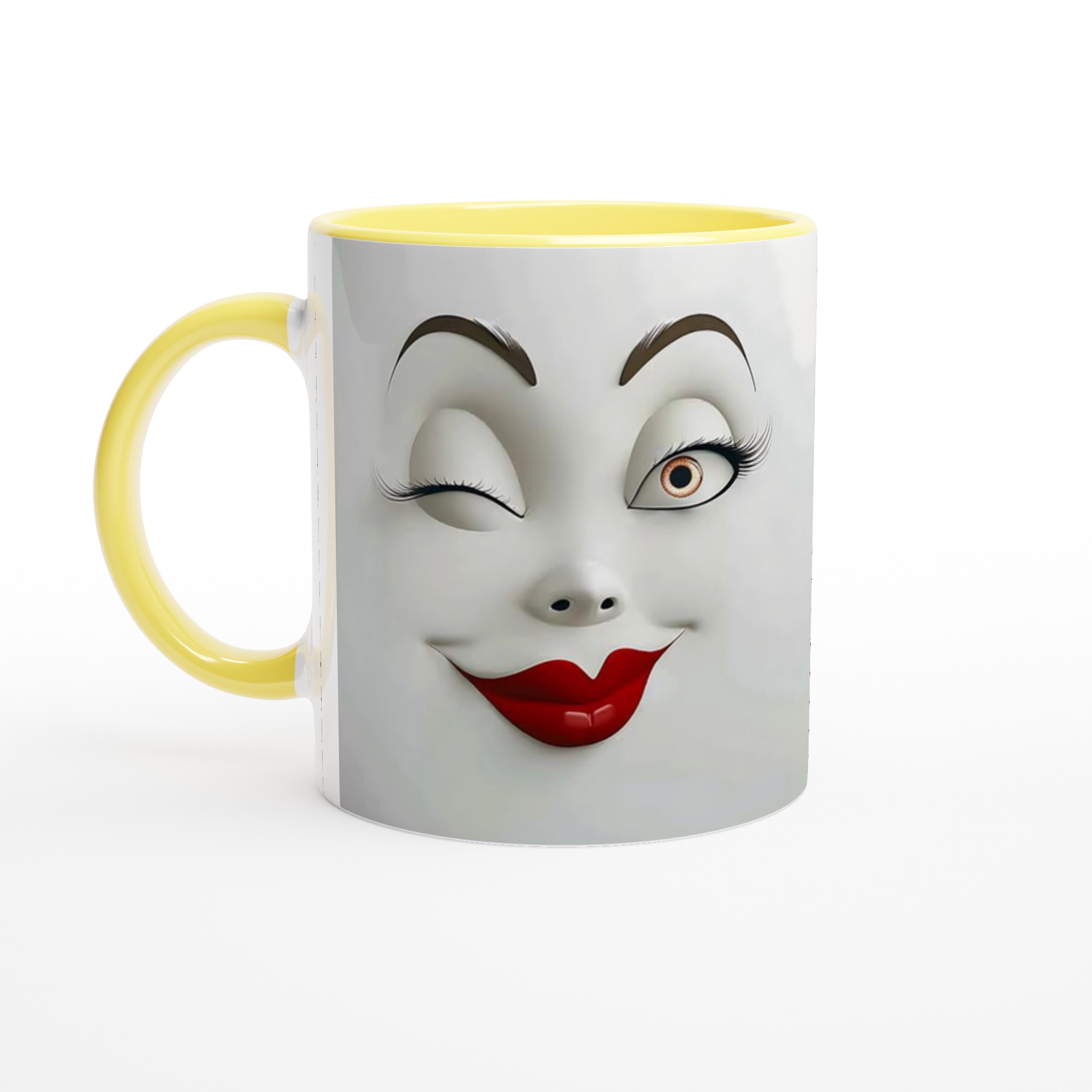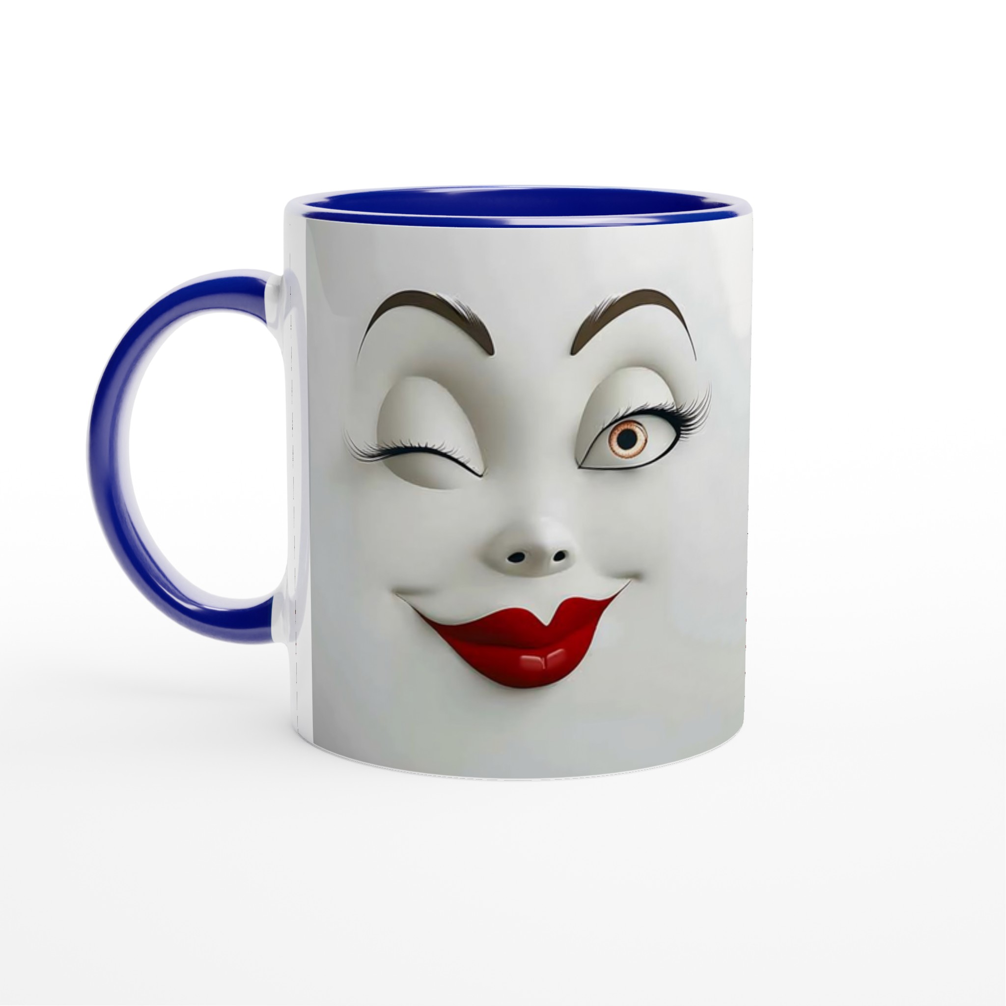 Denna lekfulla design med en förförisk blinkning och ett sött leende ger din mugg en unik personlighet, perfekt för att starta dagen med ett skratt eller ge bort en present som garanterat uppskattas. Den blanka vita ytan ger ett skarpt och levande tryck som verkligen sticker ut, oavsett om det är en personlig design, ett roligt citat eller en present till någon du tycker om.