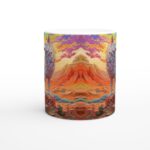 Förvandla varje klunk till en resa genom färg och fantasi med vår ”Förgrenat Universum” keramiska mugg. Denna stilrena och vackra keramikmugg är prydd med ett hypnotiskt, psykedeliskt landskap fyllt av levande träd och flytande mönster, perfekt för alla dagens stunder – morgonkaffet, en värmande kopp te eller en härlig varm choklad. Det konstnärliga trycket med dess rika färgpalett framträder klart och färgstarkt på den blanka vita ytan, vilket gör muggen till en riktig favorit i vardagen för den som uppskattar unik design.