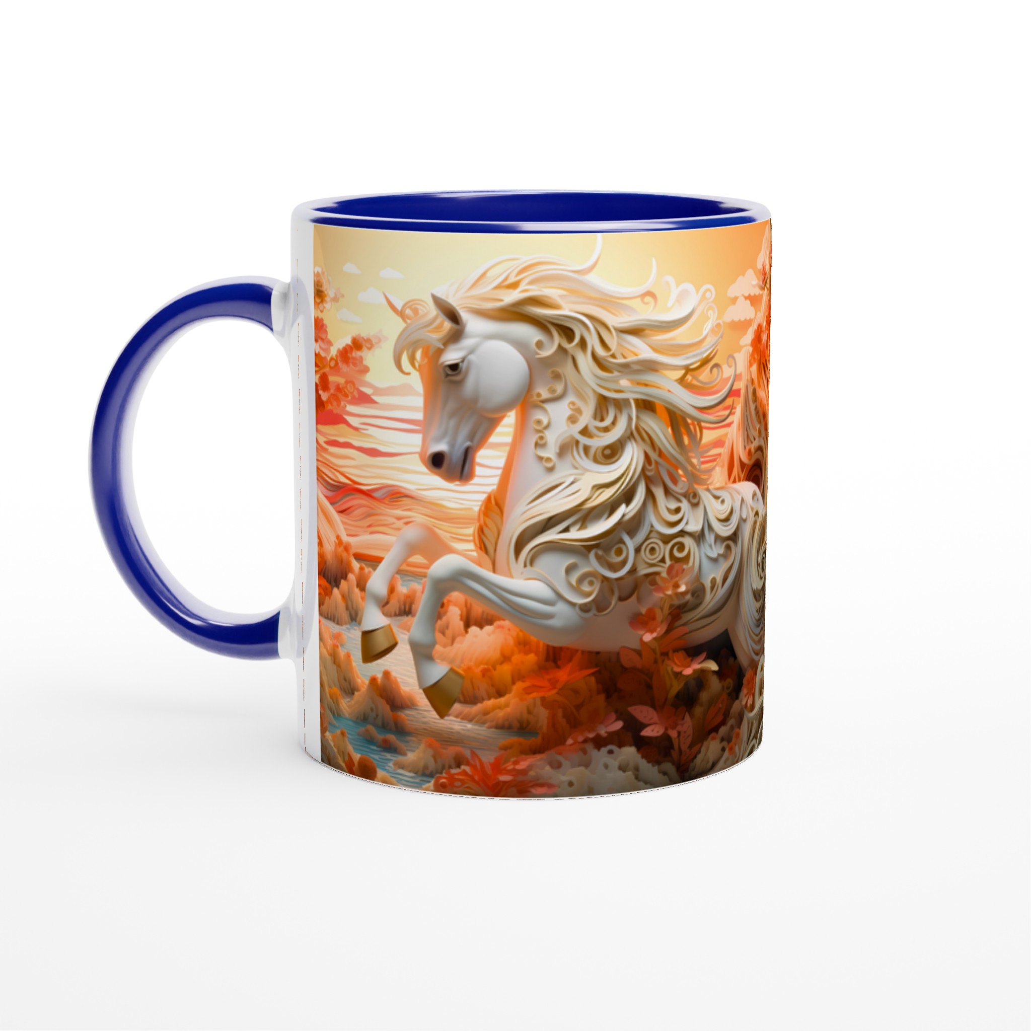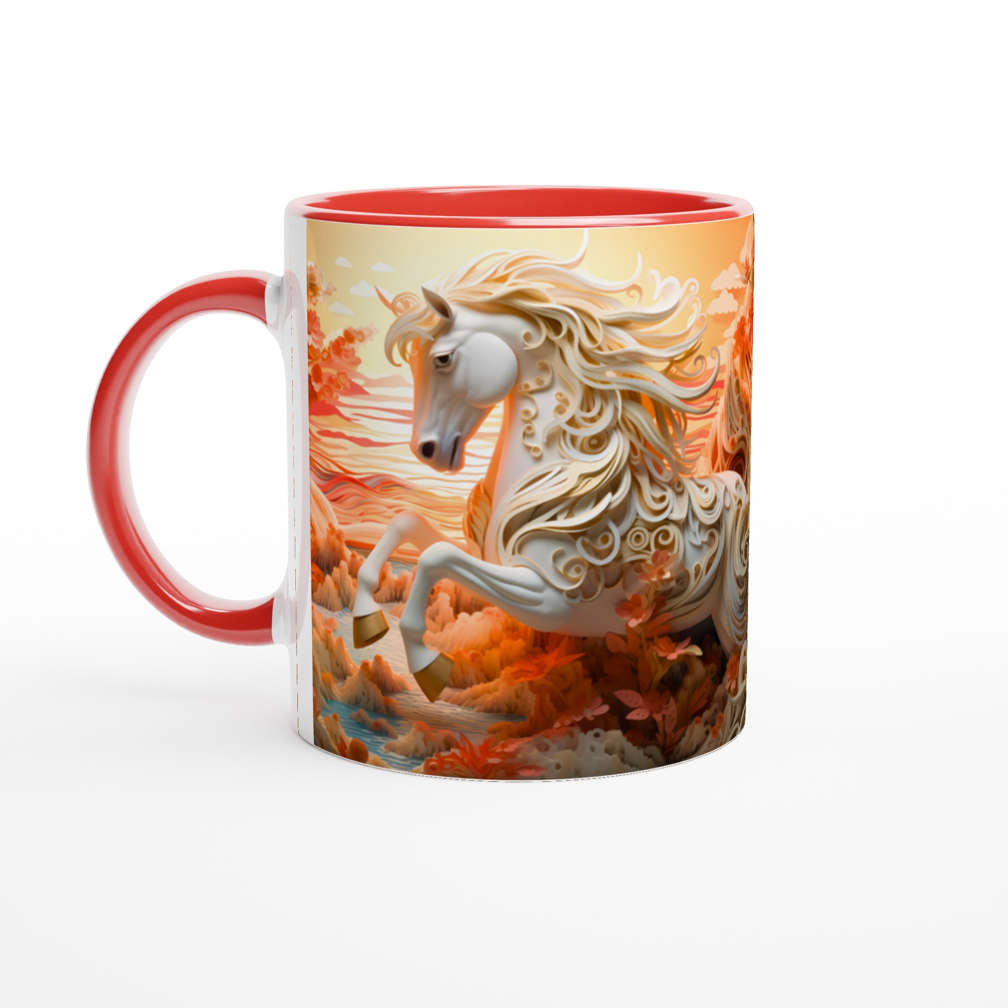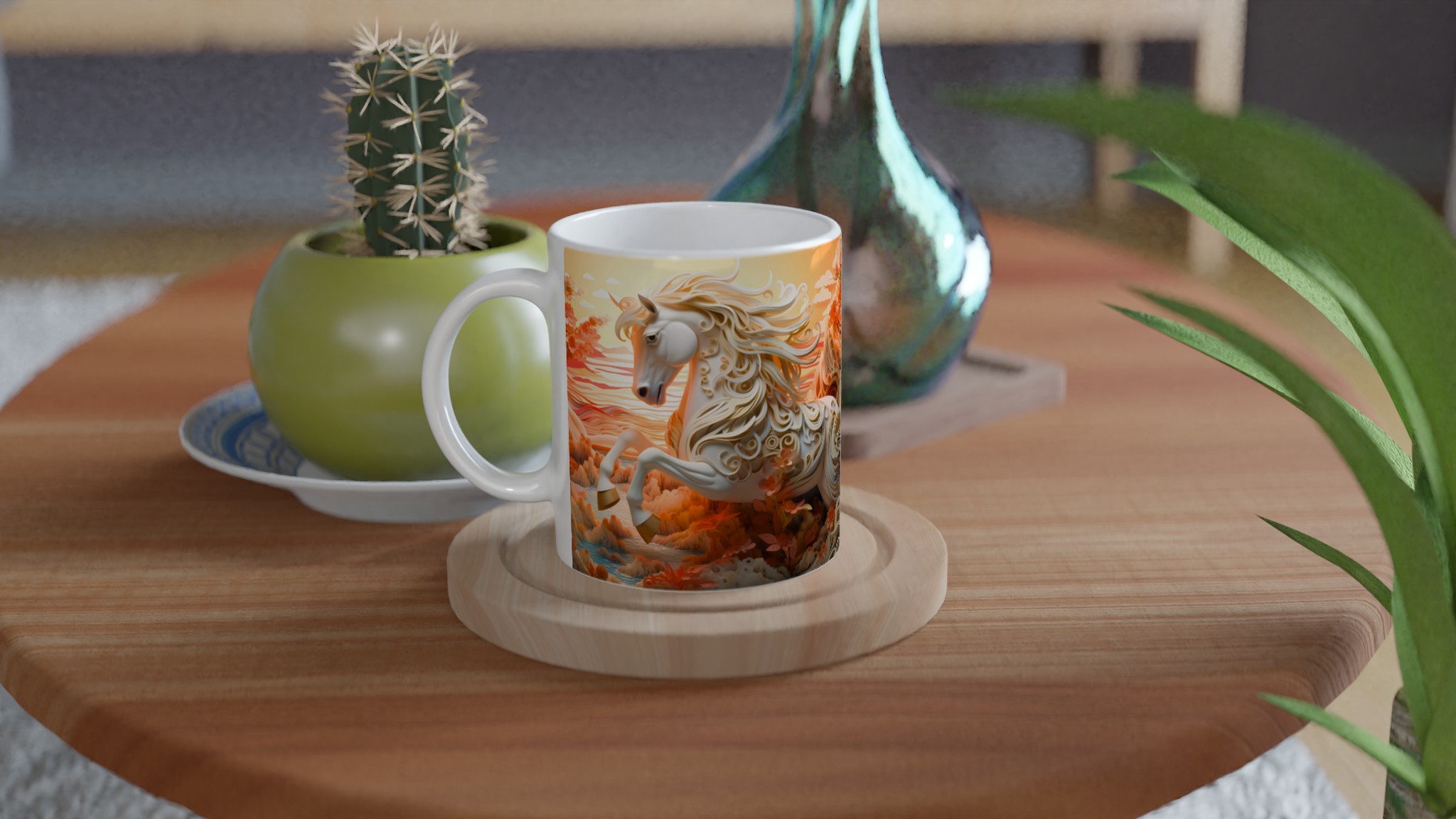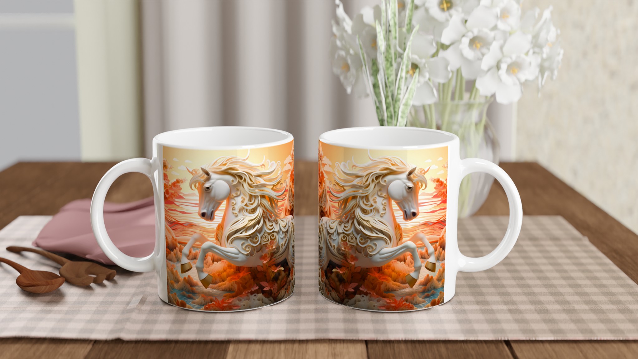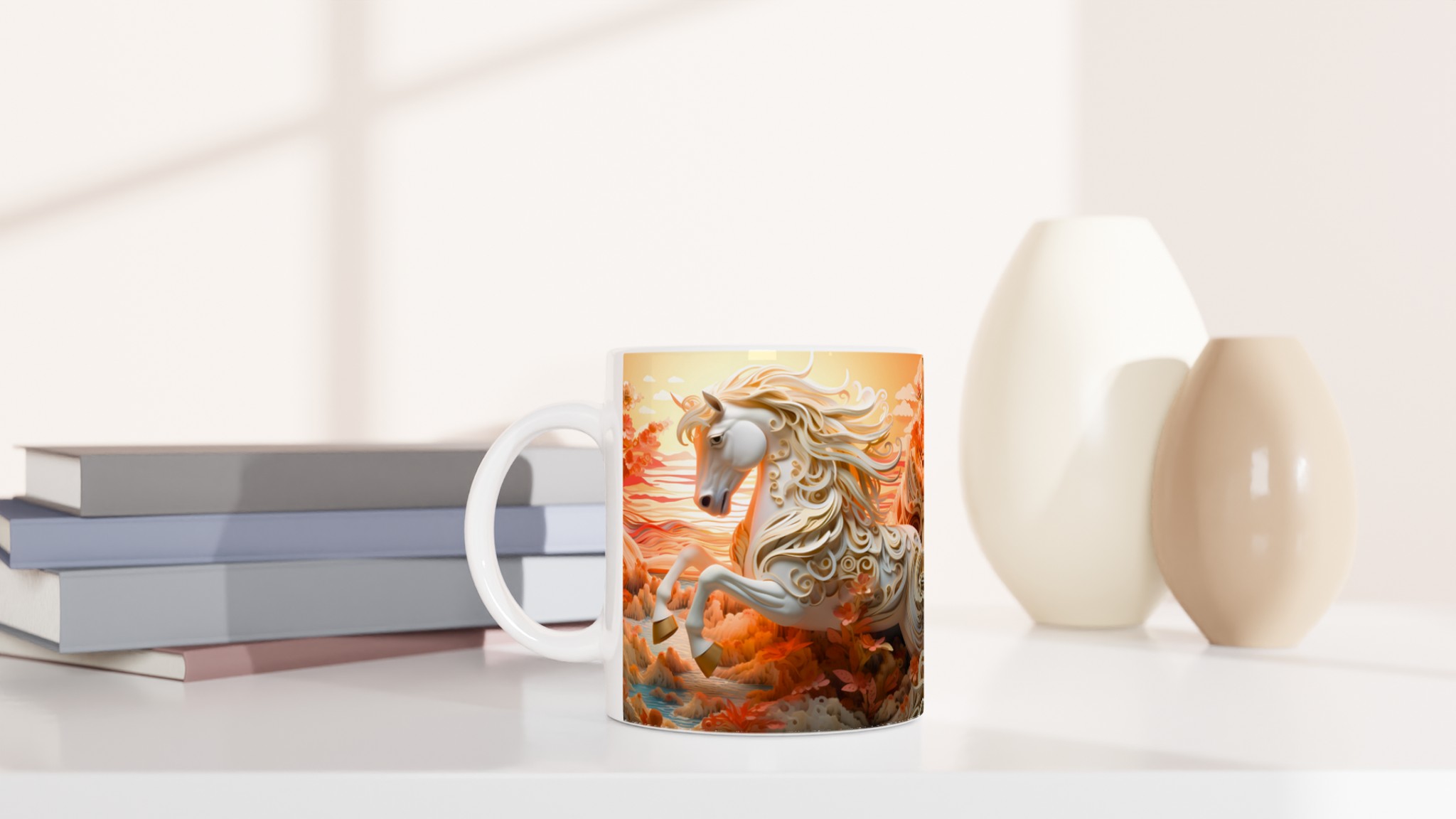 Stig in i en värld av fantasi varje gång du tar en klunk med vår förtrollande Pegasus Keramikmugg. Inspirerad av bilden av majestätiska vita pegasusar som galopperar genom ett surrealistiskt, drömskt landskap av orangea och korallfärgade nyanser, förvandlar denna mugg din fikastund till ett magiskt ögonblick. Den blanka vita ytan framhäver illustrationens eteriska skönhet med klara och levande färger, och håller sig lika fin även efter otaliga turer i mikron och diskmaskinen.