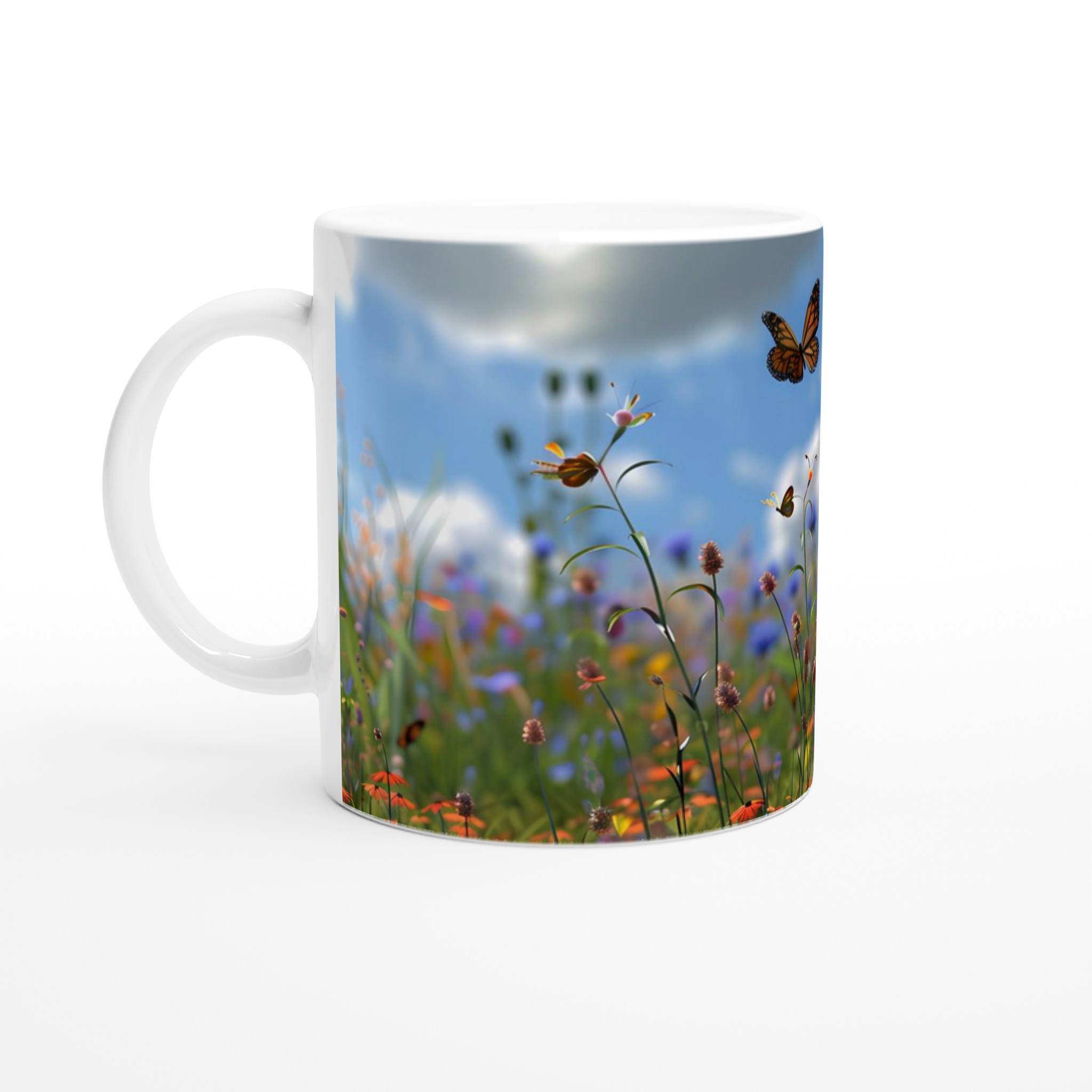 Muggen rymmer 11 oz (ca 3,25 dl), en lagom storlek för både jobb och hemmabruk. Den passar lika bra som en personlig vardagsmugg som en uppskattad present till familj, vänner eller kollegor som älskar katter och vackra naturmotiv. Ge bort en bit av denna magiska äng till någon du tycker om, eller unna dig själv en mugg som lyser upp din dag.