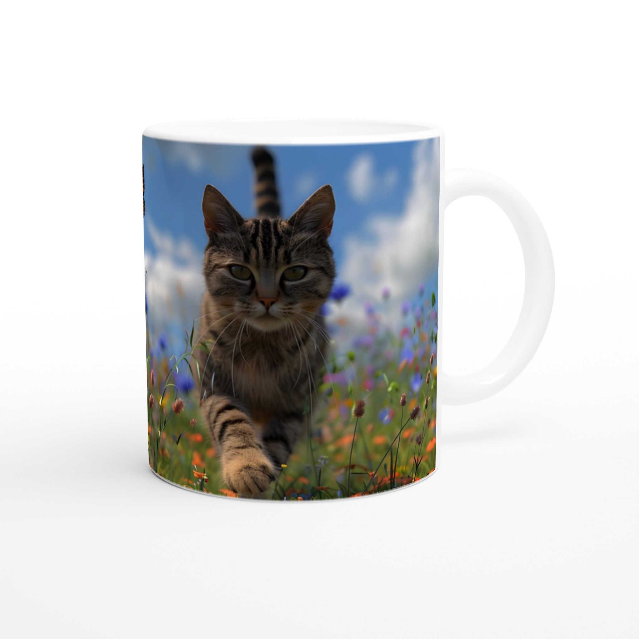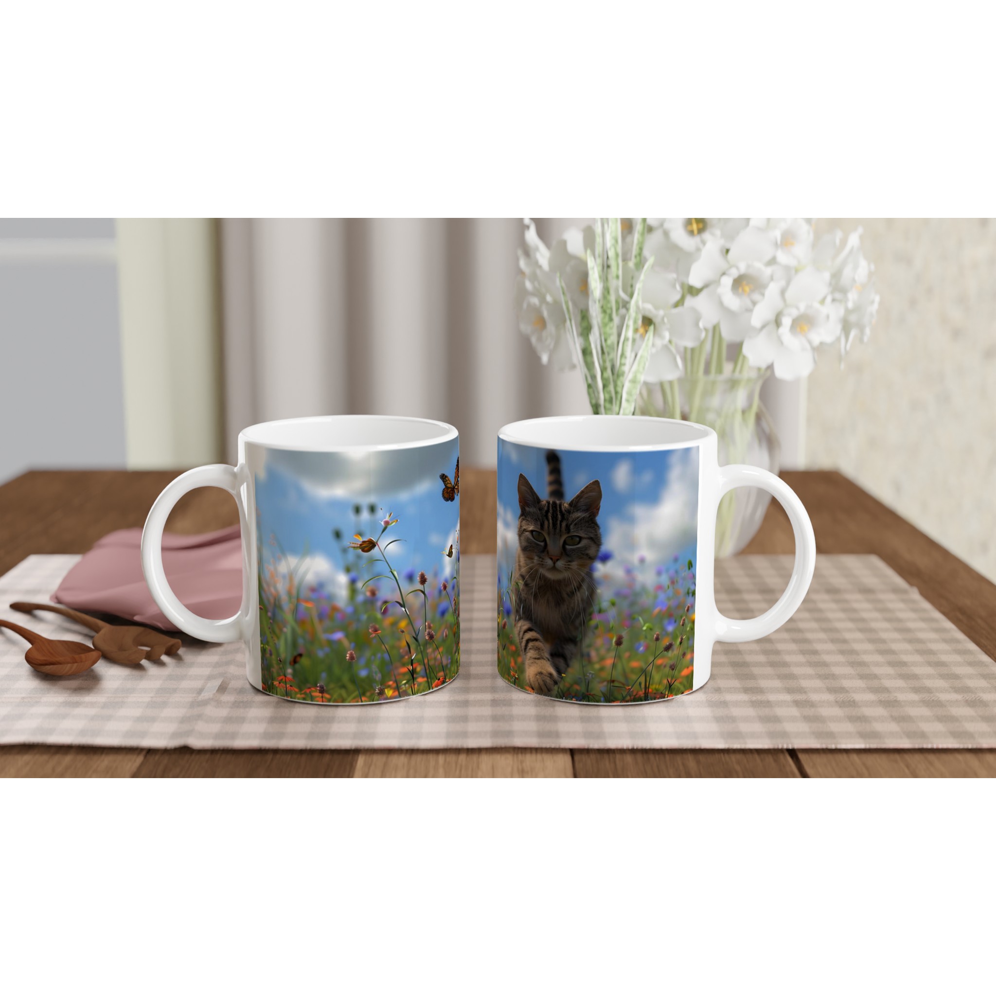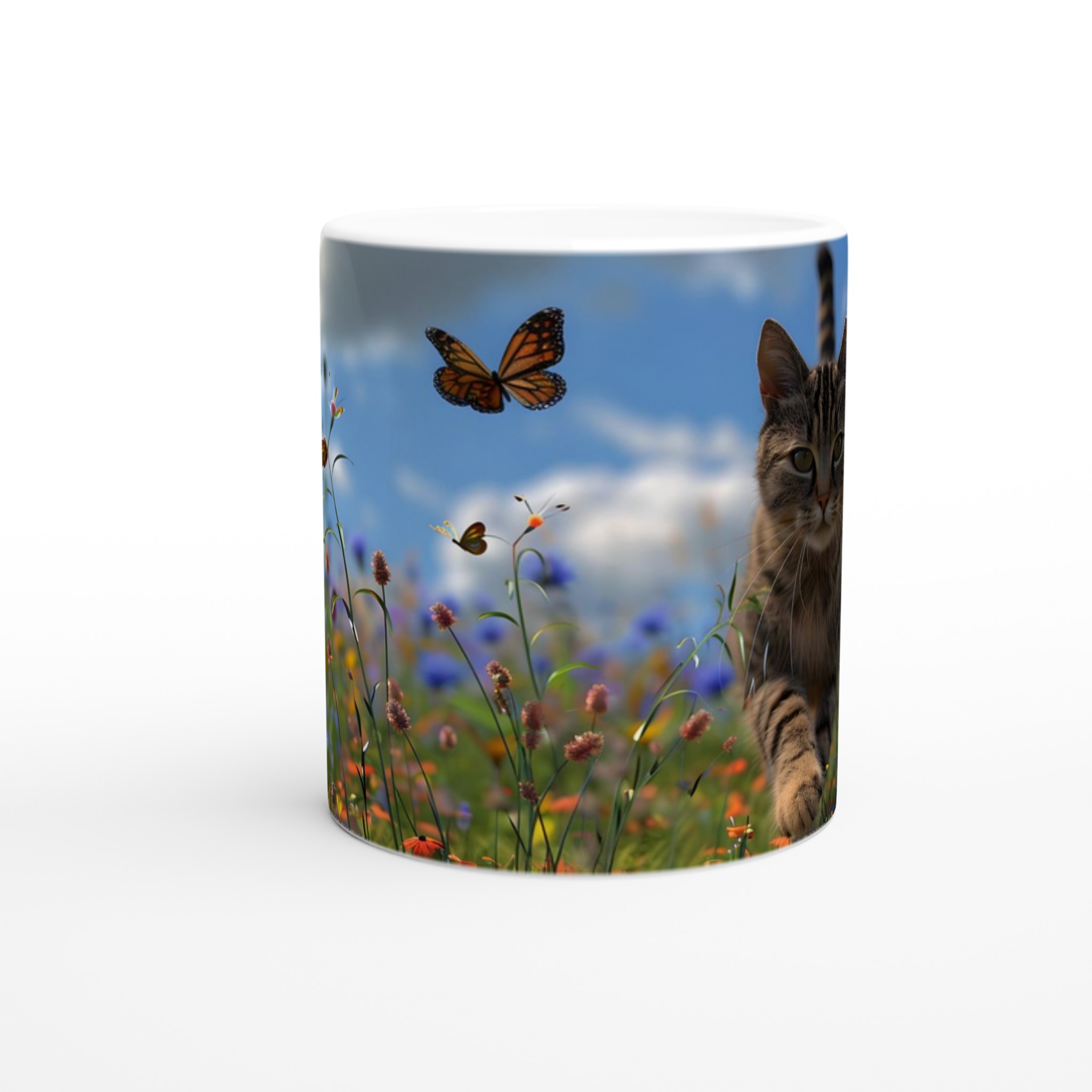 Föreställ dig en solig eftermiddag, en nyfiken katt som smyger genom en blomstrande äng, med fjärilar som dansar i luften. Denna charmiga keramikmugg fångar den idylliska känslan av sommar och lekfullhet. Perfekt för alla dagens stunder – morgonkaffet, en värmande kopp te eller en härlig varm choklad. Låt dig svepas med till en värld av lugn och glädje varje gång du tar en klunk.