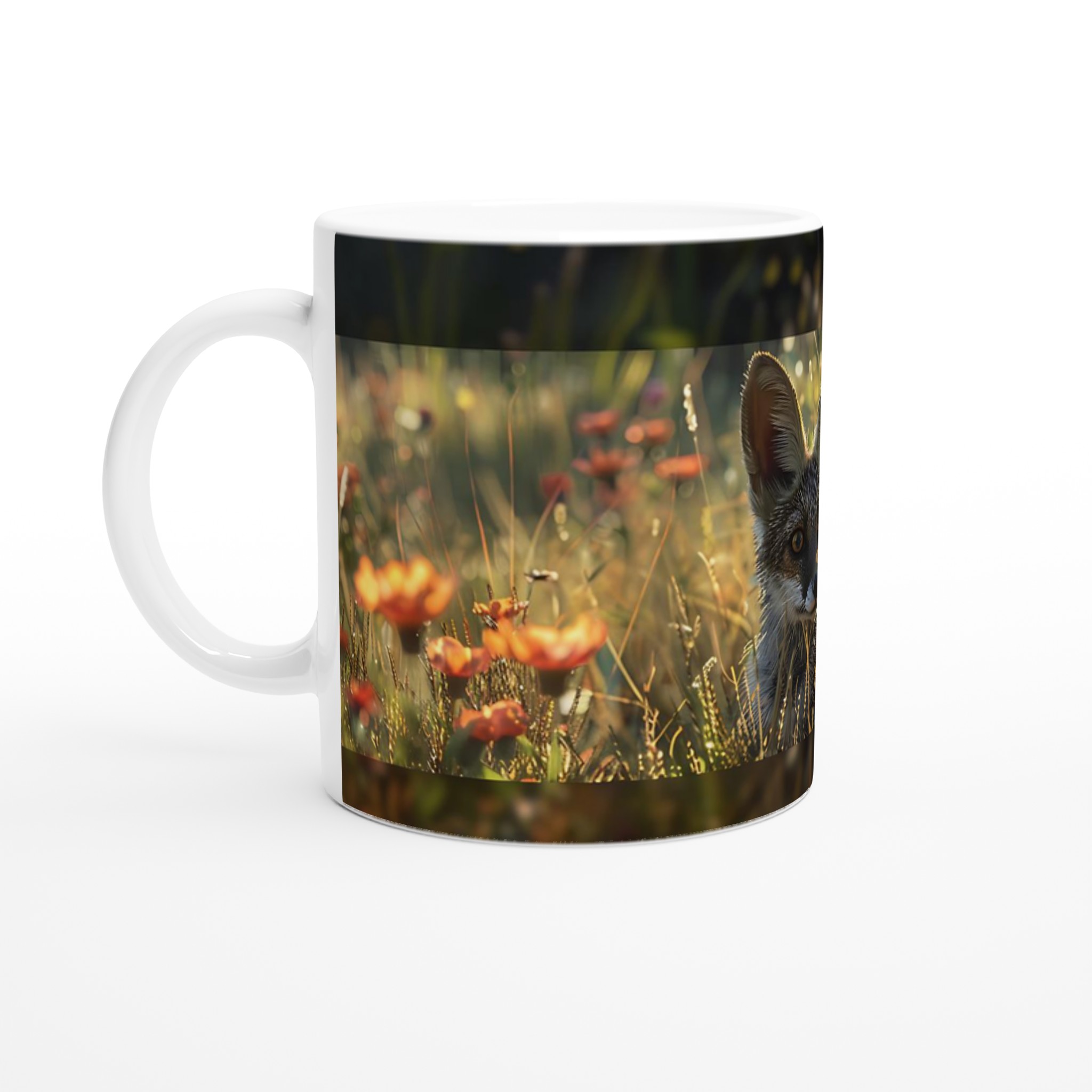 Vår ”Förlorad i Naturen”-mugg fångar den vackra stämningen av en ung räv som tittar fram ur ett fält av solkyssta orange blommor och gyllene gräs. En perfekt mugg för naturälskaren eller den som vill ha en touch av lugn och vildmark i sin vardag. Låt den bli din dagliga påminnelse om naturens skönhet.