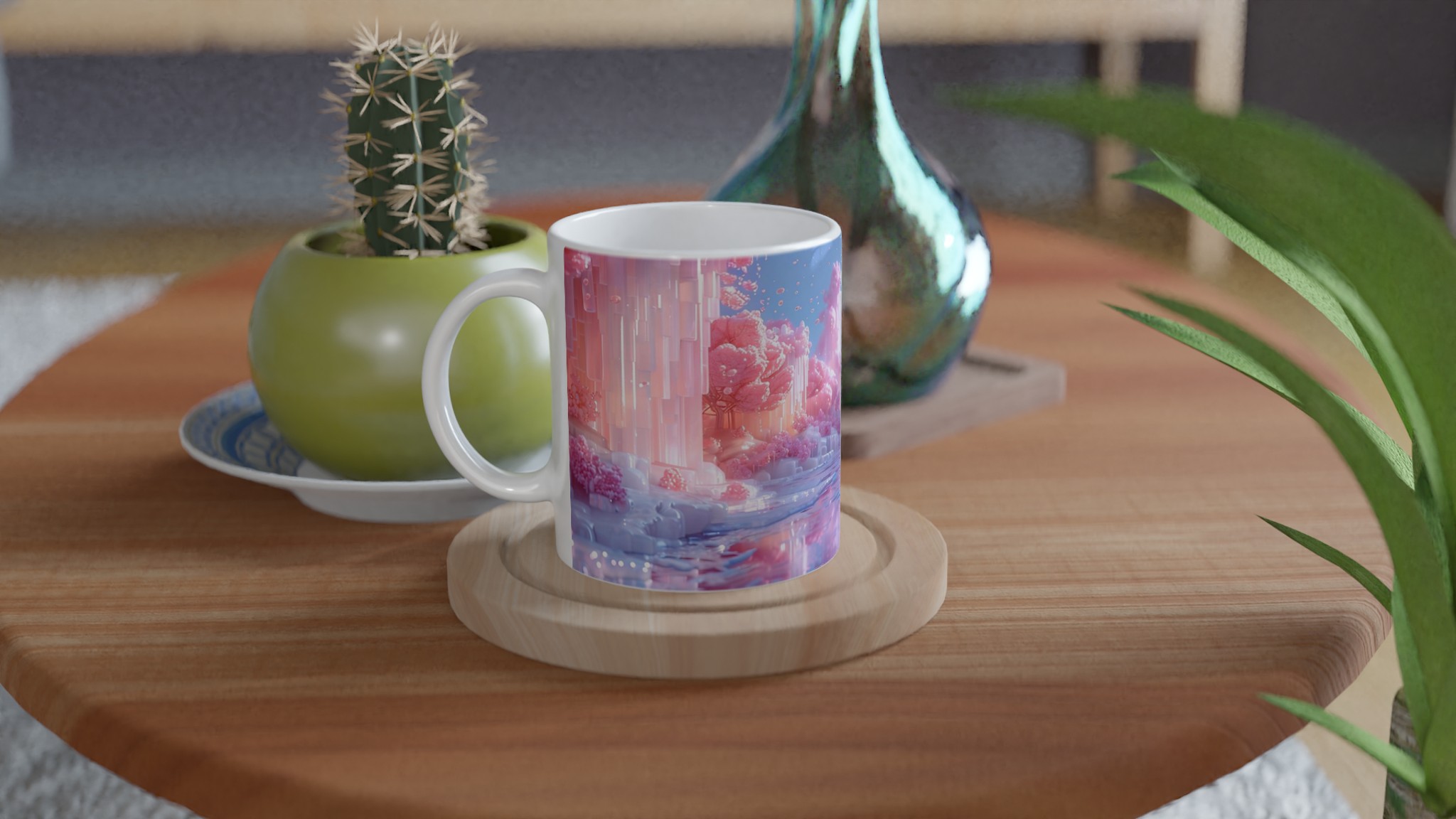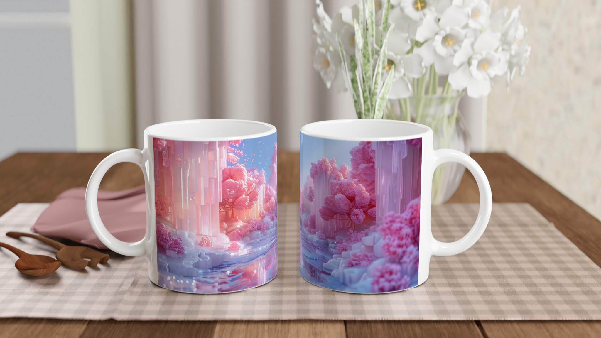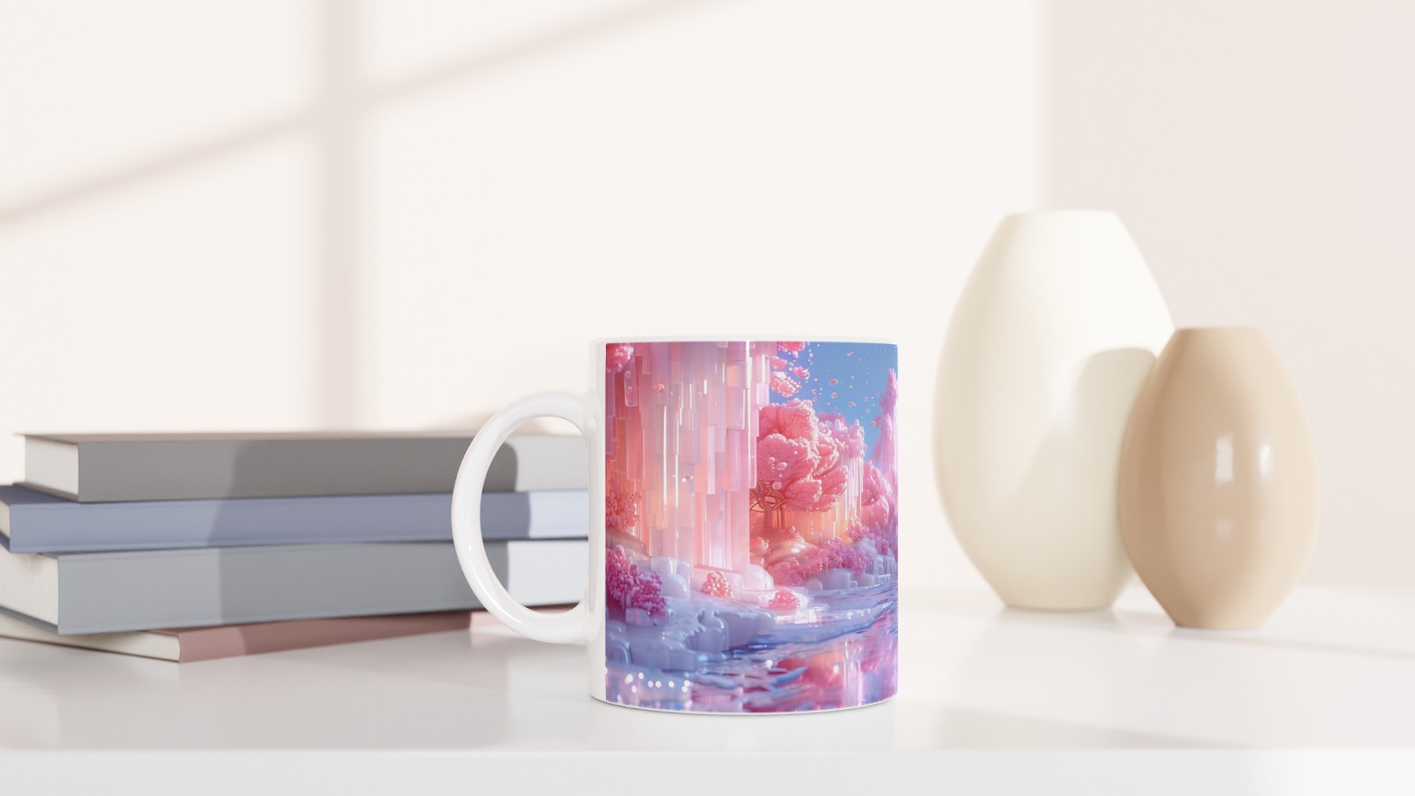 Föreställ dig en värld badad i pastellrosa och skimrande blått, där luften vibrerar av magi. Med vår ”Förlorat Paradis” keramiska mugg tar du med dig en bit av den drömmen in i din vardag. Denna stilrena mugg blir snabbt en favorit, perfekt för morgonkaffet, kvällens varma choklad eller när du bara vill njuta av en lugn stund med en kopp te.
