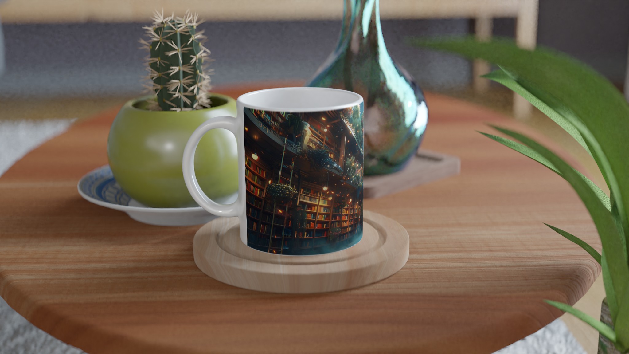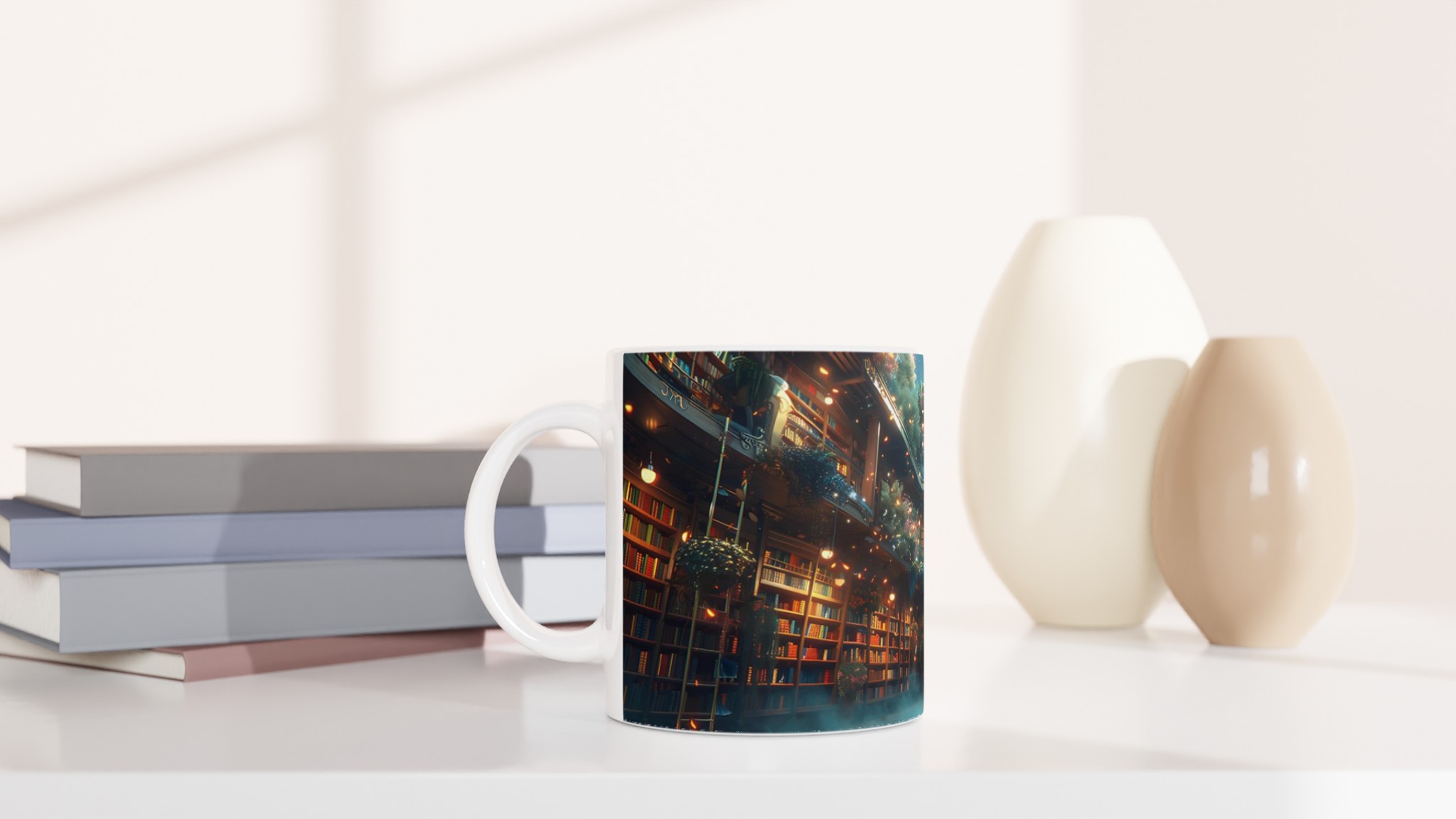 Stig in i en värld av förtrollning med denna magiska keramiska mugg, inspirerad av ett drömskt bibliotek under en stjärnklar himmel. Föreställ dig att du sitter omgiven av grönskande växter, levande ljus och oändliga berättelser – precis den känsla denna mugg framkallar. Den är mer än bara en kopp; den är en inbjudan till lugn och inspiration, perfekt för morgonkaffet, kvällens varma choklad eller när du bara vill njuta av en kopp te medan du drömmer dig bort.