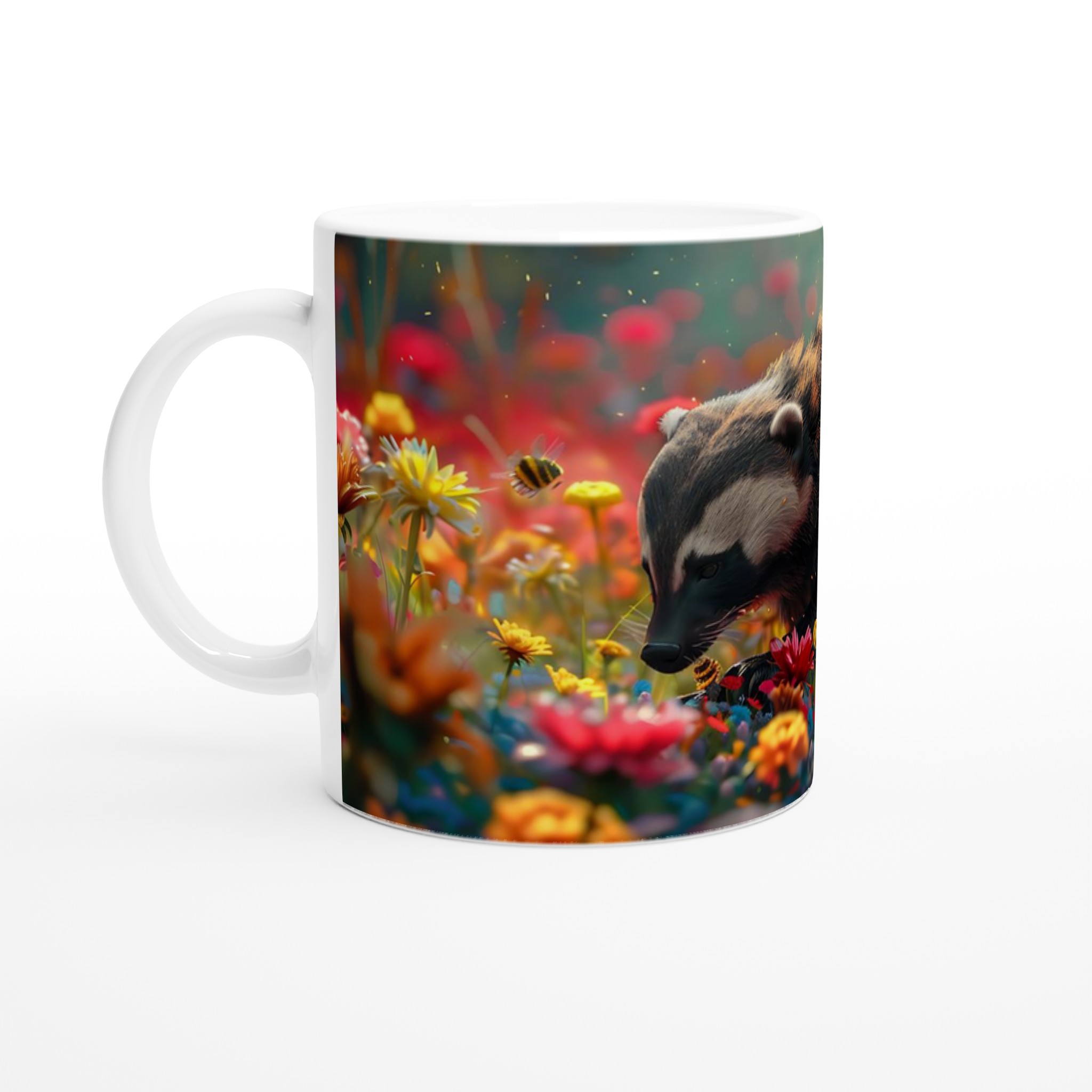 Föreställ dig en magisk morgon i en trädgård full av liv, där en nyfiken grävling strosar bland färgsprakande blommor under en mild, gyllene dagg. Denna mugg fångar den underbara känslan av lugn och naturens skönhet, med en konstnärlig och drömlik illustration som förvandlar varje sipp till en stunds avkoppling. En perfekt present för naturälskaren eller den som uppskattar en touch av fantasi i vardagen.