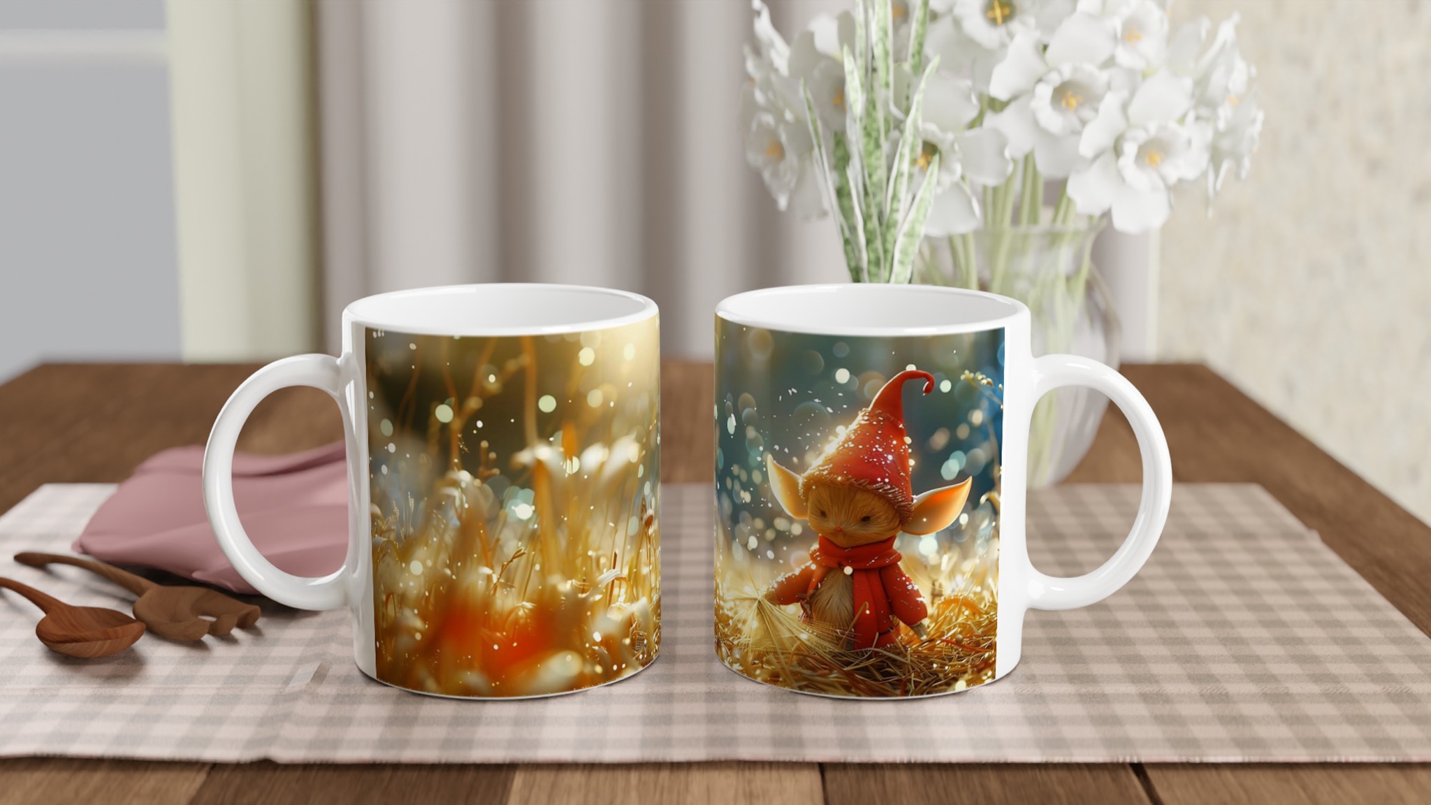 Låt dig svepas med in i en värld av förtrollning med denna magiska keramiska mugg. Den fångar den varma, drömska stämningen från en sagolik skog, komplett med glittrande ljus och en charmig liten figur som väcker fantasin till liv. Perfekt för morgonkaffet, kvällens varma choklad eller när du bara vill njuta av en kopp te och drömma dig bort.