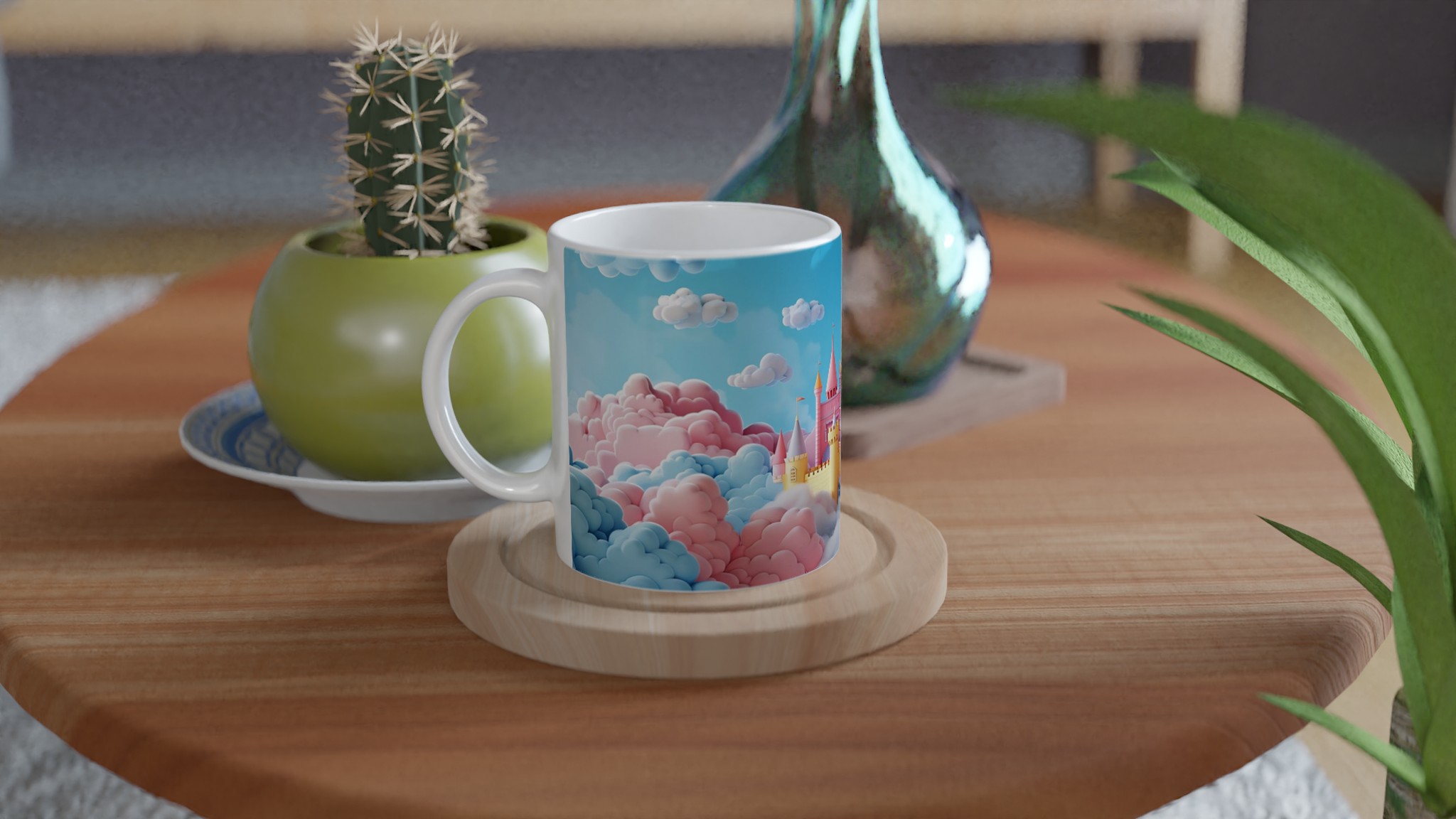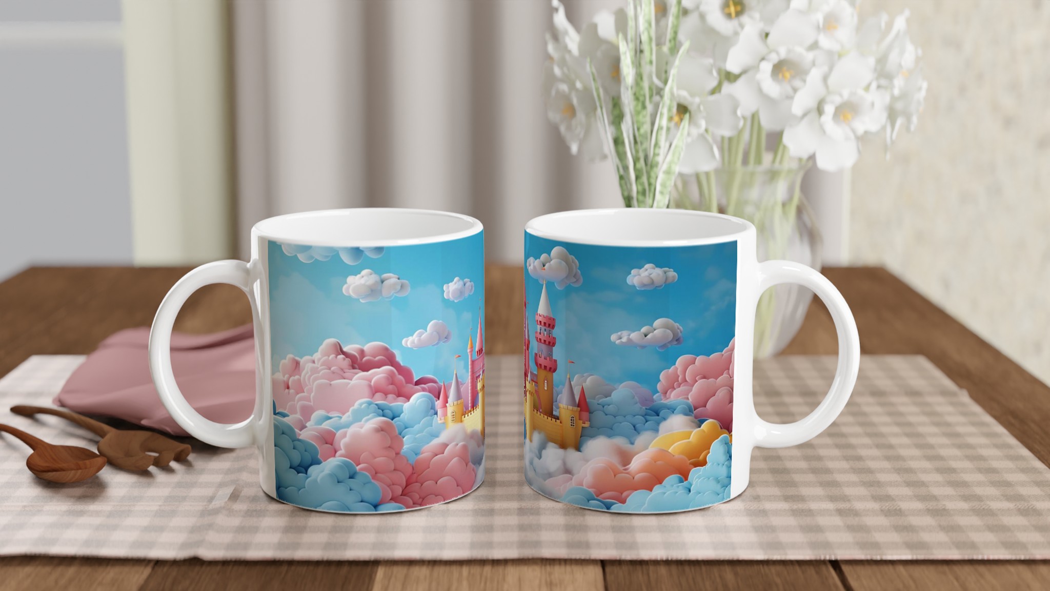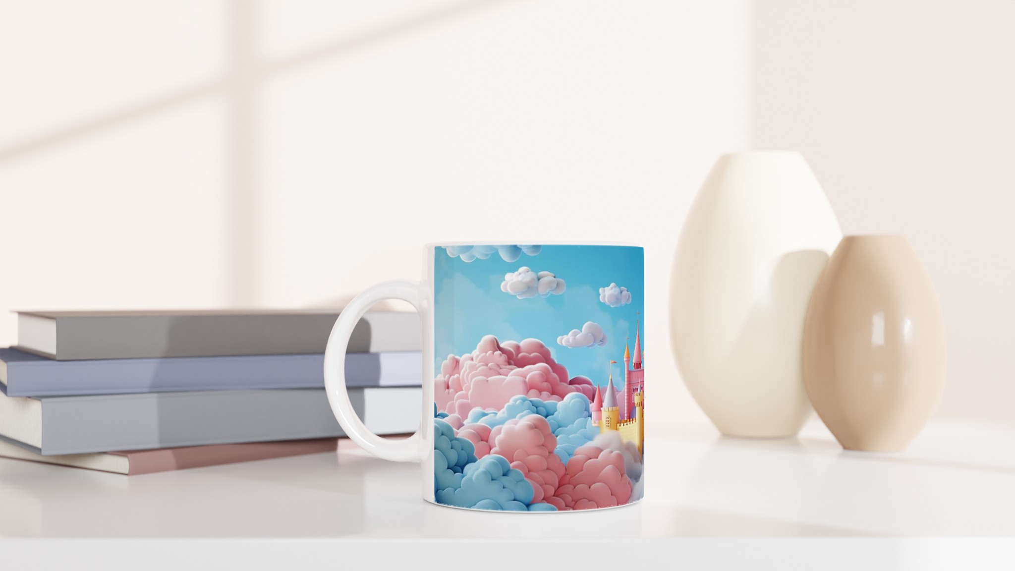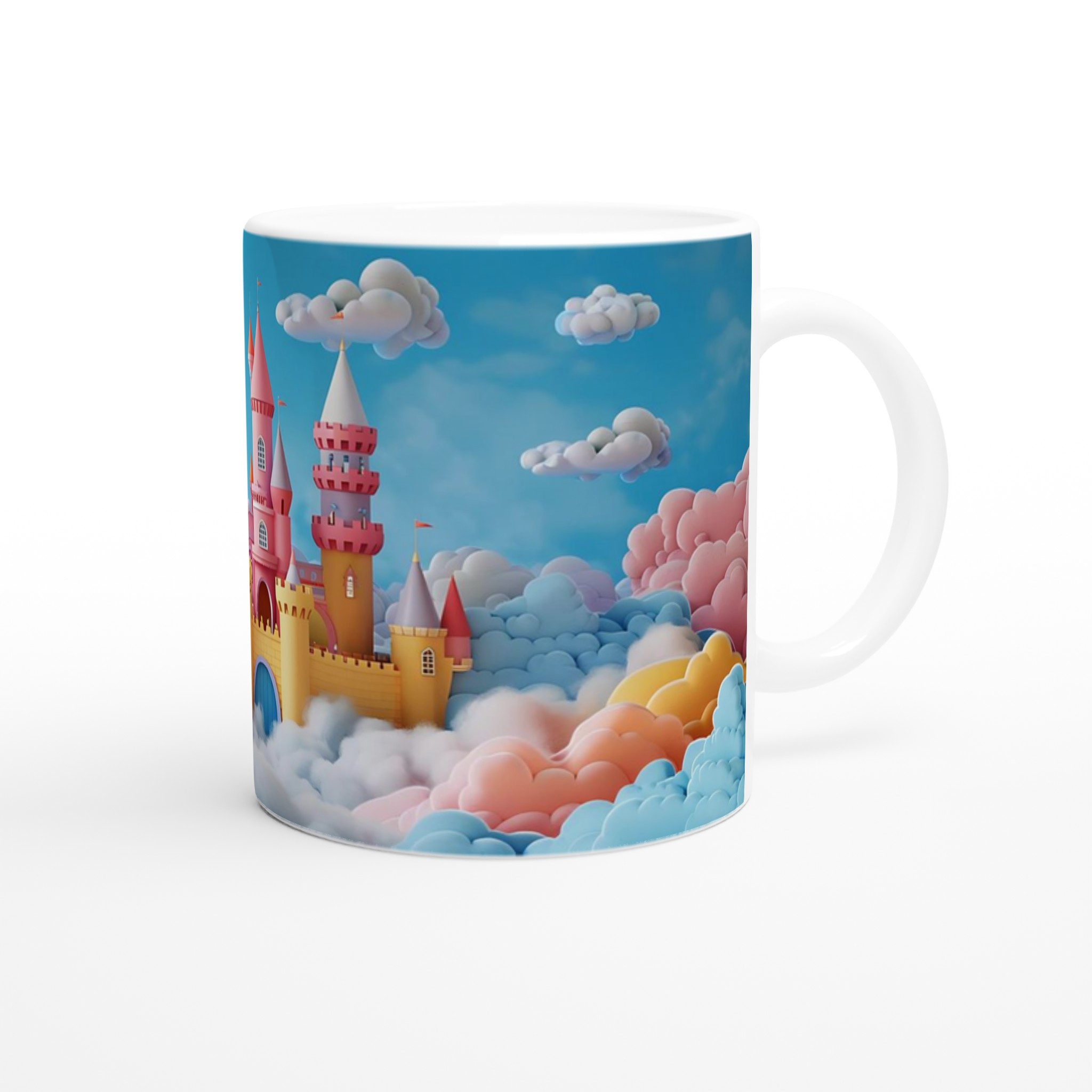 Dröm dig bort till ett sagoland med varje klunk från denna förtrollande keramiska mugg. Inspirerad av en värld fylld av pastellfärgade moln och storslagna sagoslott, förvandlar denna mugg varje fikastund till en magisk flykt. Perfekt för morgonkaffet, kvällens varma choklad eller när du bara vill njuta av en kopp te i en riktigt drömlik atmosfär.