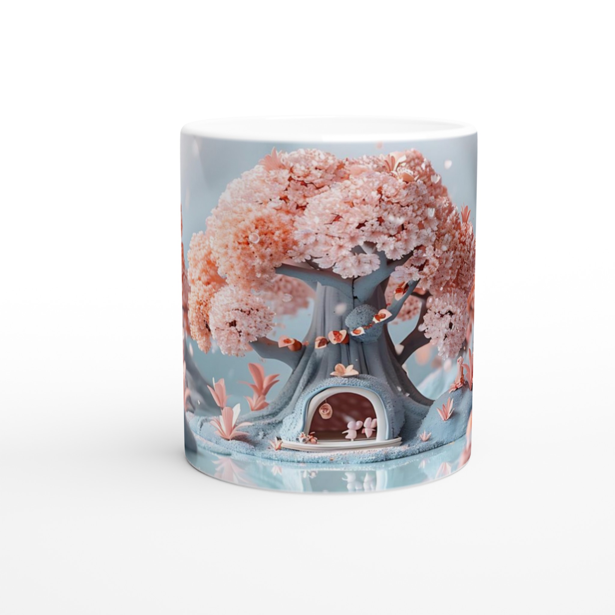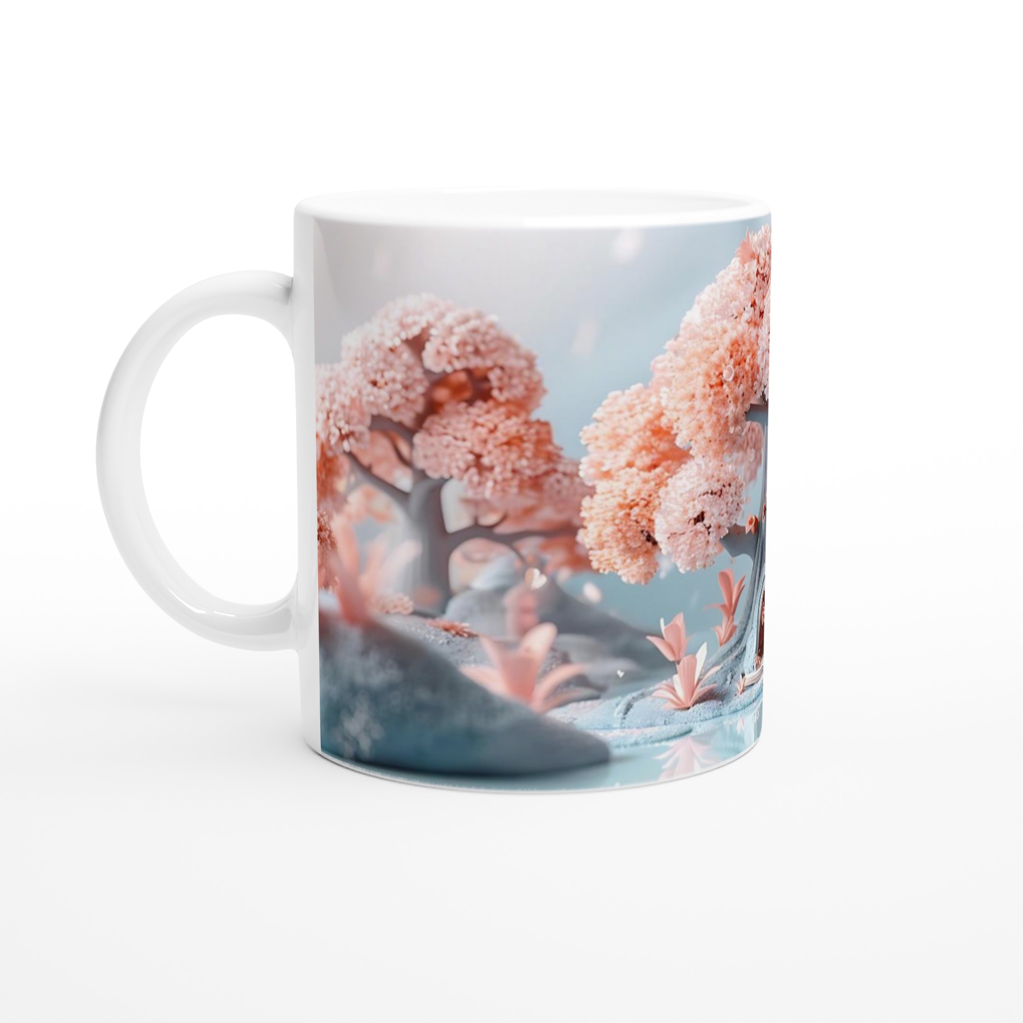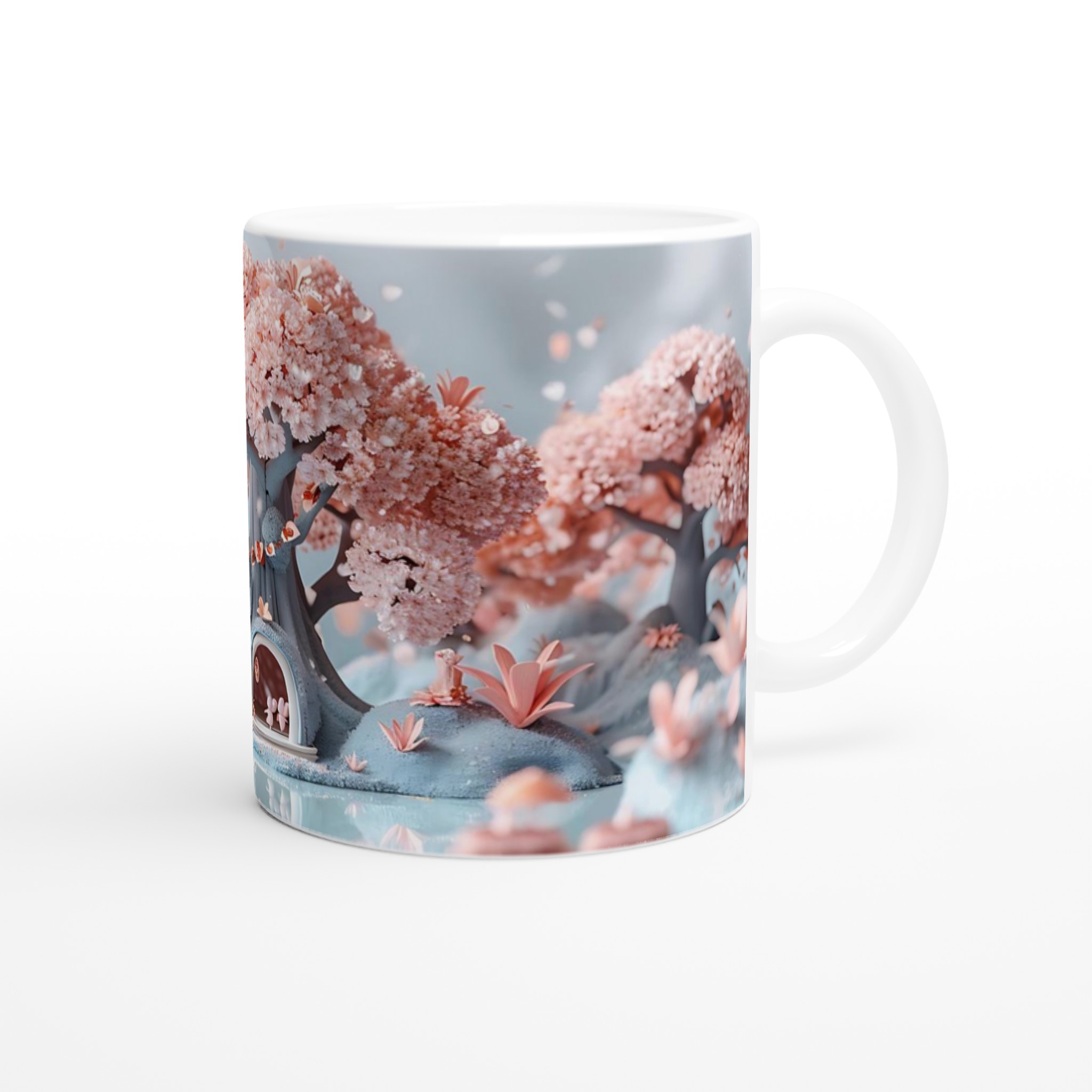 Kliv in i en förtrollad värld varje gång du tar en klunk med denna magiska keramiska mugg, prydd med ett drömskt landskap av blommande sakuraträd i mjuka pasteller. Denna mugg blir snabbt en vardagsfavorit, perfekt för morgonkaffet, kvällens varma choklad eller när du bara vill njuta av en kopp te i en stund av lugn. Den blanka ytan lyfter fram den eteriska designen med klara och levande färger, som håller sig fina även efter många turer i mikron och diskmaskinen.