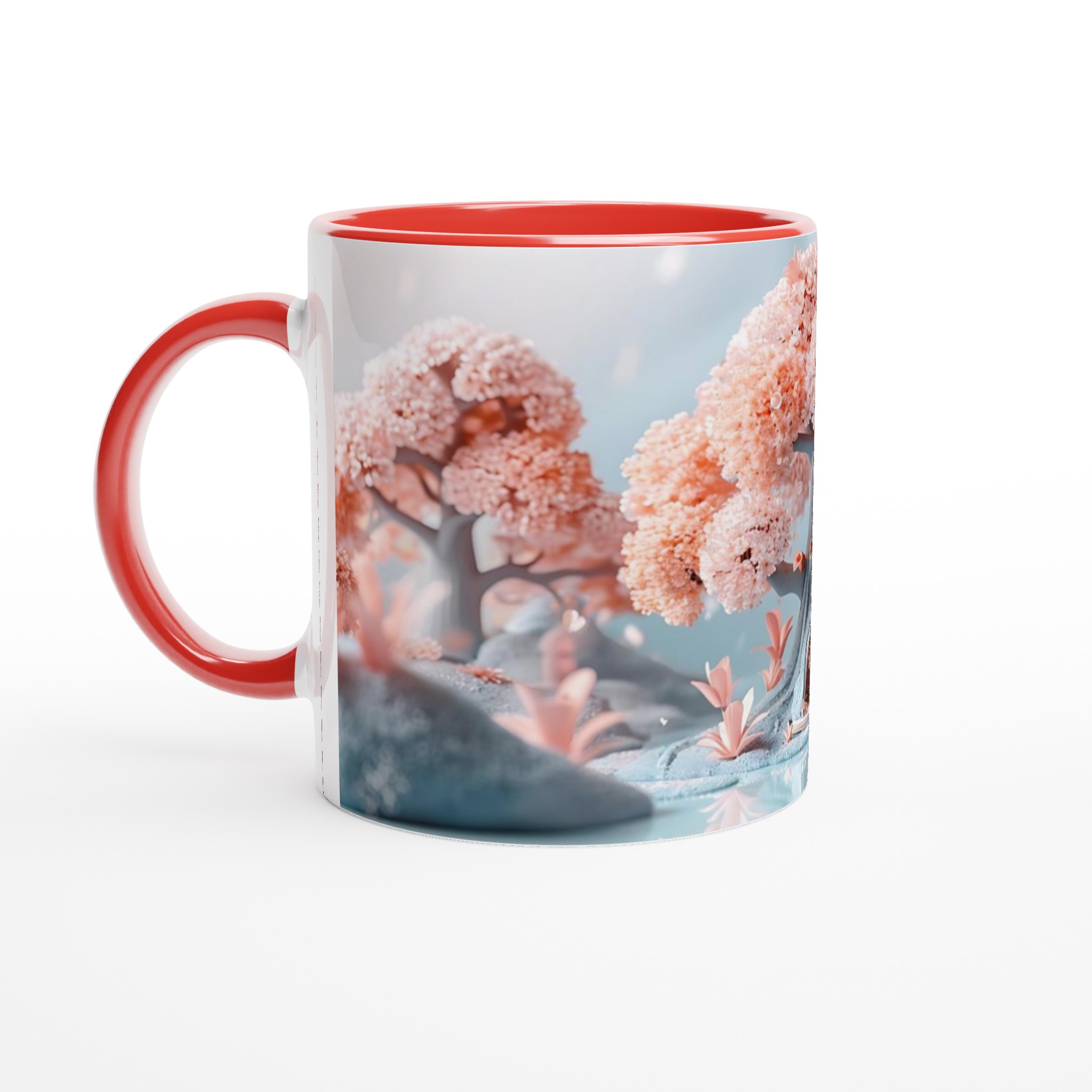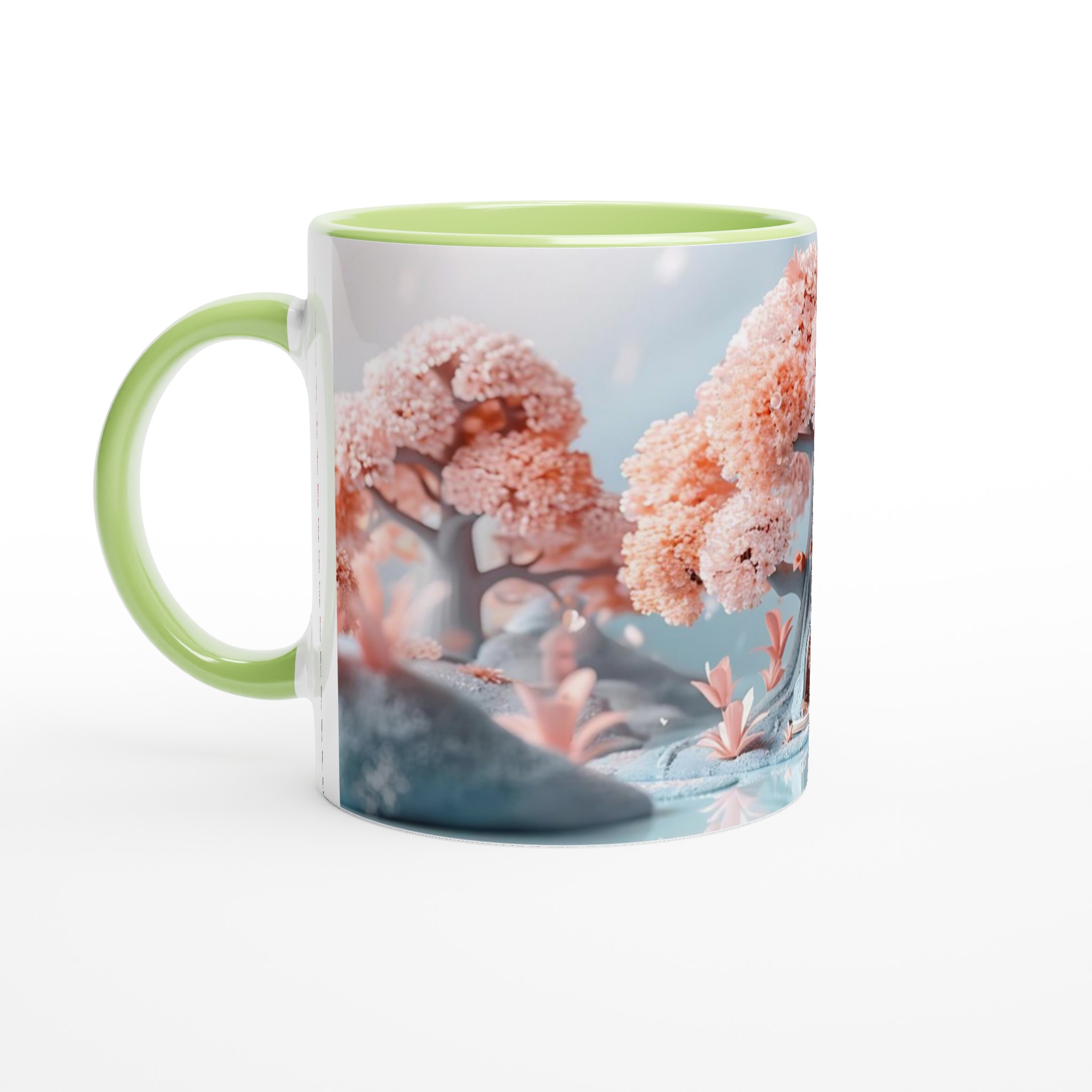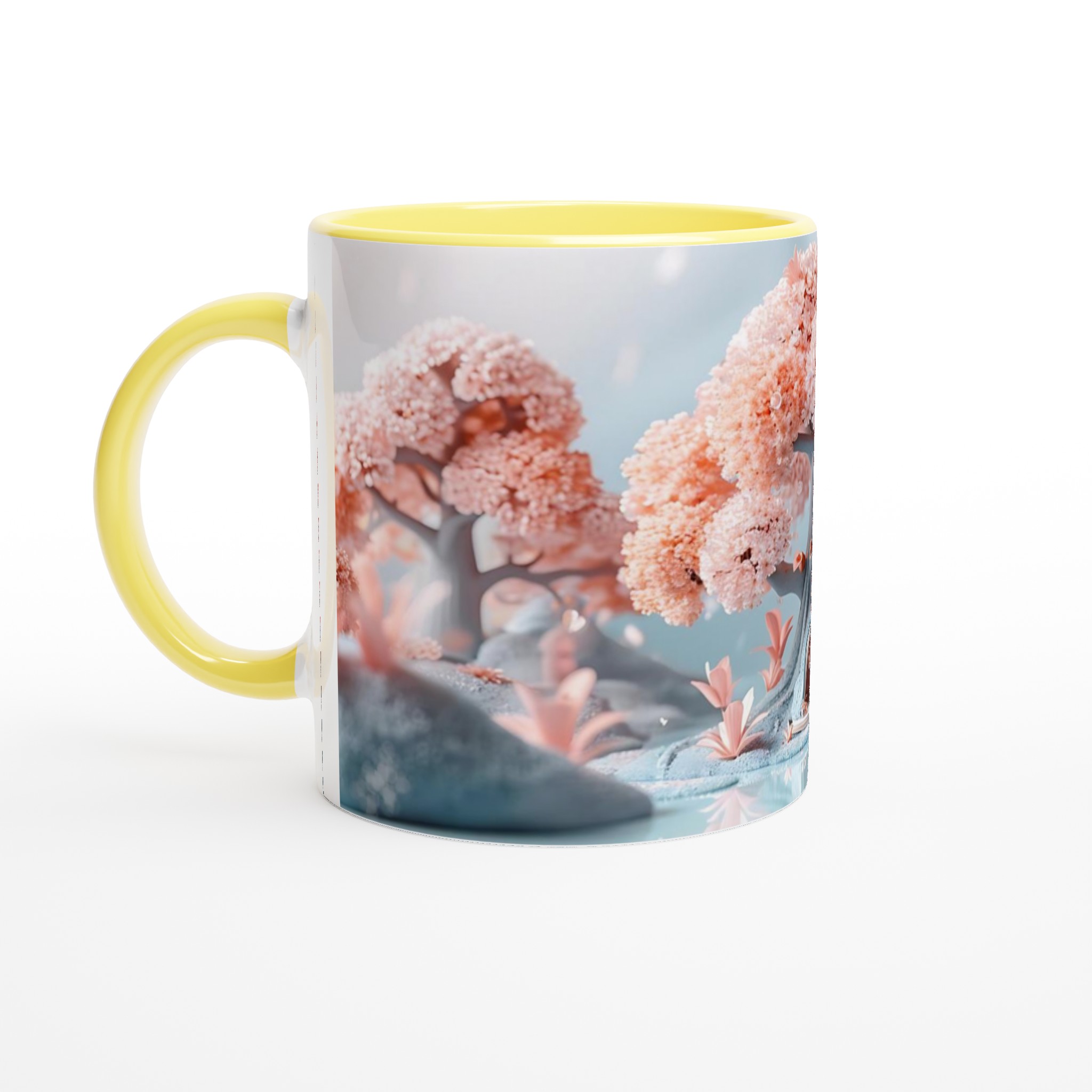 Kliv in i en förtrollad värld varje gång du tar en klunk med denna magiska keramiska mugg, prydd med ett drömskt landskap av blommande sakuraträd i mjuka pasteller. Denna mugg blir snabbt en vardagsfavorit, perfekt för morgonkaffet, kvällens varma choklad eller när du bara vill njuta av en kopp te i en stund av lugn. Den blanka ytan lyfter fram den eteriska designen med klara och levande färger, som håller sig fina även efter många turer i mikron och diskmaskinen.