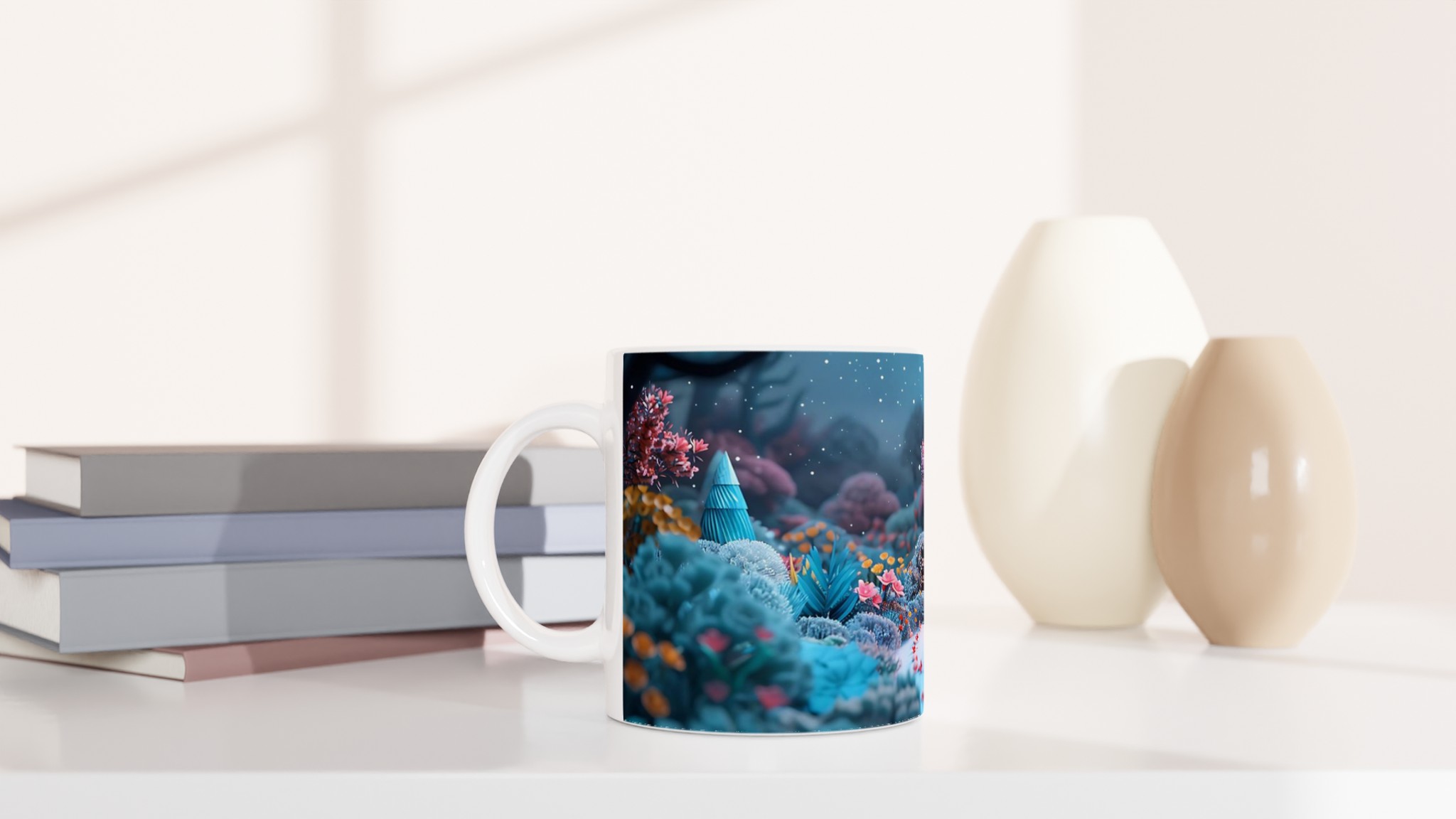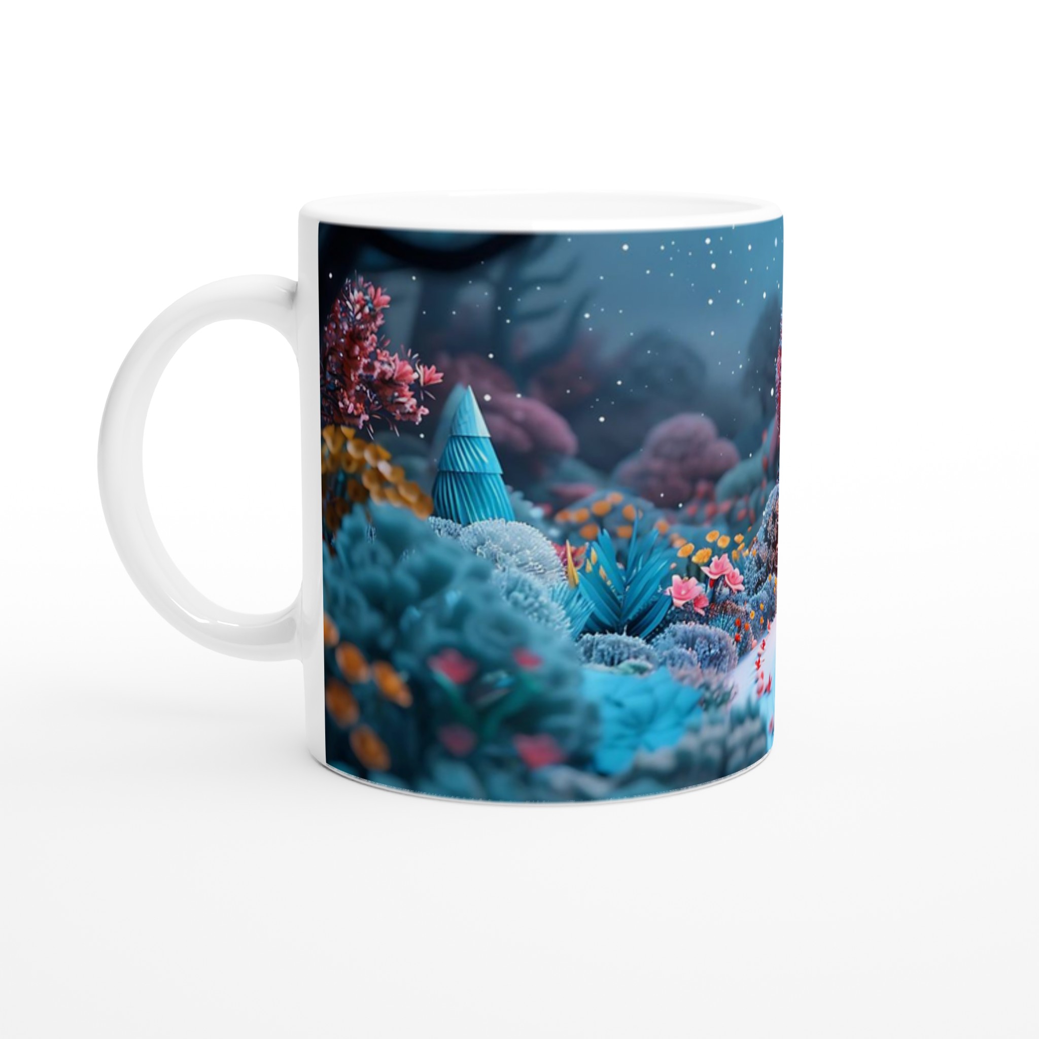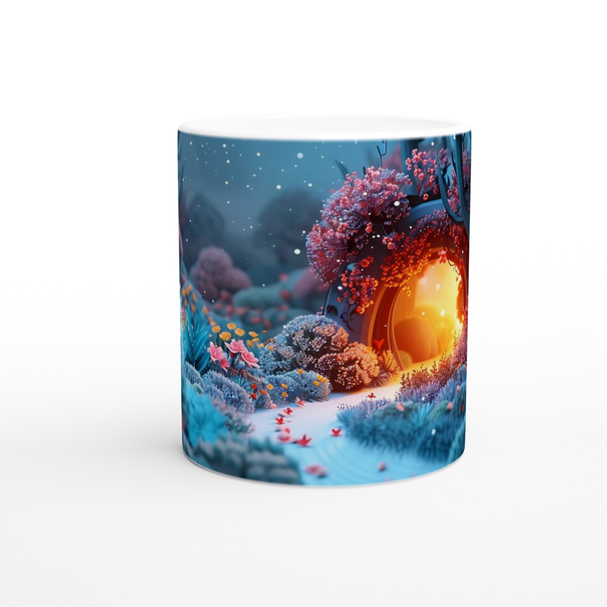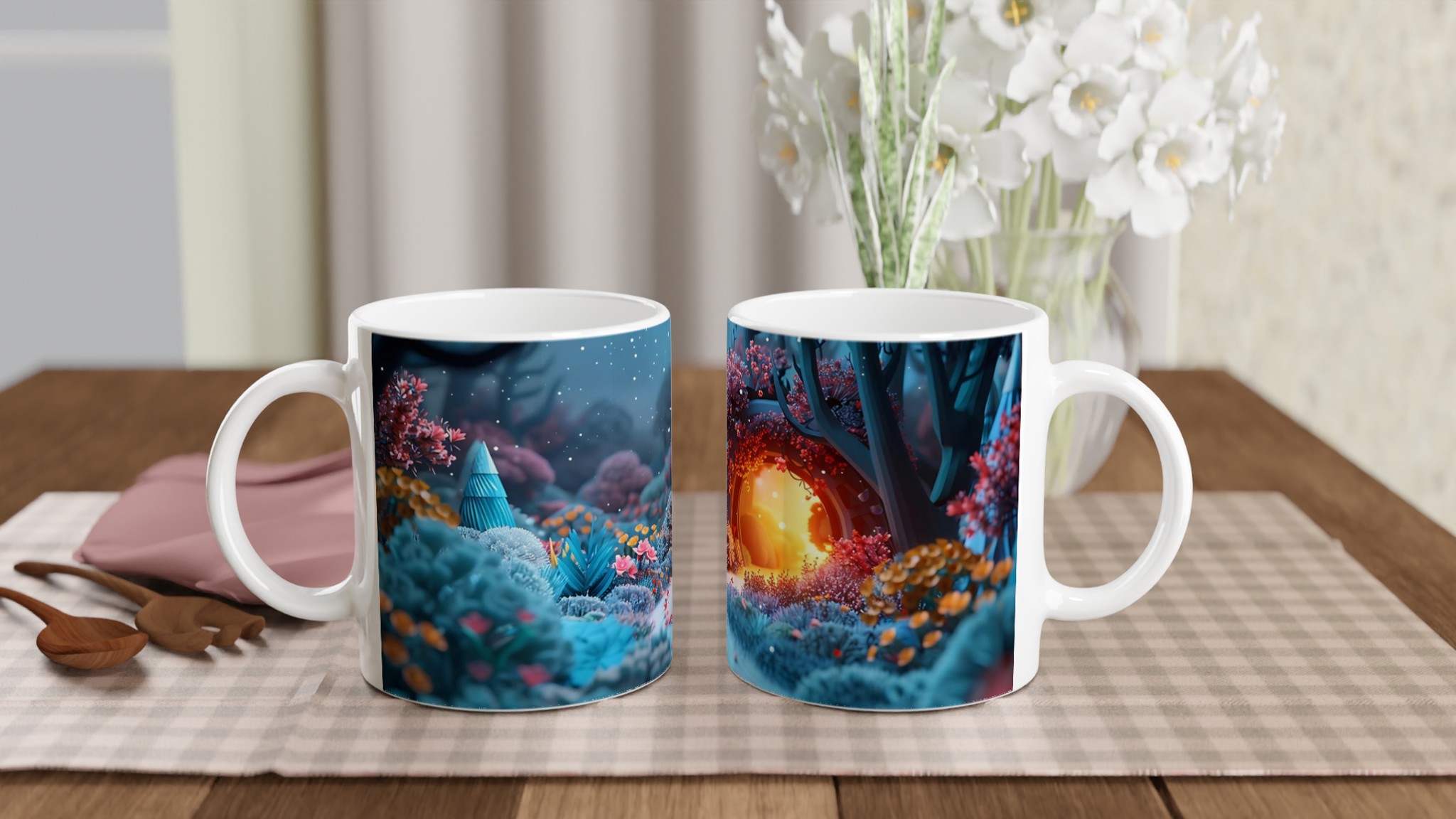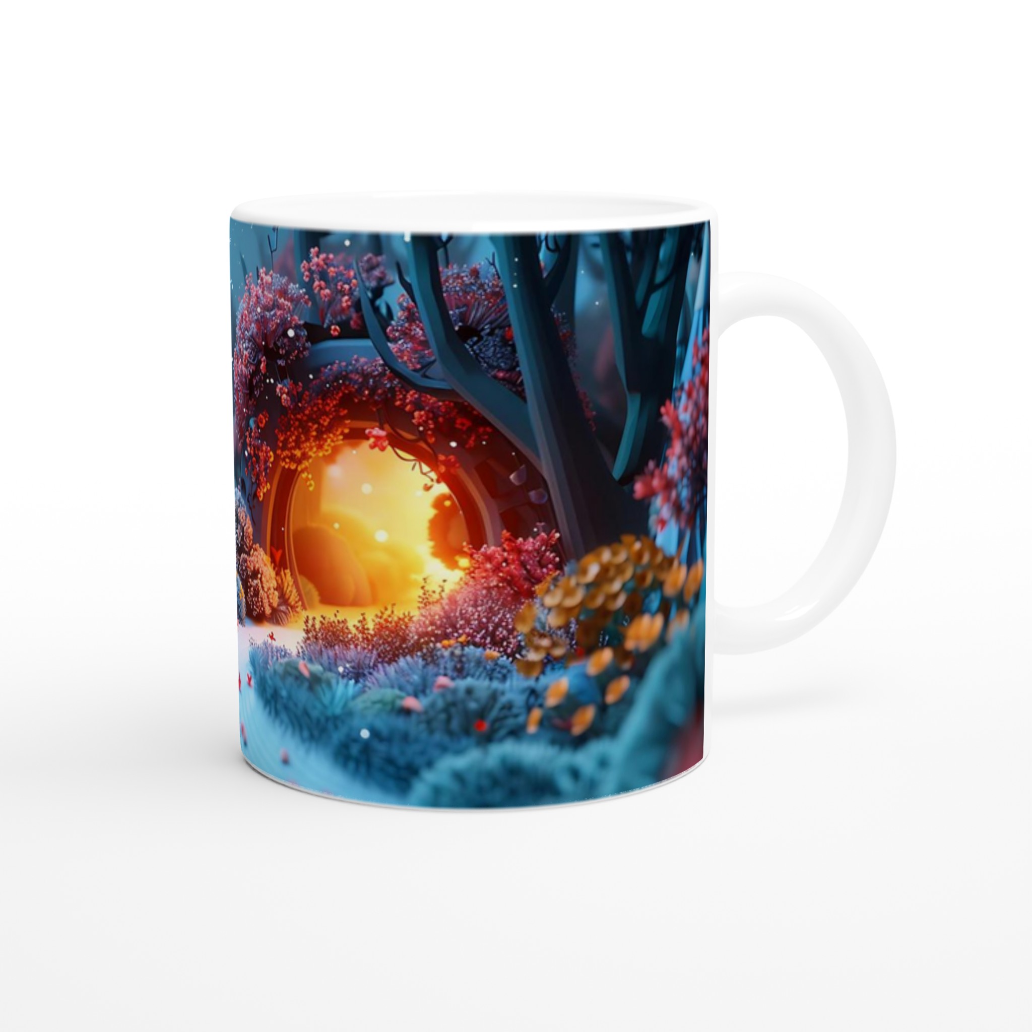 Stig in i en värld av förtrollning varje gång du tar en klunk med denna magiska keramiska mugg. Med en design inspirerad av en hemlig skog full av gnistrande blommor, eteriska ljus och en lockande portal, blir varje fika en flykt till fantasin. Den blanka vita ytan framhäver de drömska färgerna med en otrolig klarhet, vilket garanterar att den förtrollande bilden håller sig levande och vacker, oavsett hur många gånger den följer med dig på äventyr i mikron och diskmaskinen.