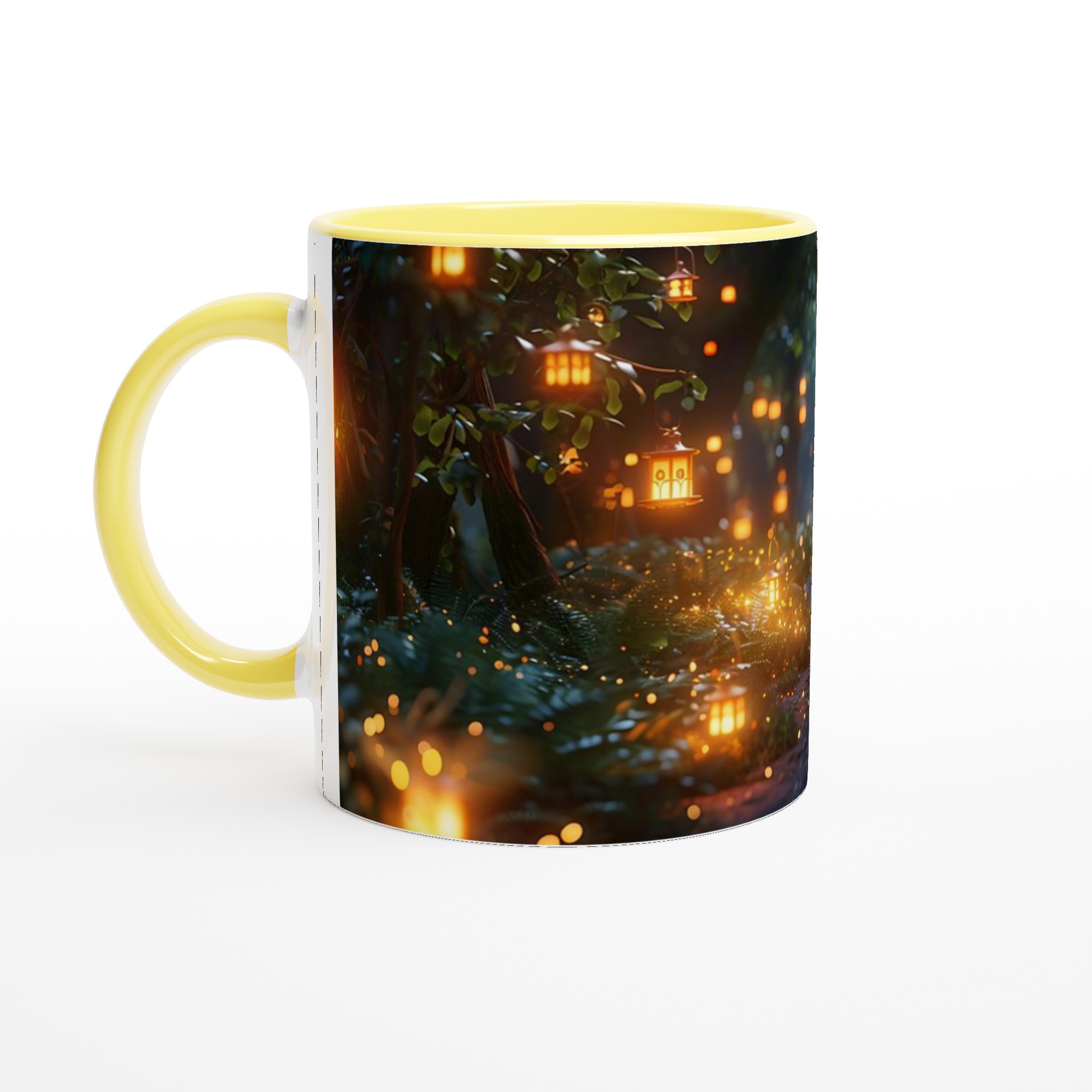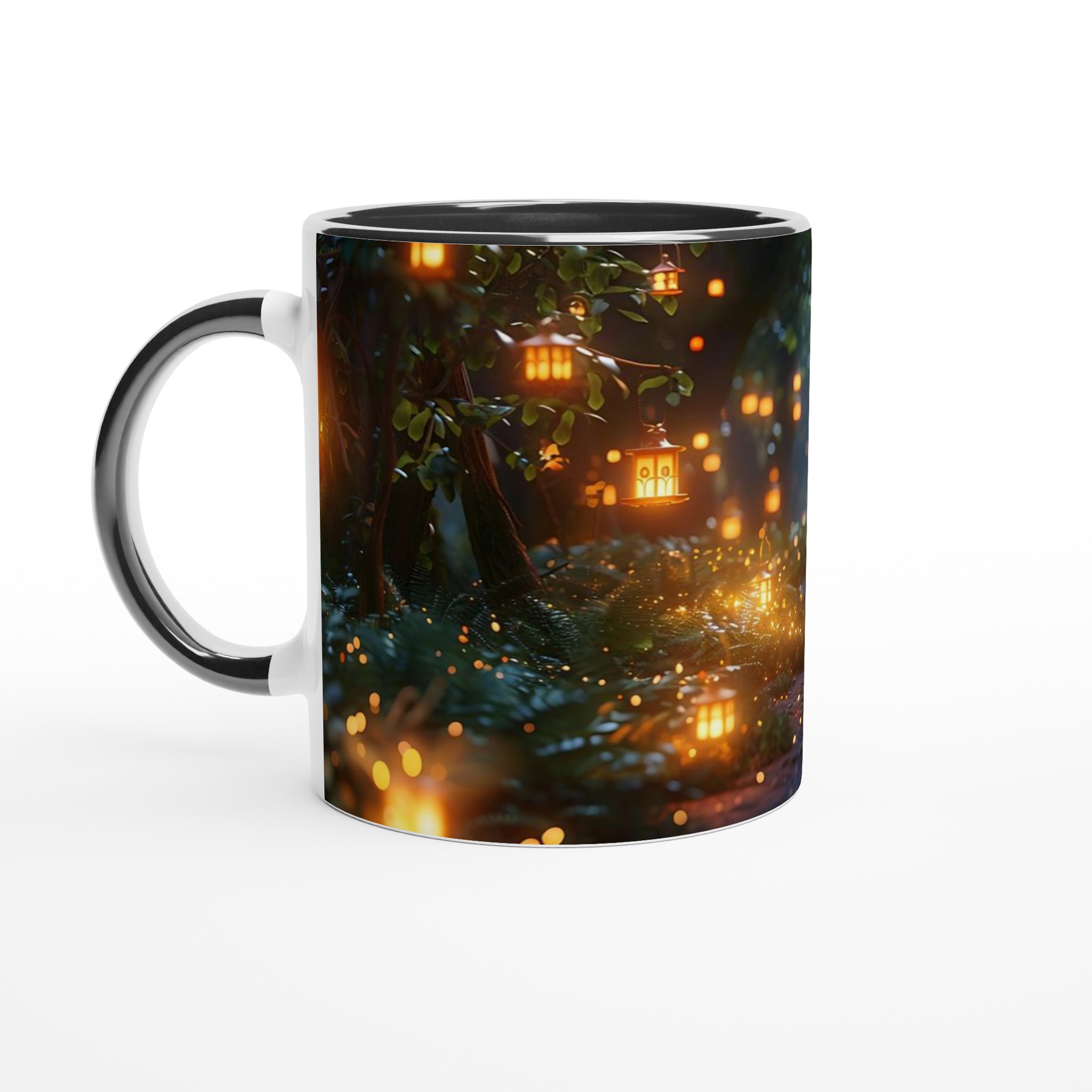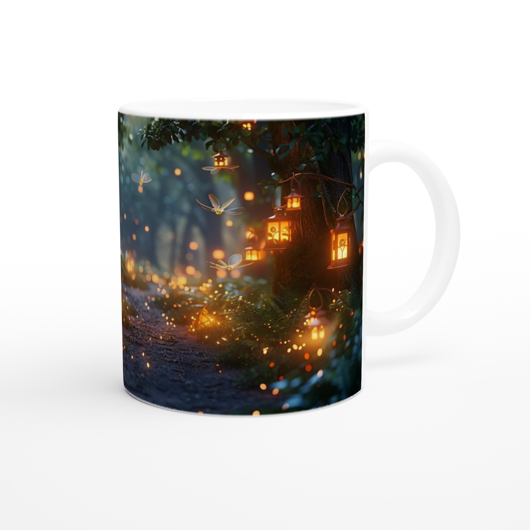 Stig in i en värld av förtrollning med denna magiska keramiska mugg, inspirerad av en glödande skogsstig upplyst av lyktor och eldflugor. Den här stilrena keramiska muggen blir snabbt en vardagsfavorit, perfekt för morgonkaffet, kvällens varma choklad eller när du bara vill njuta av en kopp te. Den blanka vita ytan gör att trycken framhävs med klara och levande färger, som håller sig fina även efter många turer i mikron och diskmaskinen.