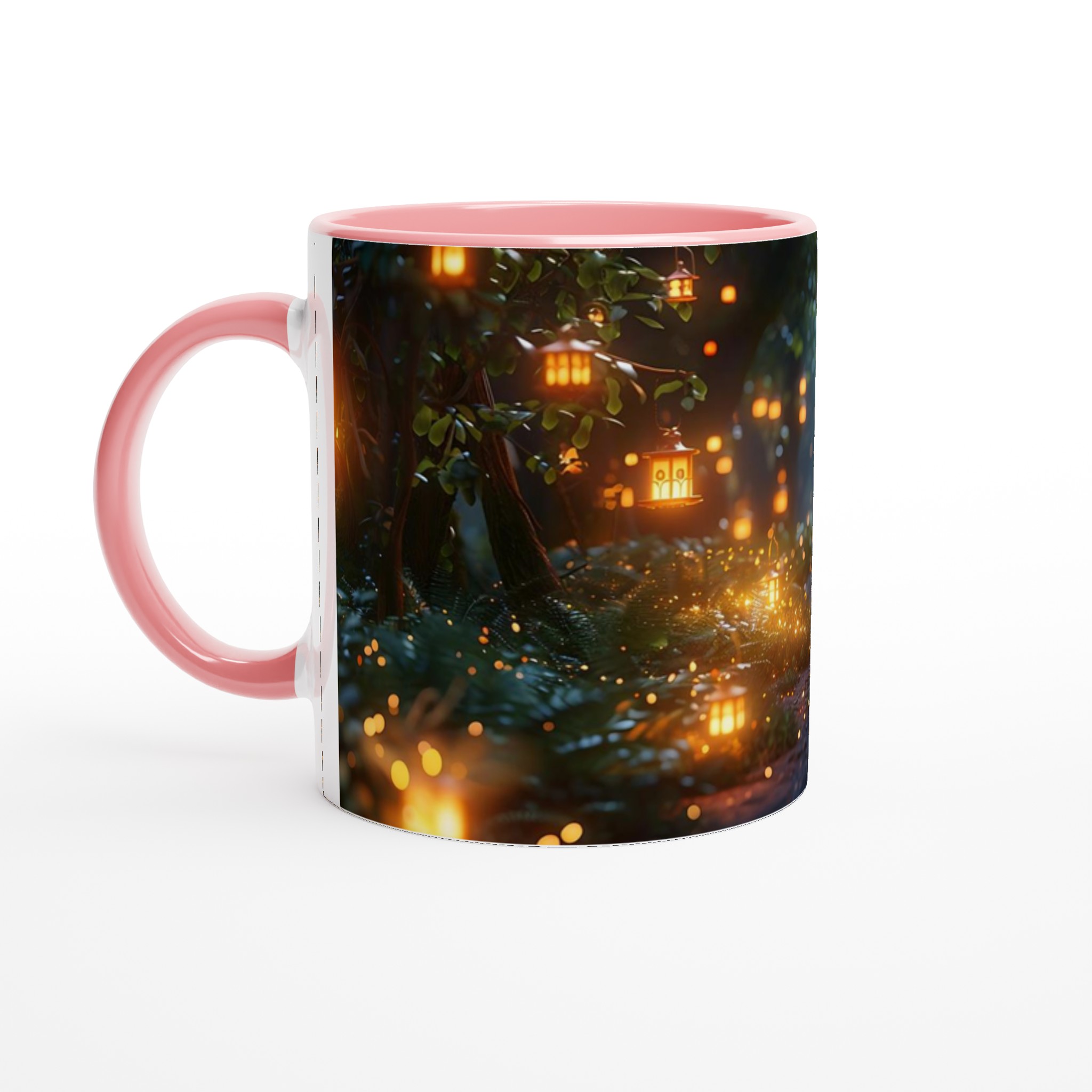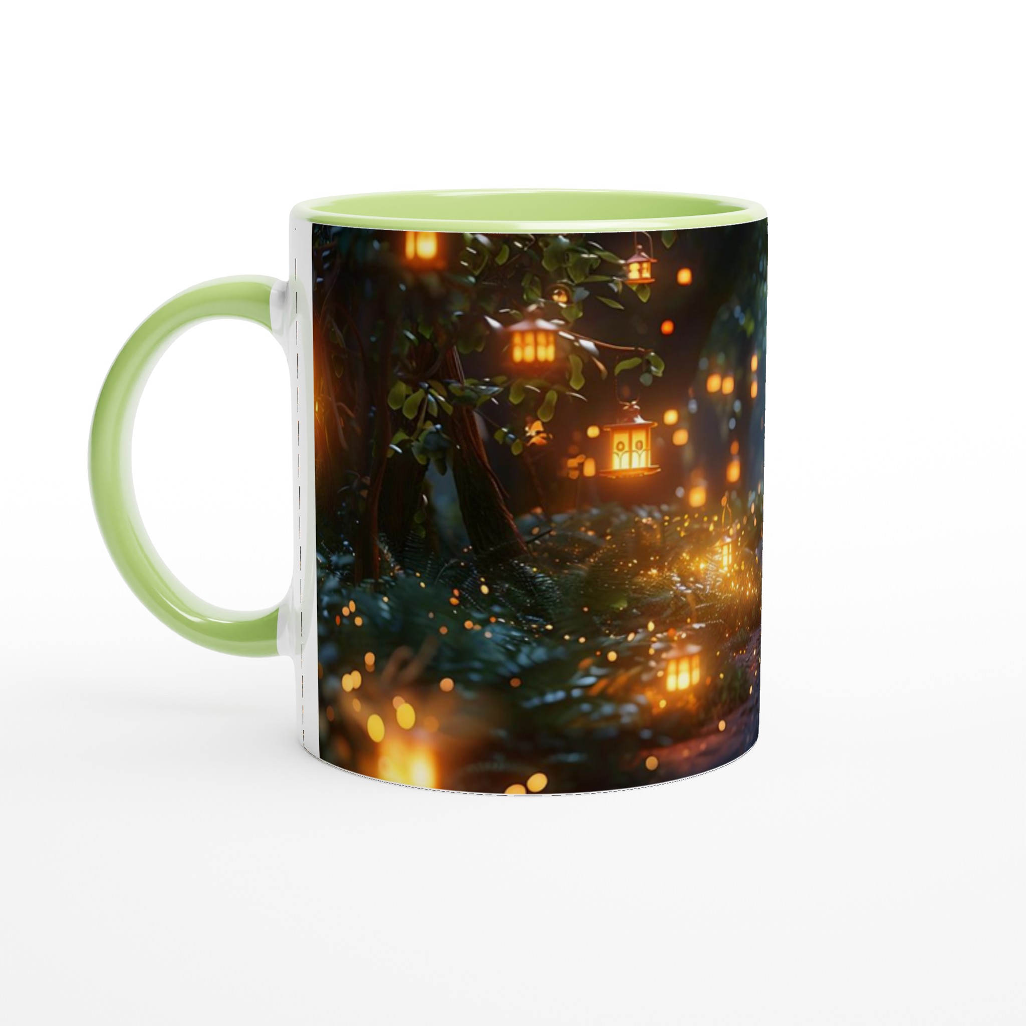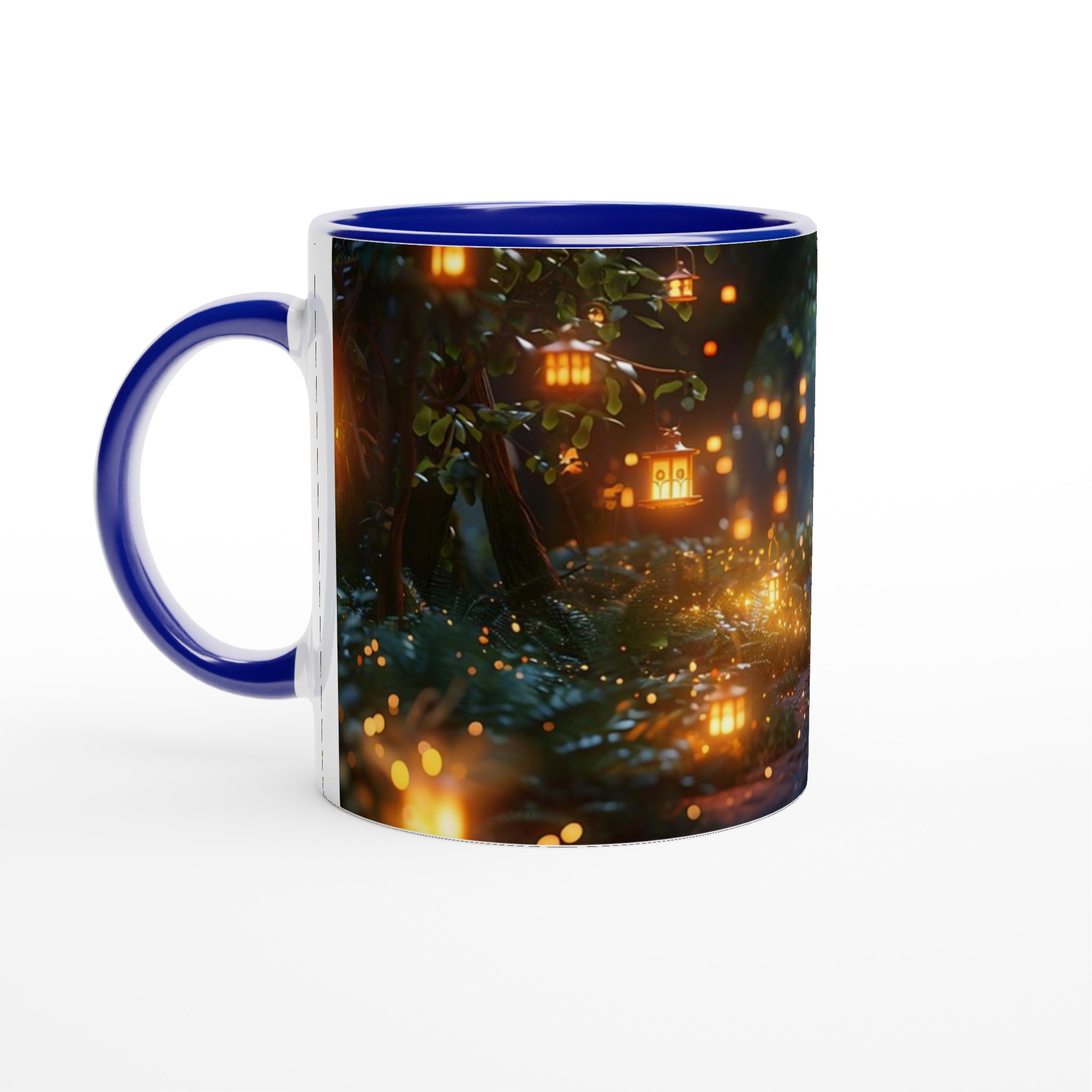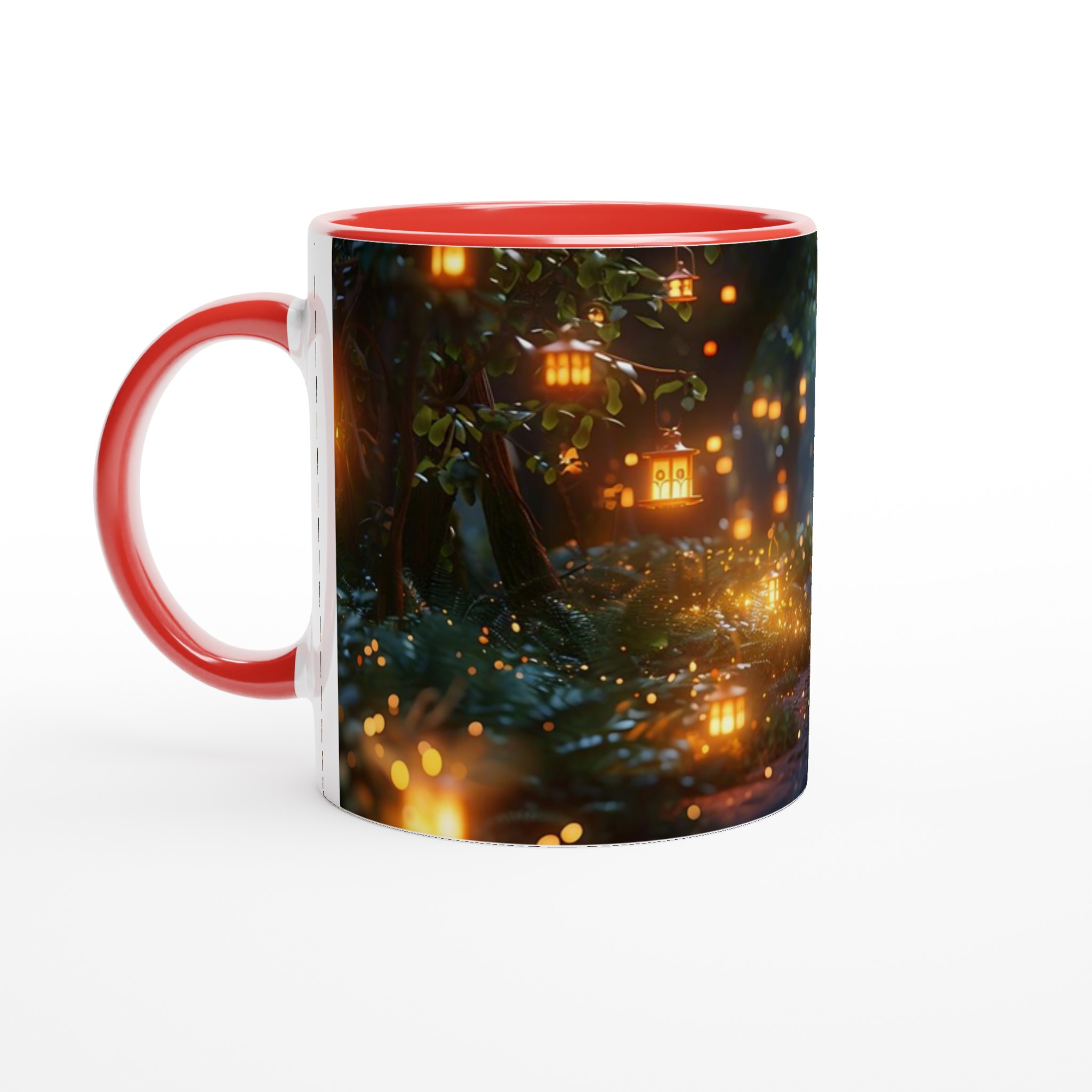 Stig in i en värld av förtrollning med denna magiska keramiska mugg, inspirerad av en glödande skogsstig upplyst av lyktor och eldflugor. Den här stilrena keramiska muggen blir snabbt en vardagsfavorit, perfekt för morgonkaffet, kvällens varma choklad eller när du bara vill njuta av en kopp te. Den blanka vita ytan gör att trycken framhävs med klara och levande färger, som håller sig fina även efter många turer i mikron och diskmaskinen.