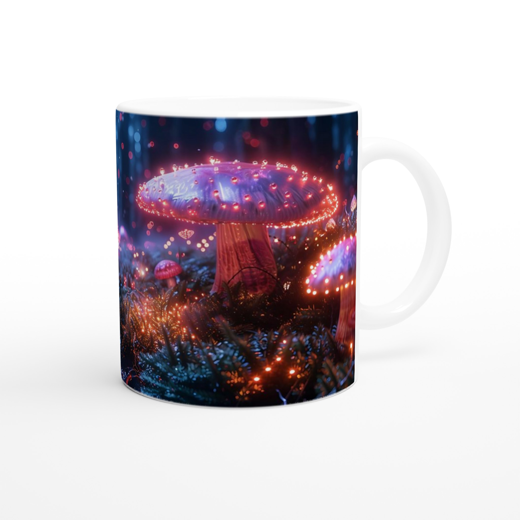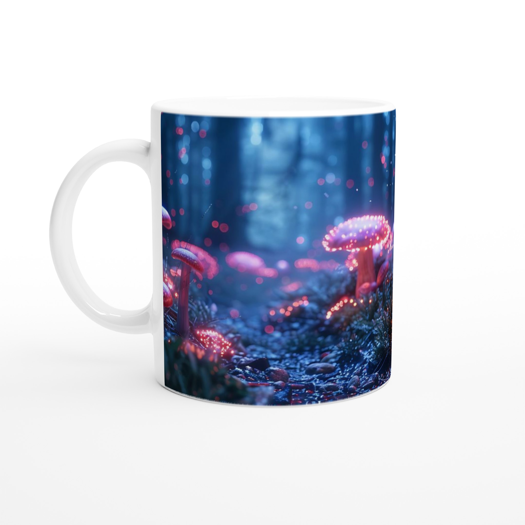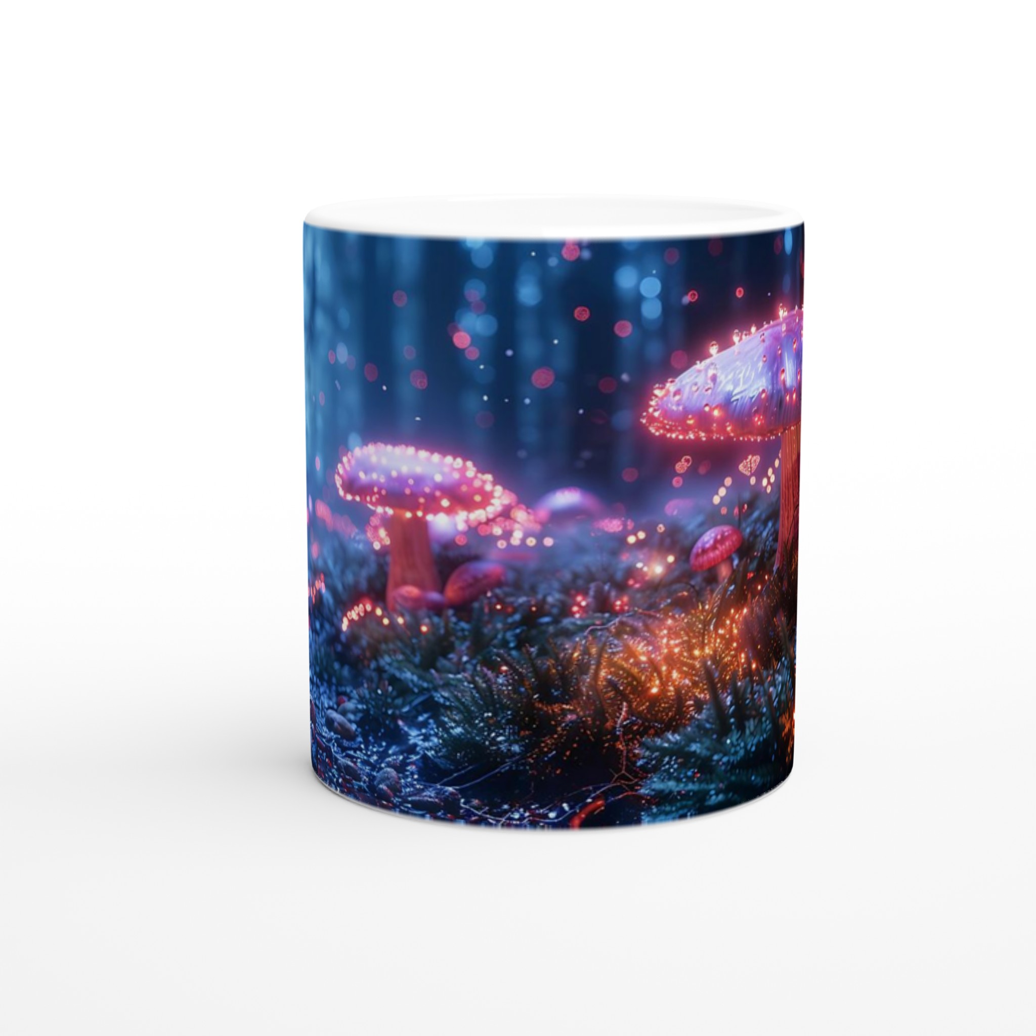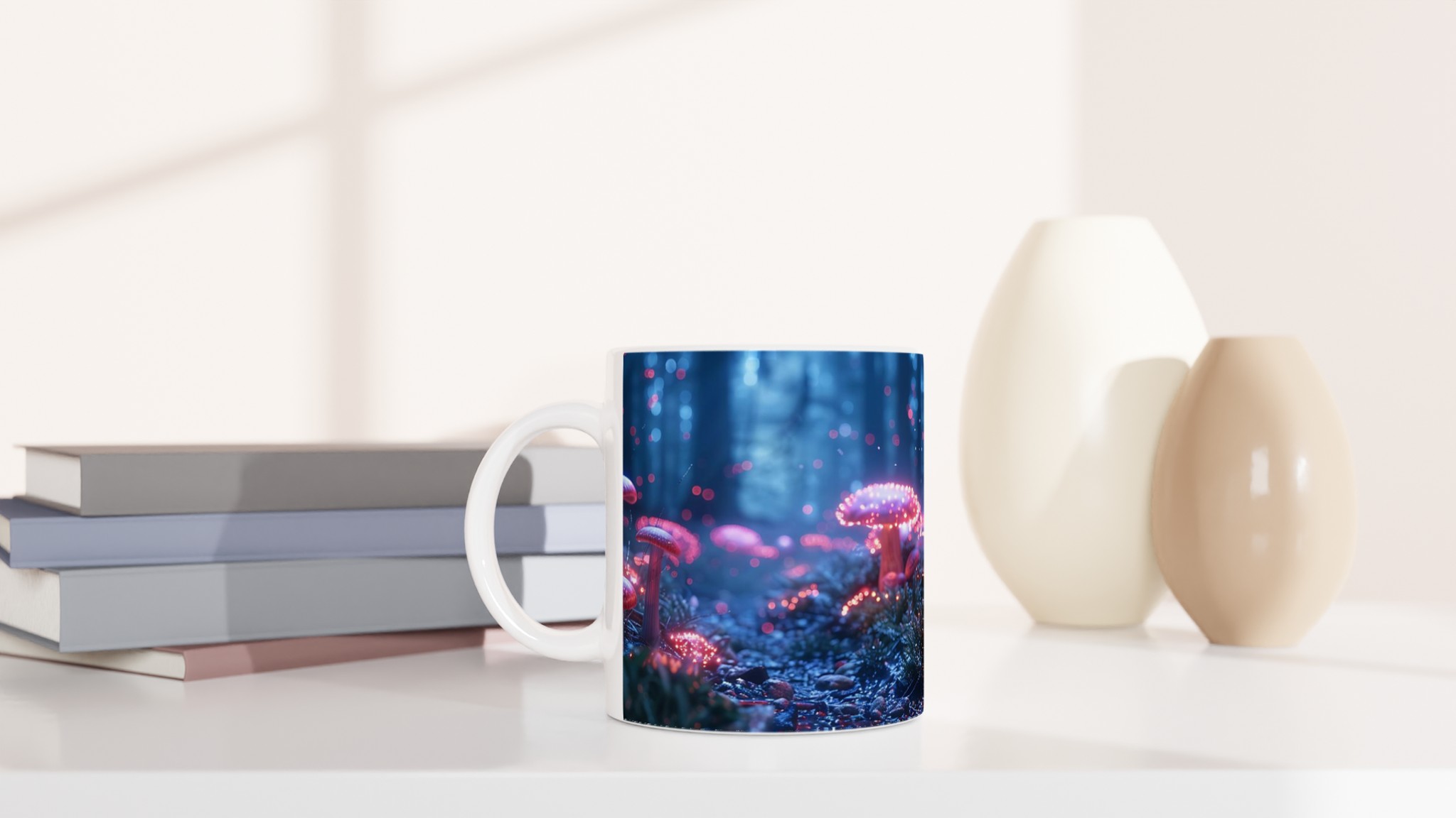 Stig in i en förtrollad värld varje gång du tar en klunk med denna magiska keramiska mugg. Med ett drömskt motiv av lysande svampar som glöder i en mystisk, blåskimrande skog, blir den snabbt din nya vardagsfavorit. Perfekt för morgonkaffet, kvällens varma choklad, eller när du bara vill njuta av en kopp te och drömma dig bort. Den blanka ytan får trycket att framhävas med klara och levande färger, som håller sig fina även efter många turer i mikron och diskmaskinen.