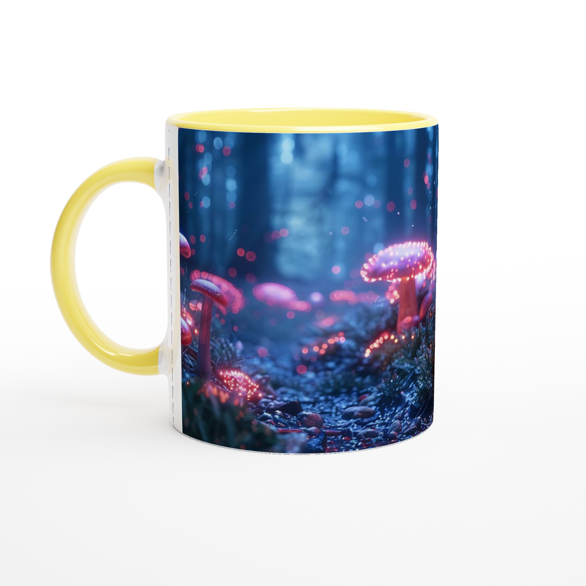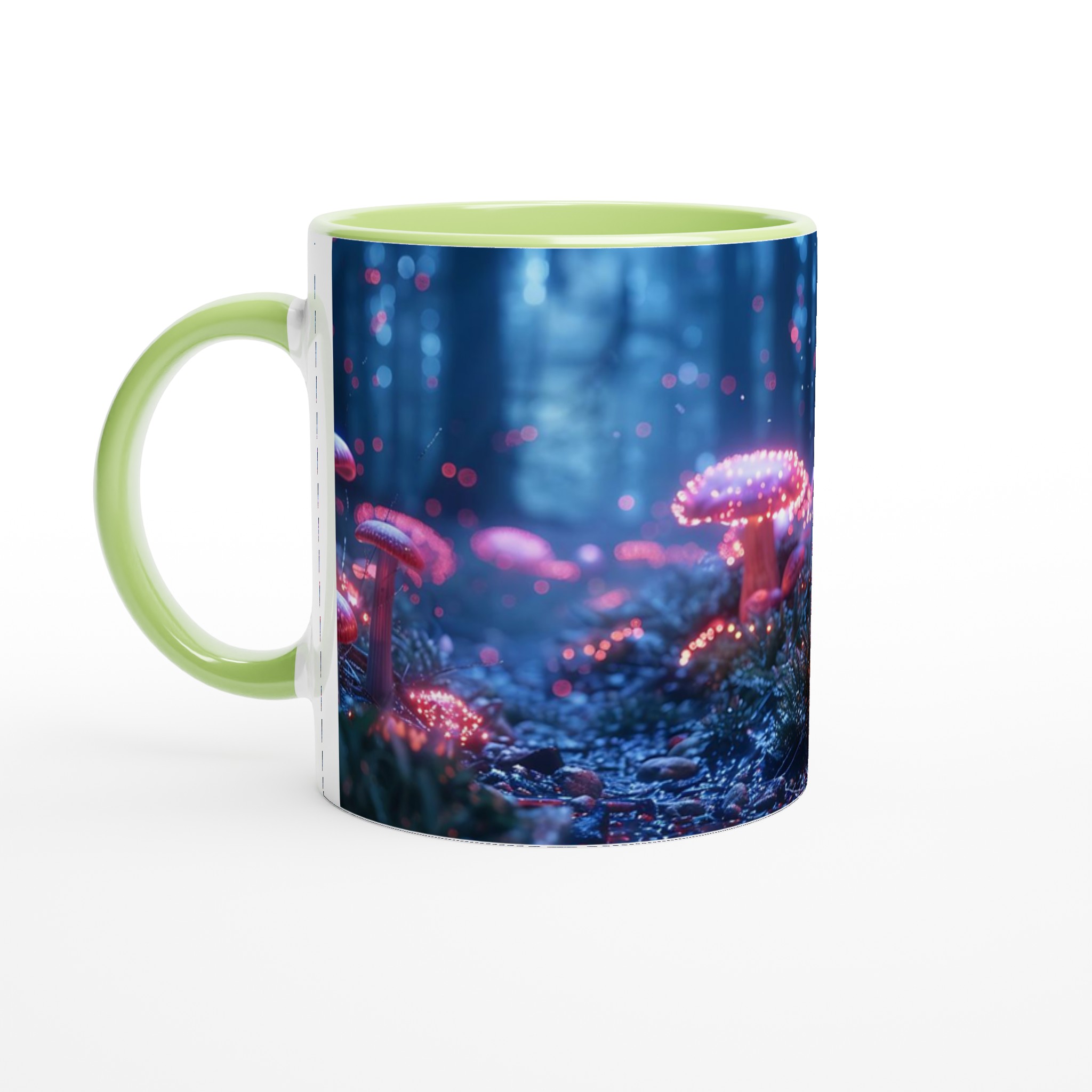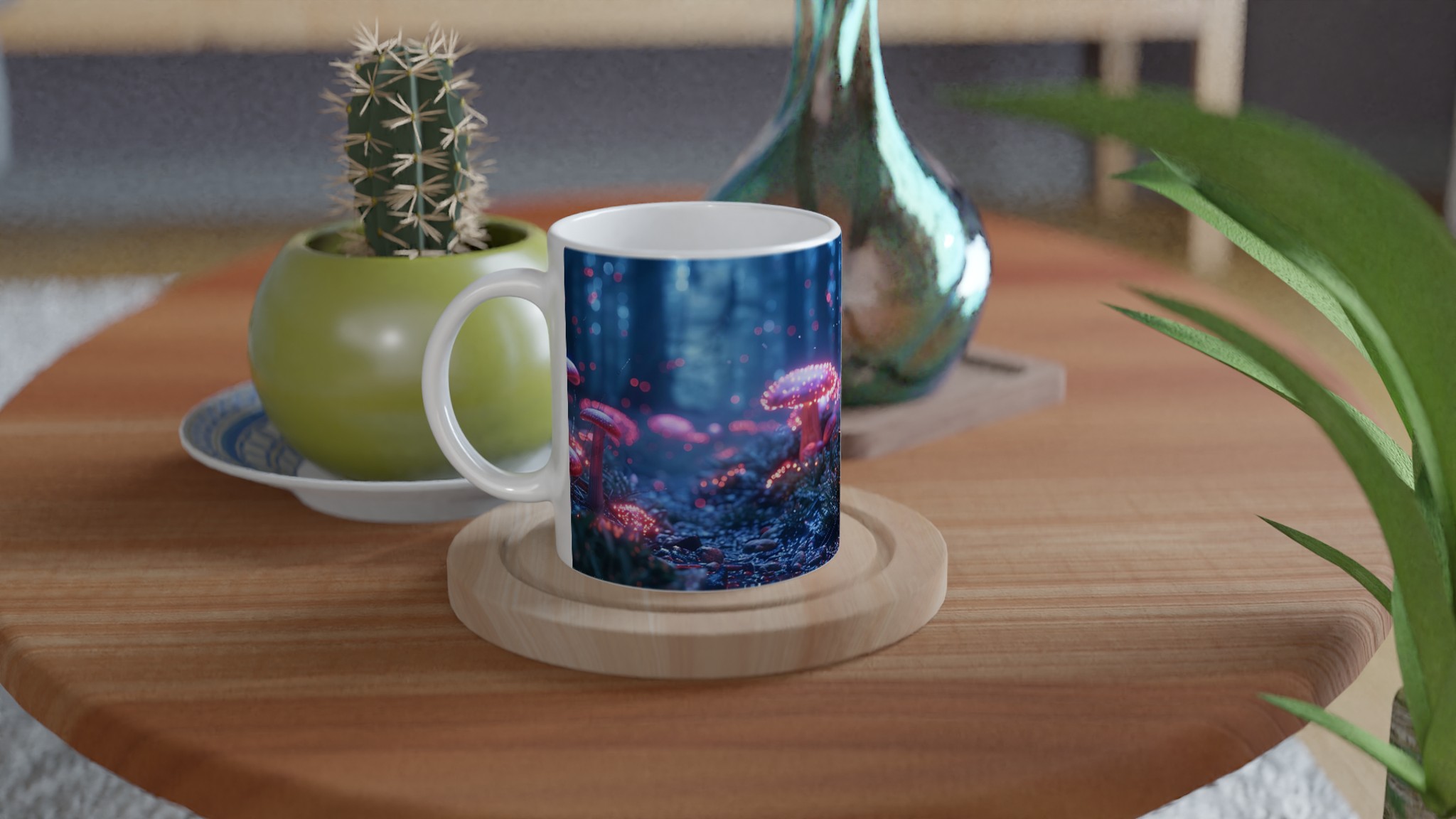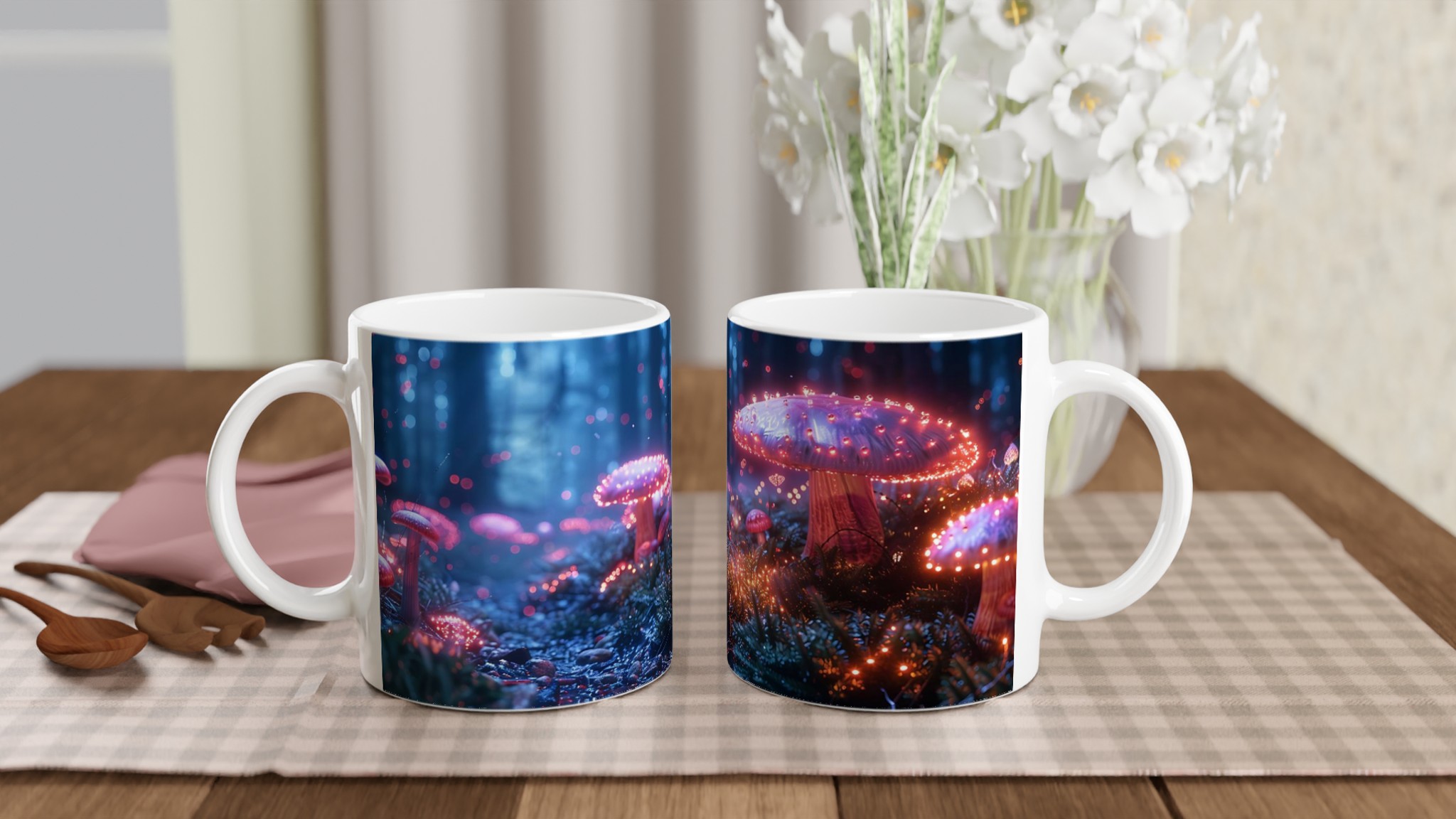 Stig in i en förtrollad värld varje gång du tar en klunk med denna magiska keramiska mugg. Med ett drömskt motiv av lysande svampar som glöder i en mystisk, blåskimrande skog, blir den snabbt din nya vardagsfavorit. Perfekt för morgonkaffet, kvällens varma choklad, eller när du bara vill njuta av en kopp te och drömma dig bort. Den blanka ytan får trycket att framhävas med klara och levande färger, som håller sig fina även efter många turer i mikron och diskmaskinen.