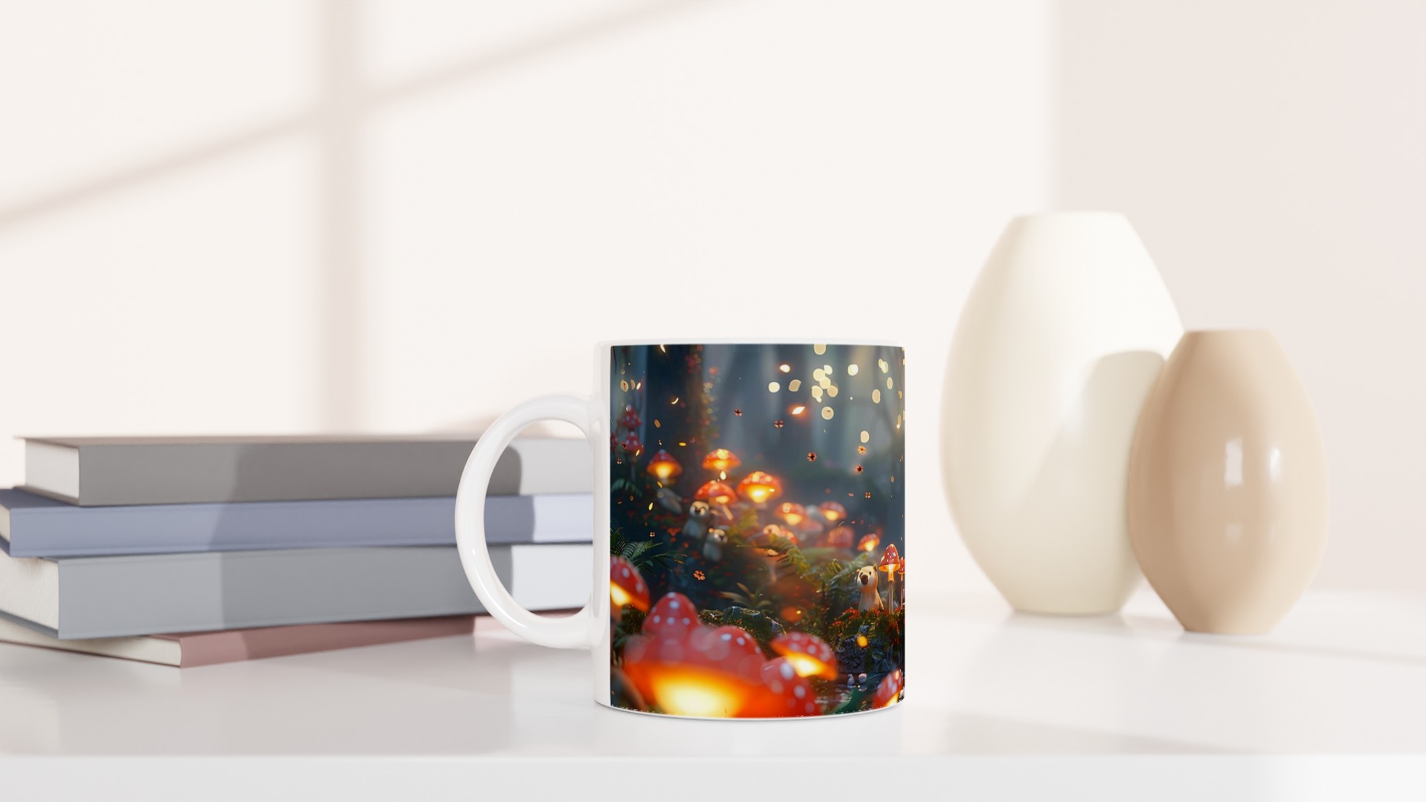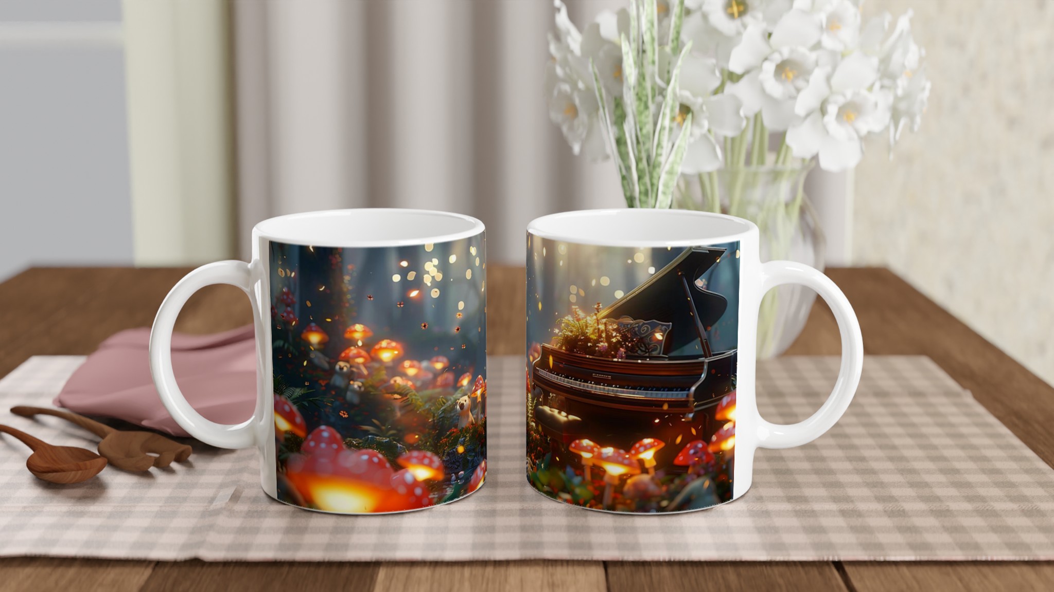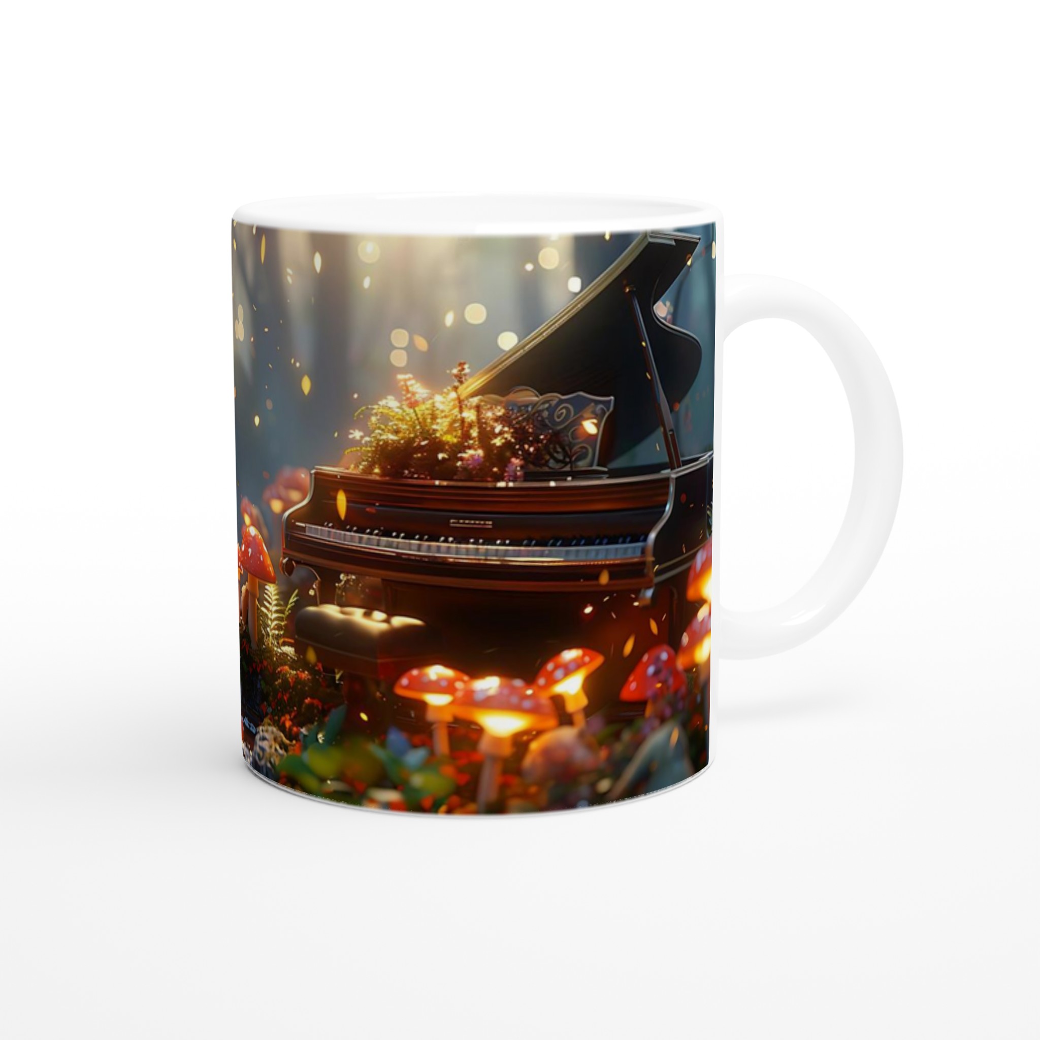 Stig in i en förtrollad värld varje gång du tar en klunk med denna magiska keramiska mugg. Föreställ dig en hemlig glänta där ljussvampar lyser upp skogen och ett elegant piano står redo att spela en lugnande melodi. Denna stilrena mugg blir snabbt en vardagsfavorit, perfekt för morgonkaffet, kvällens varma choklad eller när du bara vill njuta av en kopp te i lugn och ro.