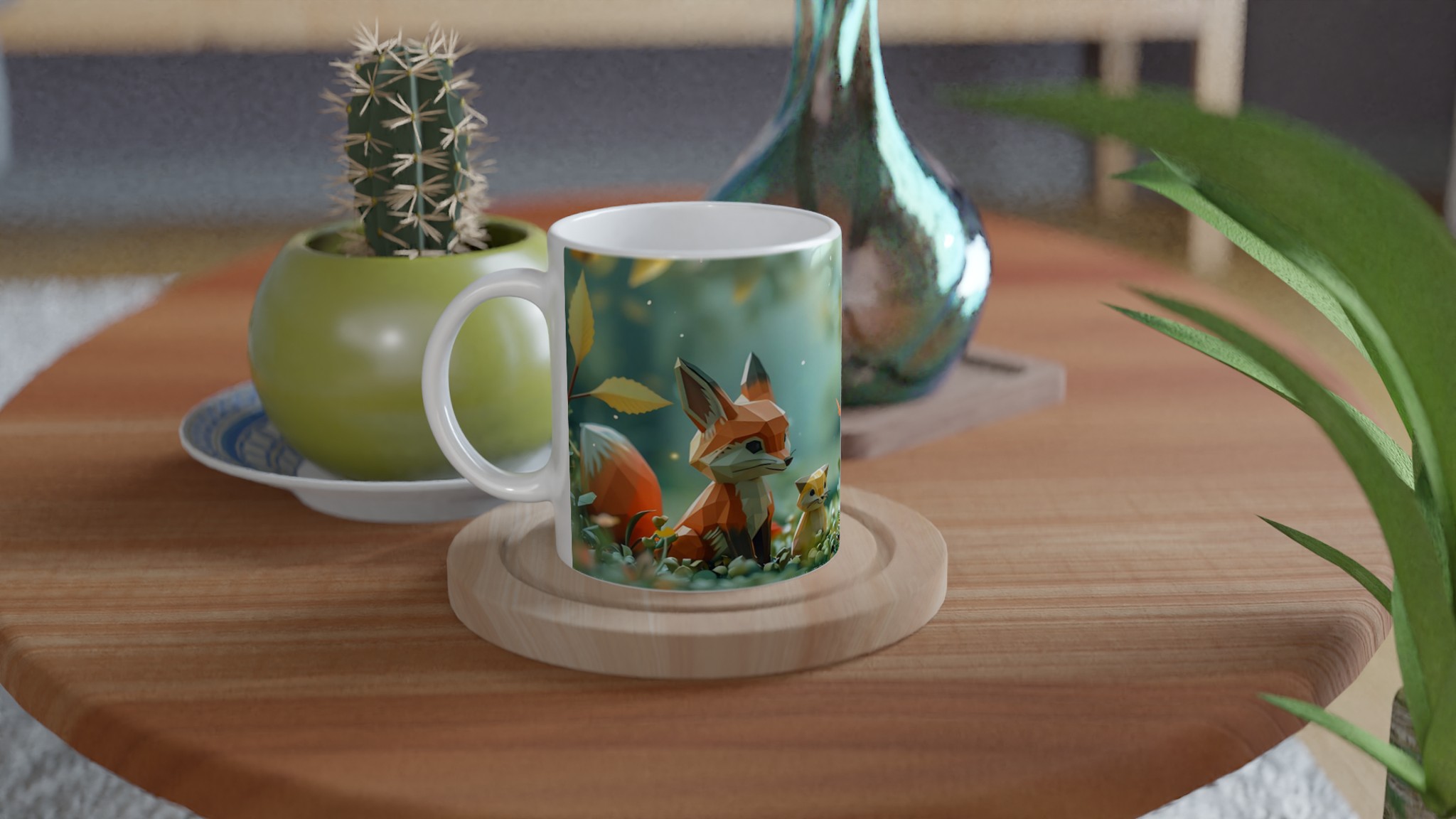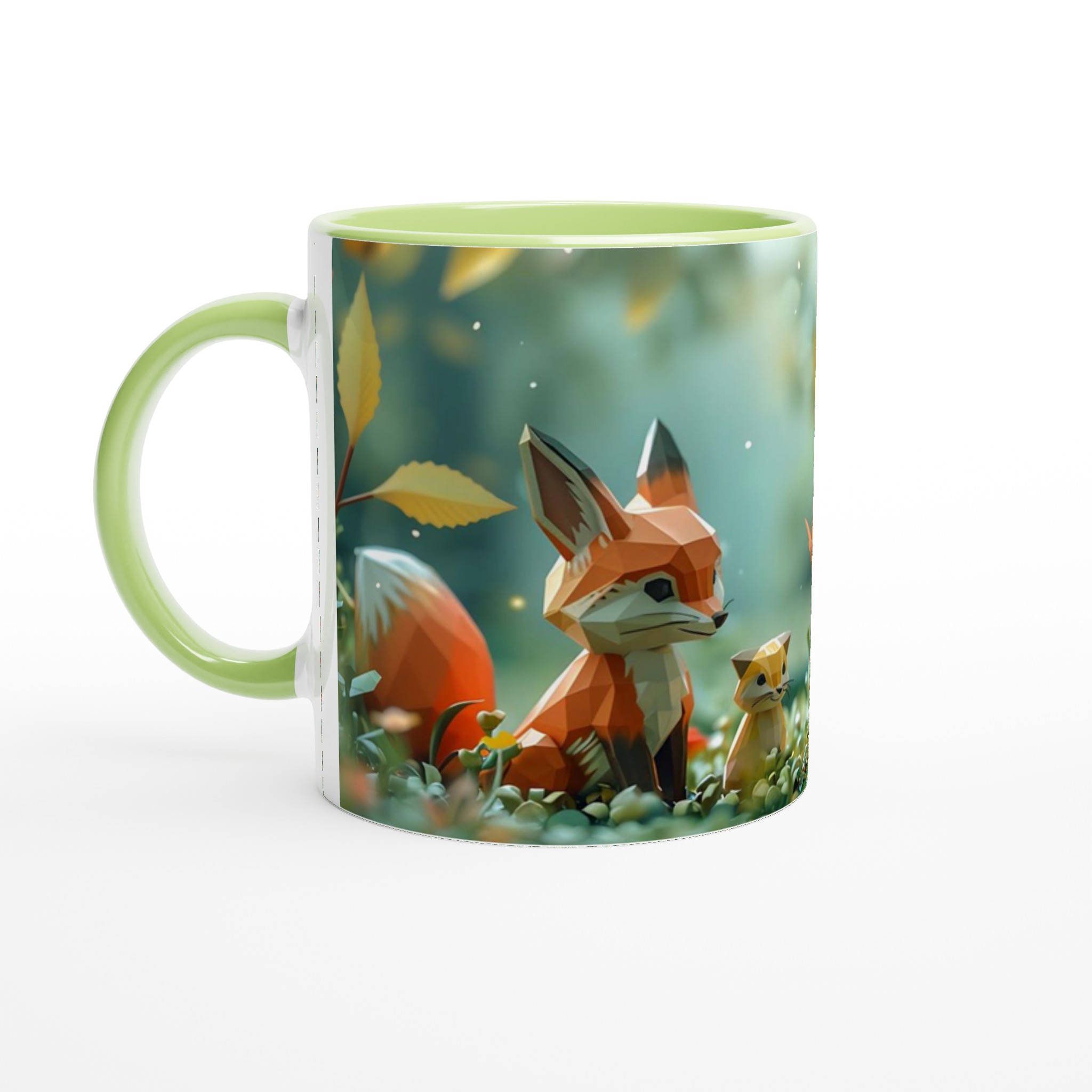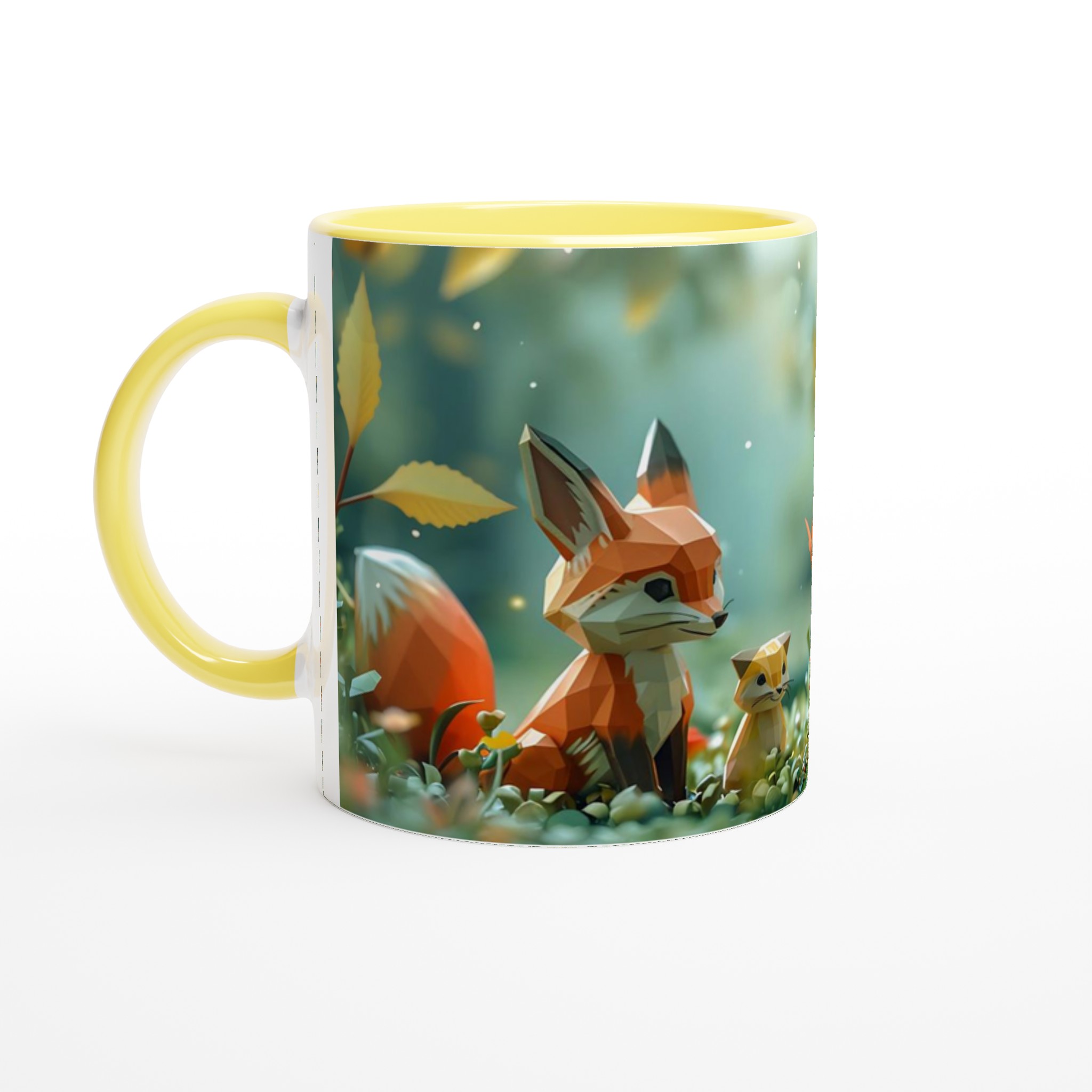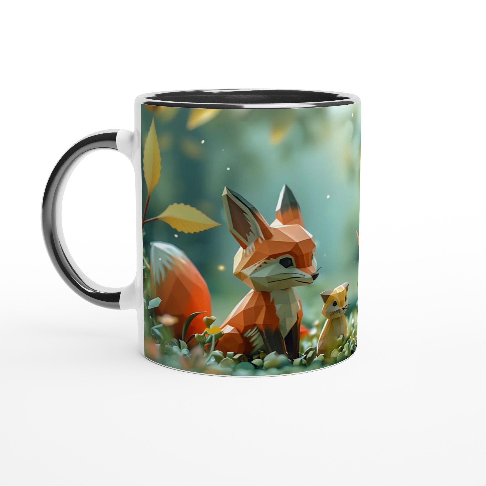 Stig in i en värld av förtrollning med denna charmiga keramiska mugg, som fångar den lekfulla andan från en magisk skog med sina lågpolygondjur och flygande fjärilar. Denna stilrena mugg blir snabbt en vardagsfavorit, perfekt för morgonkaffet, kvällens varma choklad eller när du bara vill njuta av en kopp te i gott sällskap. Den blanka vita ytan gör att trycken framhävs med klara och levande färger, som håller sig fina även efter många turer i mikron och diskmaskinen, vilket bevarar den förtrollande designen.