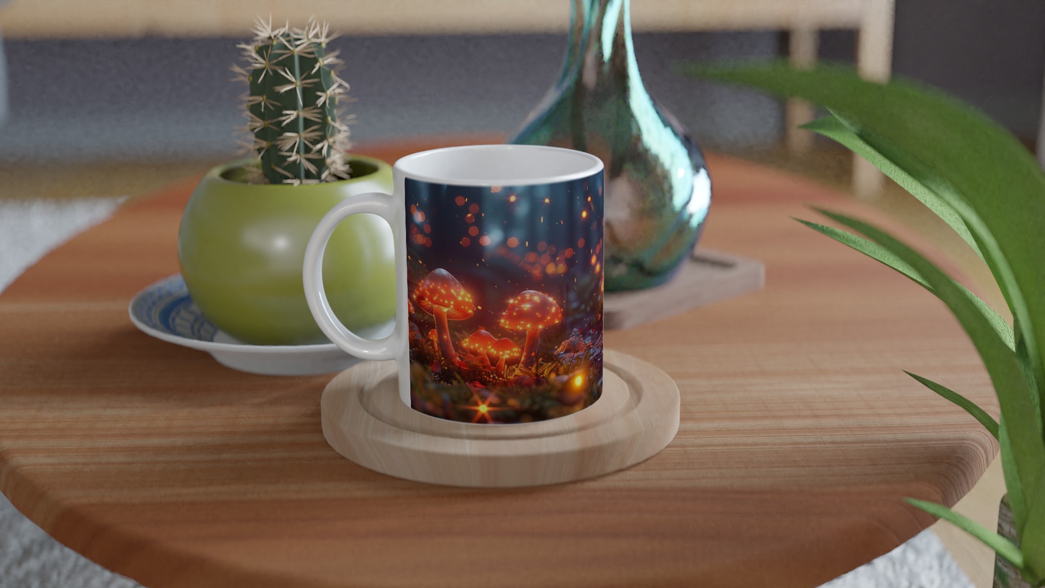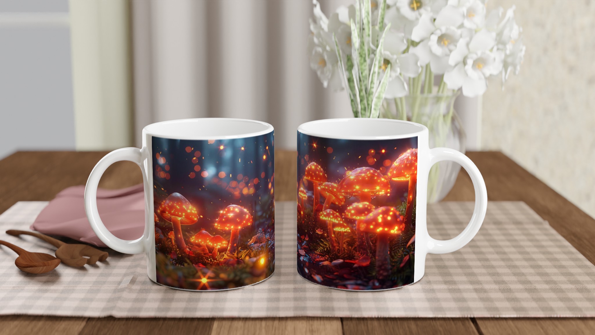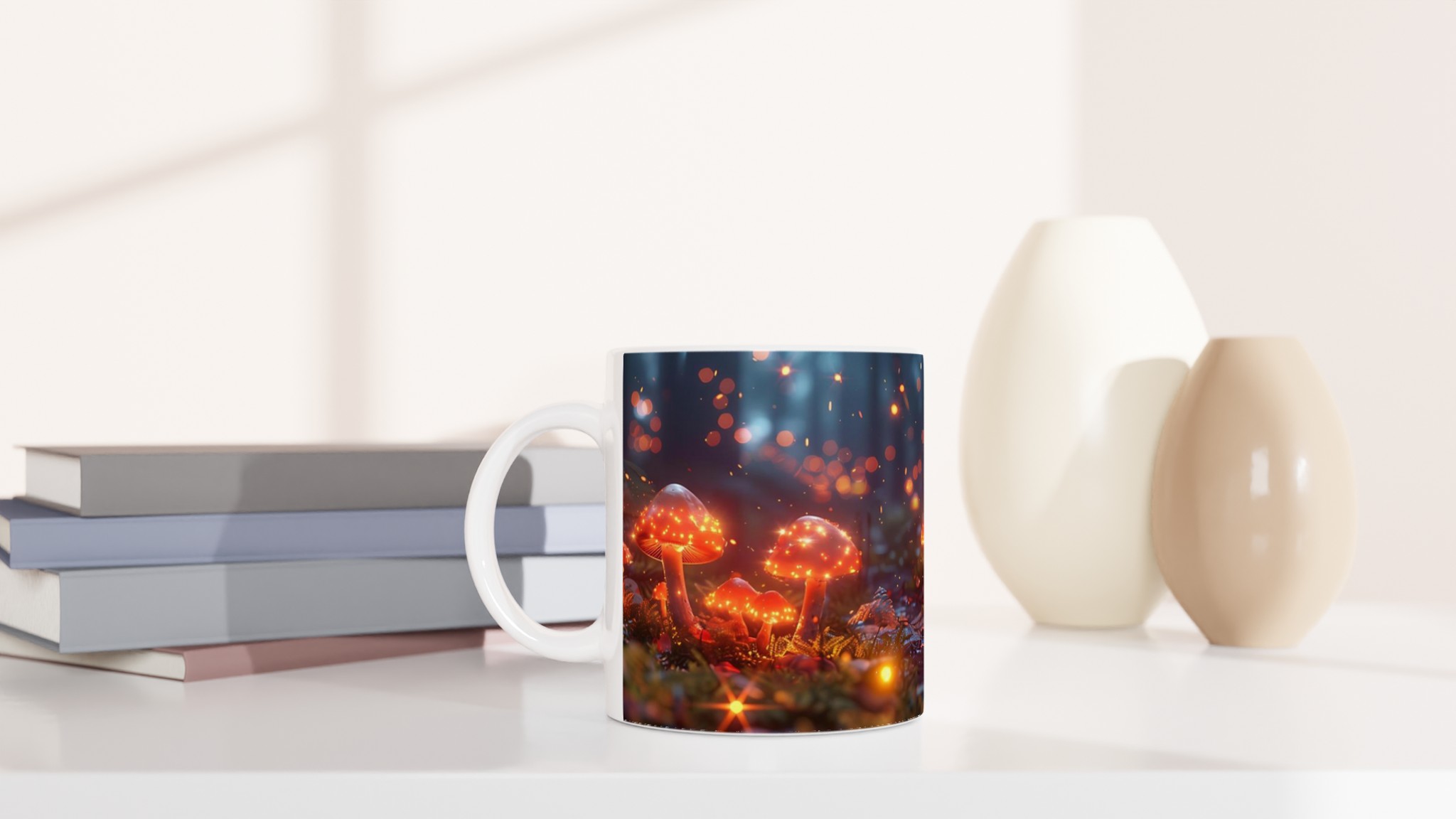 Väck magin i din vardag med denna förtrollande keramiska mugg, inspirerad av en glödande skog full av lysande svampar och mystiska ljus. Varje klunk blir en resa in i det fantastiska, omgiven av den varma, sprakande skönheten från naturens dolda underverk. Perfekt för morgonkaffet, kvällens varma choklad eller när du bara vill njuta av en kopp te.