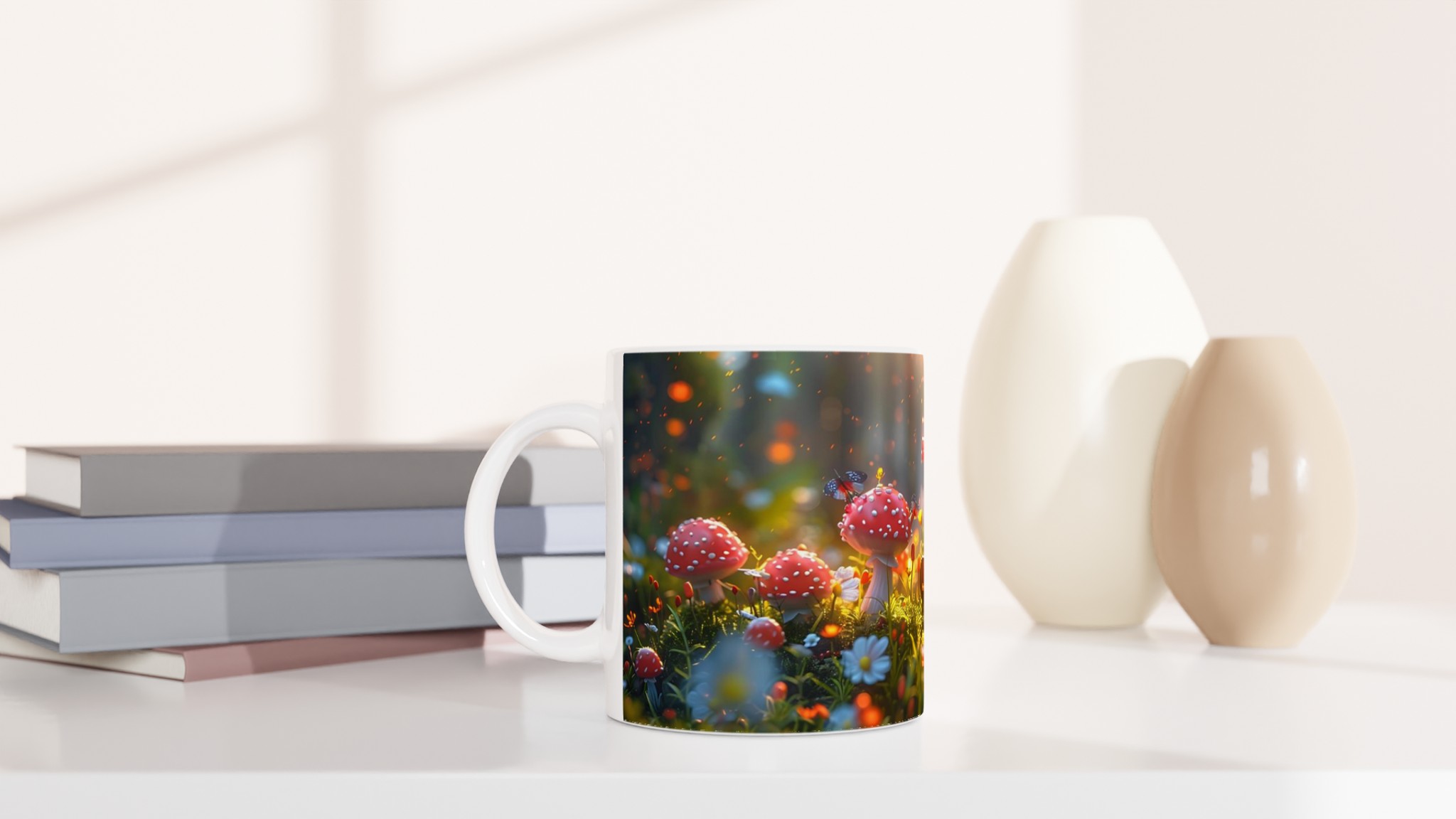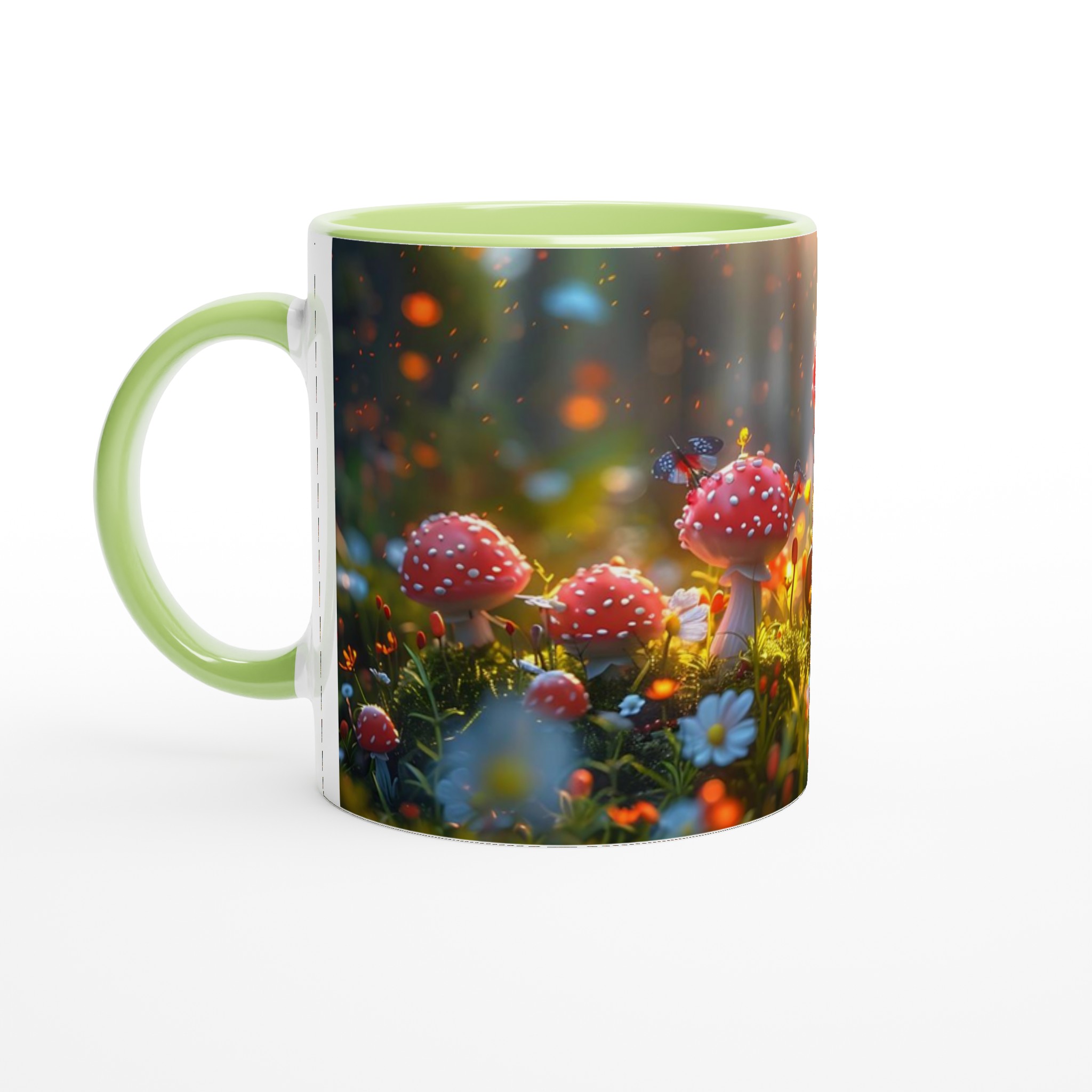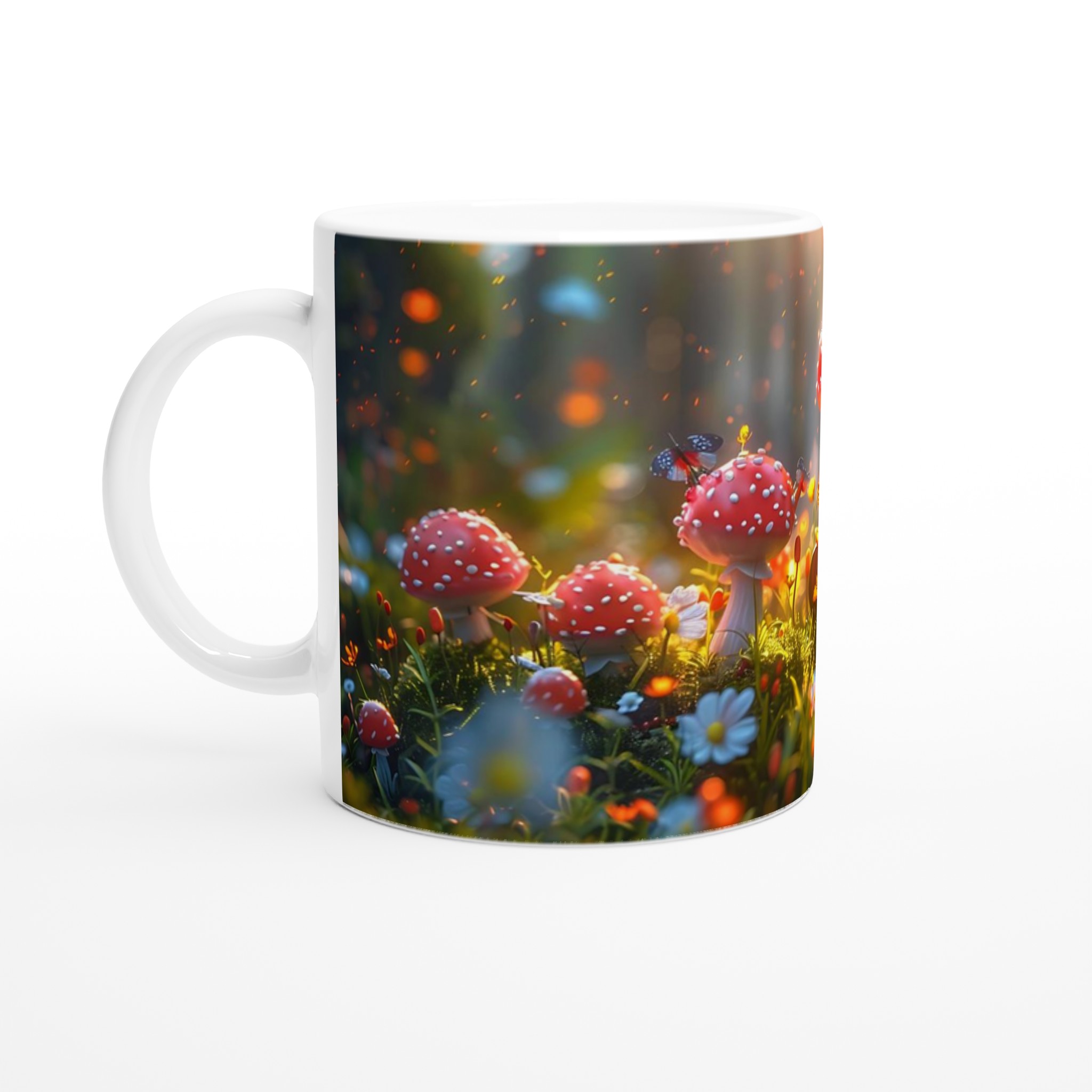 Stig in i en värld av förundran med vår ”Förtrollad Skog” keramiska mugg. Varje klunk blir en resa till en drömlik skogsglänta, komplett med glödande svampar och tindrande älvljus, som sprider en känsla av lugn och magi i din vardag. Den här stilrena muggen blir snabbt en vardagsfavorit, perfekt för morgonkaffet, kvällens varma choklad eller när du bara vill njuta av en kopp te. Den blanka ytan gör att trycken framhävs med klara och levande färger, som håller sig fina även efter många turer i mikron och diskmaskinen.