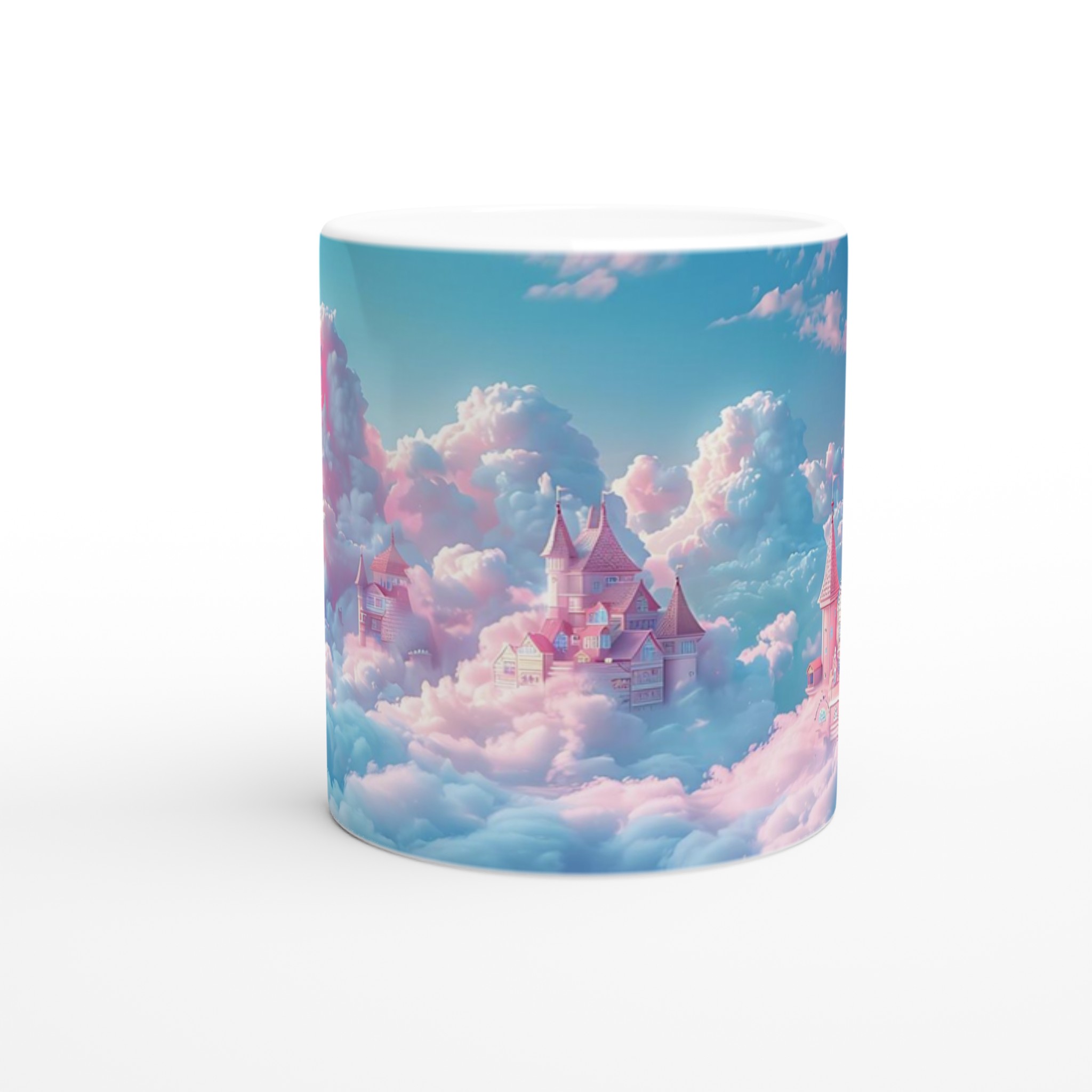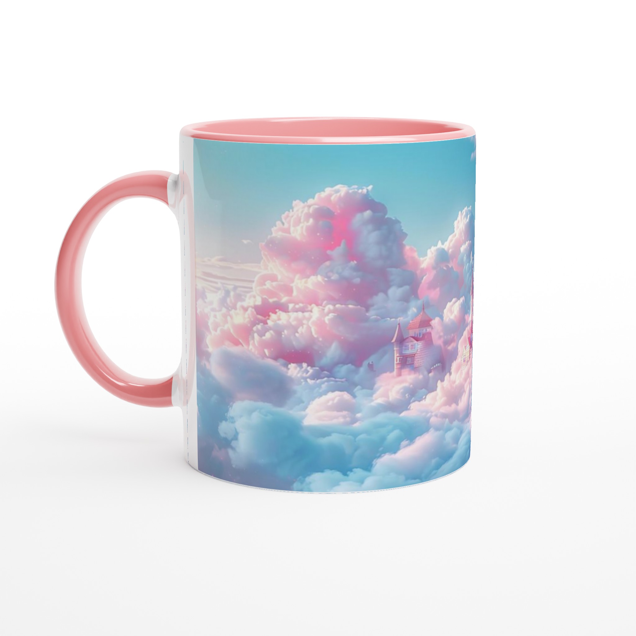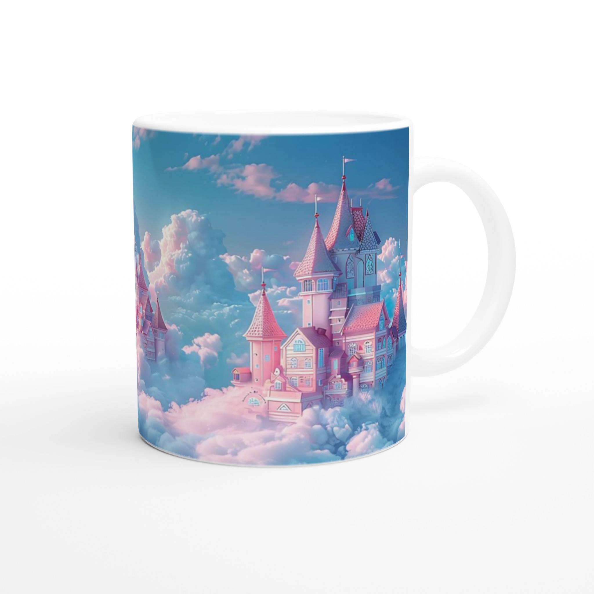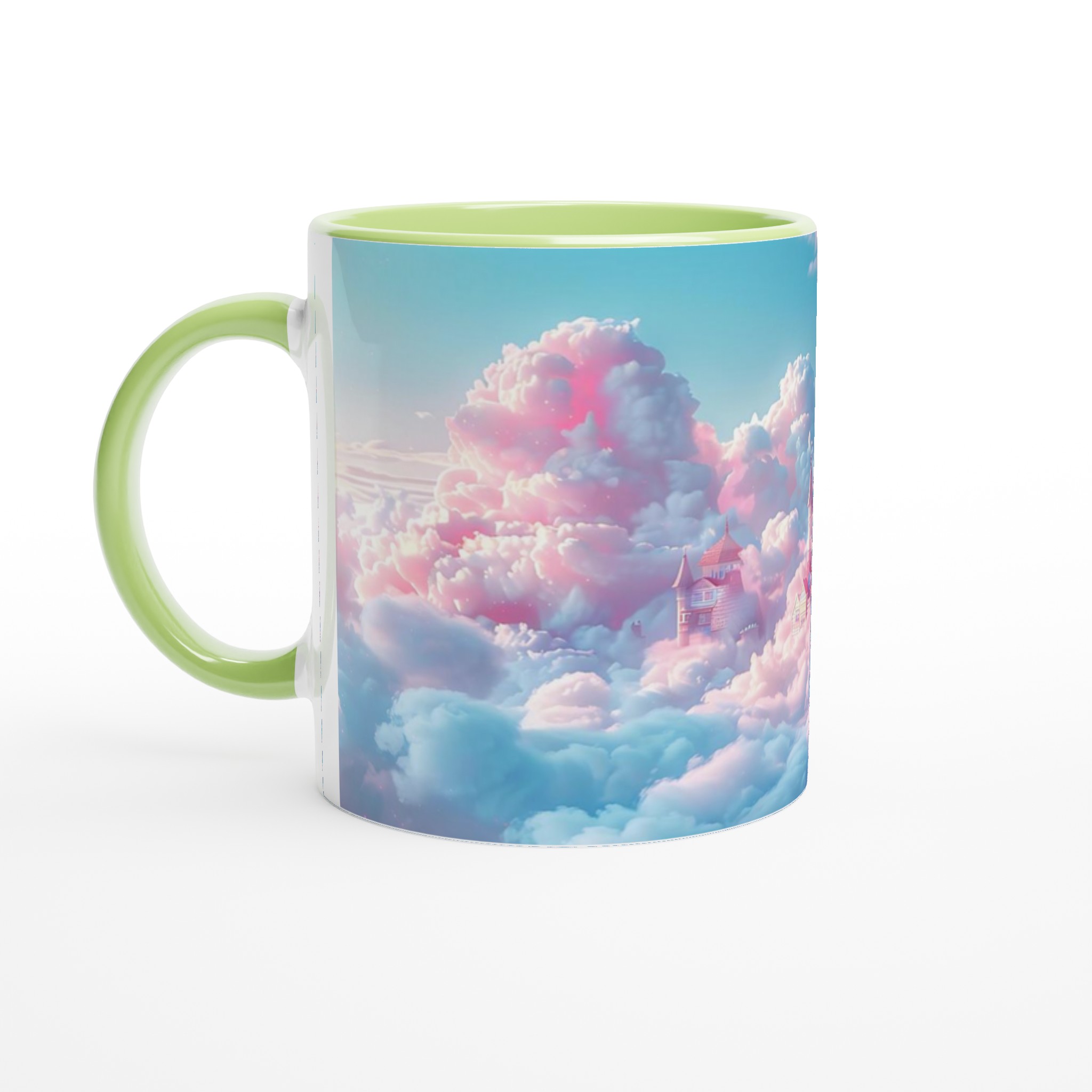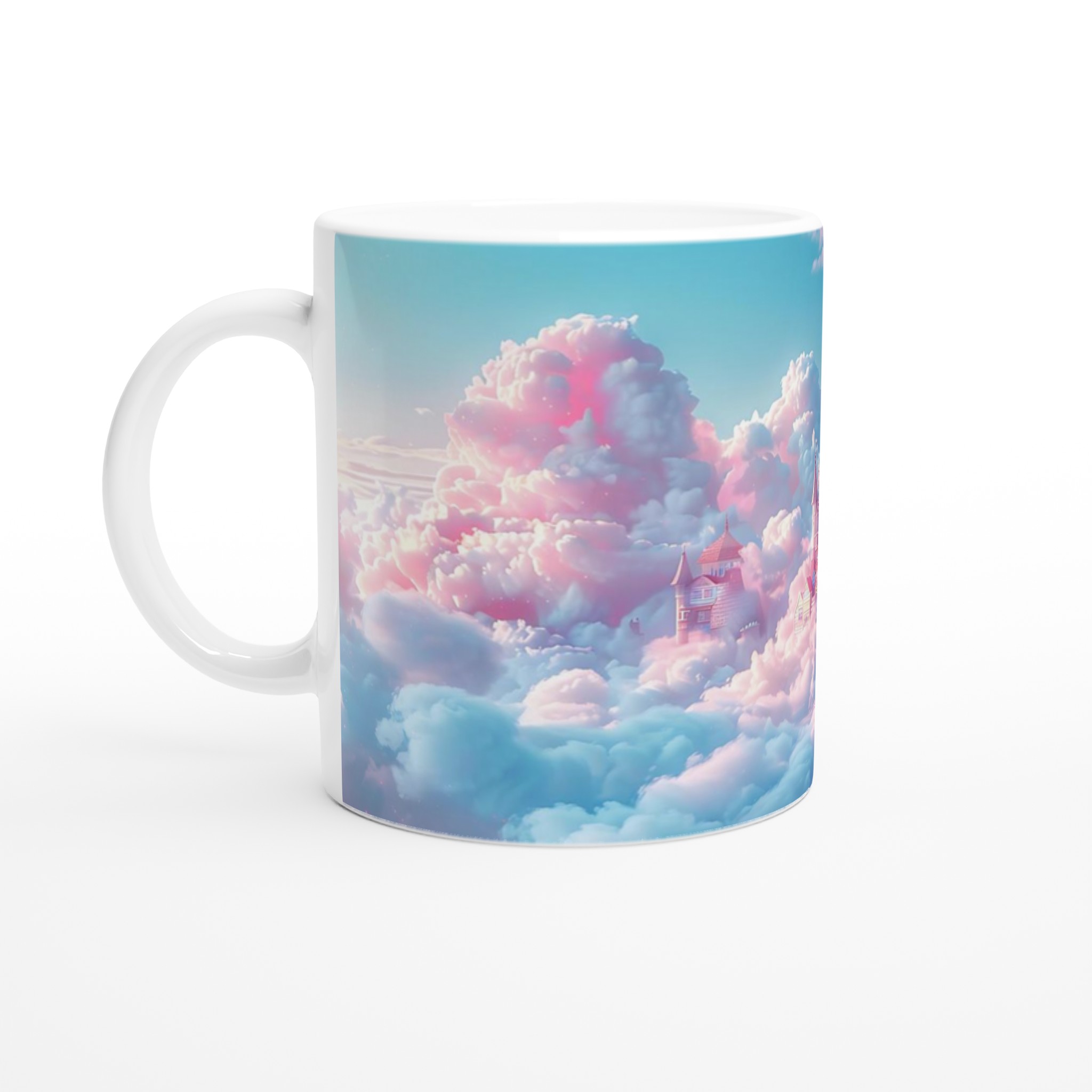 Stig in i en värld av fantasier varje gång du tar en klunk med denna förtrollande keramiska mugg. Med ett motiv av sagoslott bland pastellfärgade moln i rosa och mintgrönt, fångar den en magisk och drömsk atmosfär. Den här stilrena keramiska muggen blir snabbt en vardagsfavorit. Perfekt för morgonkaffet, kvällens varma choklad eller när du bara vill njuta av en kopp te.