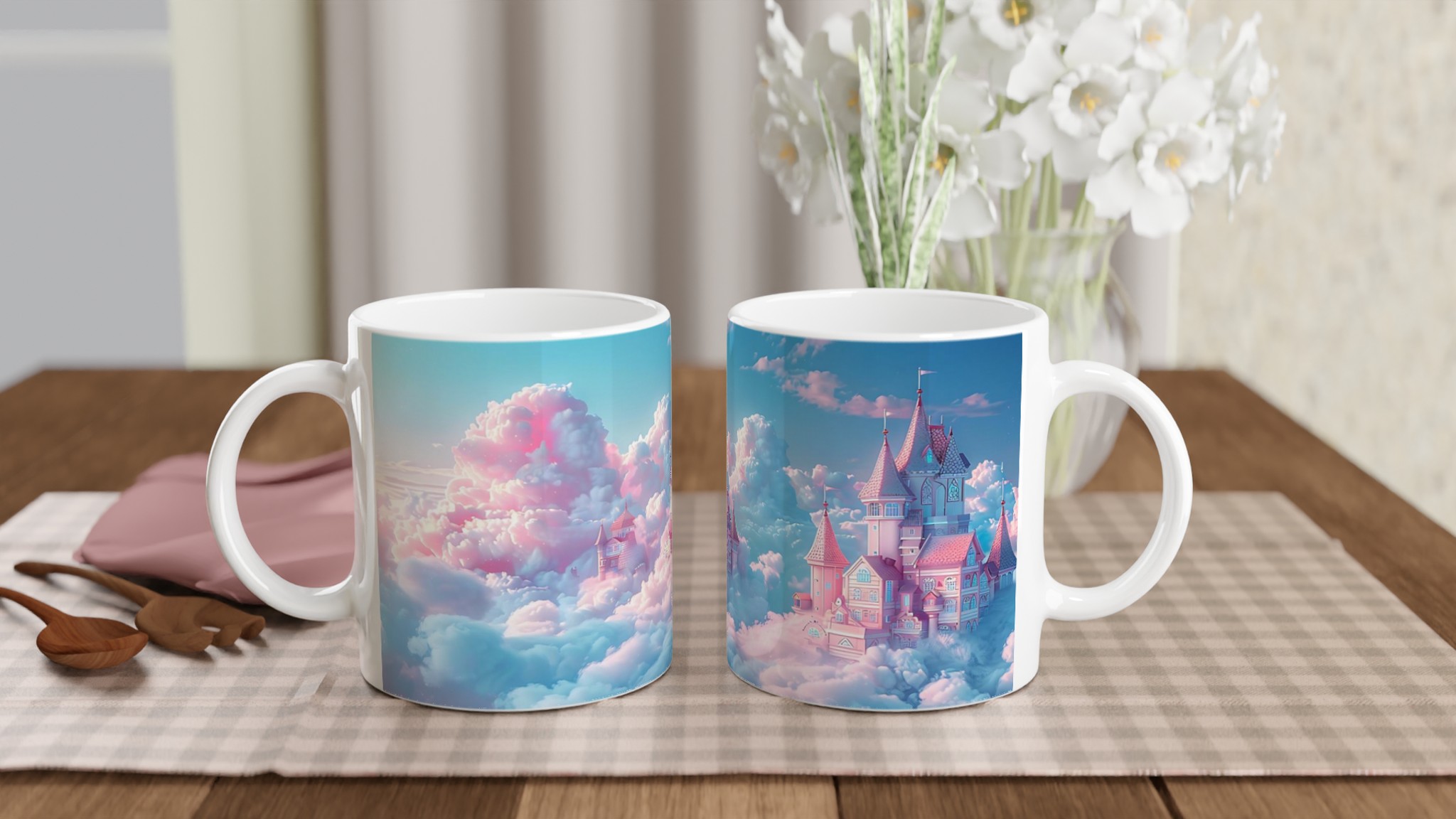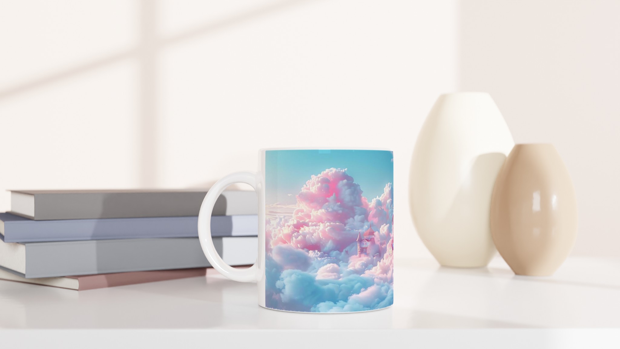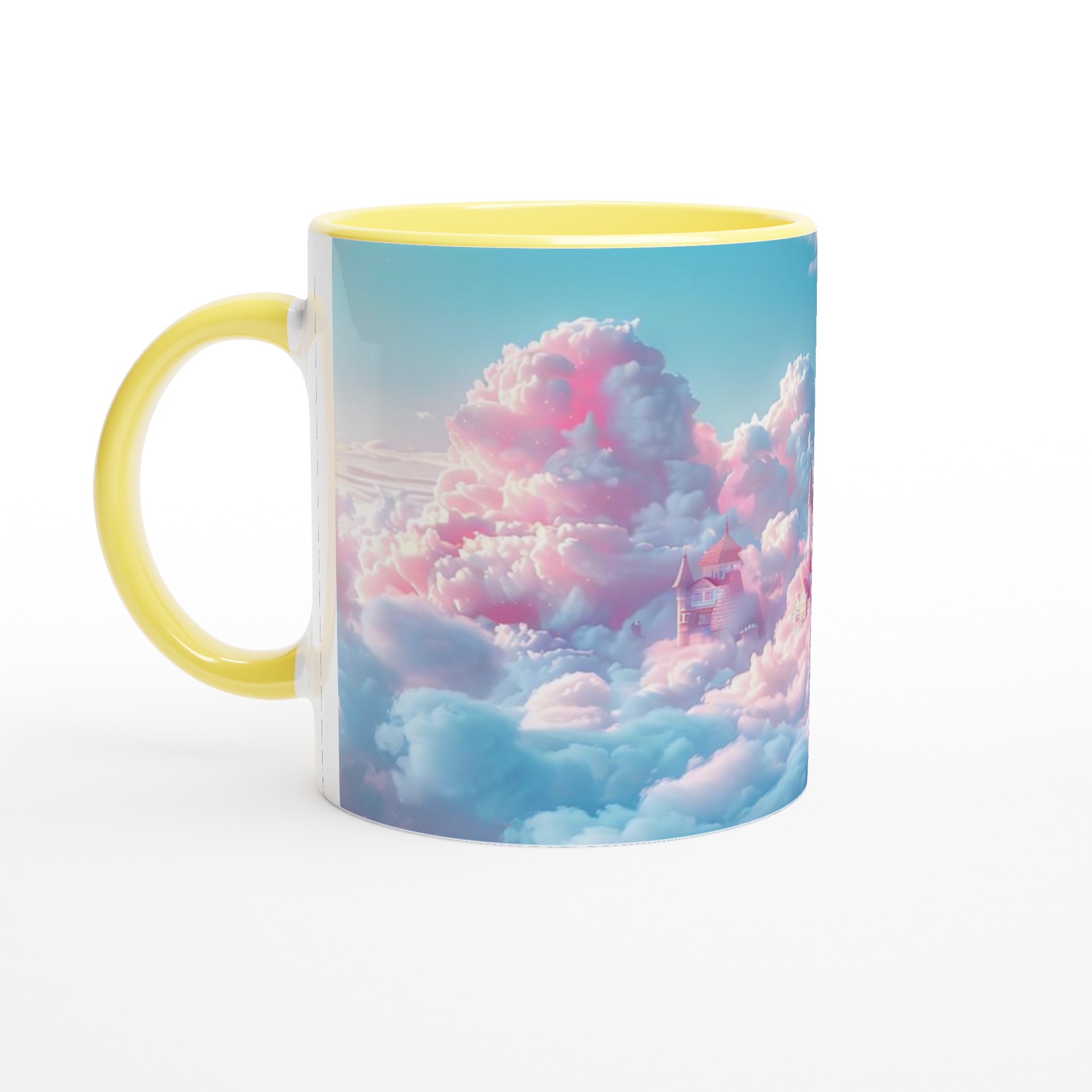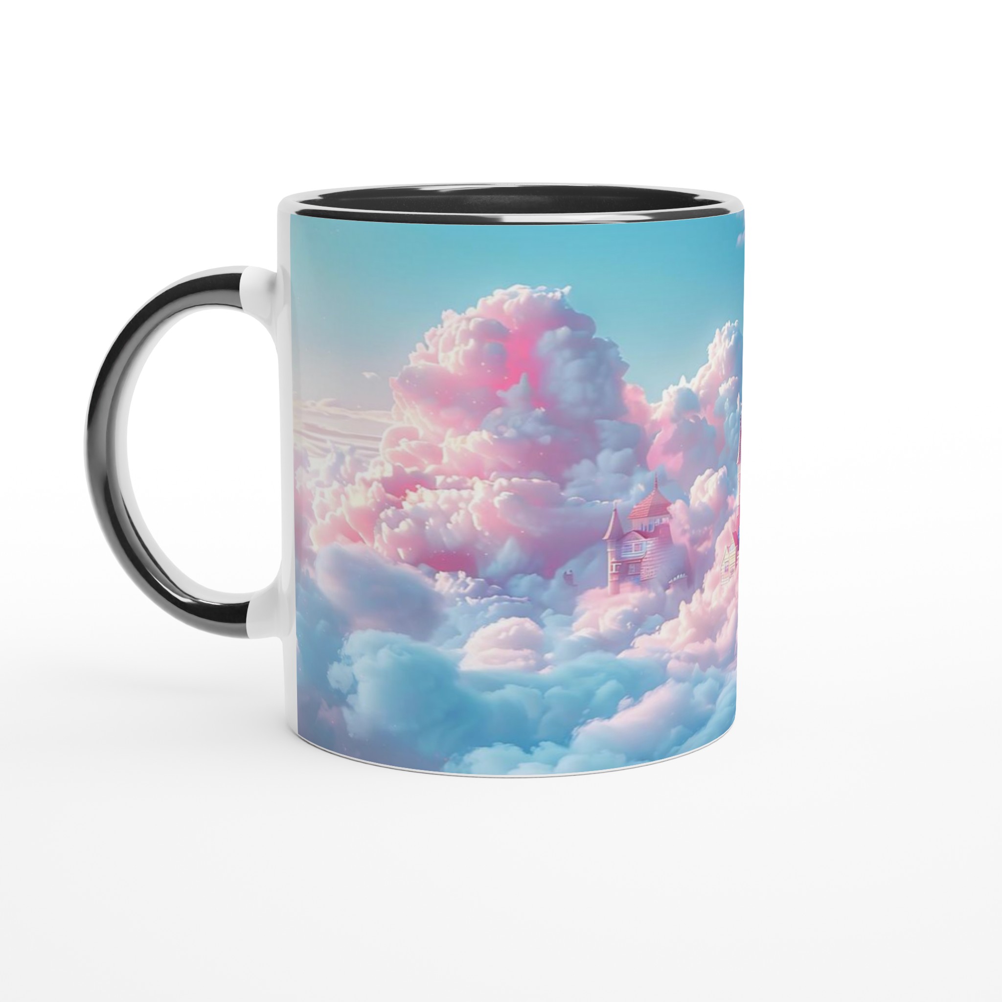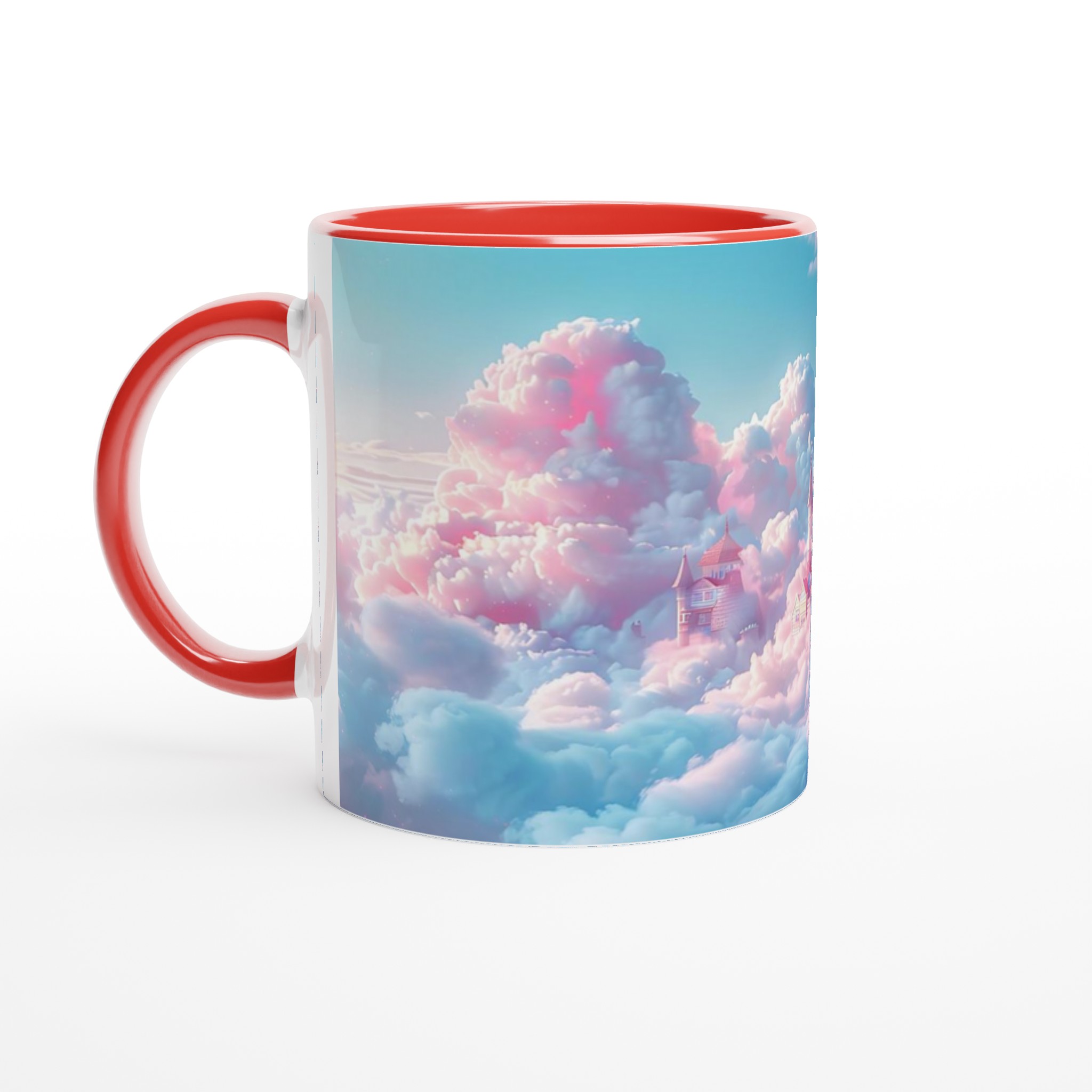 Stig in i en värld av fantasier varje gång du tar en klunk med denna förtrollande keramiska mugg. Med ett motiv av sagoslott bland pastellfärgade moln i rosa och mintgrönt, fångar den en magisk och drömsk atmosfär. Den här stilrena keramiska muggen blir snabbt en vardagsfavorit. Perfekt för morgonkaffet, kvällens varma choklad eller när du bara vill njuta av en kopp te.
