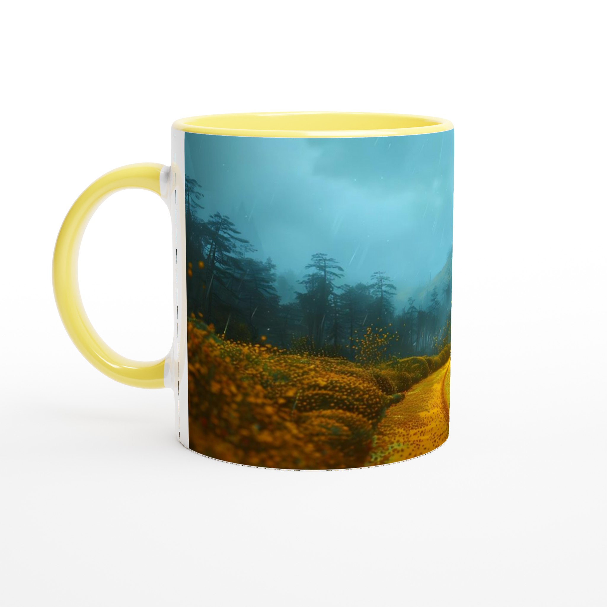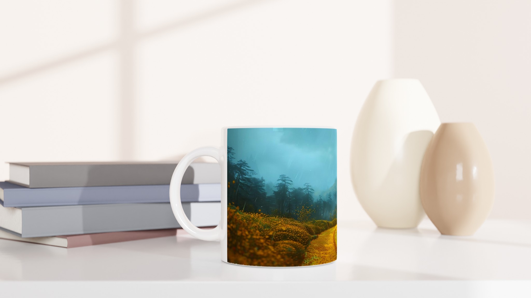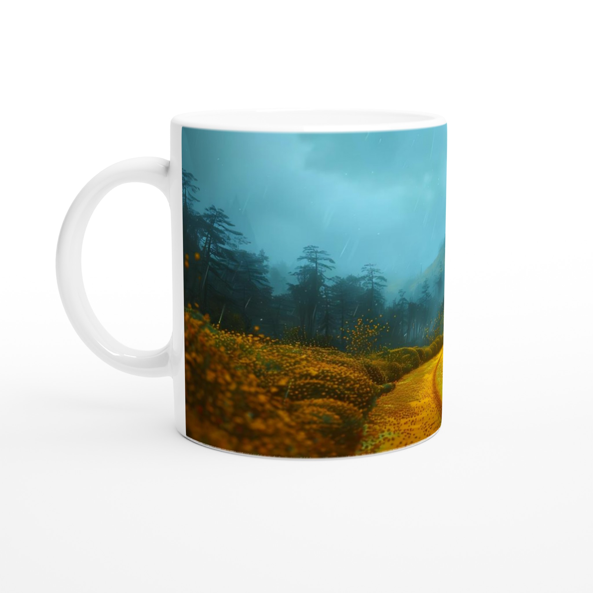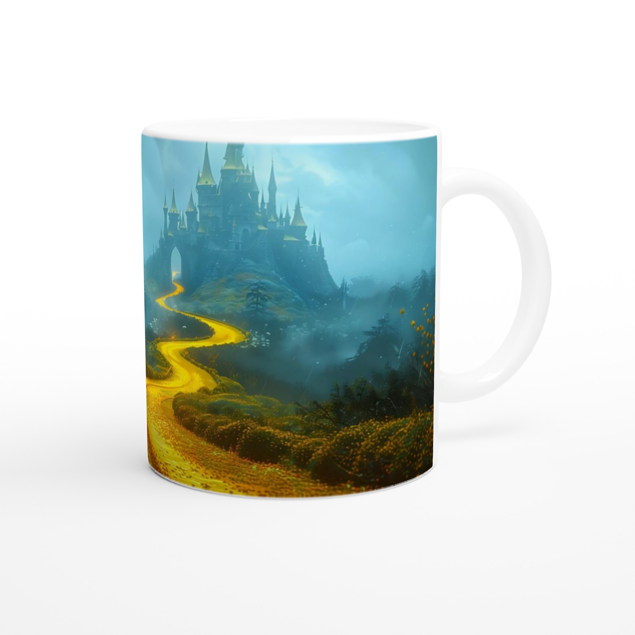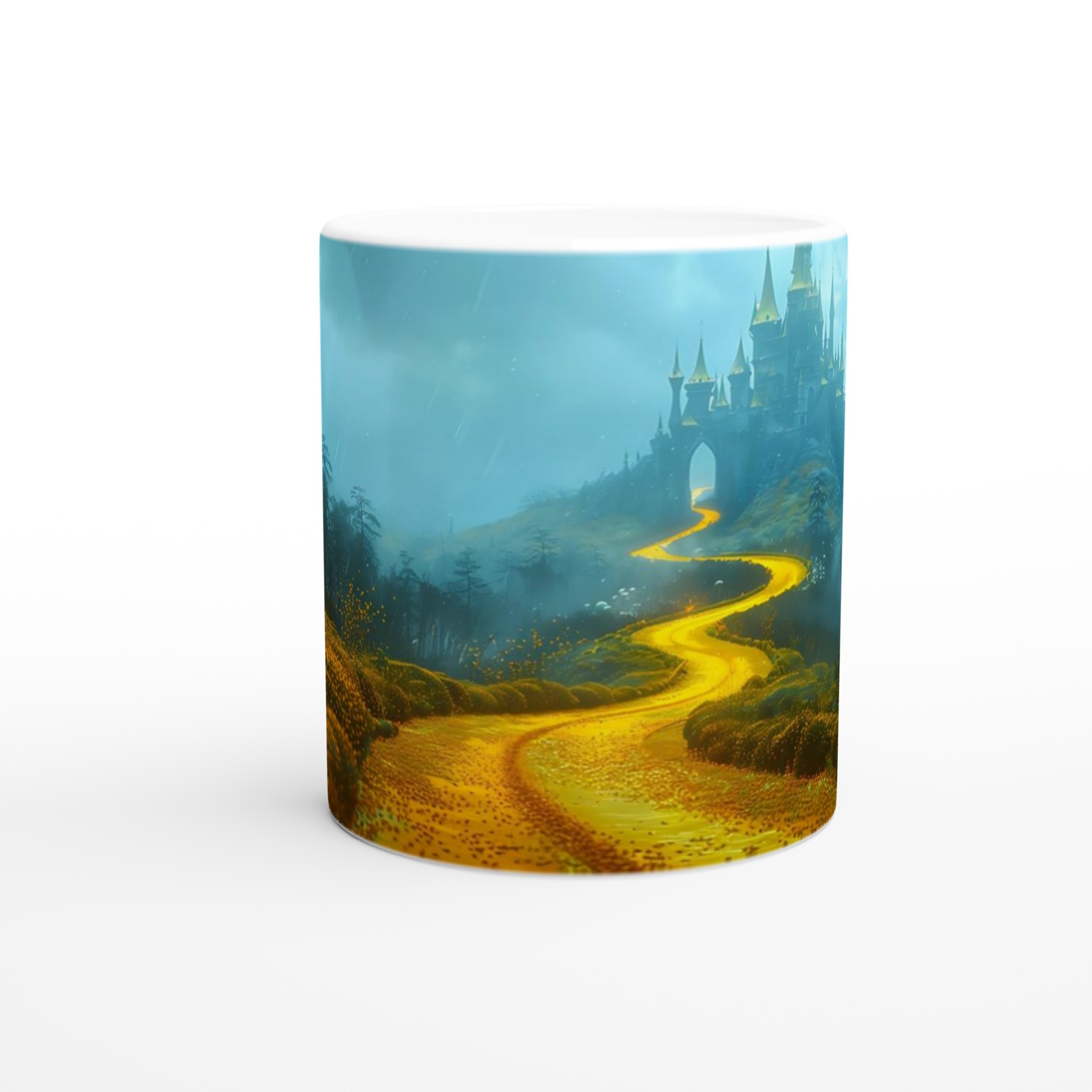 Låt dig svepas med till en magisk värld varje gång du tar en klunk. Denna förtrollande keramiska mugg, prydd med en drömsk bild av ett sagoslott omgivet av en guldskimrande stig, blir snabbt en favorit. Perfekt för morgonkaffet när du vill drömma dig bort, kvällens varma choklad efter en lång dag, eller när du bara vill njuta av en kopp te i en kopp som inspirerar. Den blanka ytan framhäver motivet med klara och levande färger, som håller sig fina även efter många turer i mikron och diskmaskinen.