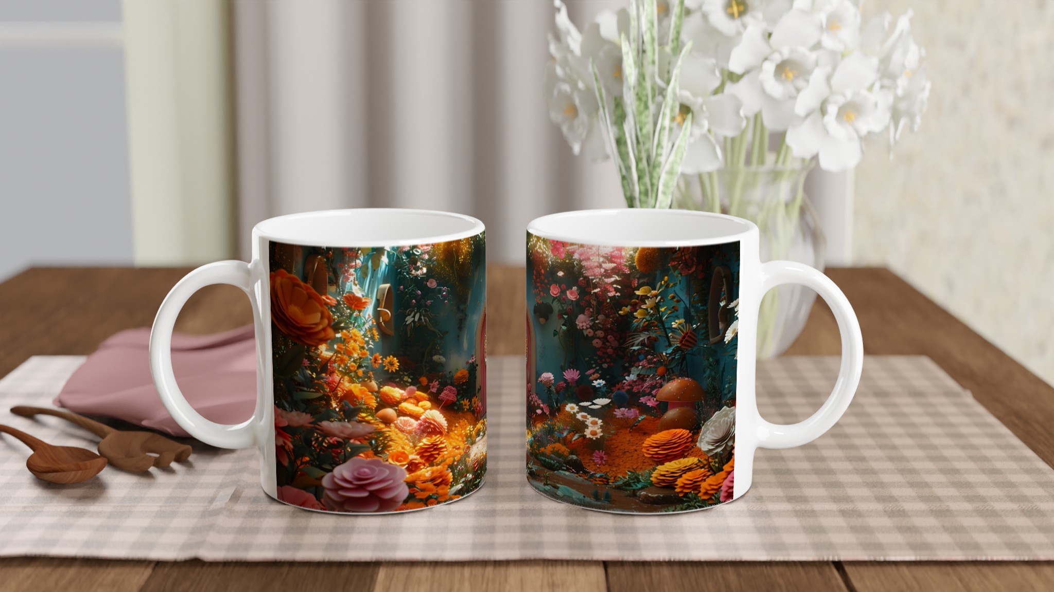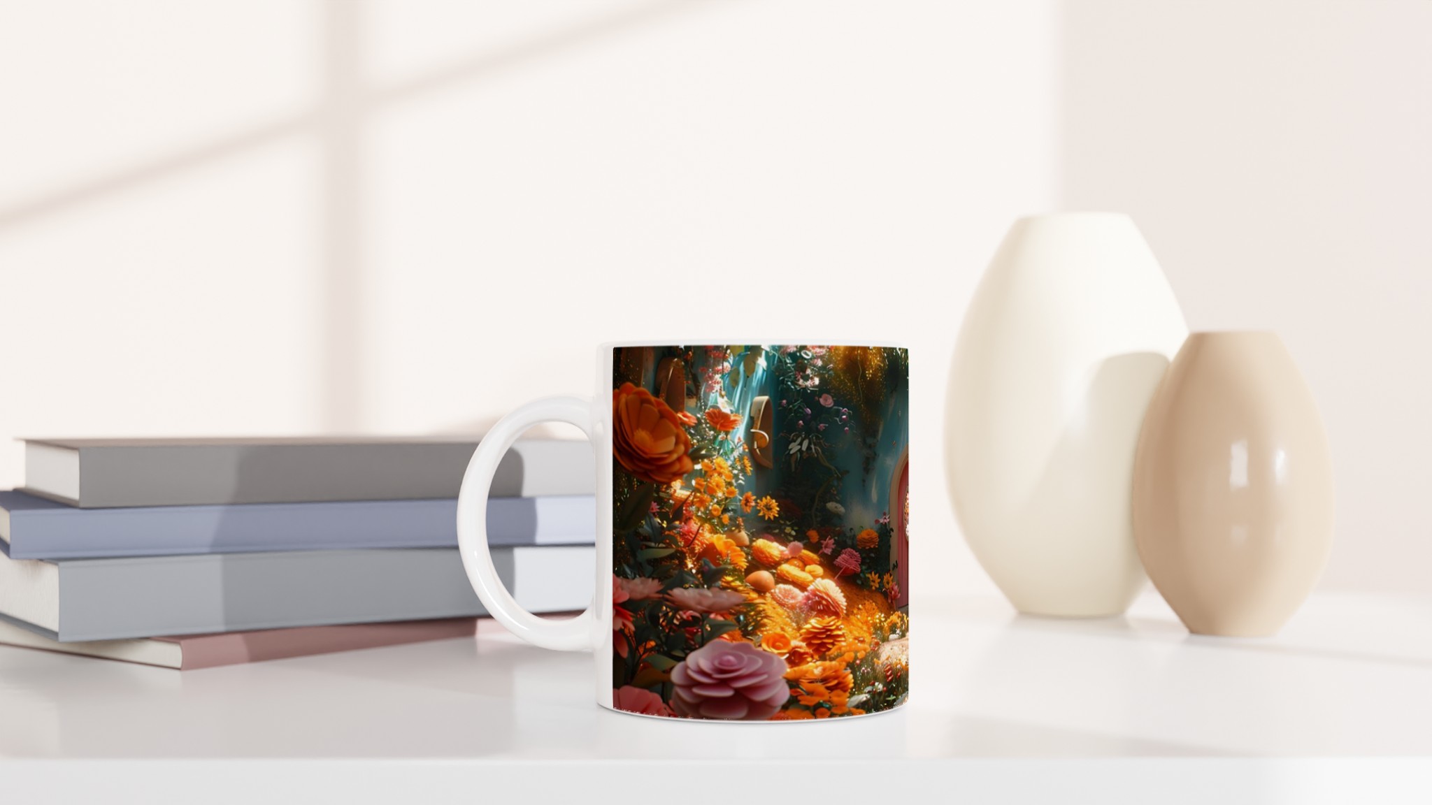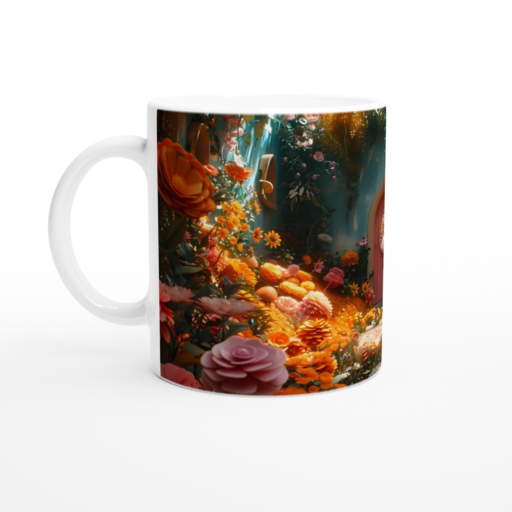 Stig in i en värld av förtrollning med denna magiska keramiska mugg, inspirerad av en hemlig trädgård där fantasins blommor aldrig vissnar. Med sin varma, inbjudande färgpalett och livfulla blomsterprakt blir den snabbt en vardagsfavorit. Perfekt för morgonkaffet, kvällens varma choklad eller när du bara vill njuta av en kopp te i en inspirerande atmosfär. Den blanka vita ytan framhäver trycken med klara och levande färger, som håller sig fina även efter många turer i mikron och diskmaskinen.